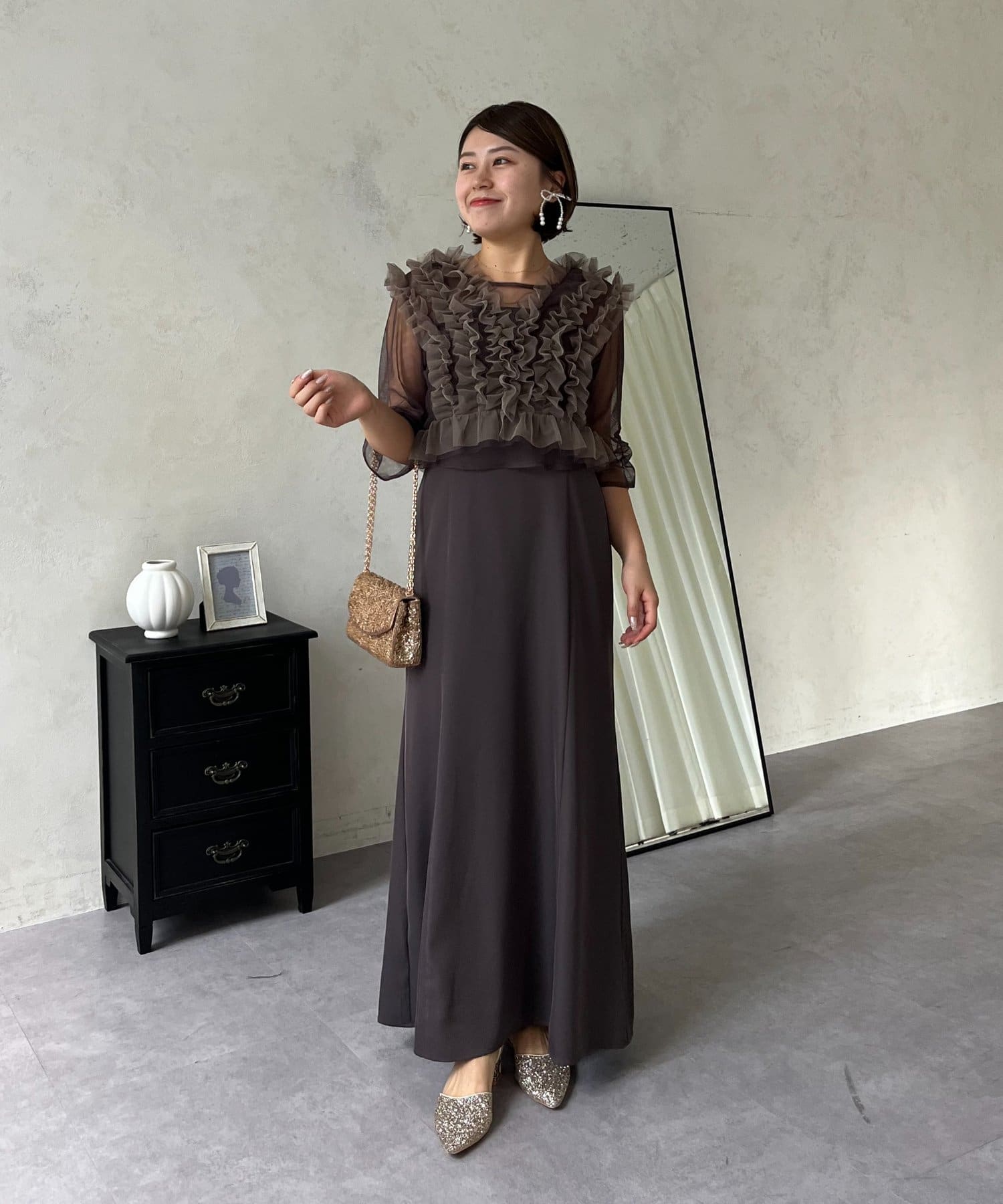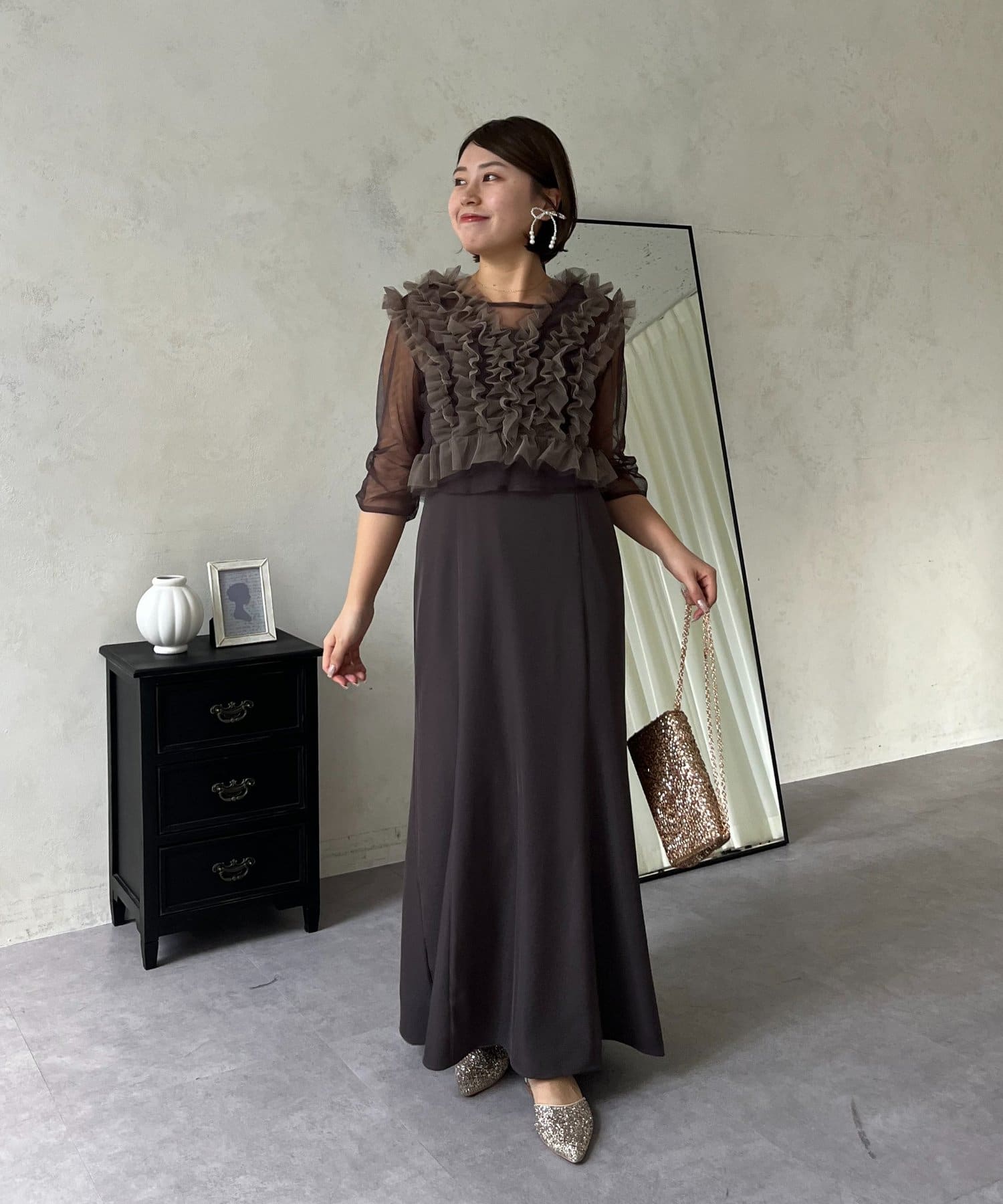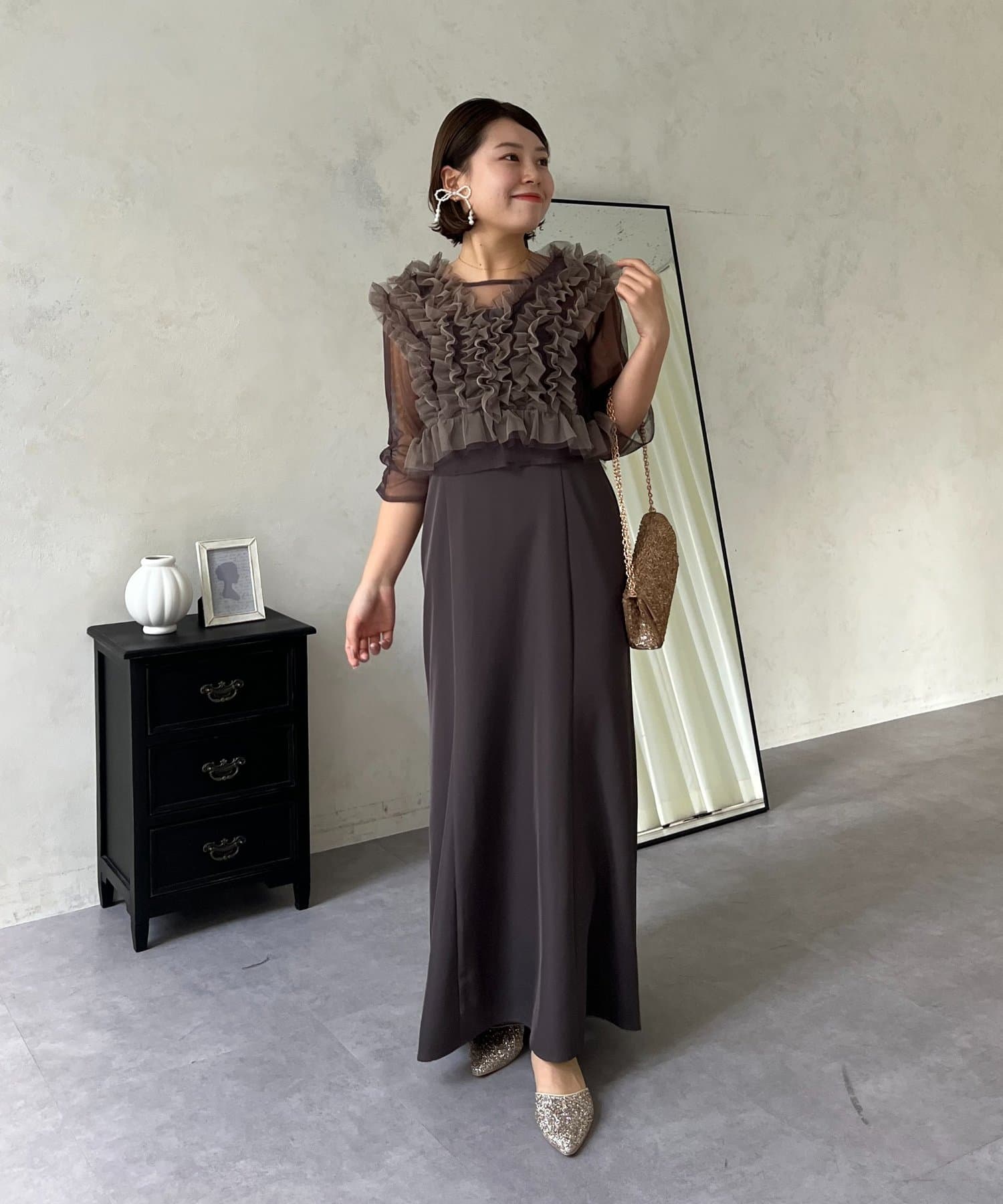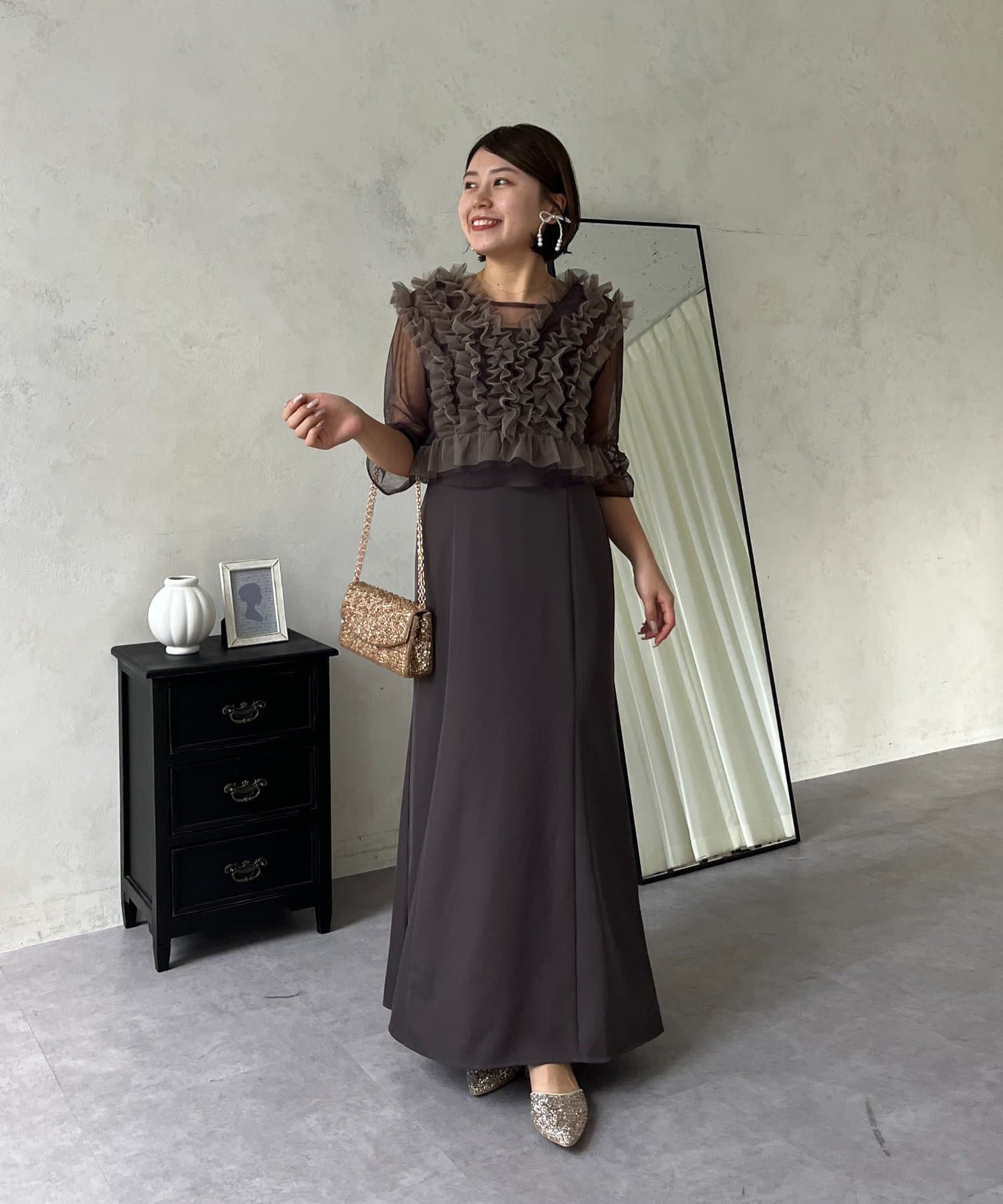 TOP > prose verse > レディース > ワンピース > ドレス/オケージョンワンピース > 【MOMO】シアーフリルビスチェレイヤードキャミドレス
