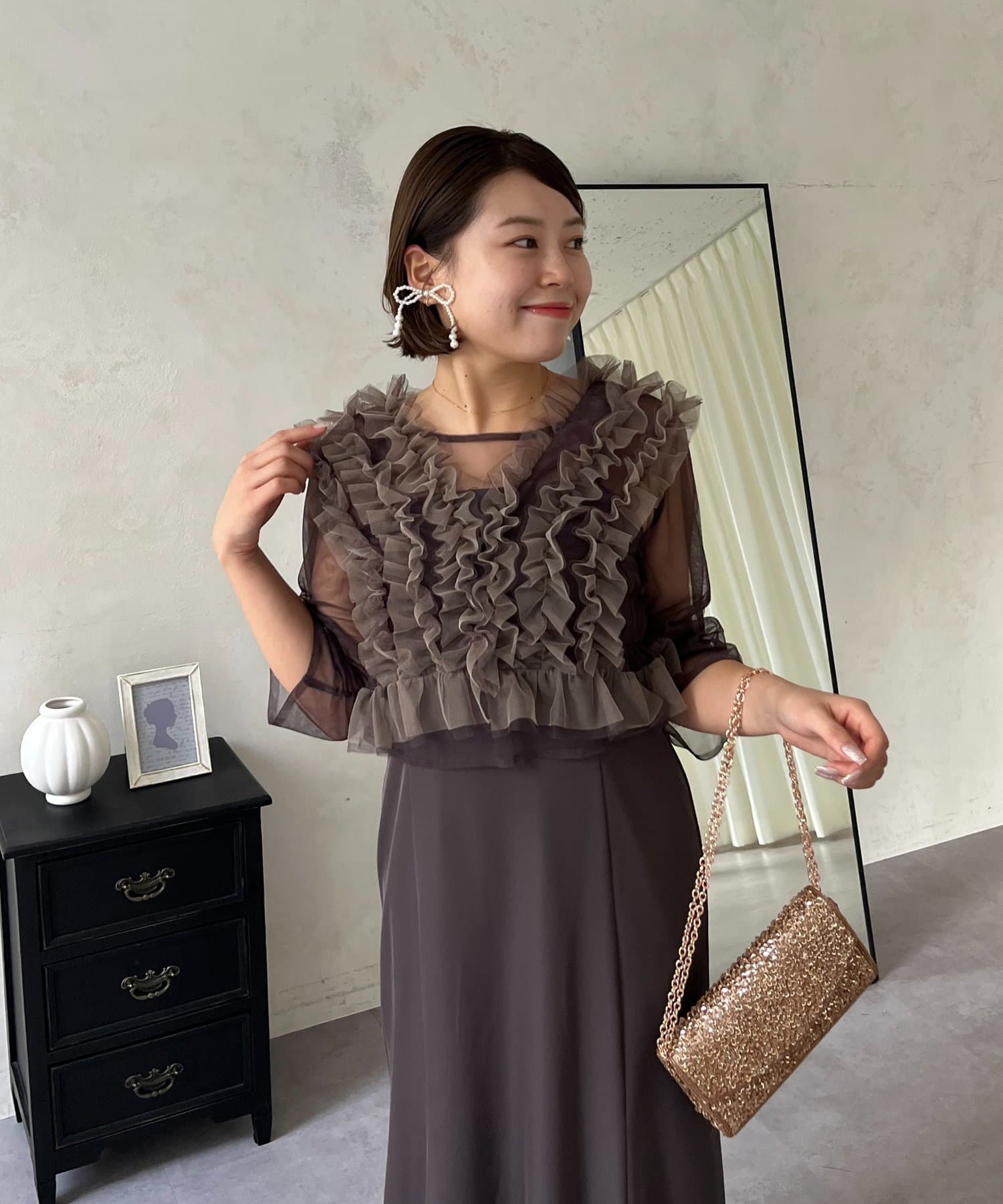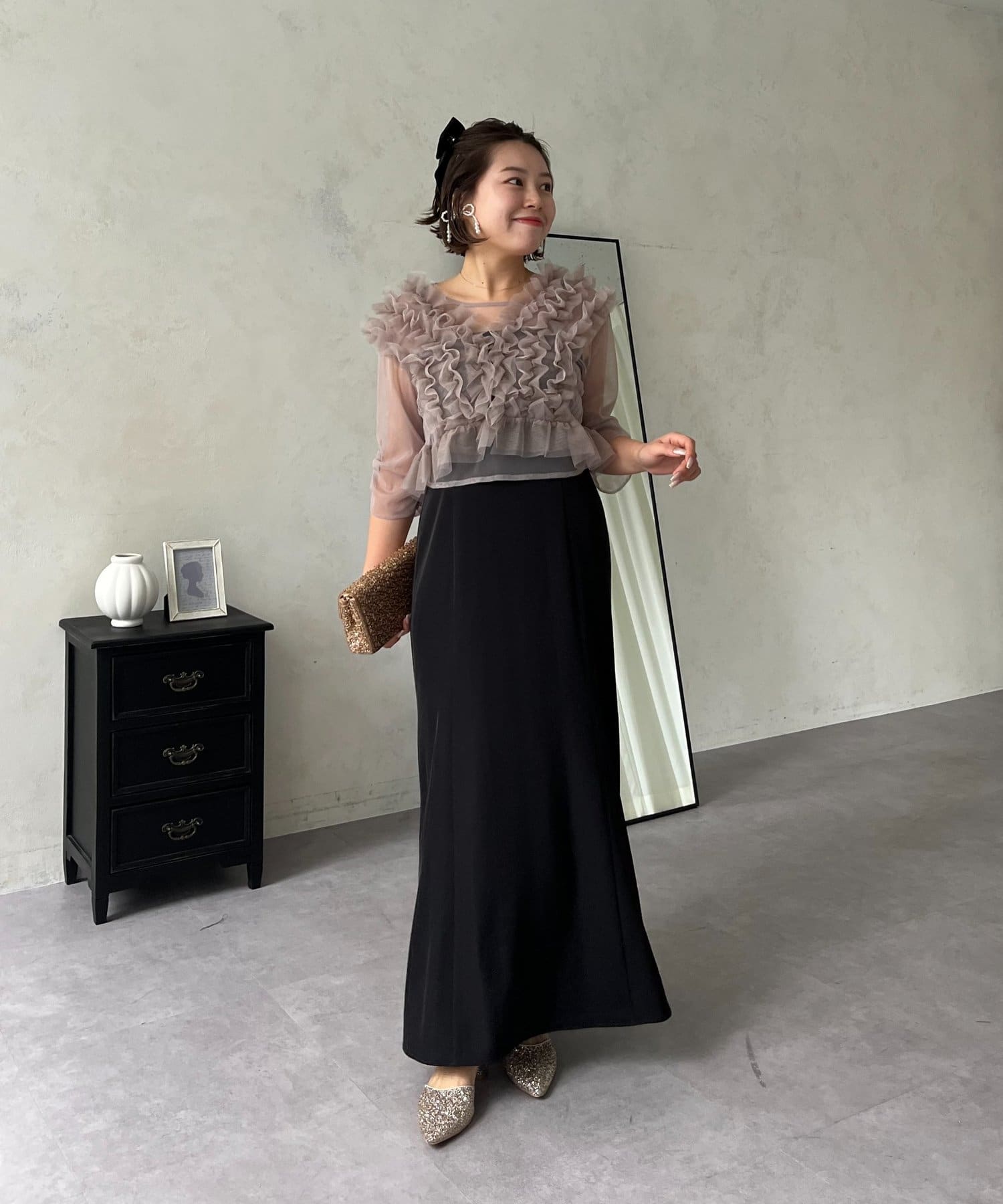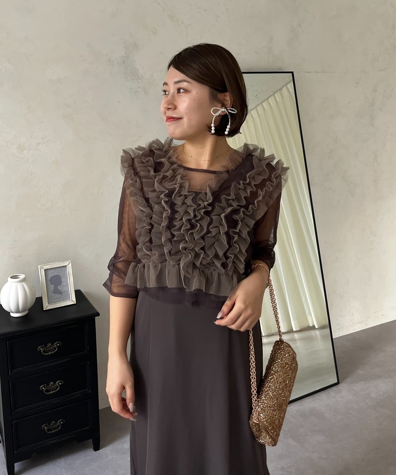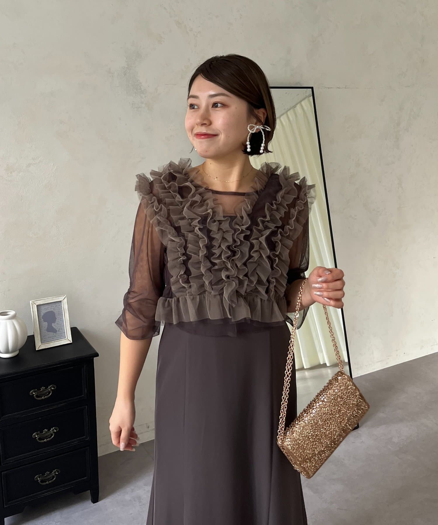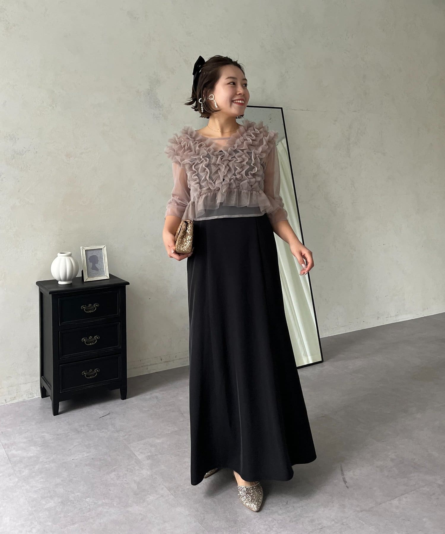 TOP > prose verse > レディース > ワンピース > ドレス/オケージョンワンピース > 【MOMO】シアーフリルビスチェレイヤードキャミドレス