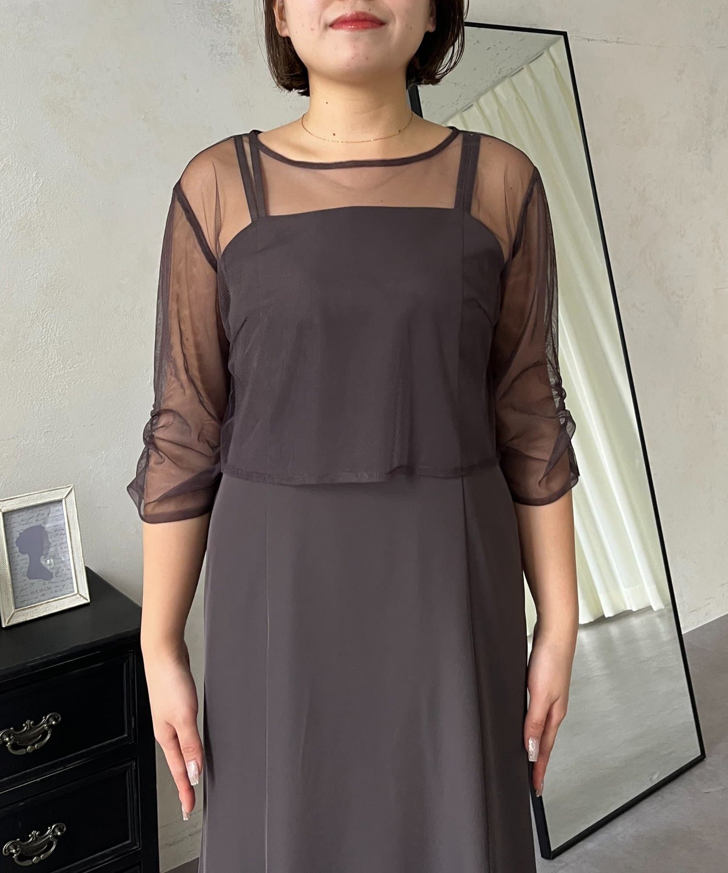 ●シアートップス&ビスチェとキャミワンピが3点セットになったお呼ばれドレス