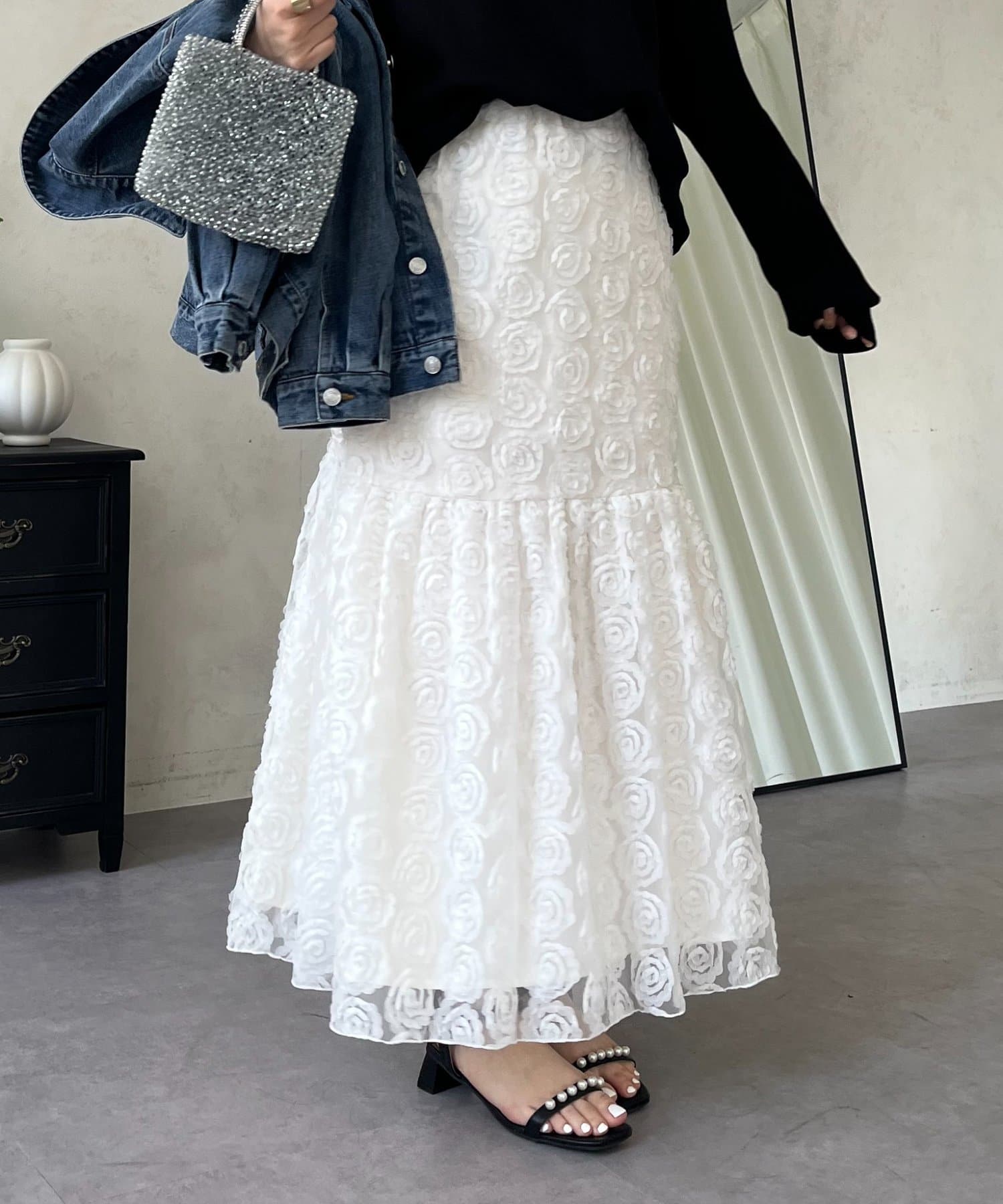 ボリューム感たっぷりの3Dフラワーロングスカートが登場!