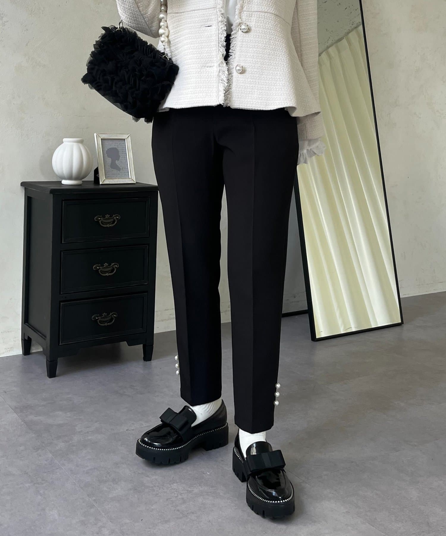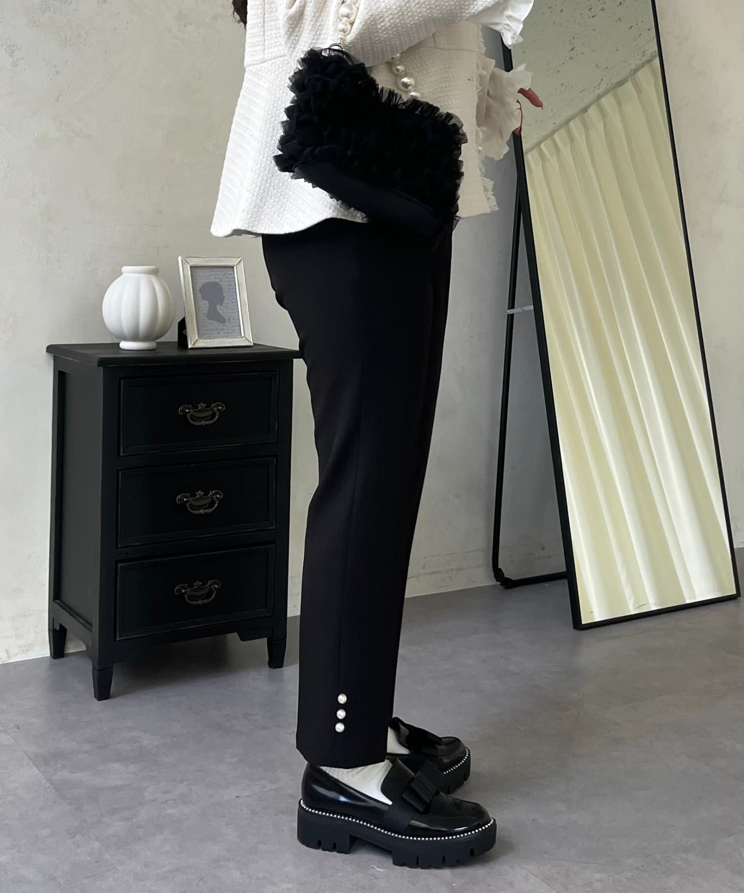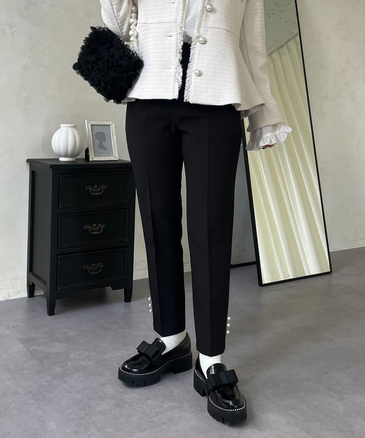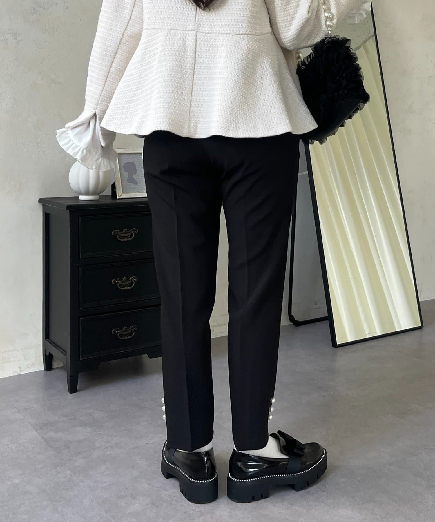 美脚見え!テーパードパンツのパール付きバージョンが登場!