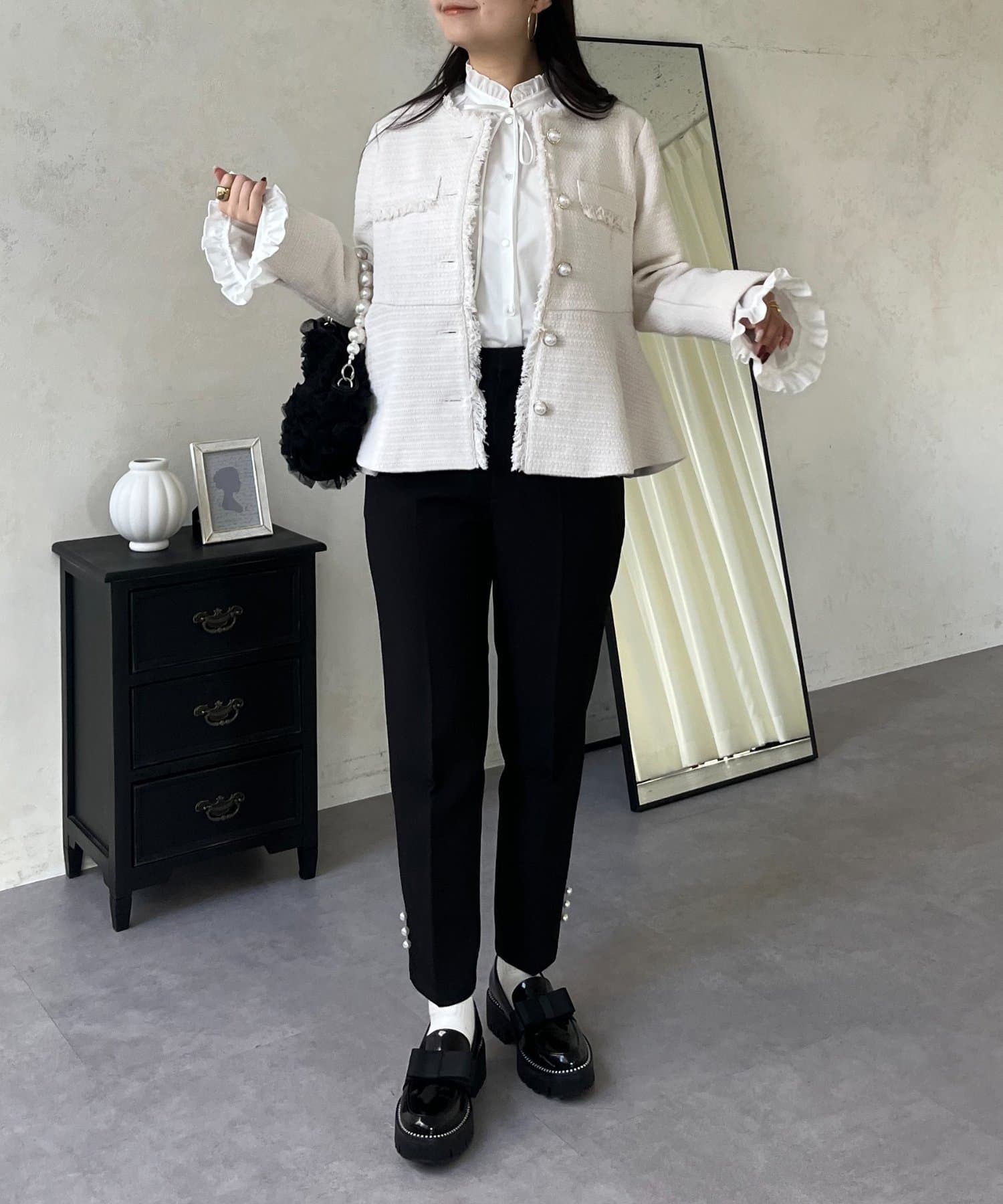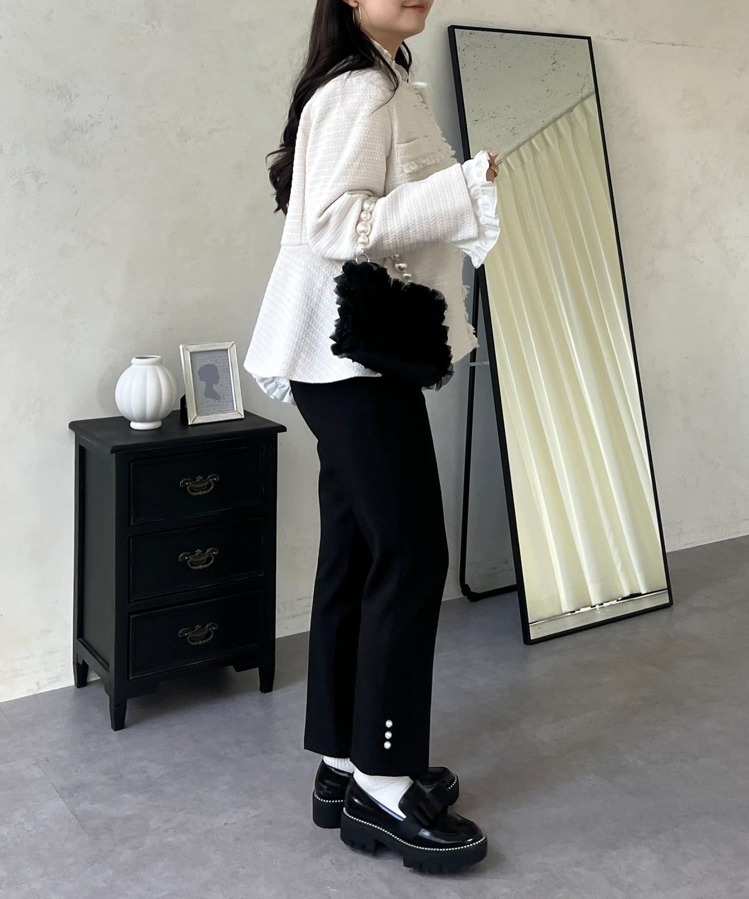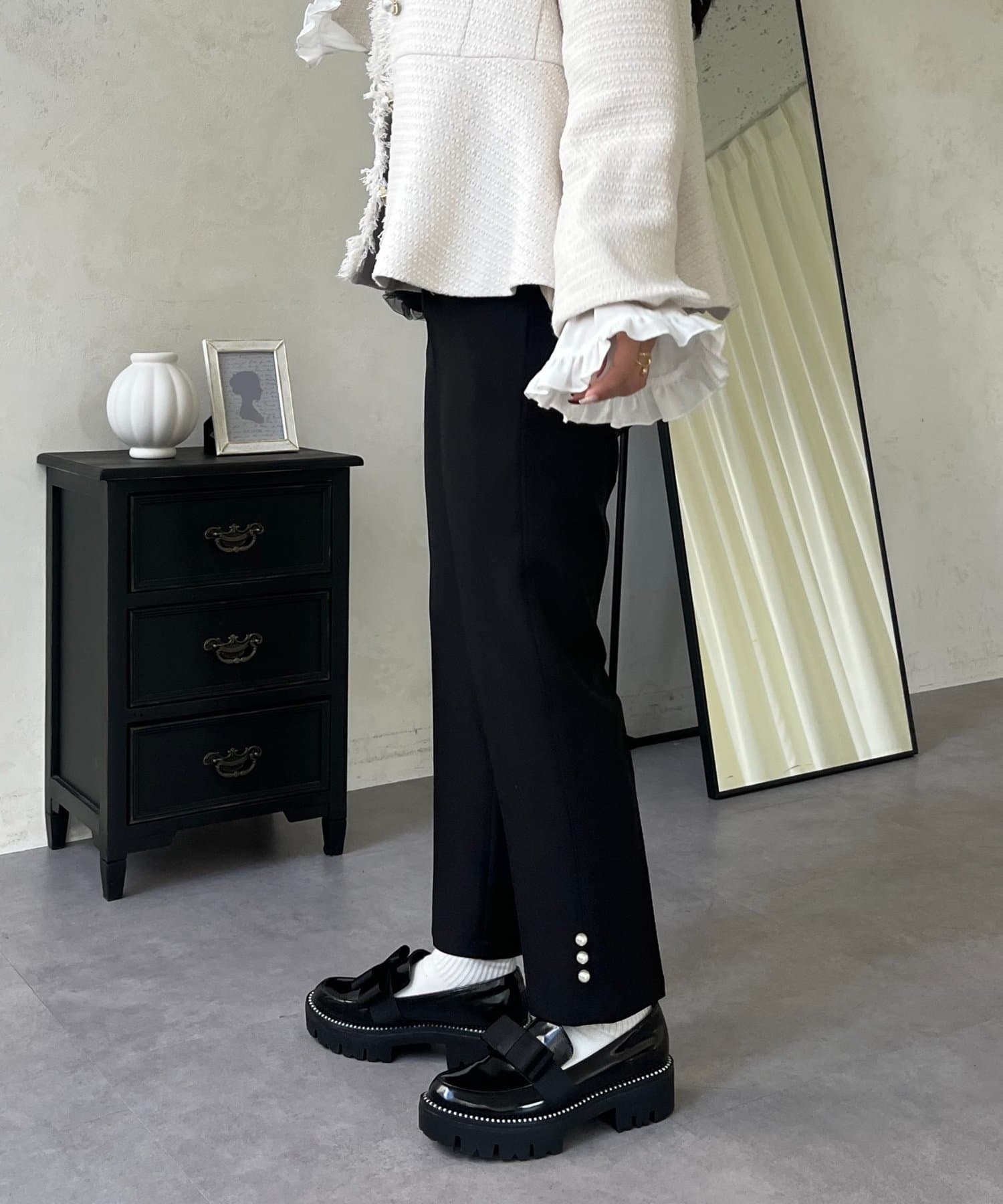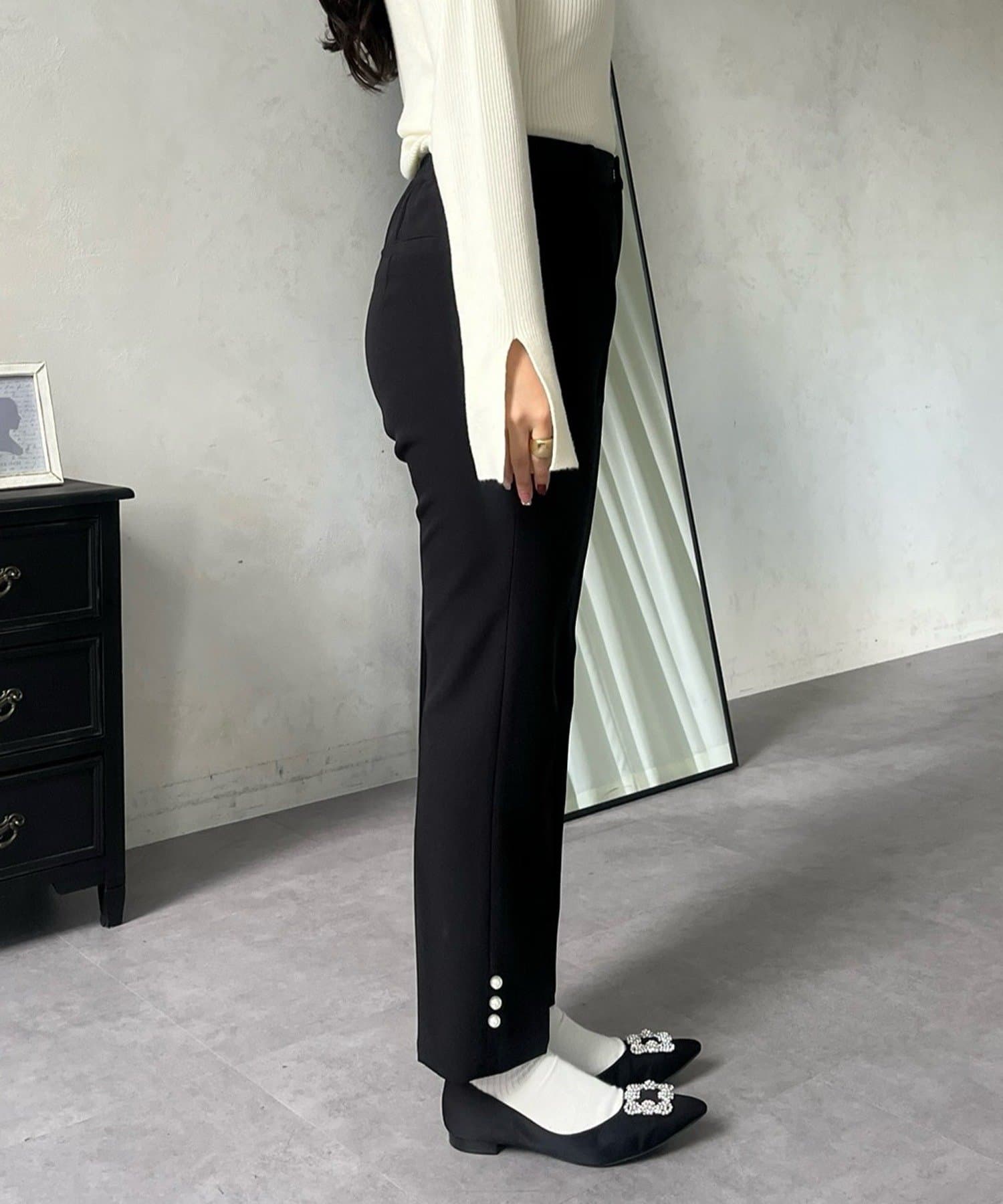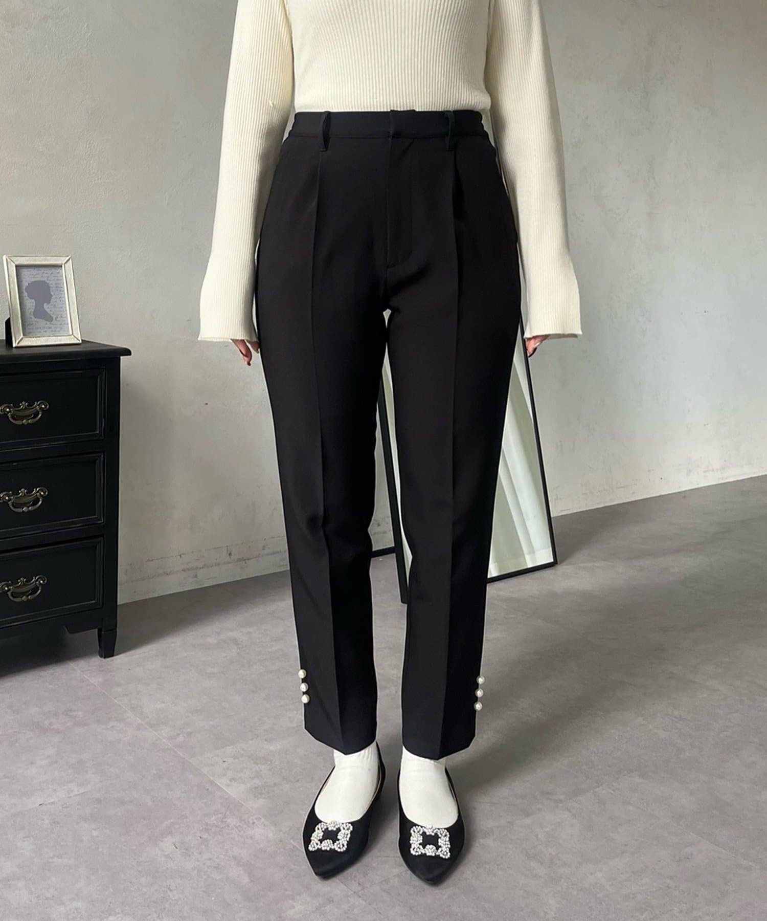 美脚見え!テーパードパンツのパール付きバージョンが登場!