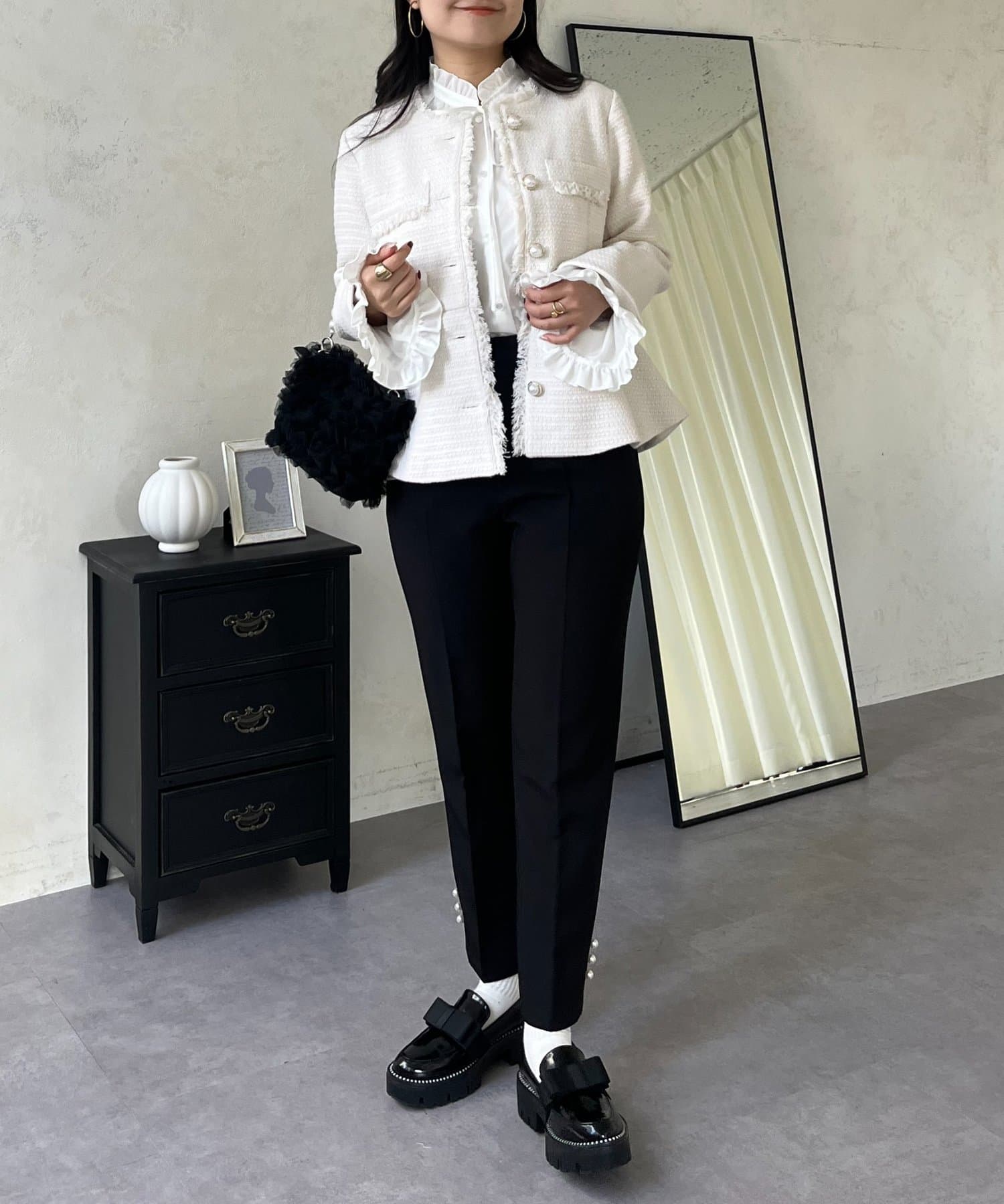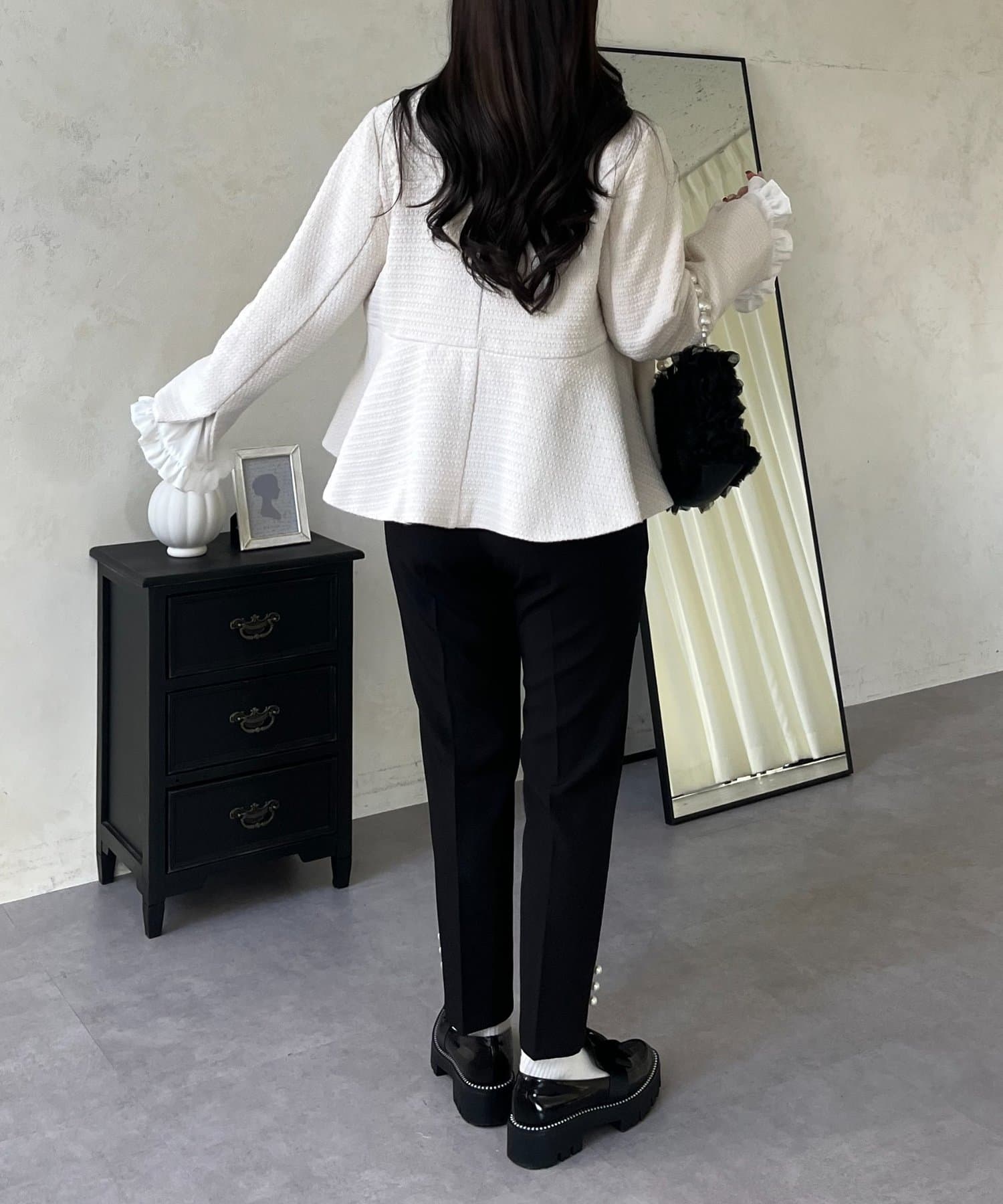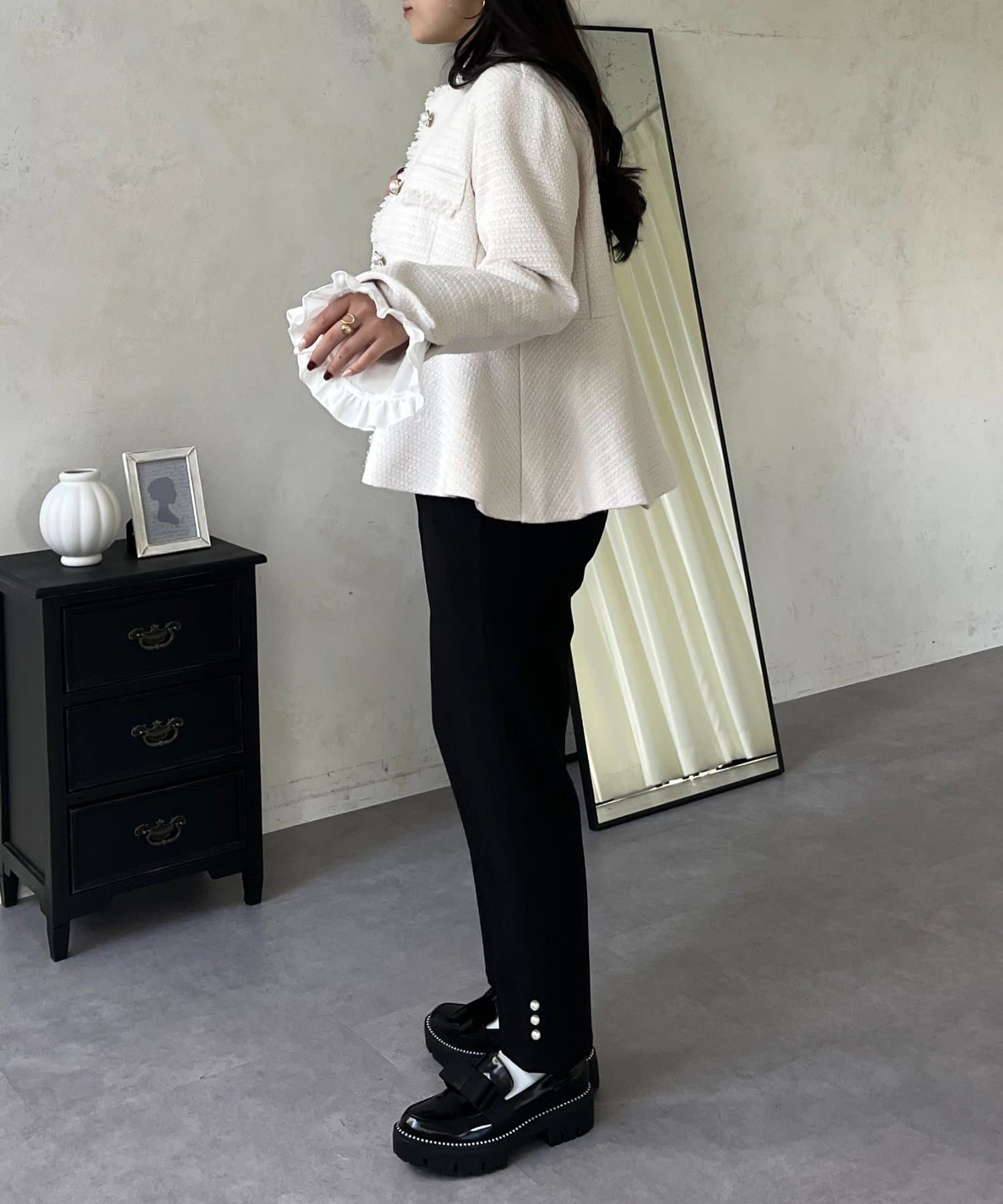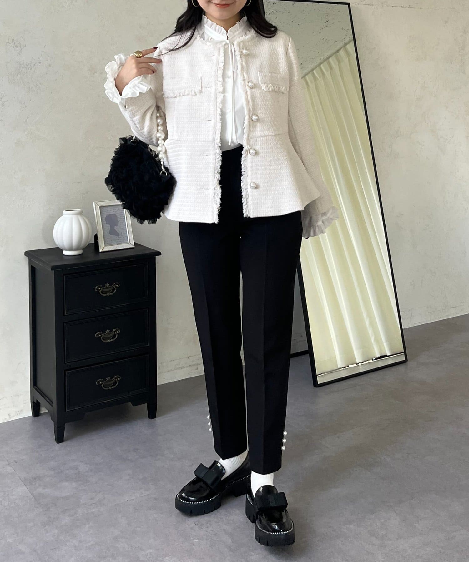 美脚見え!テーパードパンツのパール付きバージョンが登場!