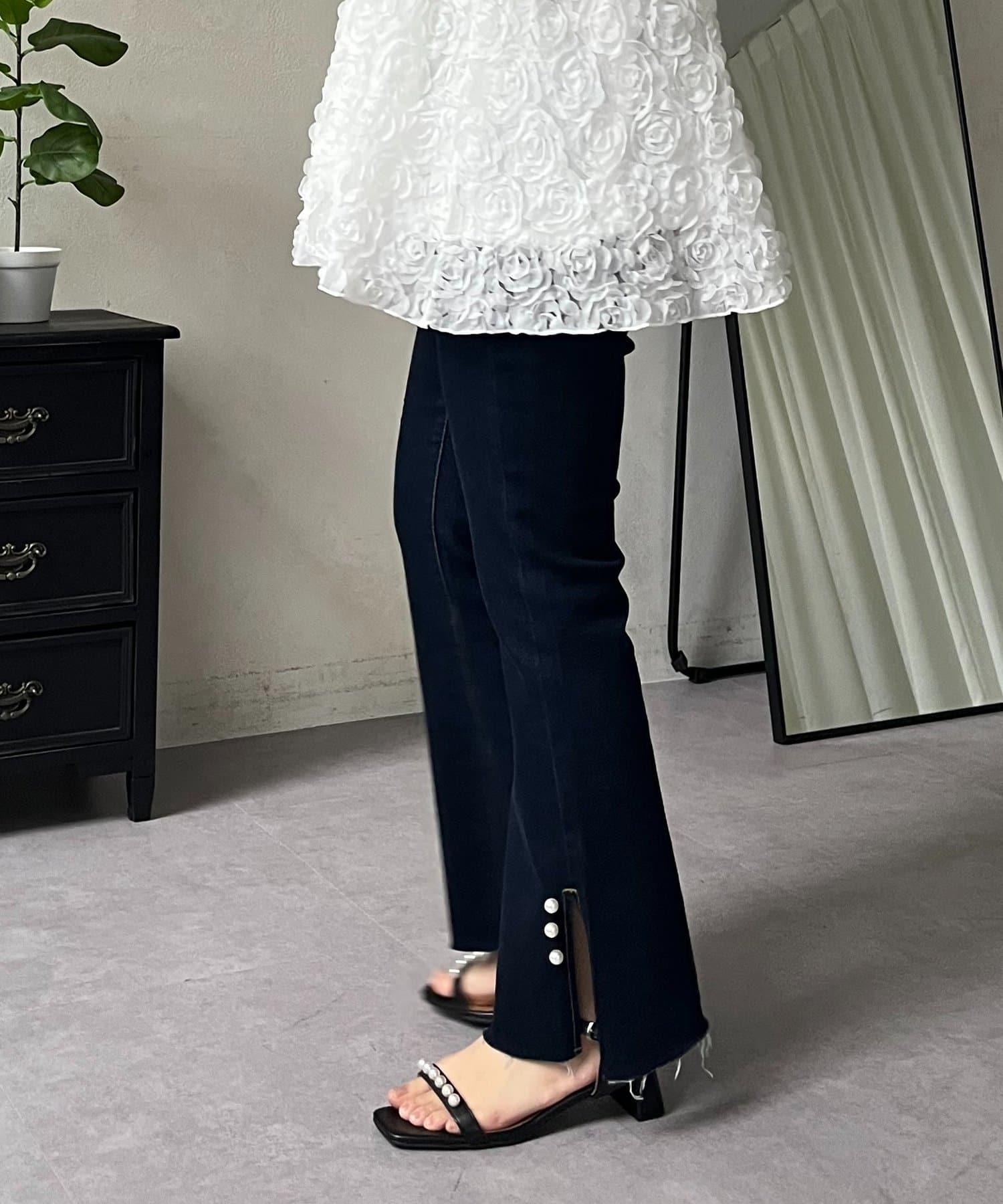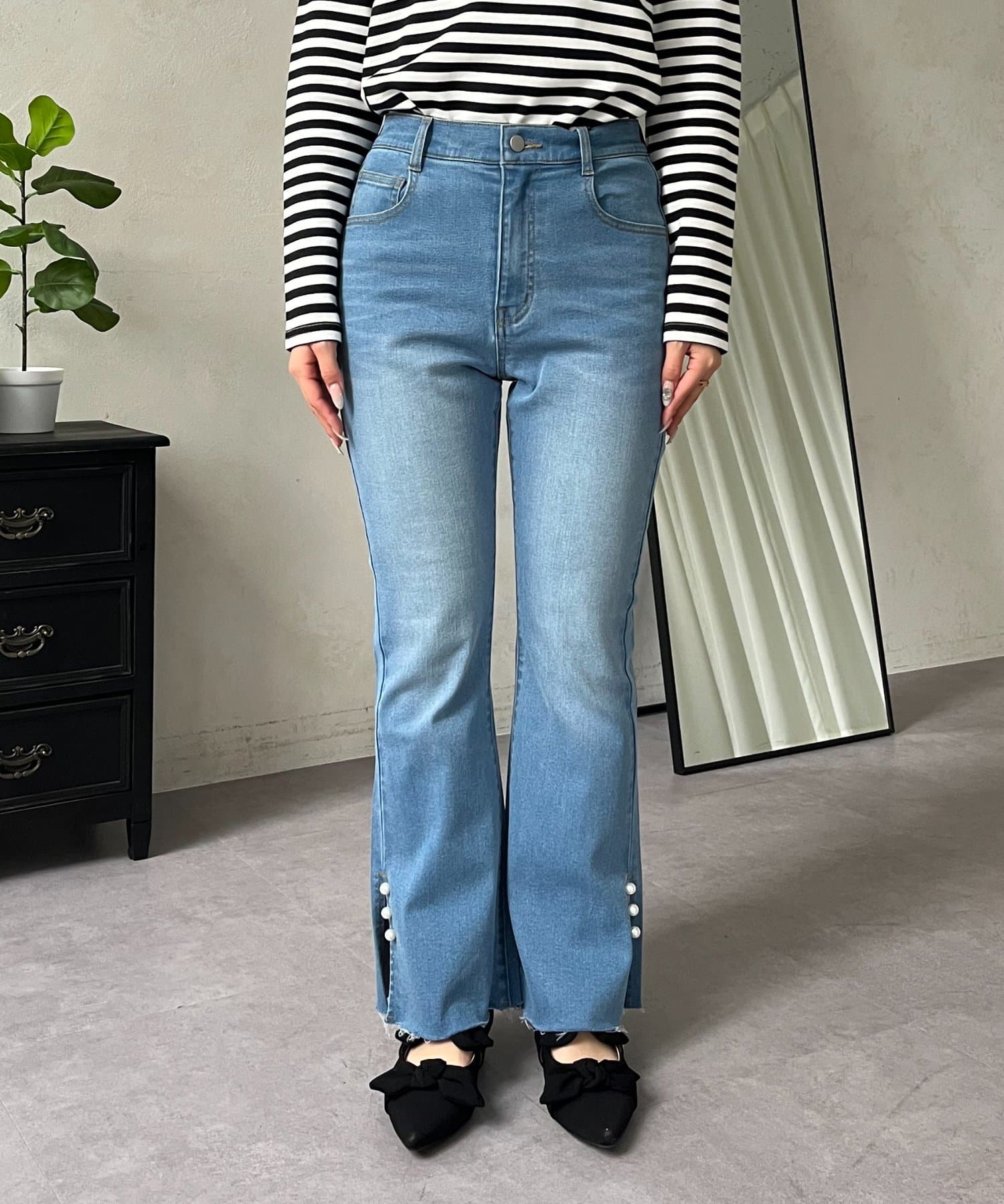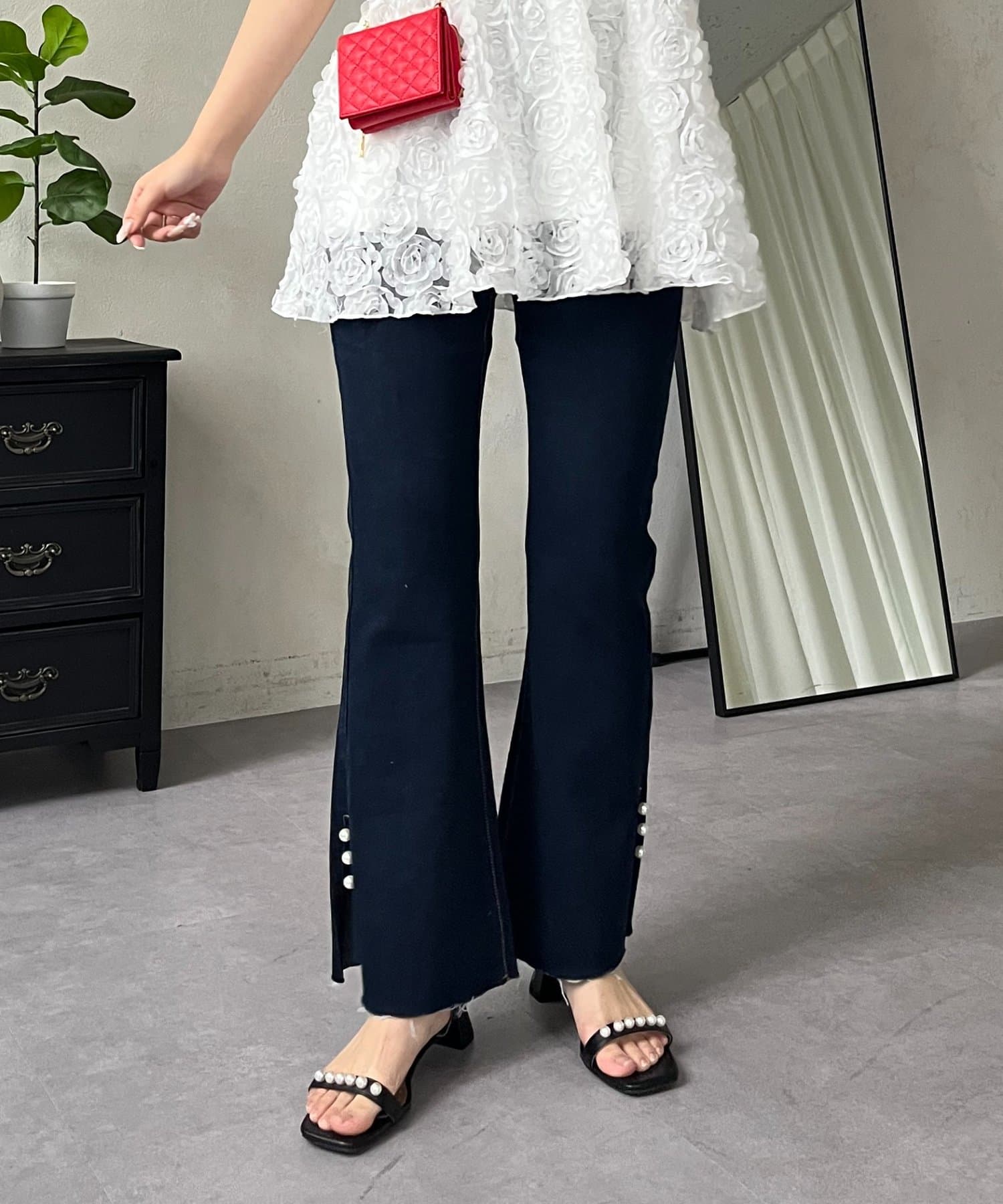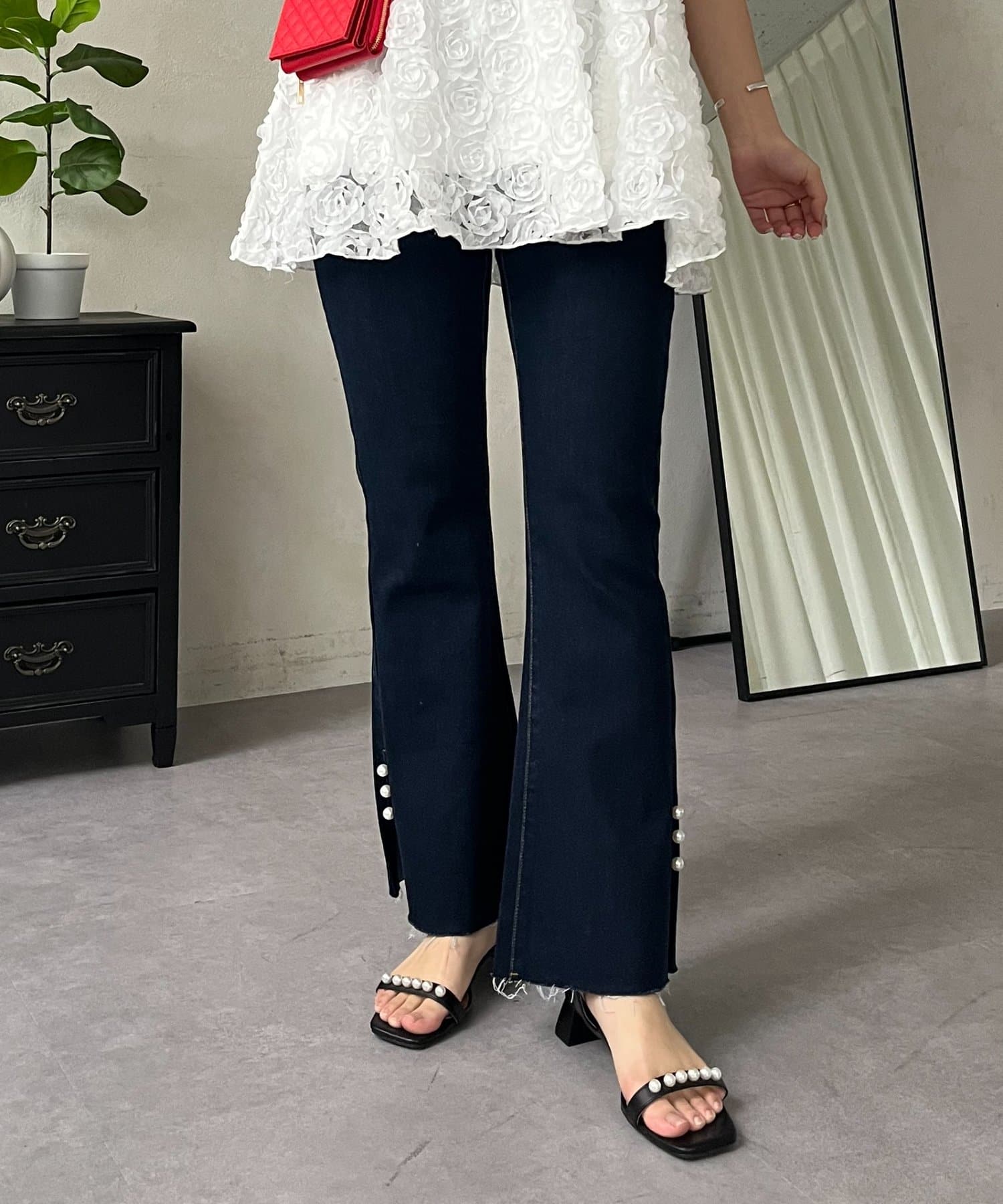• prose verse(プロズヴェール) パール付きサイドスリットフレアデニムパンツ