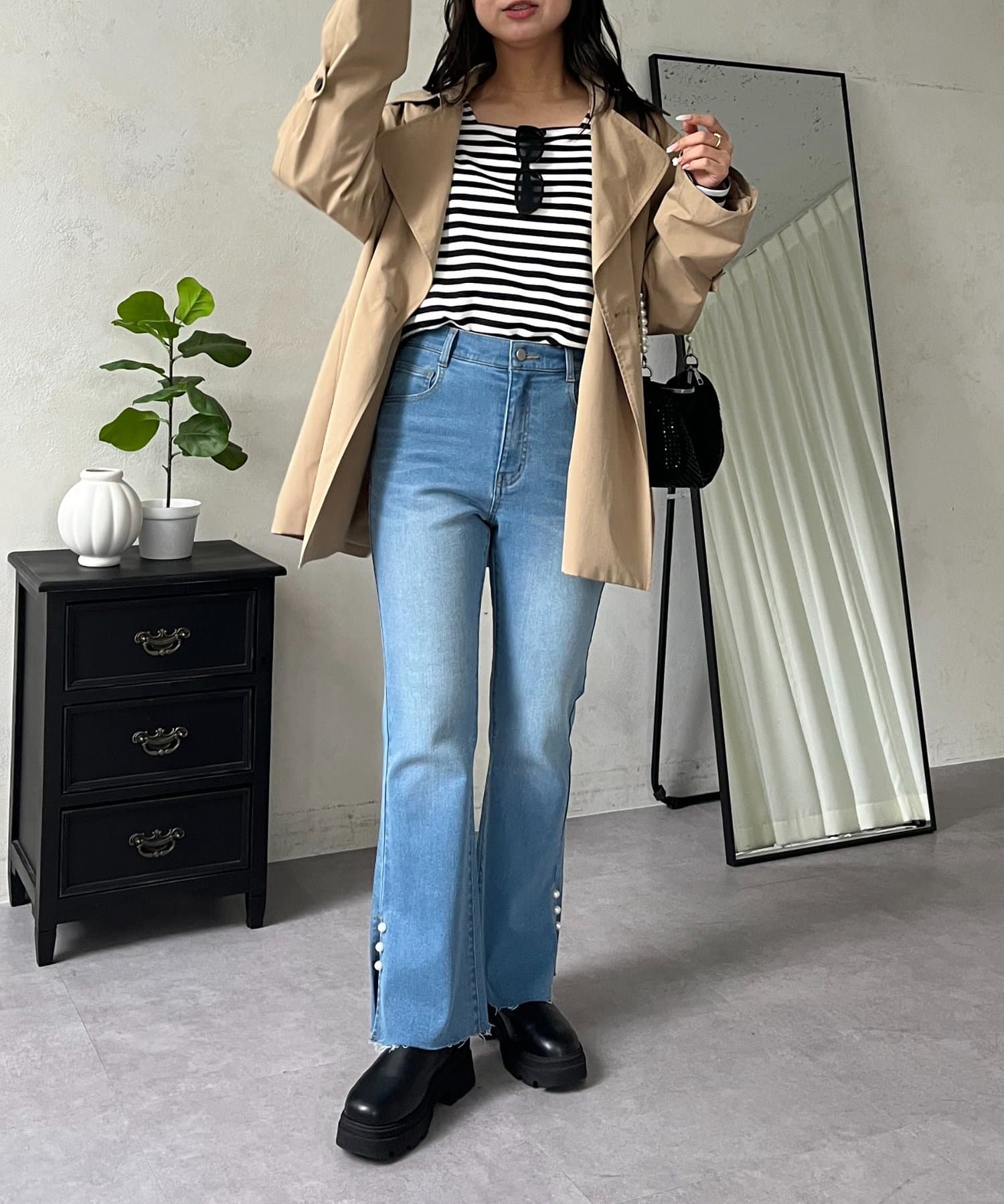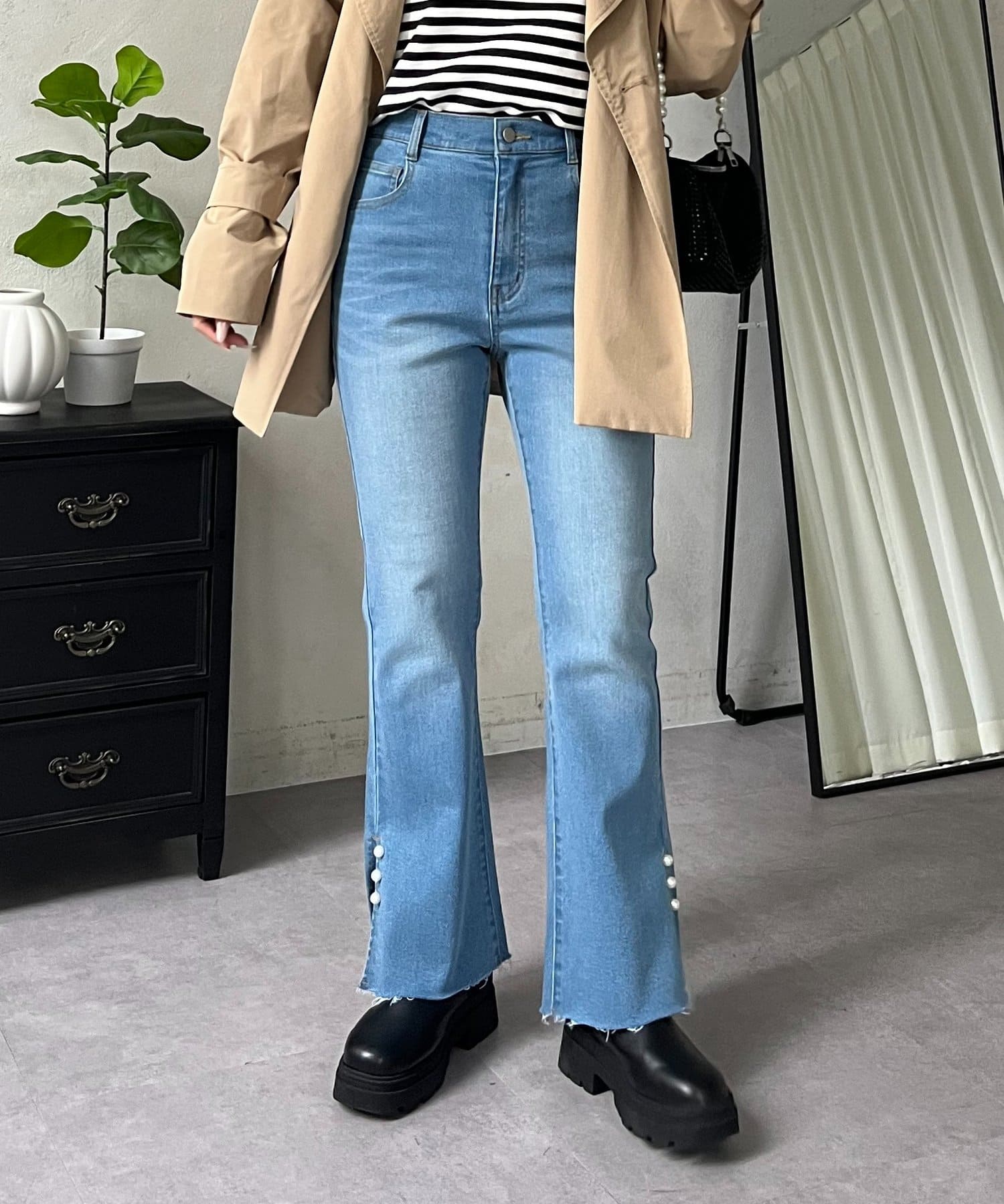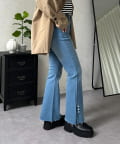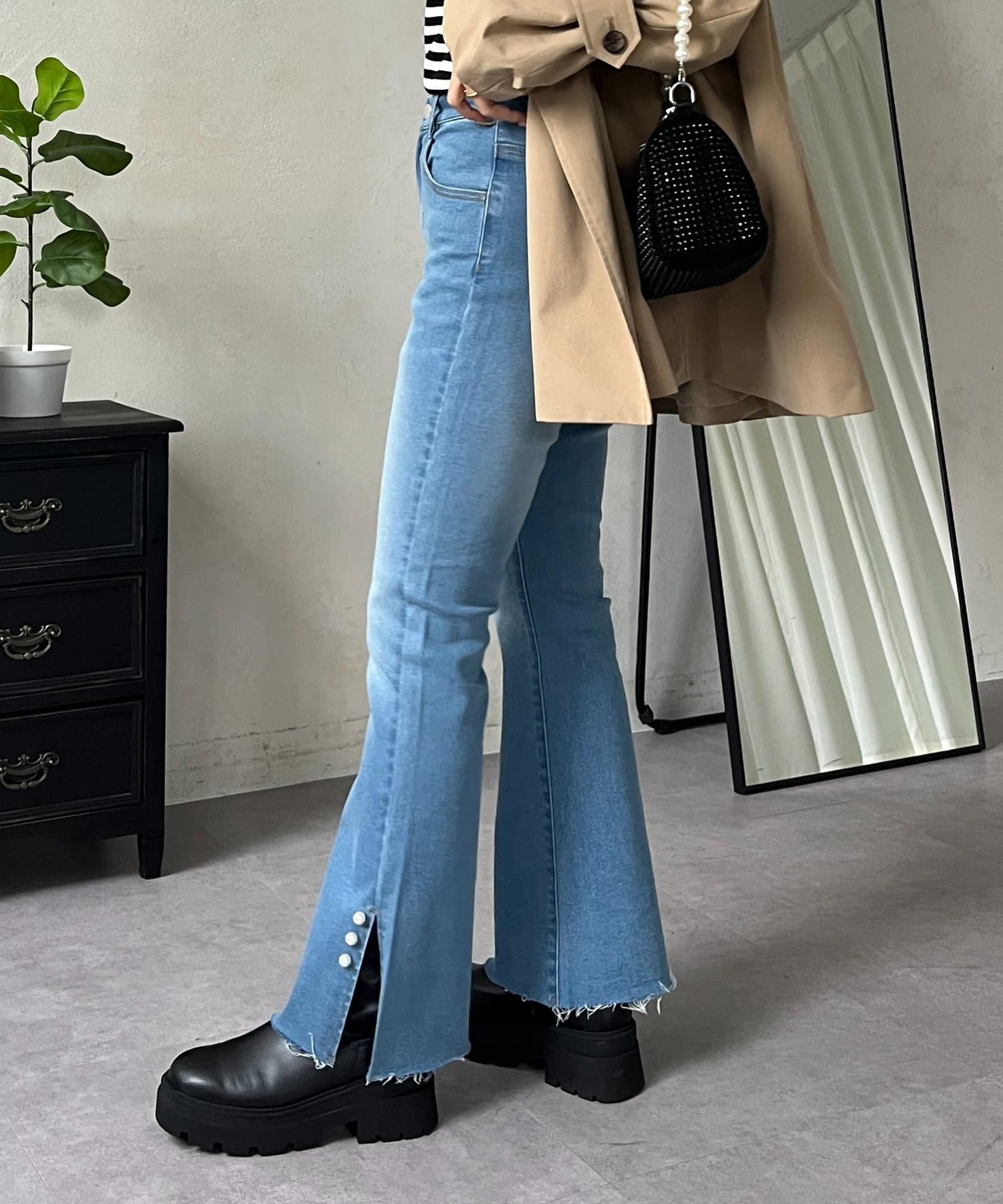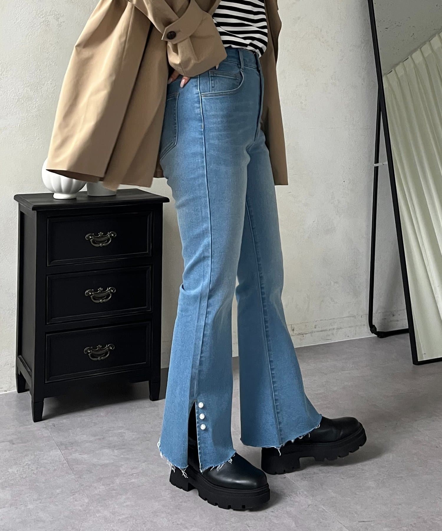 • prose verse(プロズヴェール) パール付きサイドスリットフレアデニムパンツ
