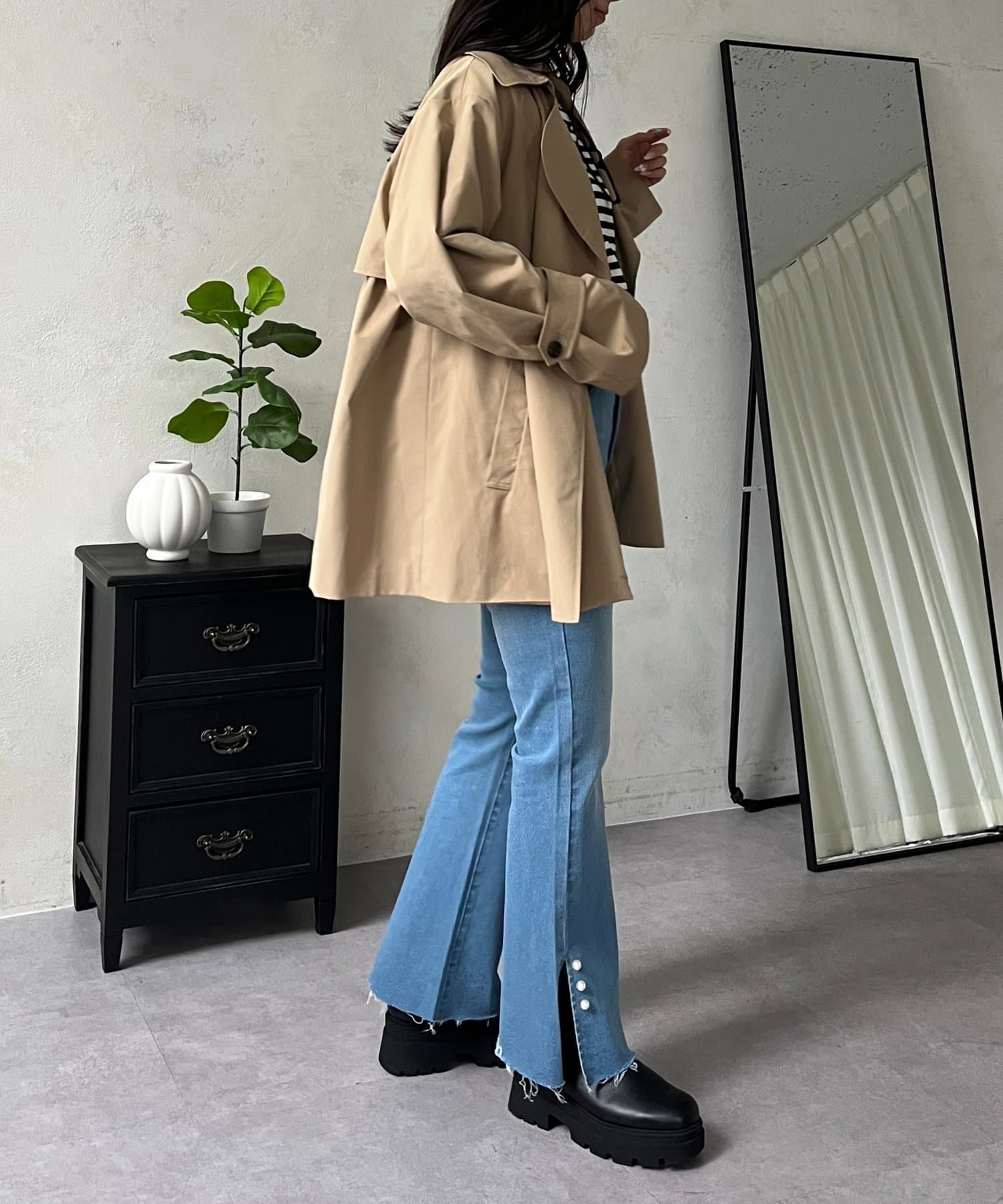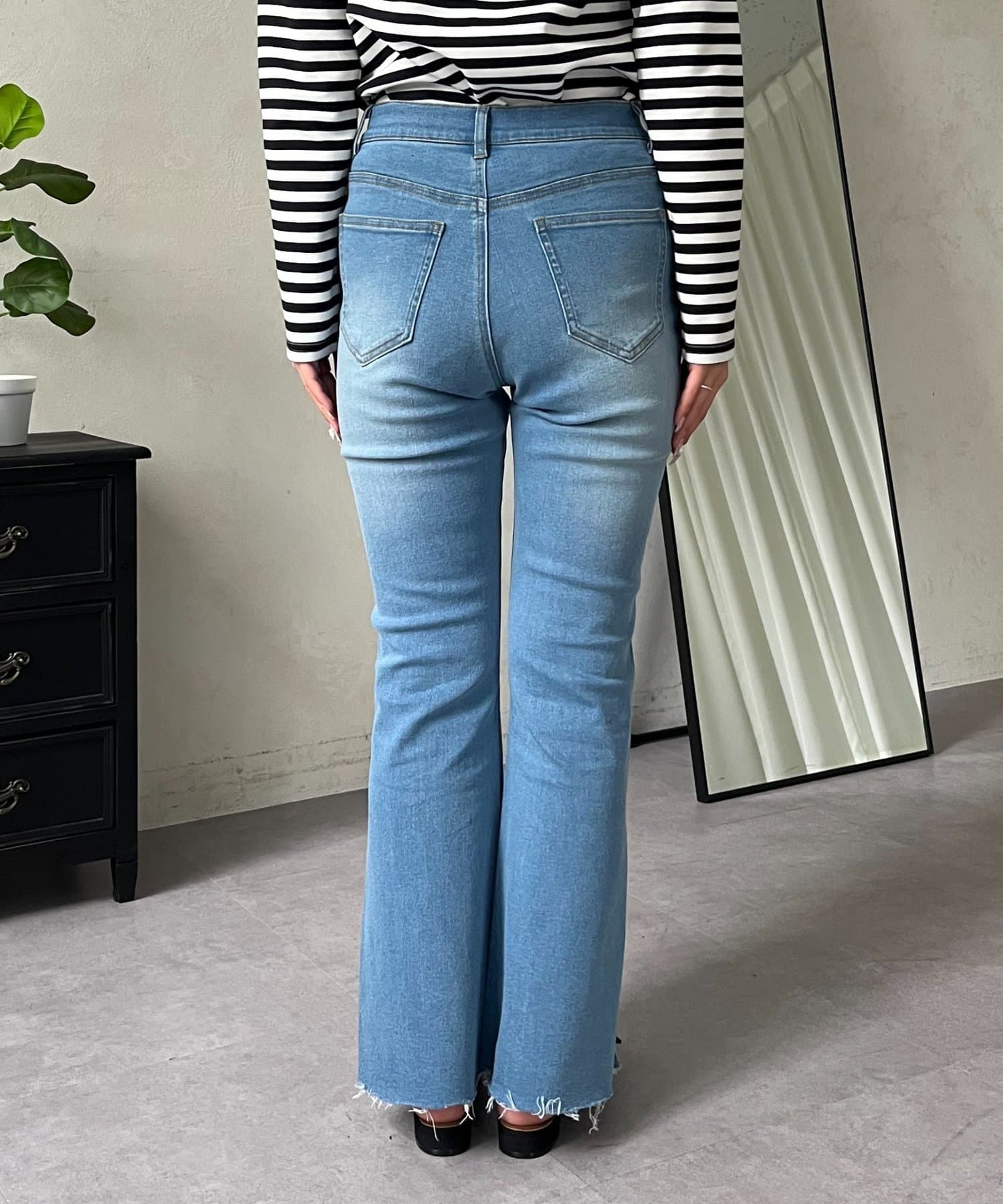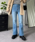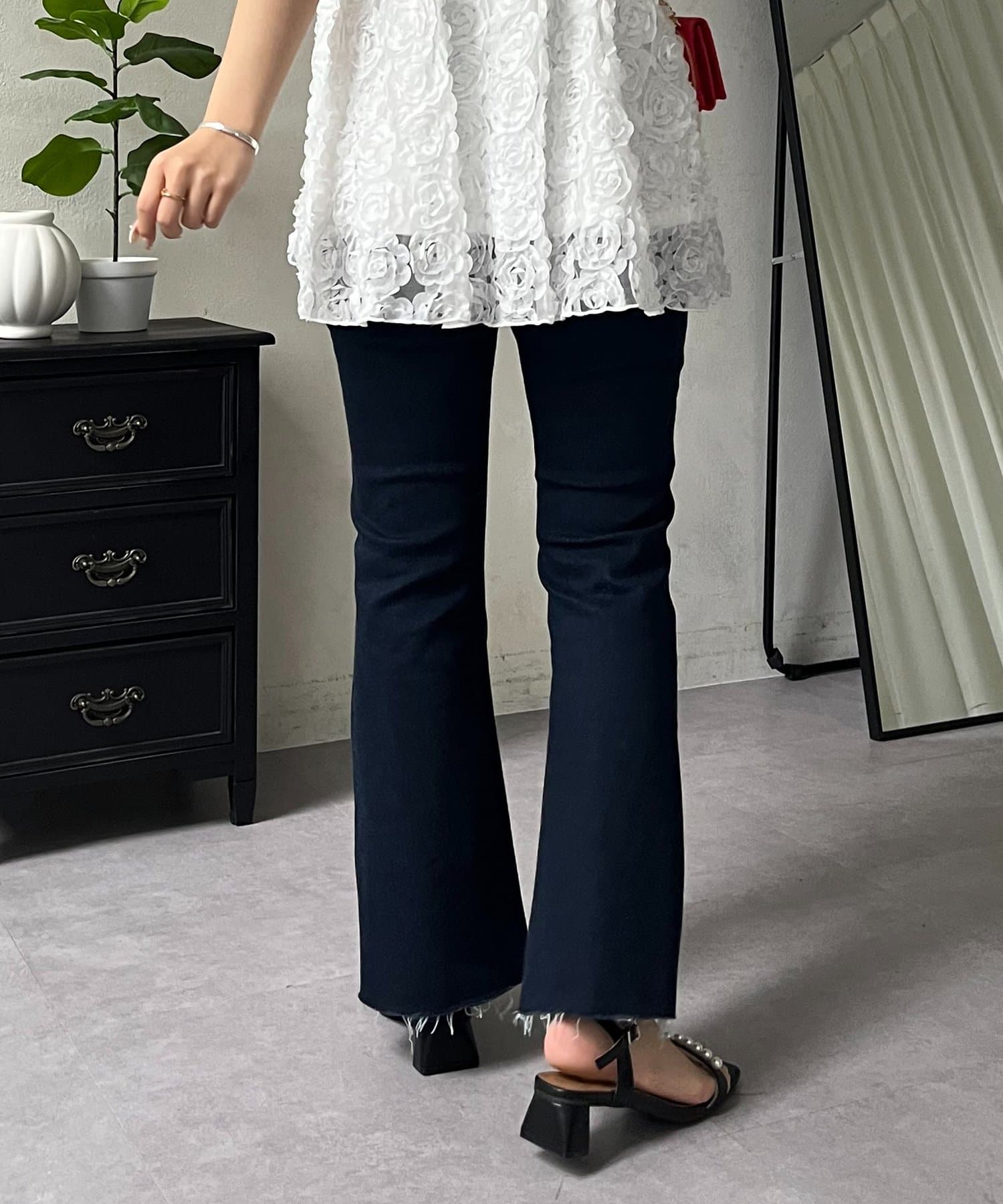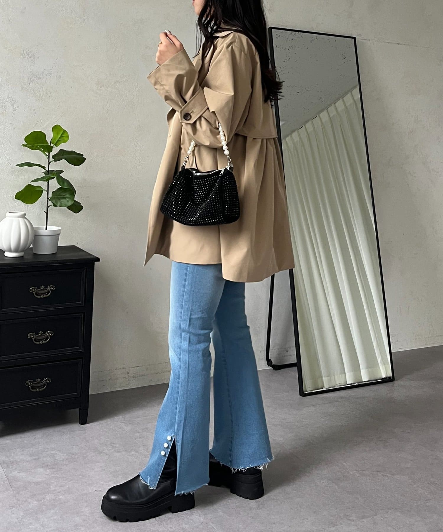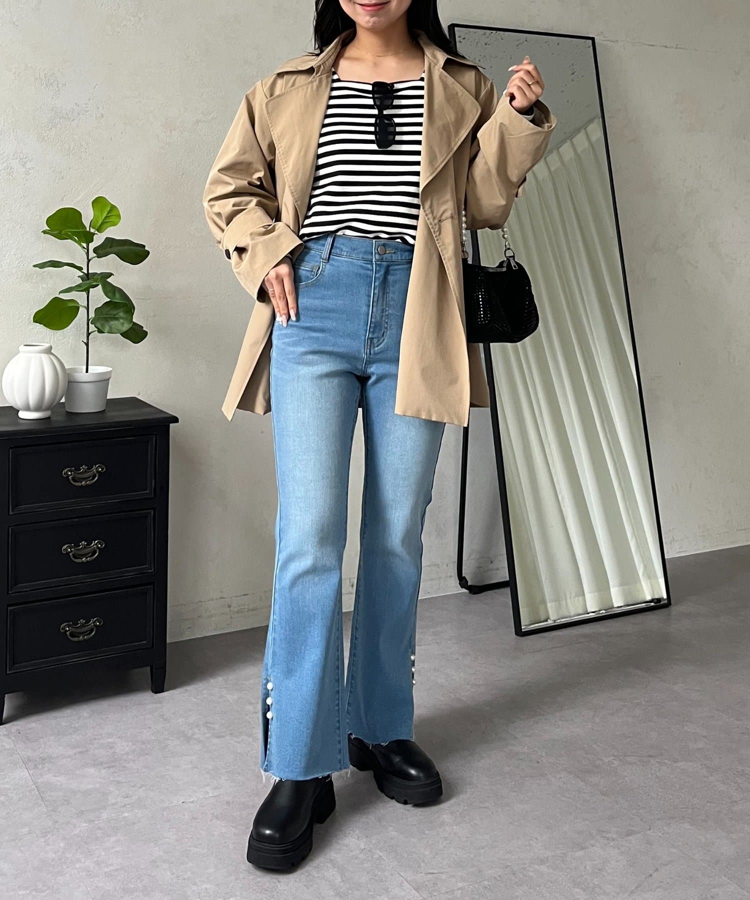 • prose verse(プロズヴェール) パール付きサイドスリットフレアデニムパンツ