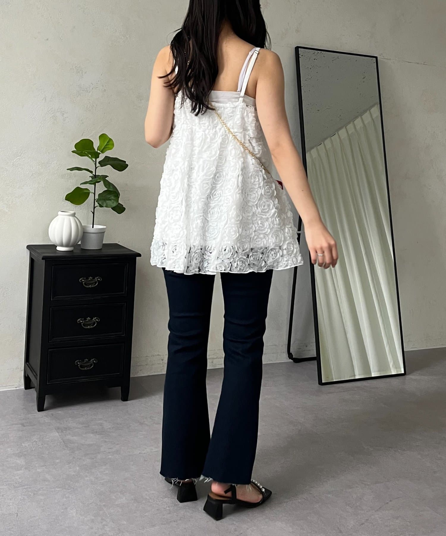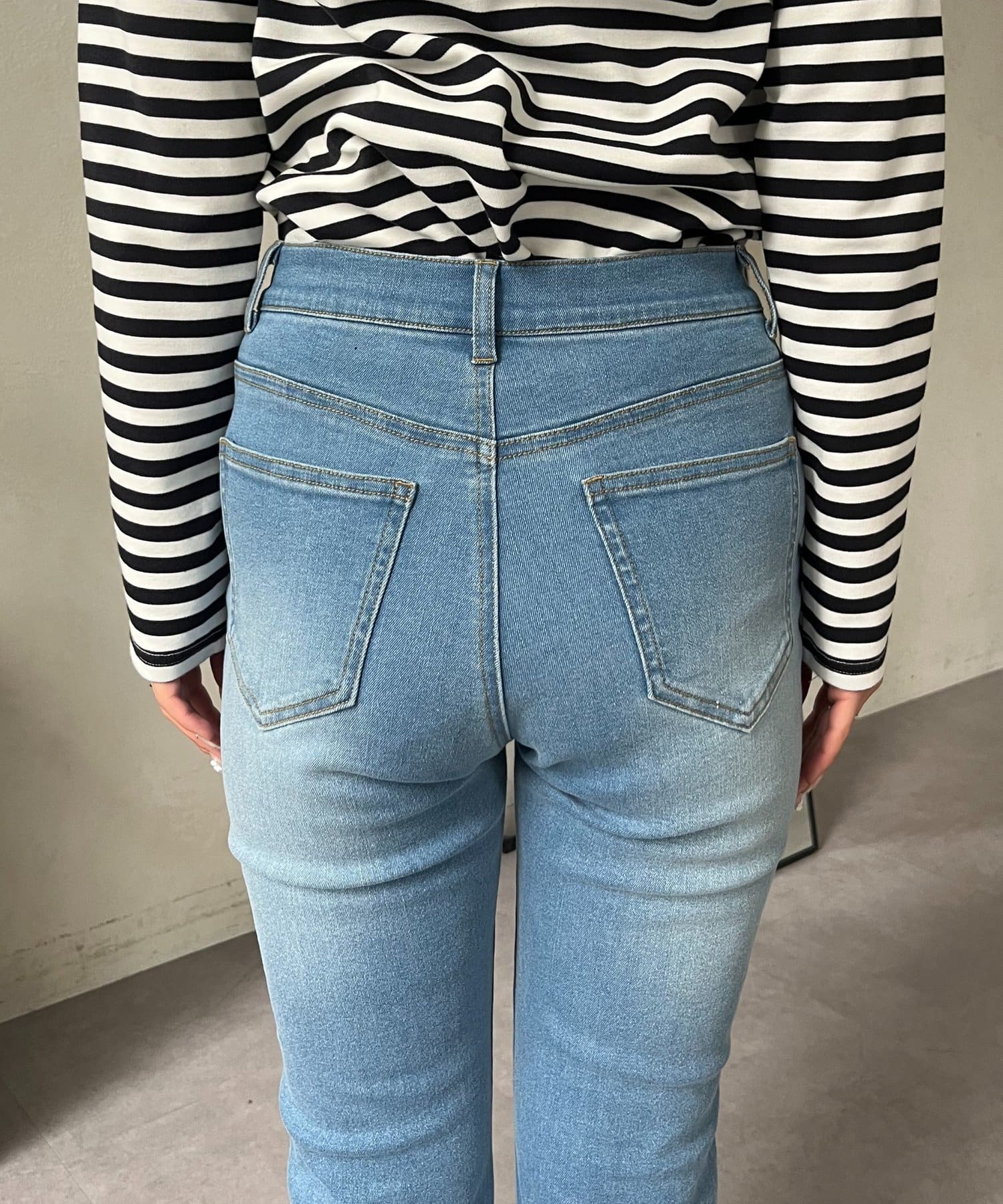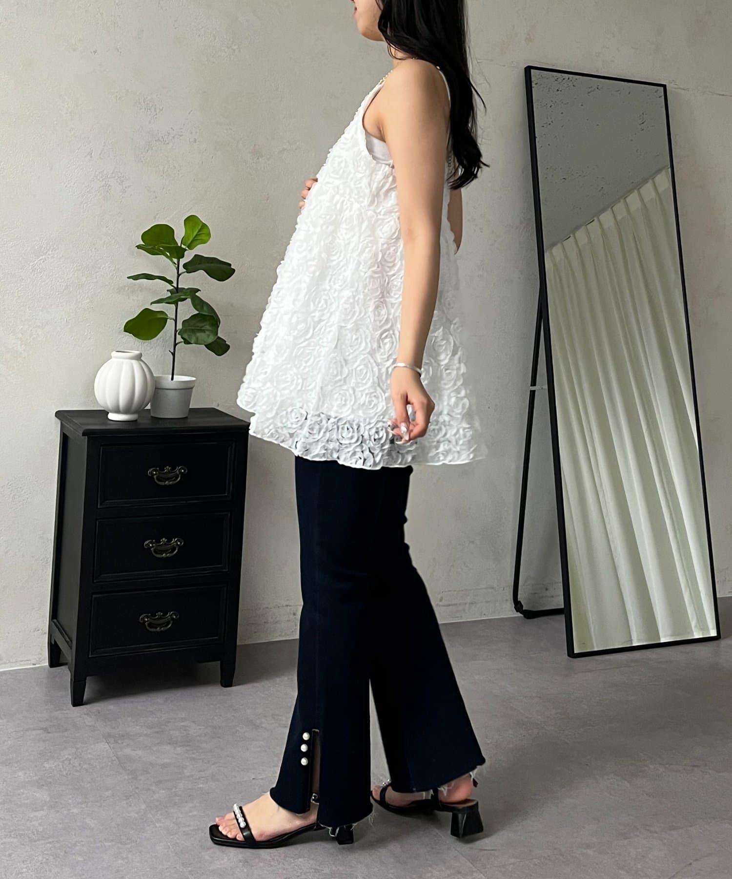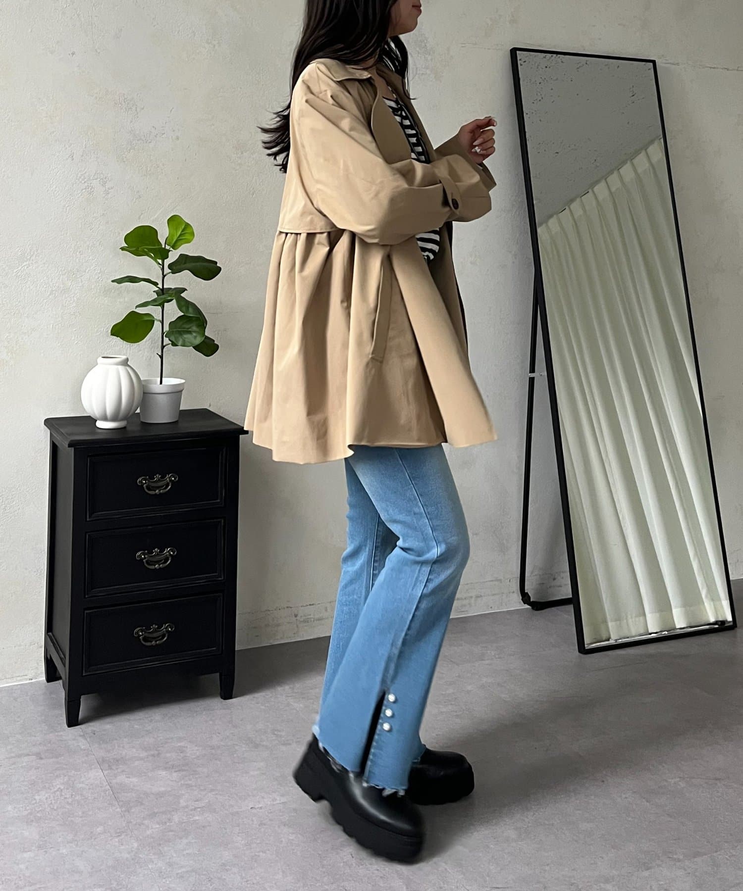 • prose verse(プロズヴェール) パール付きサイドスリットフレアデニムパンツ