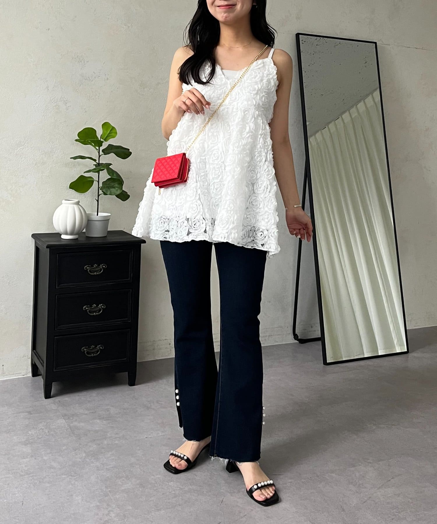 TOP > prose verse > レディース > パンツ > デニムパンツ > パール付きサイドスリットフレアデニムパンツ