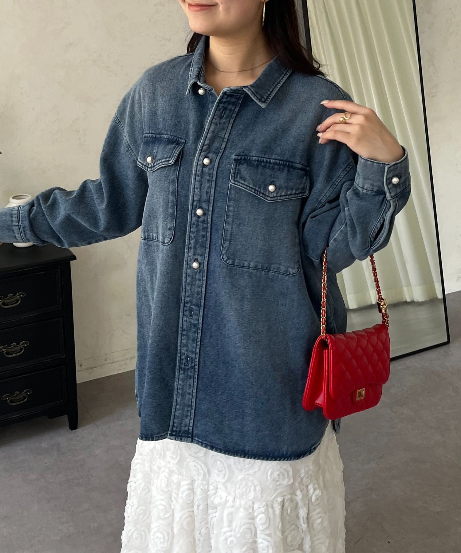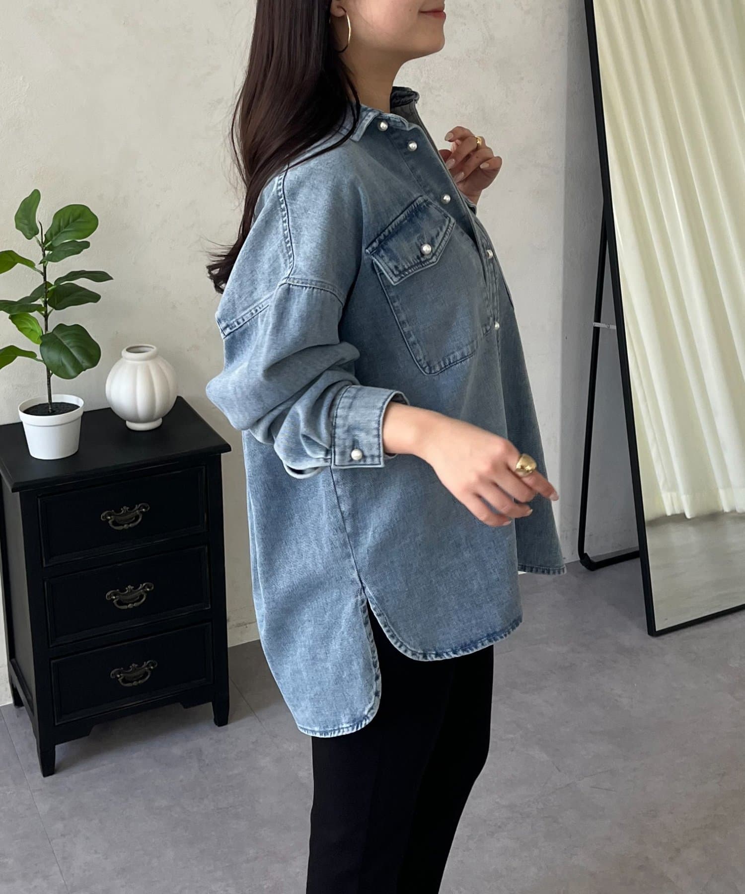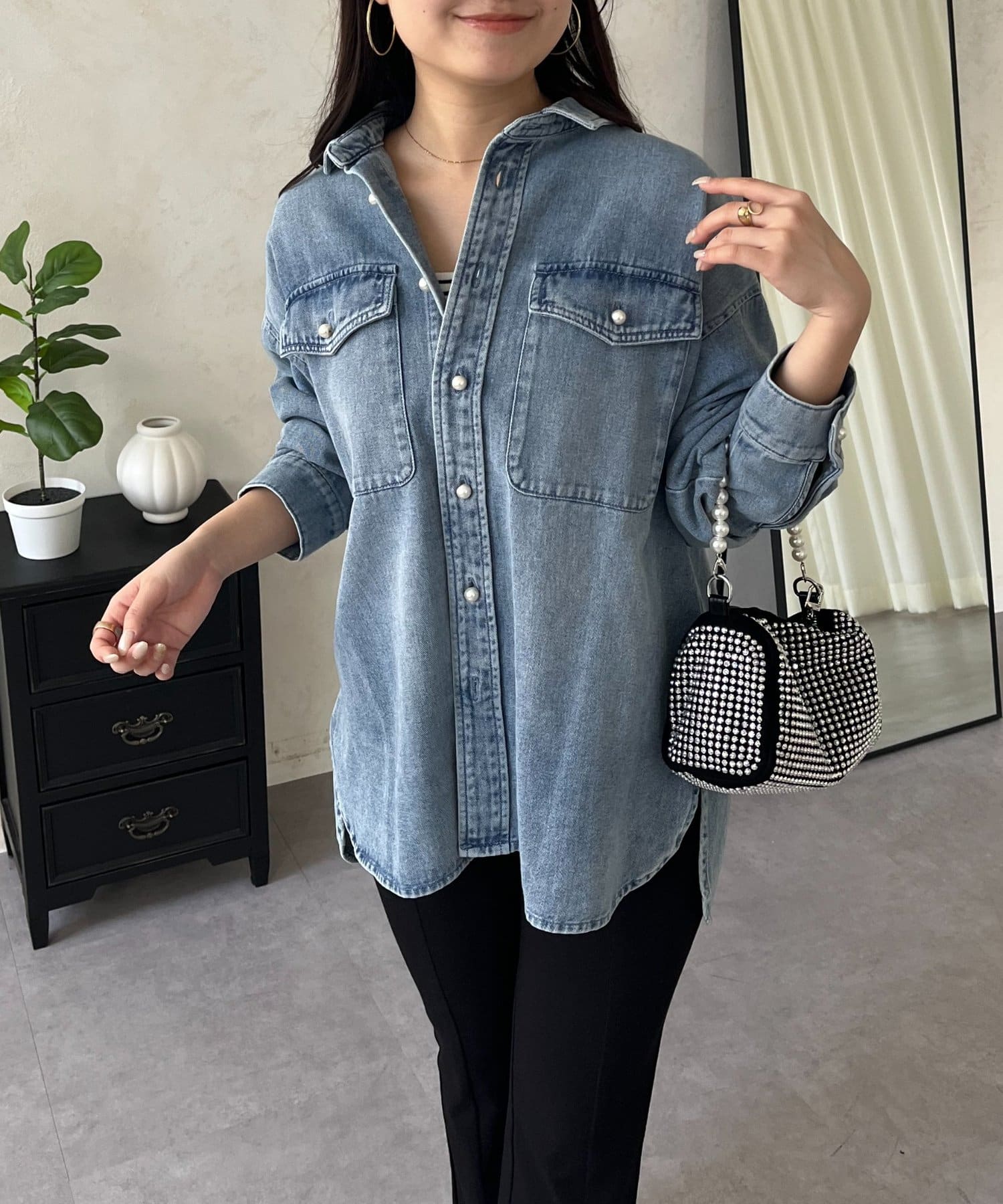 TOP > prose verse > レディース > トップス > シャツ/ブラウス(ボタン) > パールボタンオーバーサイズデニムシャツ