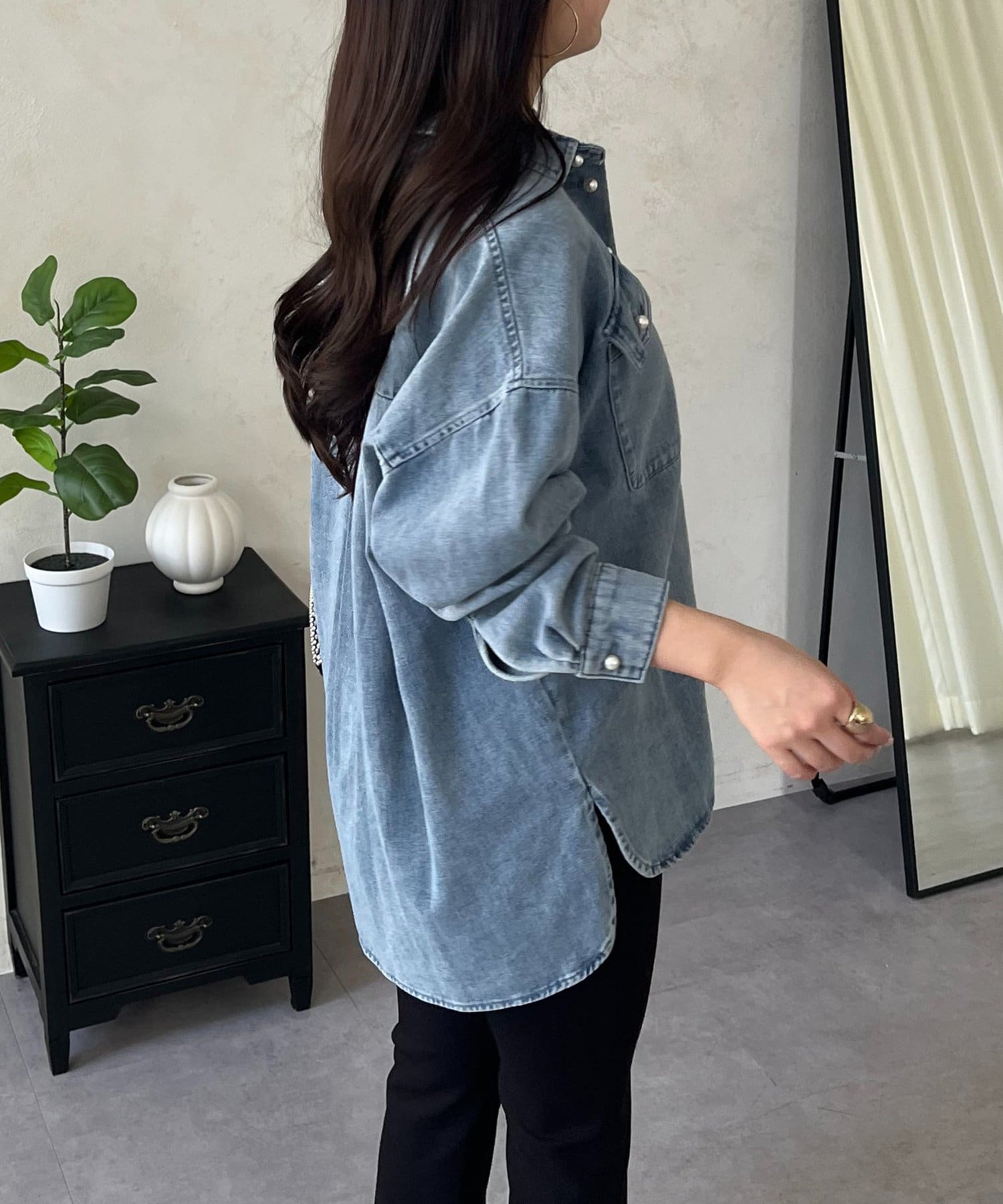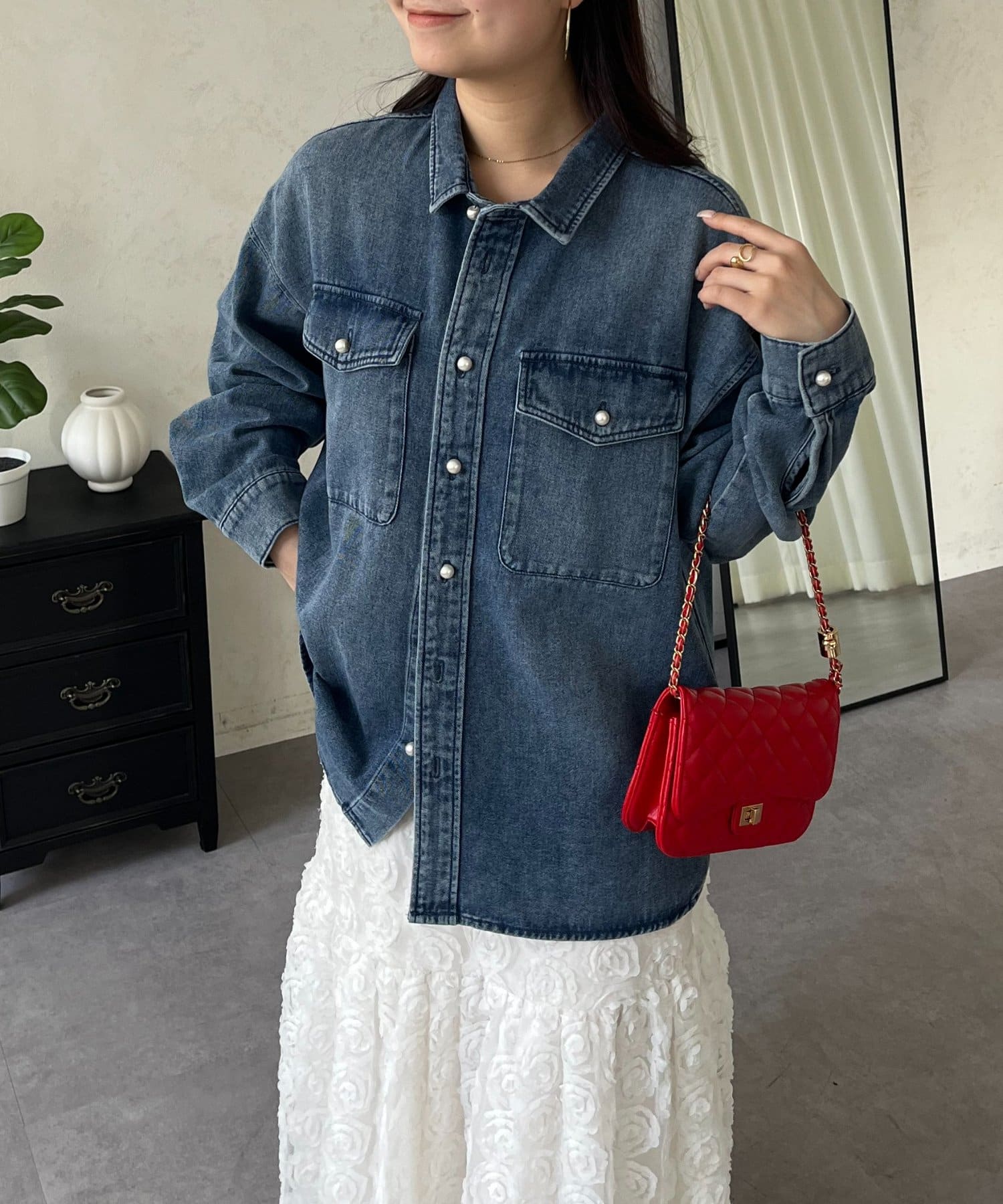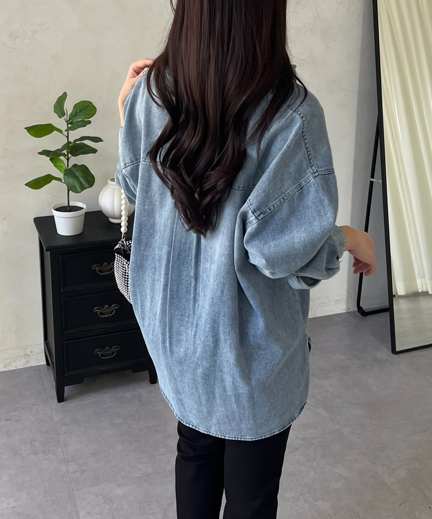 TOP > prose verse > レディース > トップス > シャツ/ブラウス(ボタン) > パールボタンオーバーサイズデニムシャツ