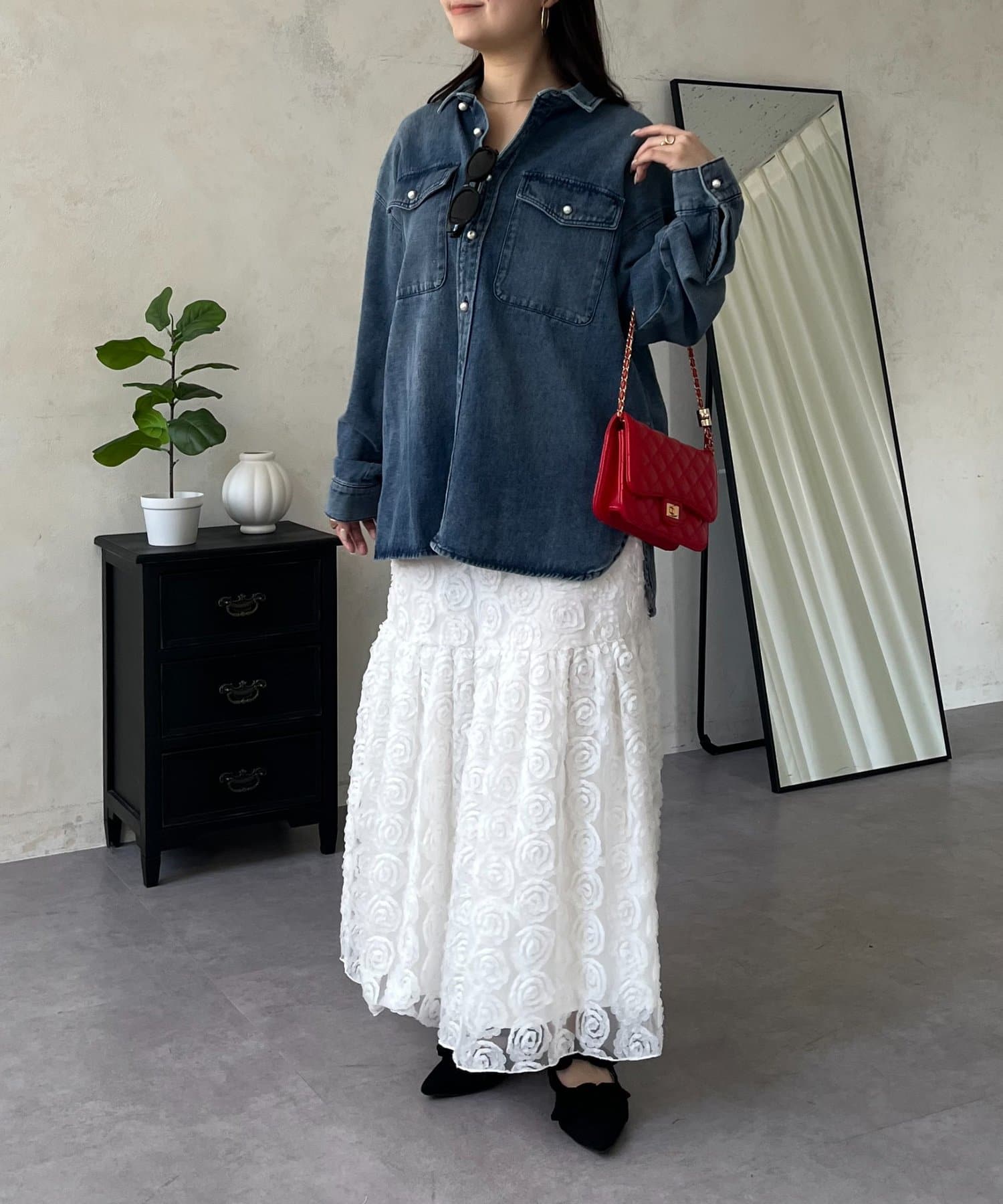 ●軽くしなやかな素材なのでカジュアル過ぎず、レディーライクな雰囲気でデニムを楽しめます!
