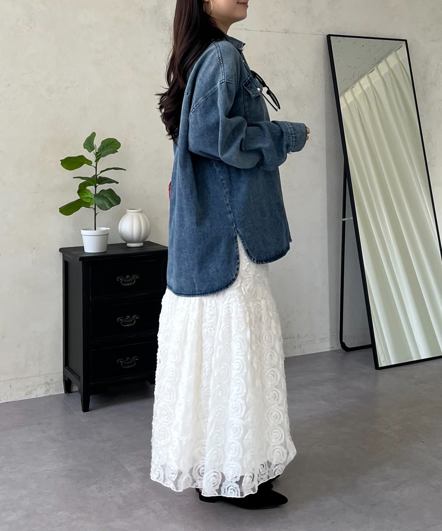 • prose verse(プロズヴェール) パールボタンオーバーサイズデニムシャツ
