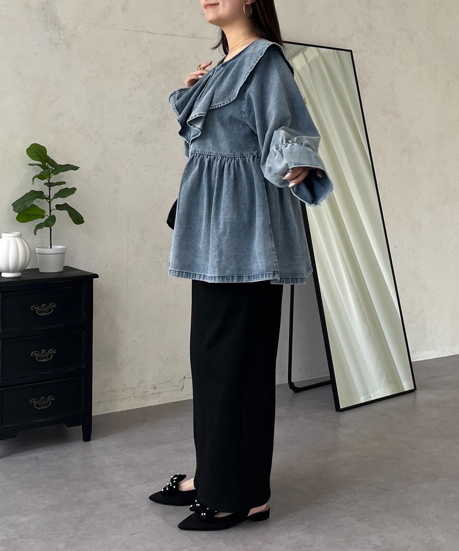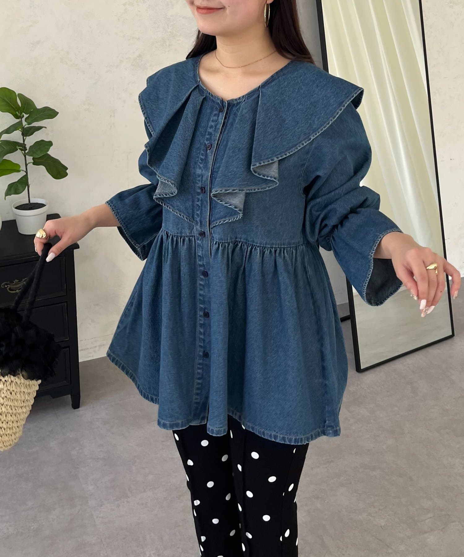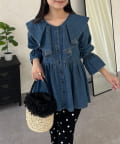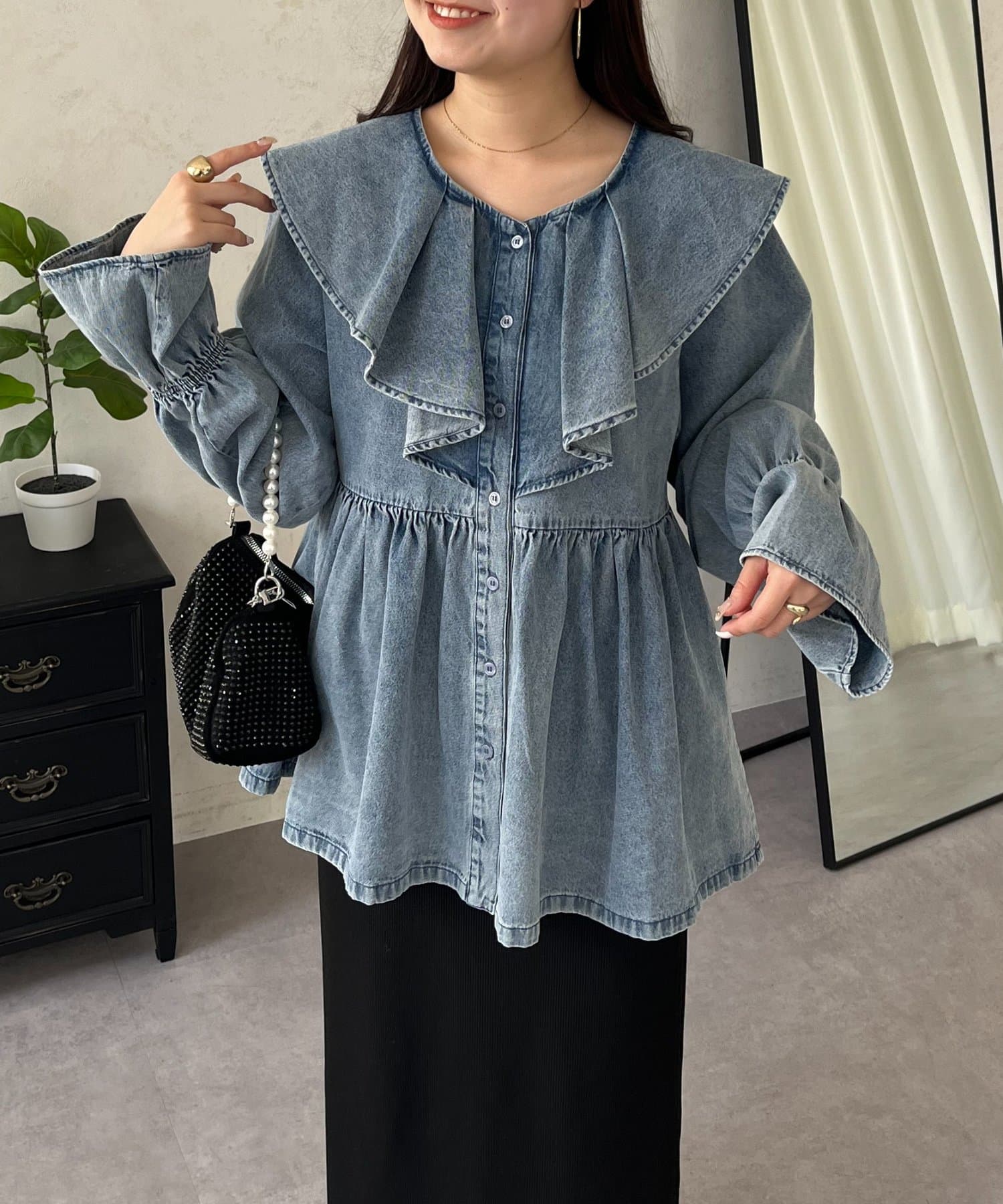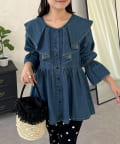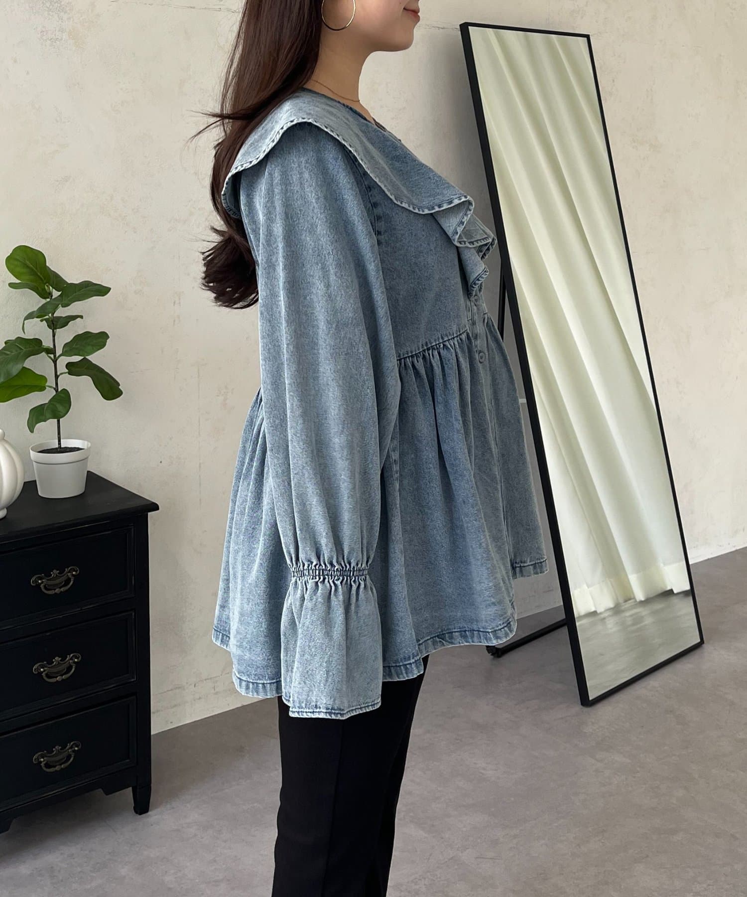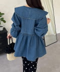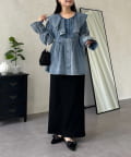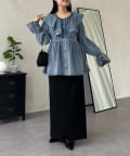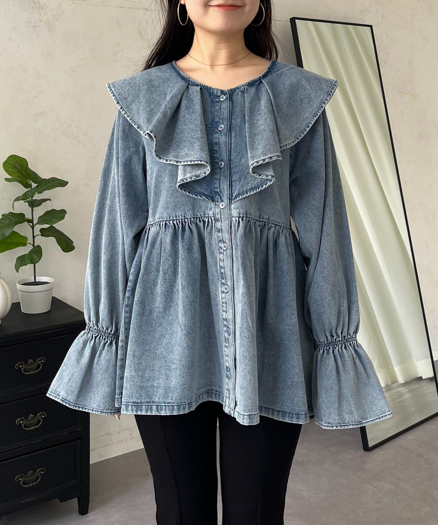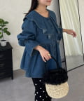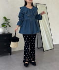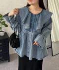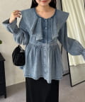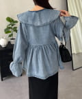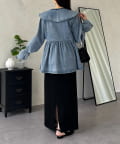 フリルペプラムデニムブラウス