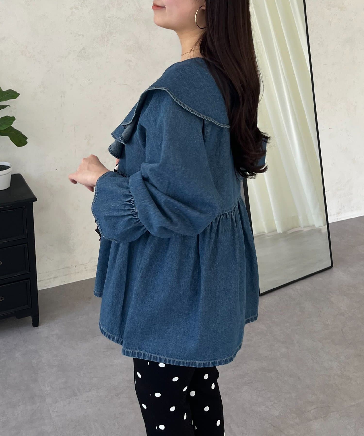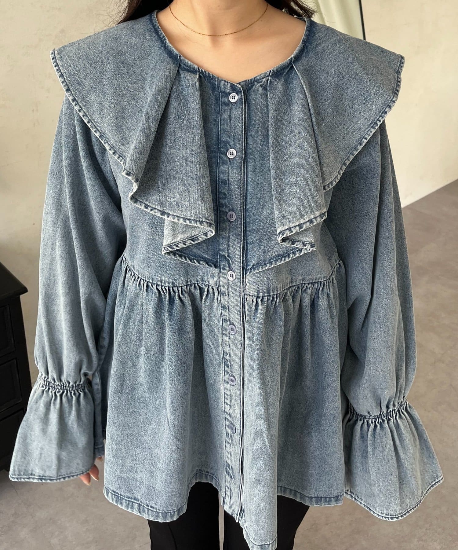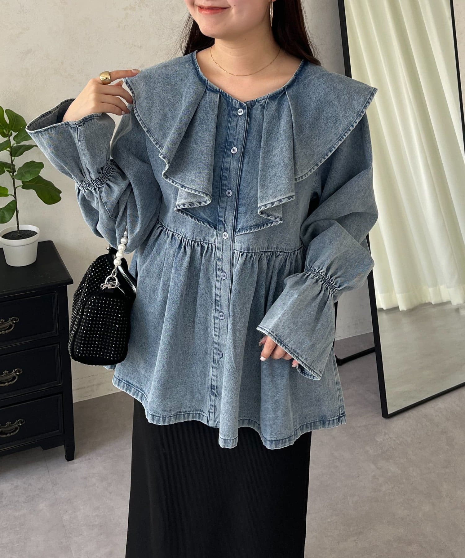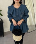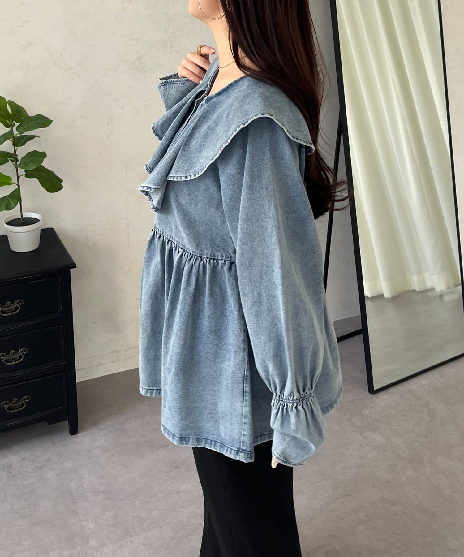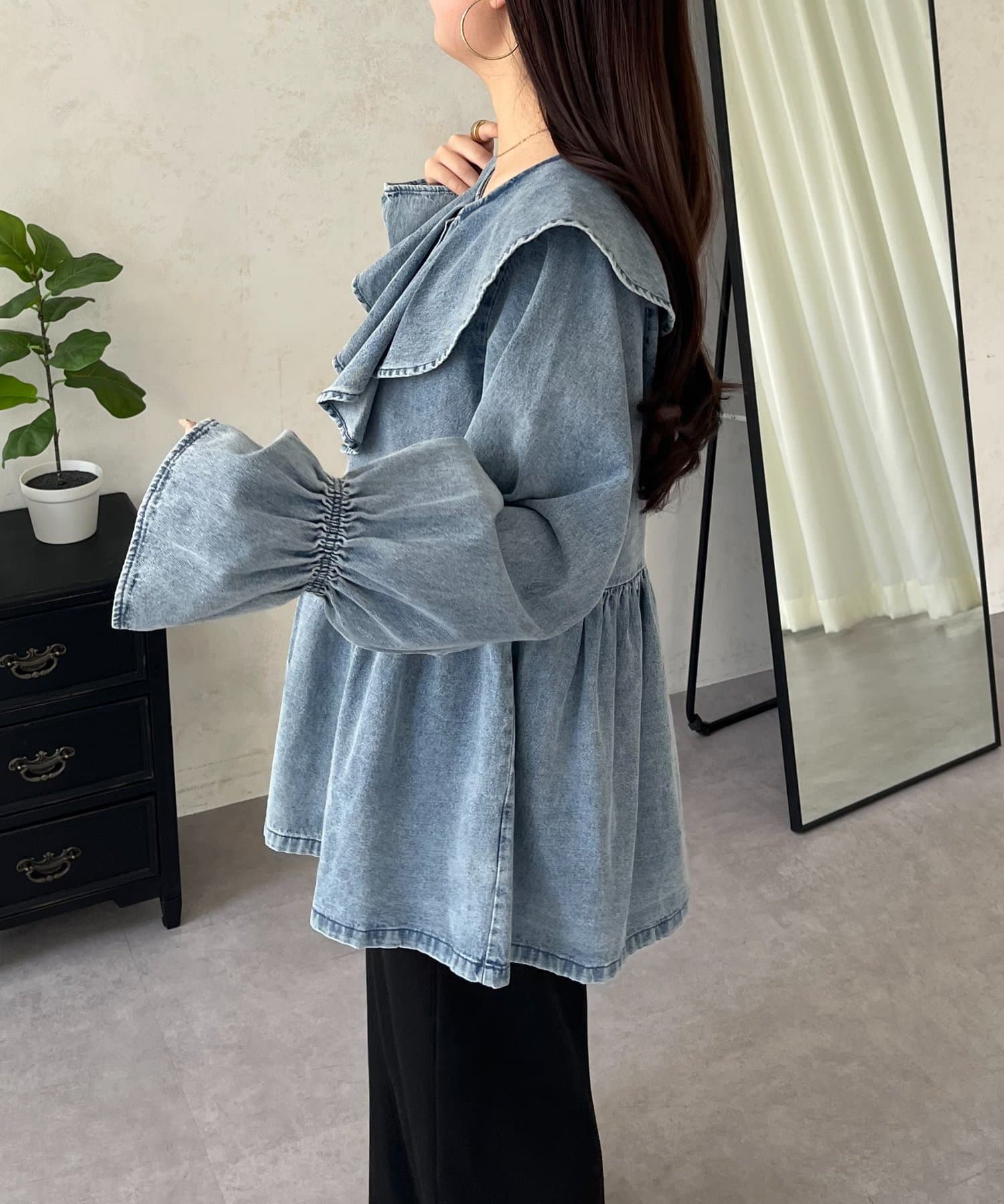 フリルペプラムデニムブラウス
