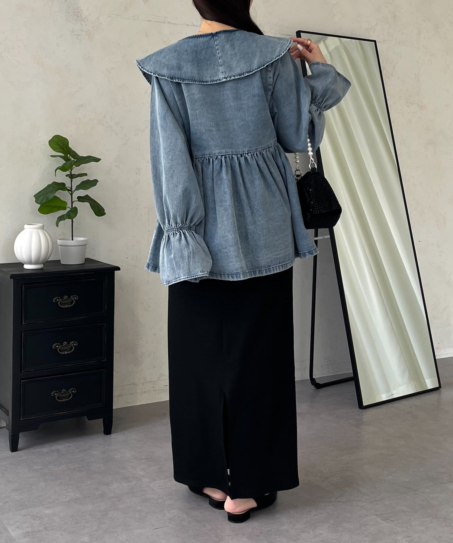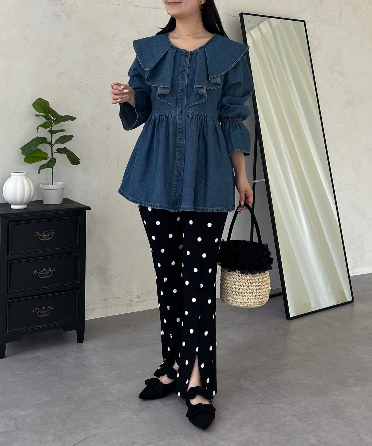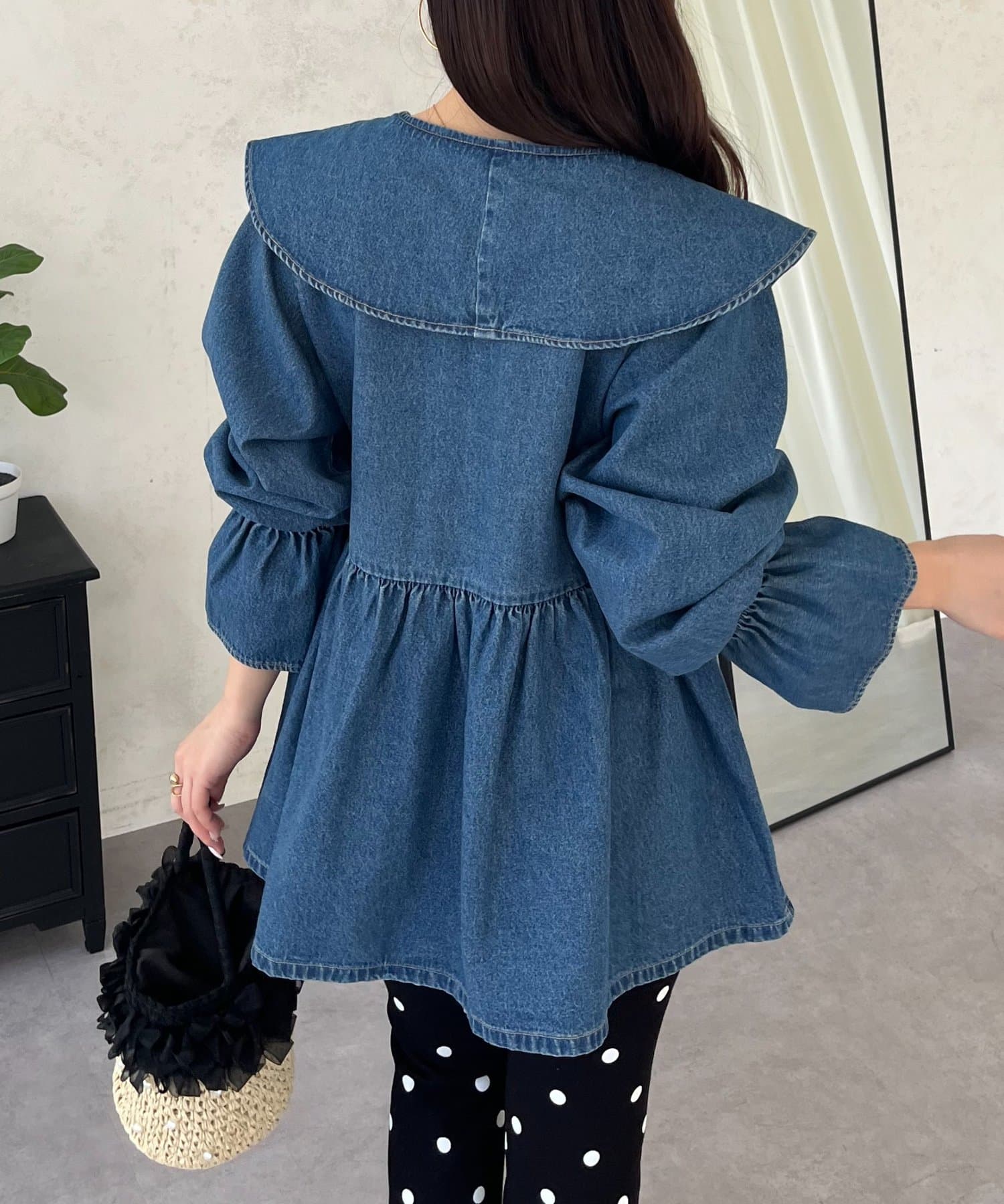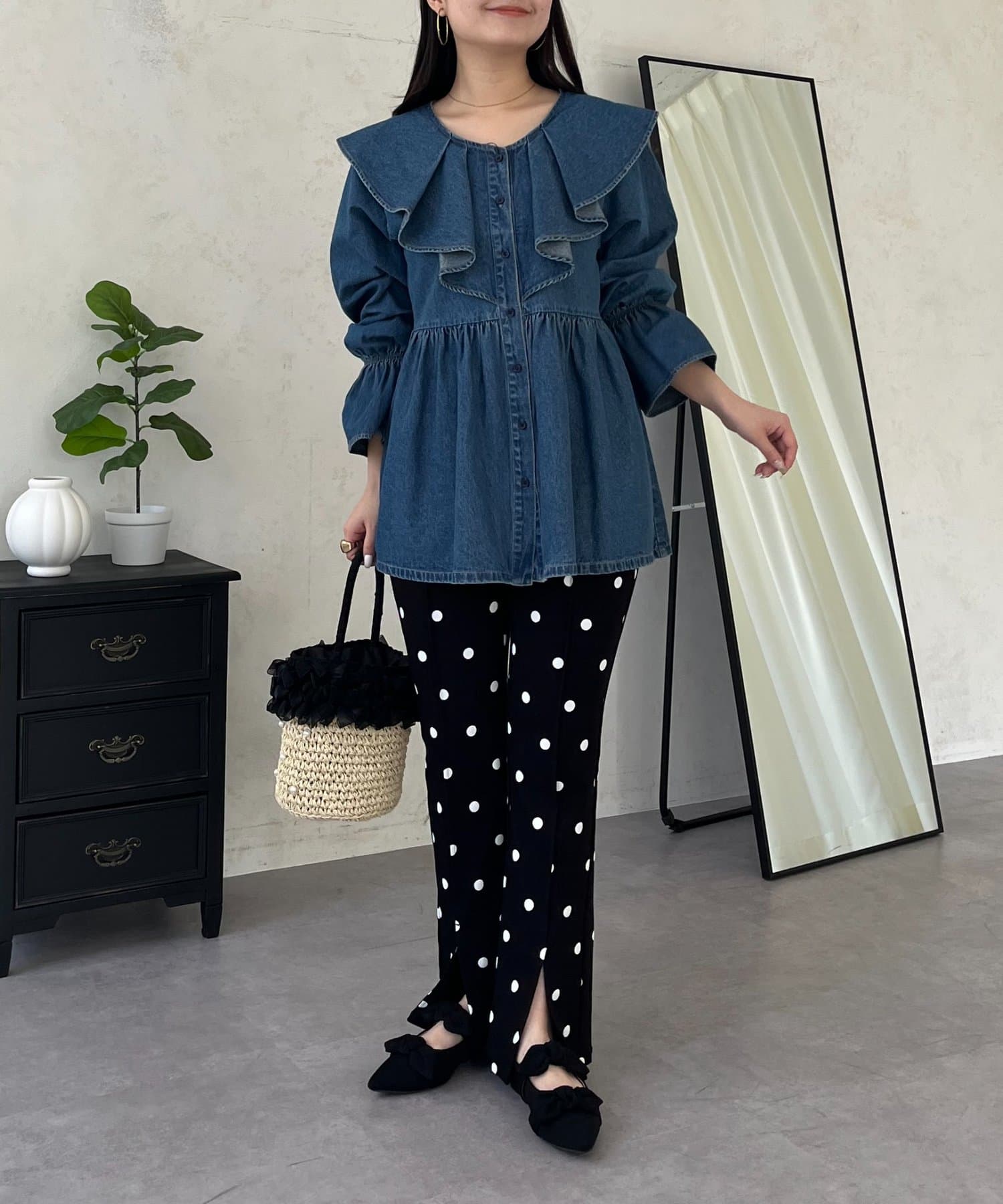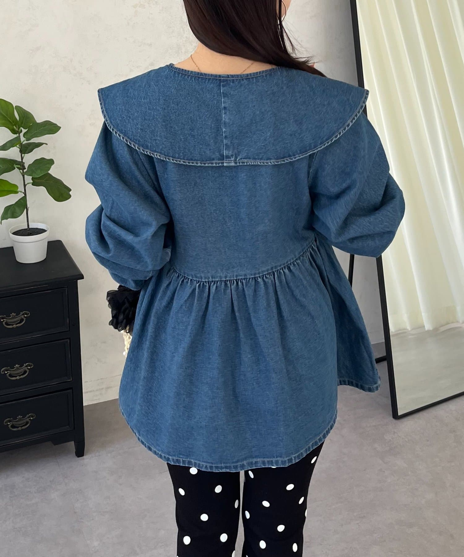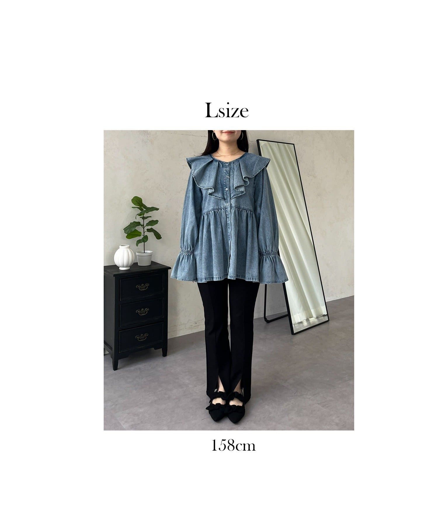 フリルペプラムデニムブラウス