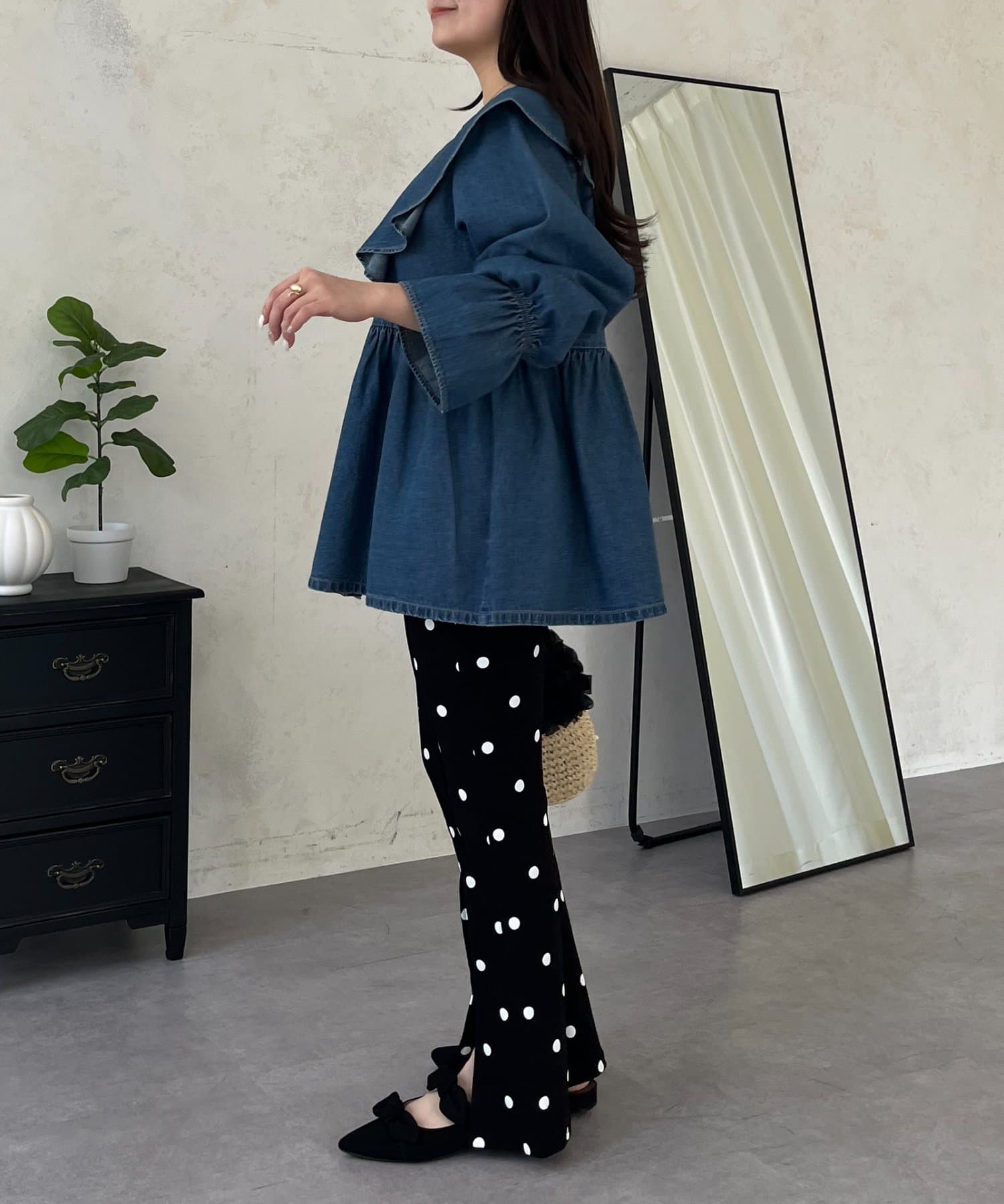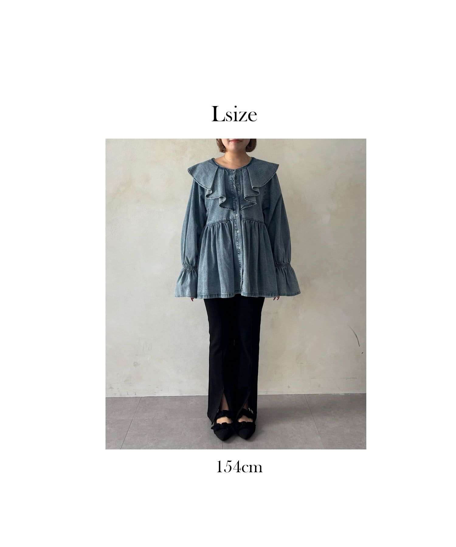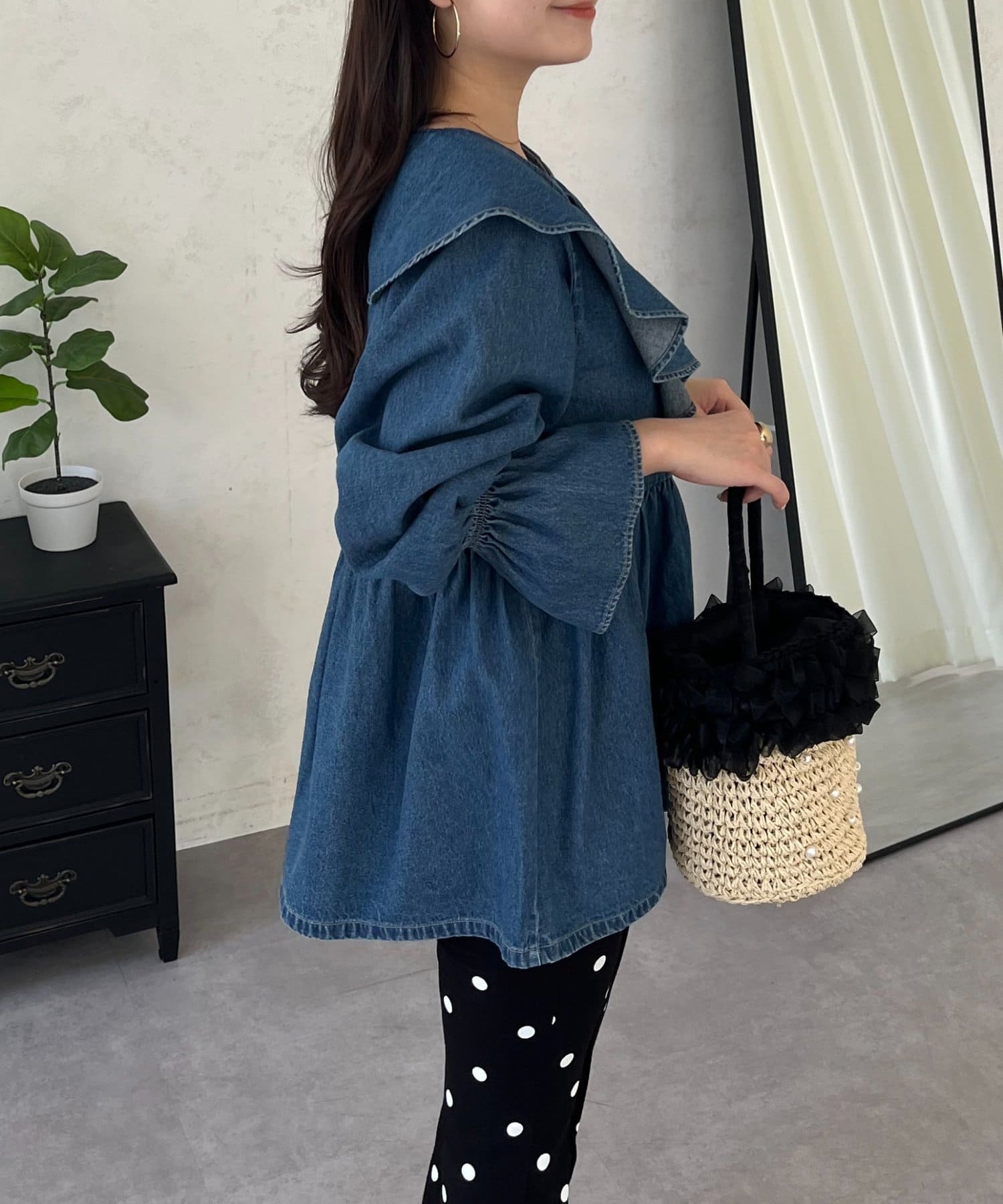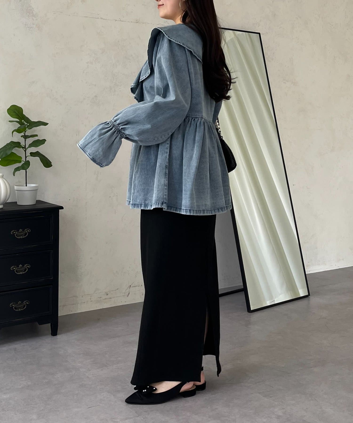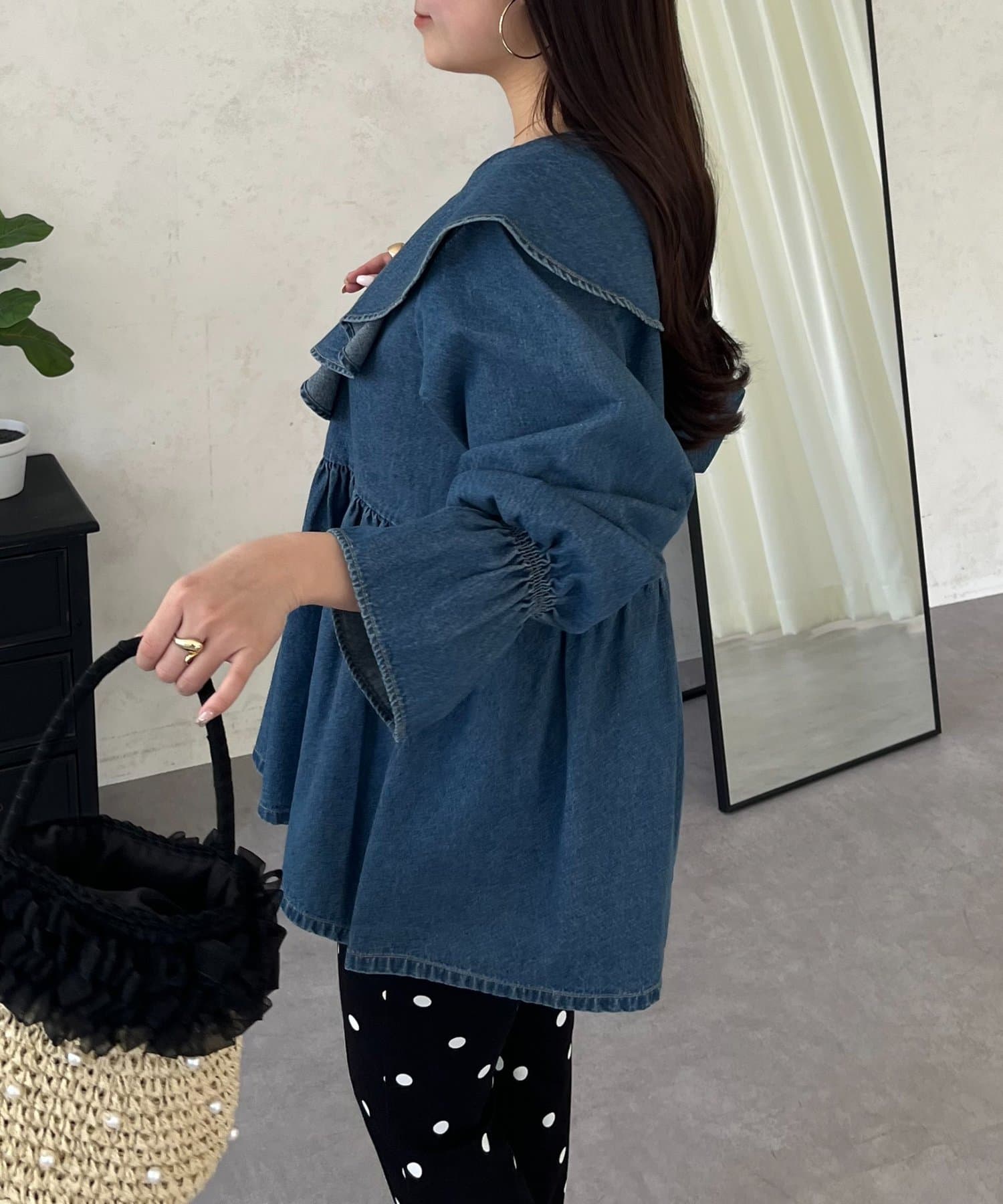 フリルペプラムデニムブラウス