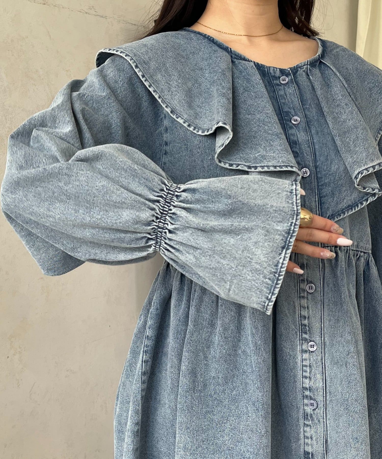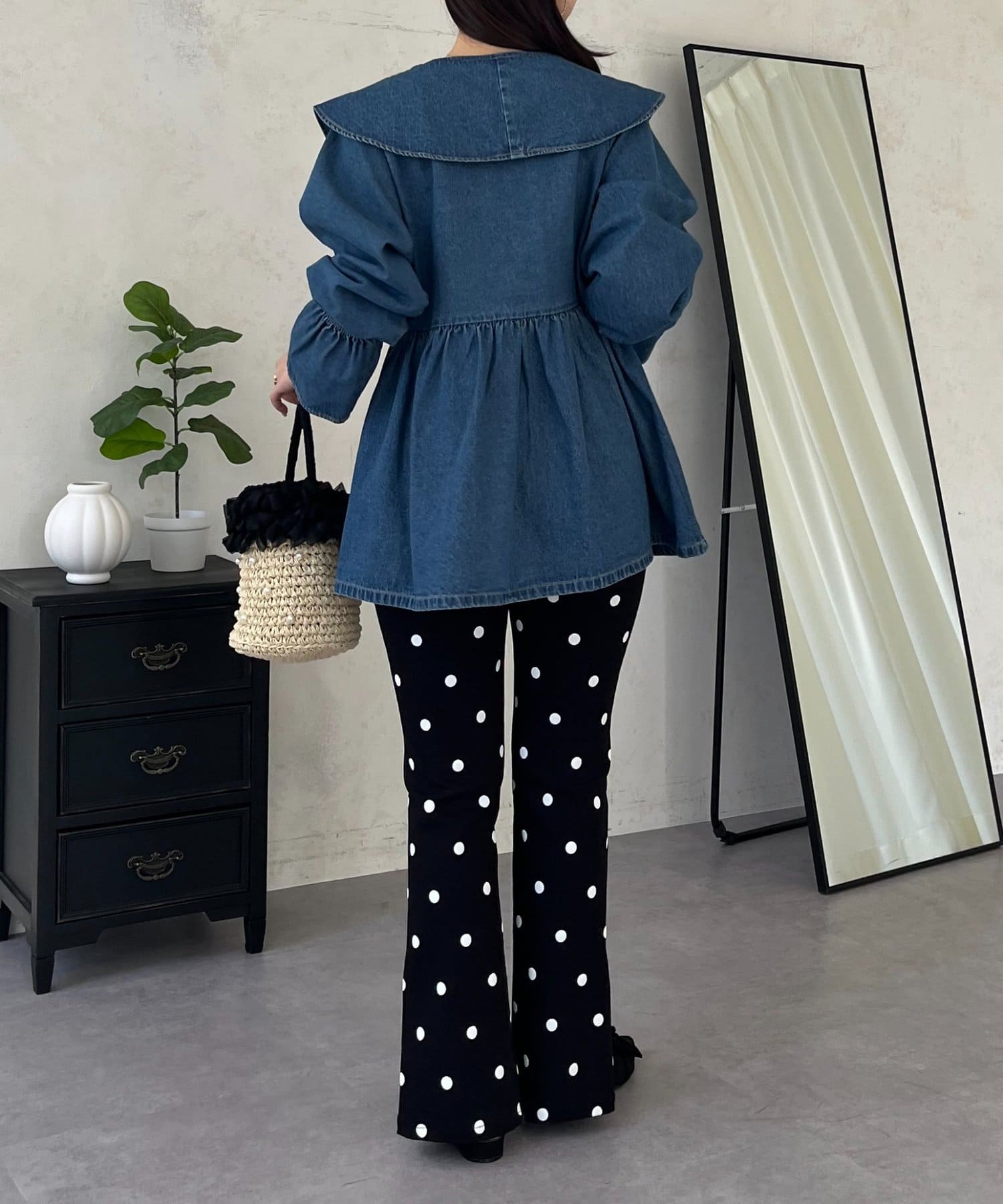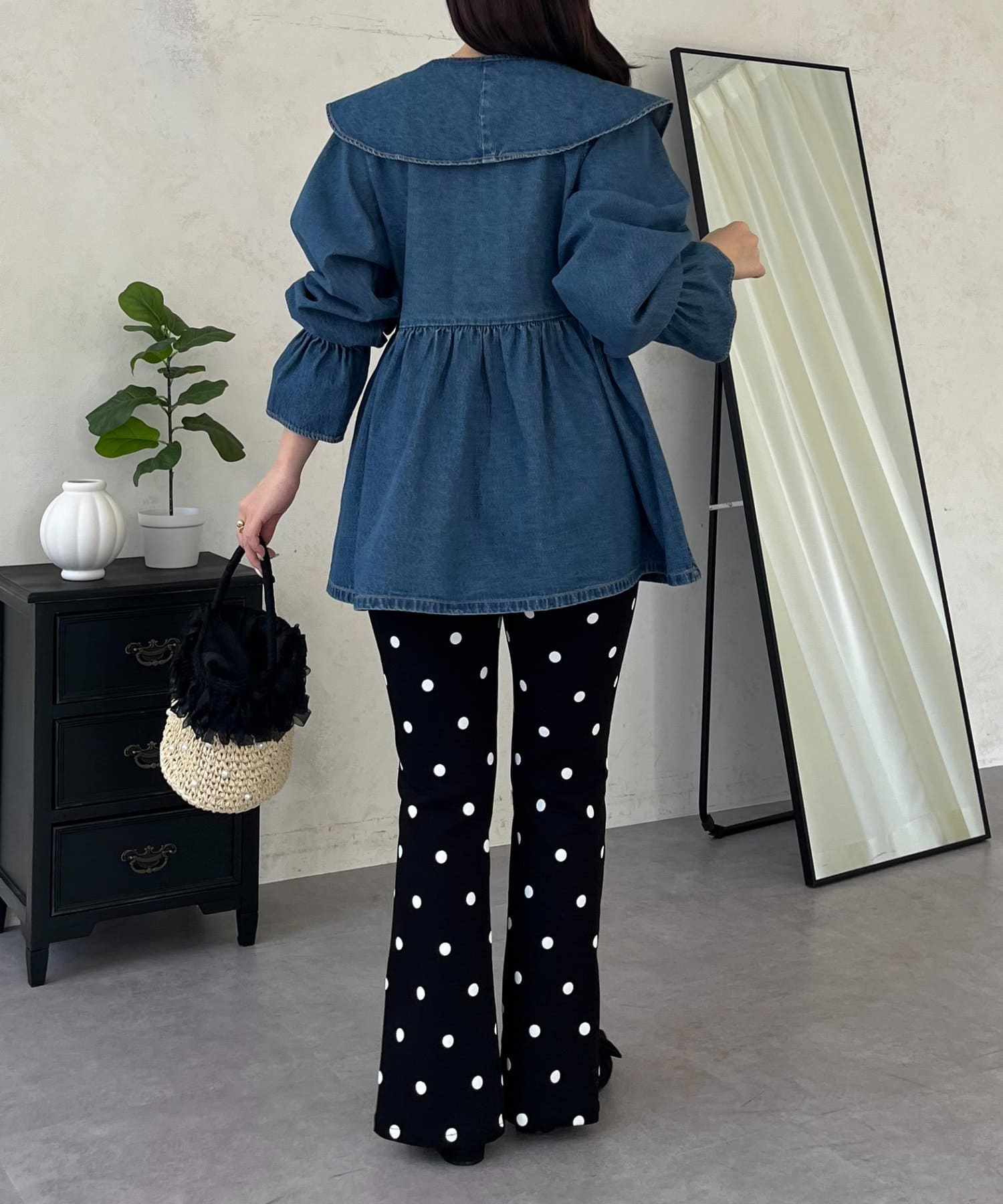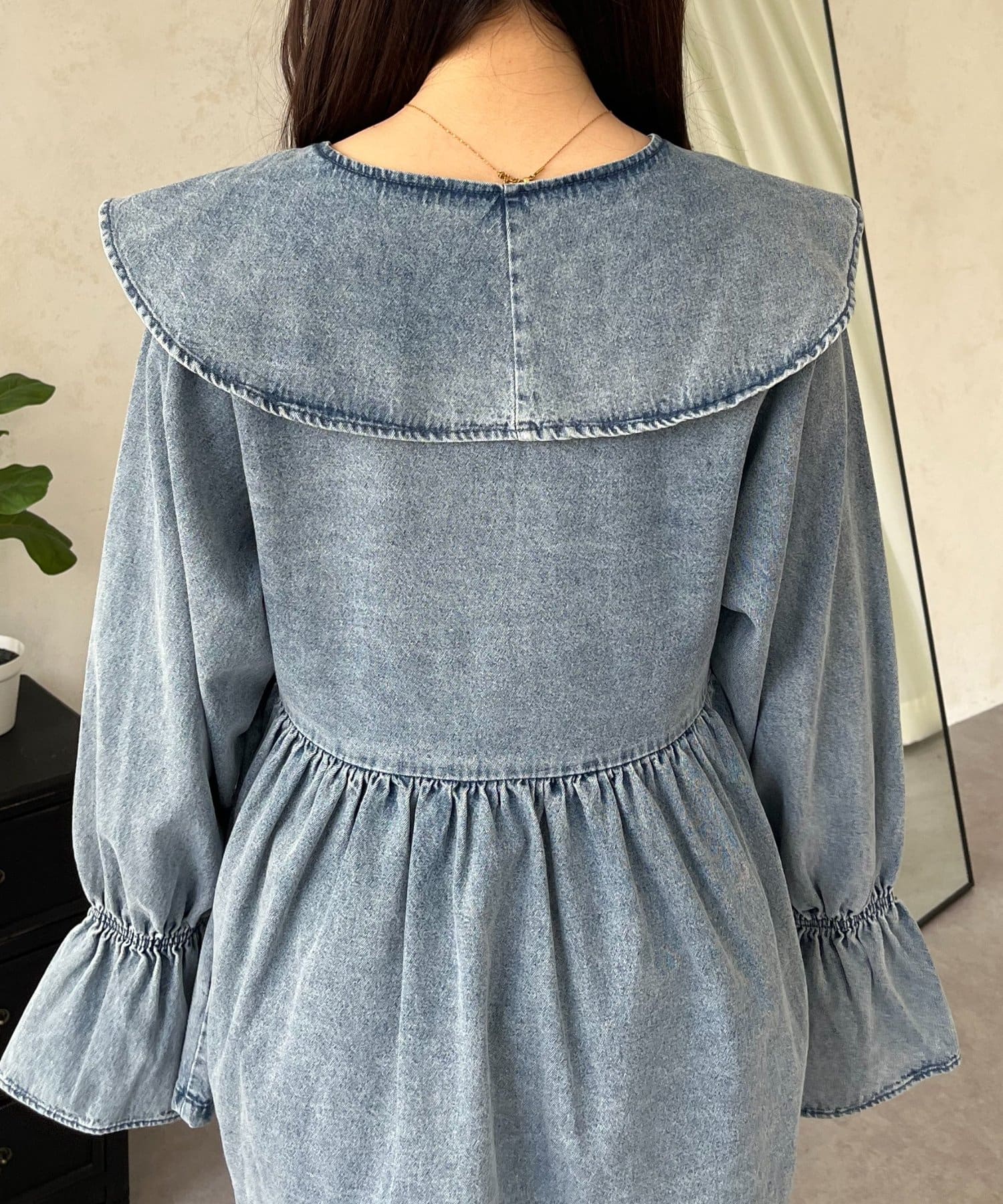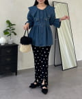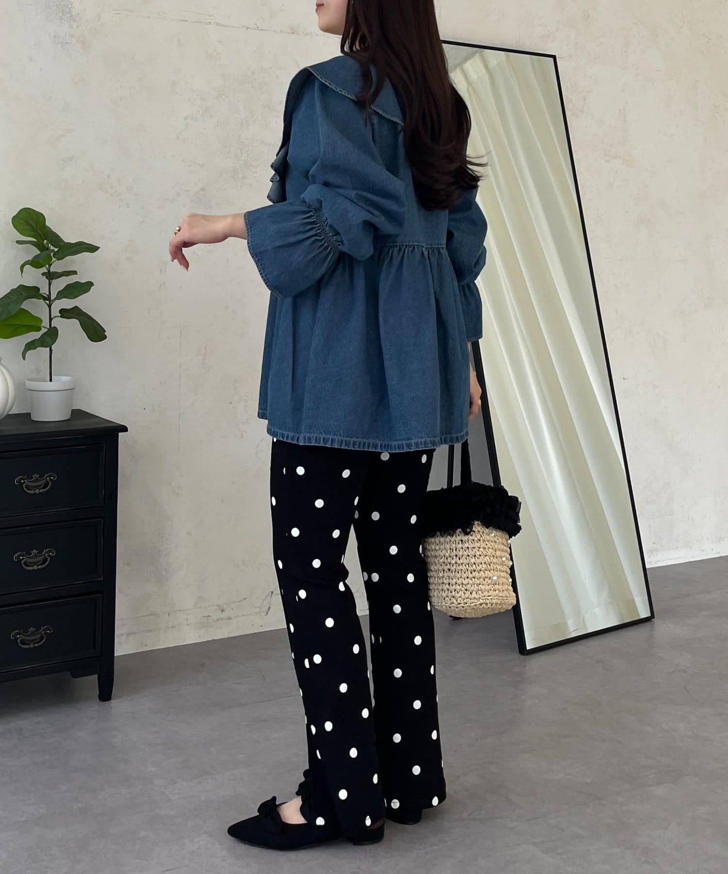 フリルペプラムデニムブラウス