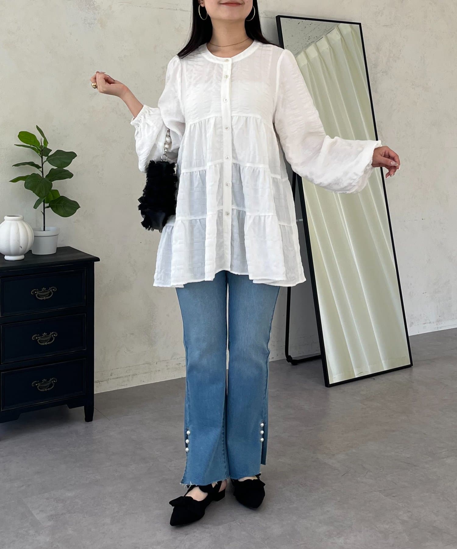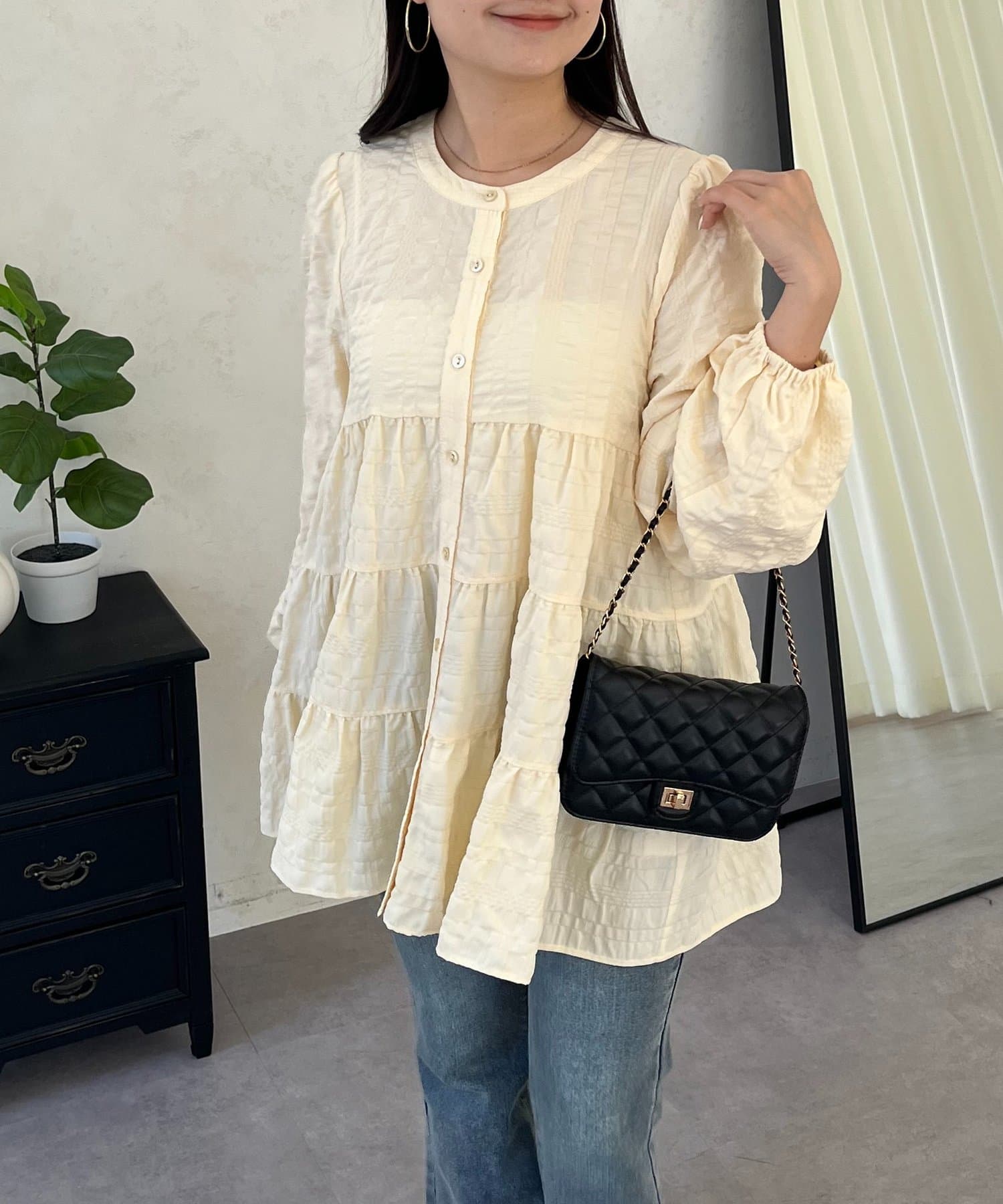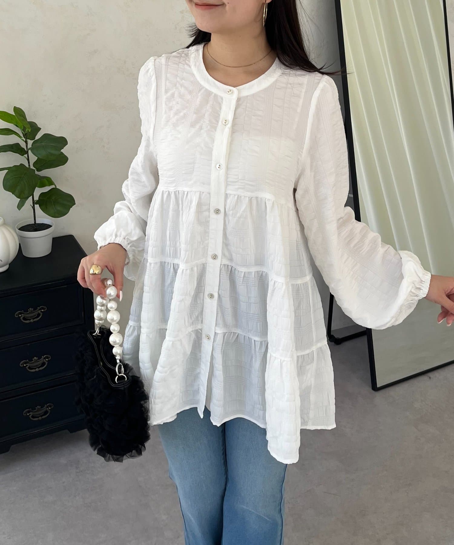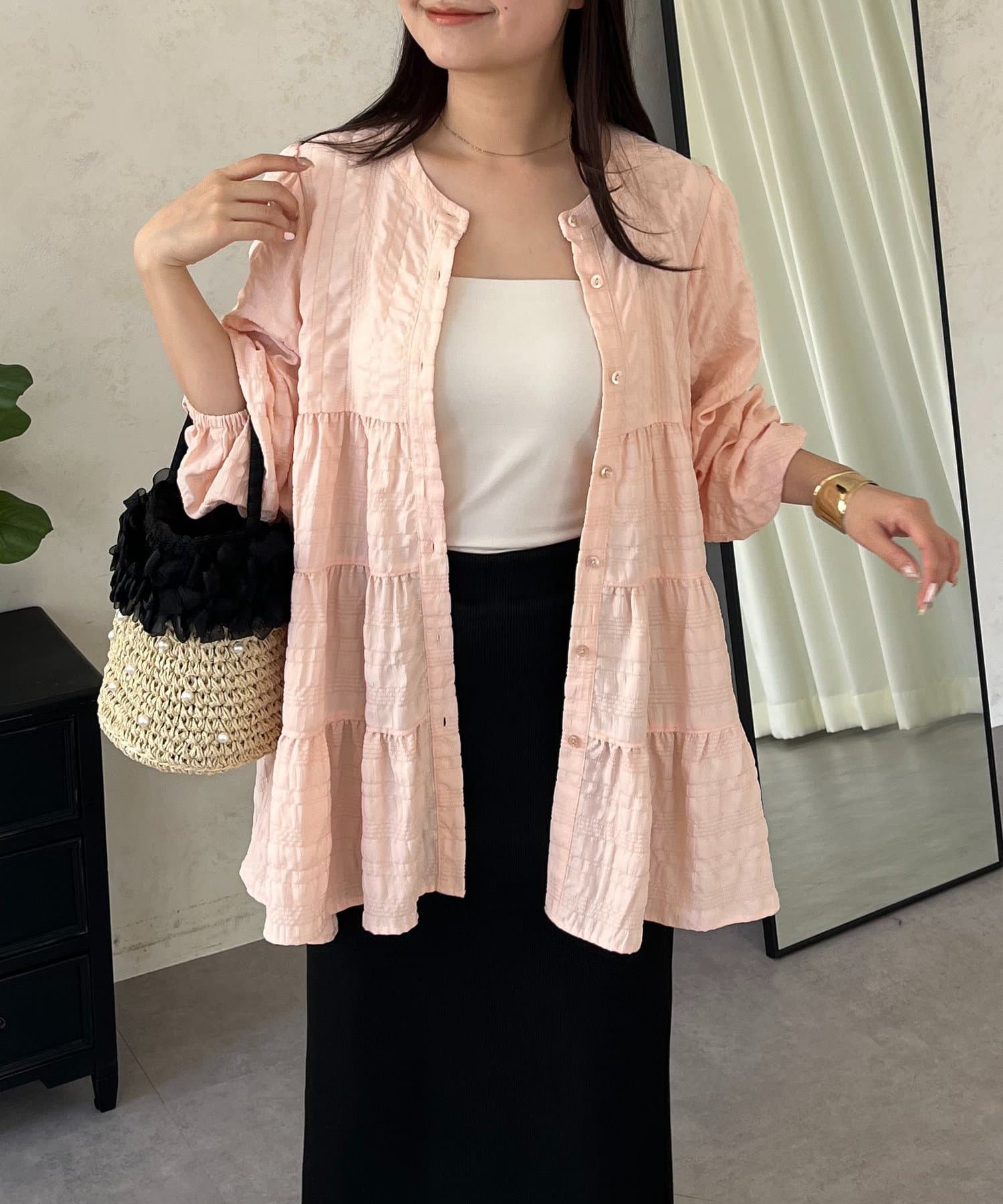 ●ブラウスとしても、羽織リとしても着こなせる、着回し力に優れた1着。