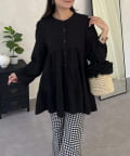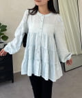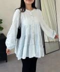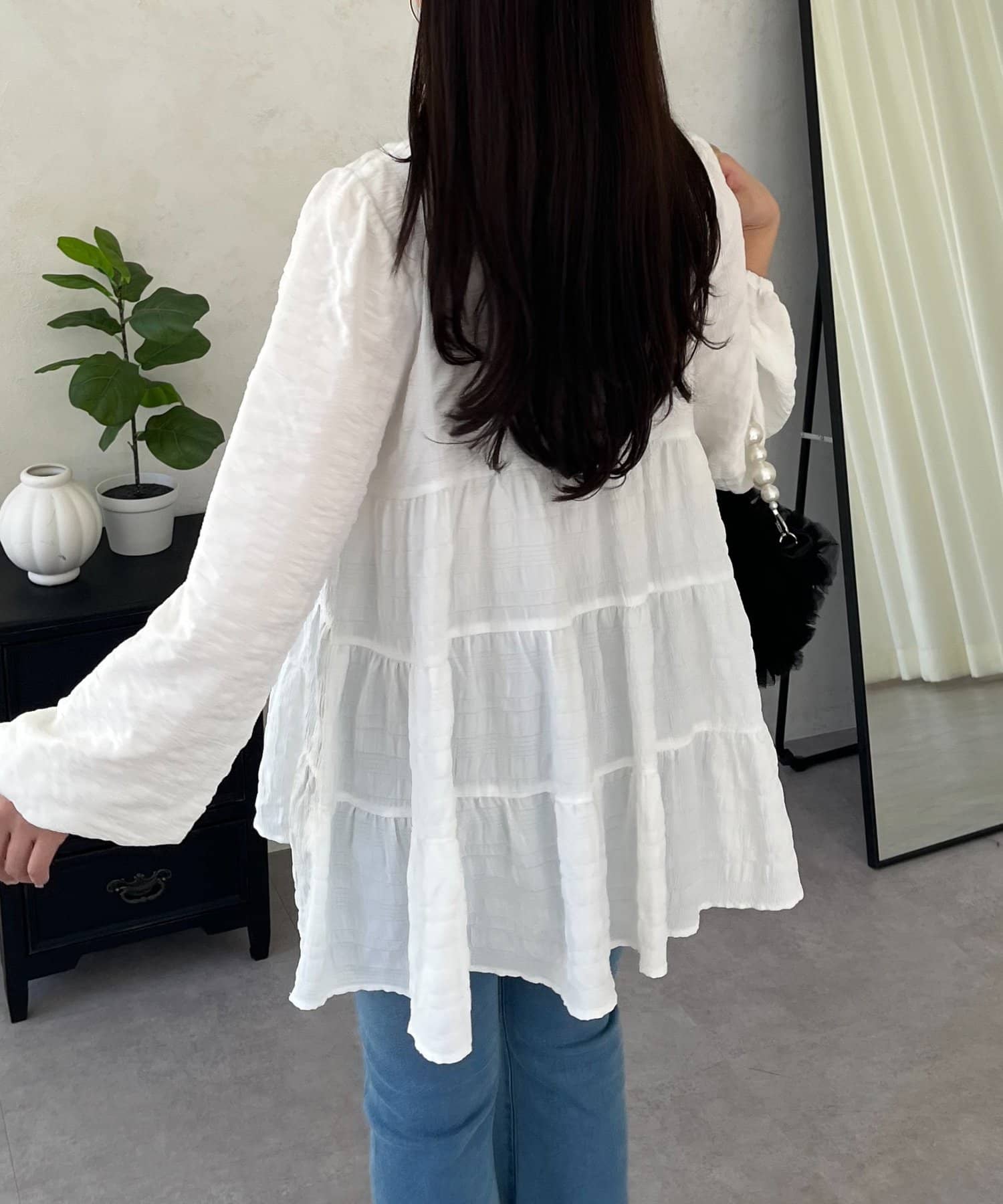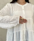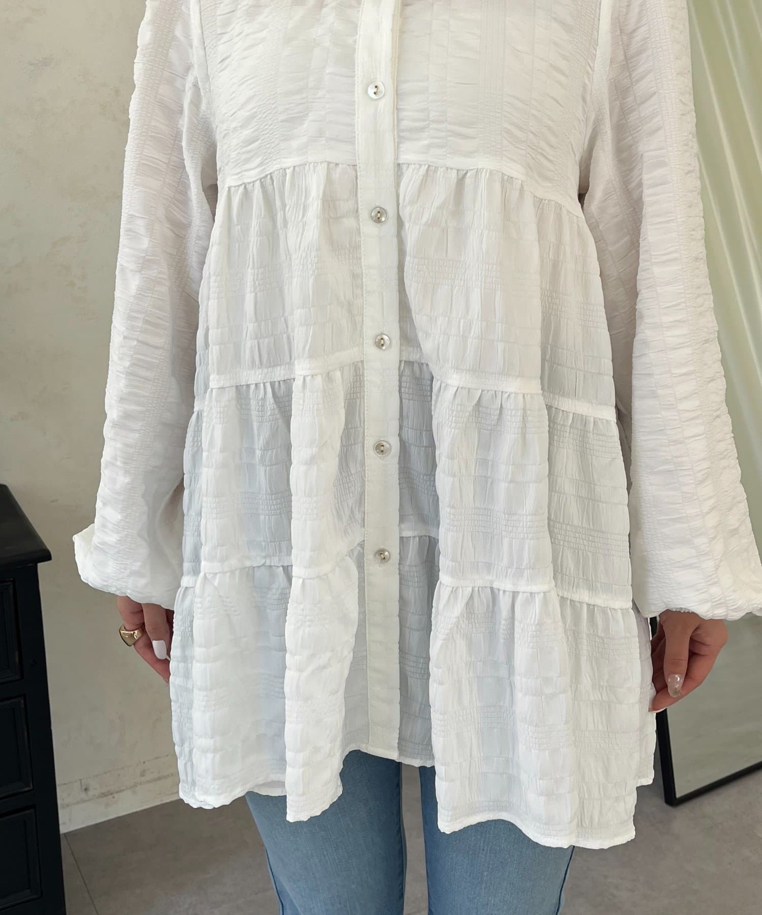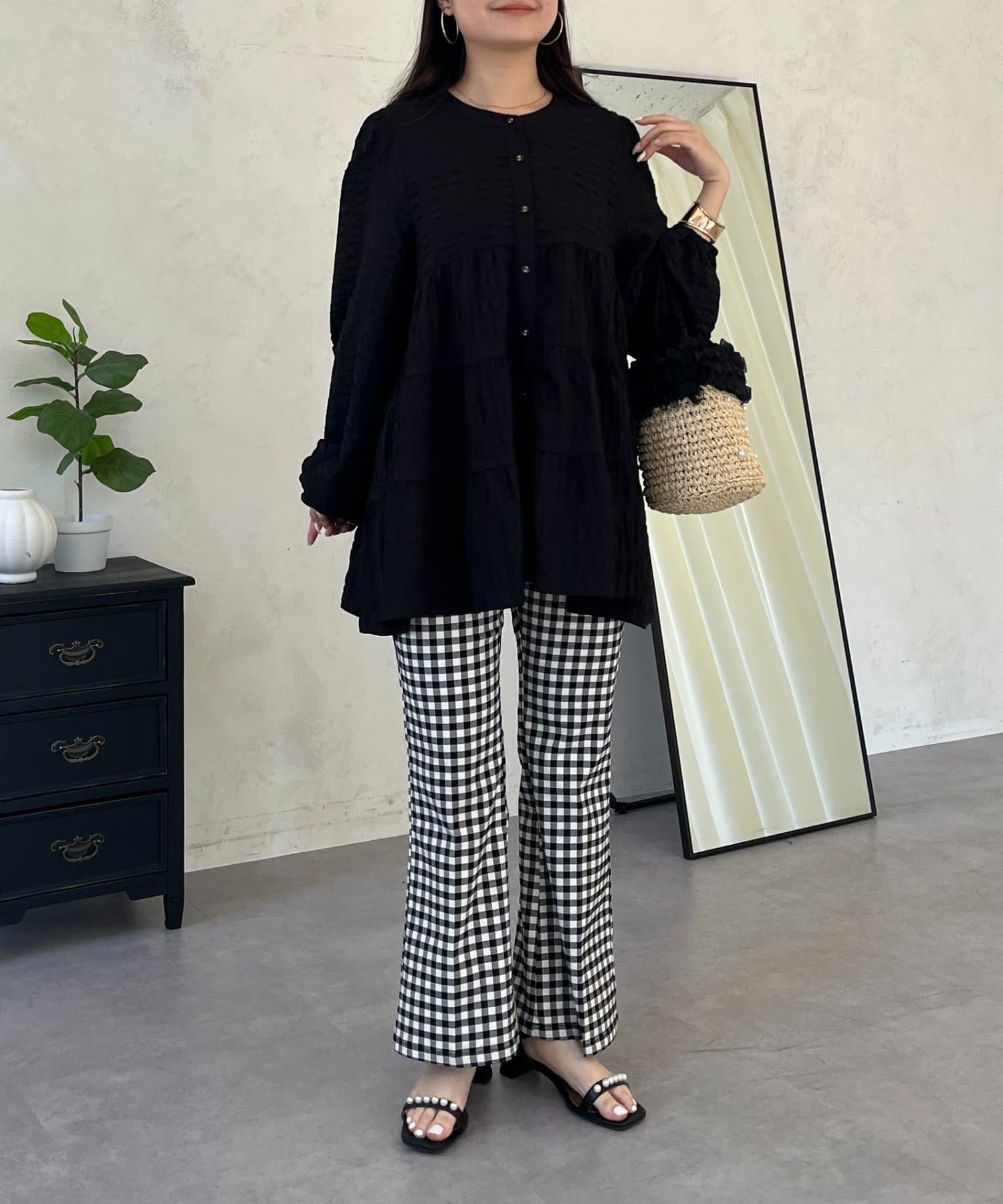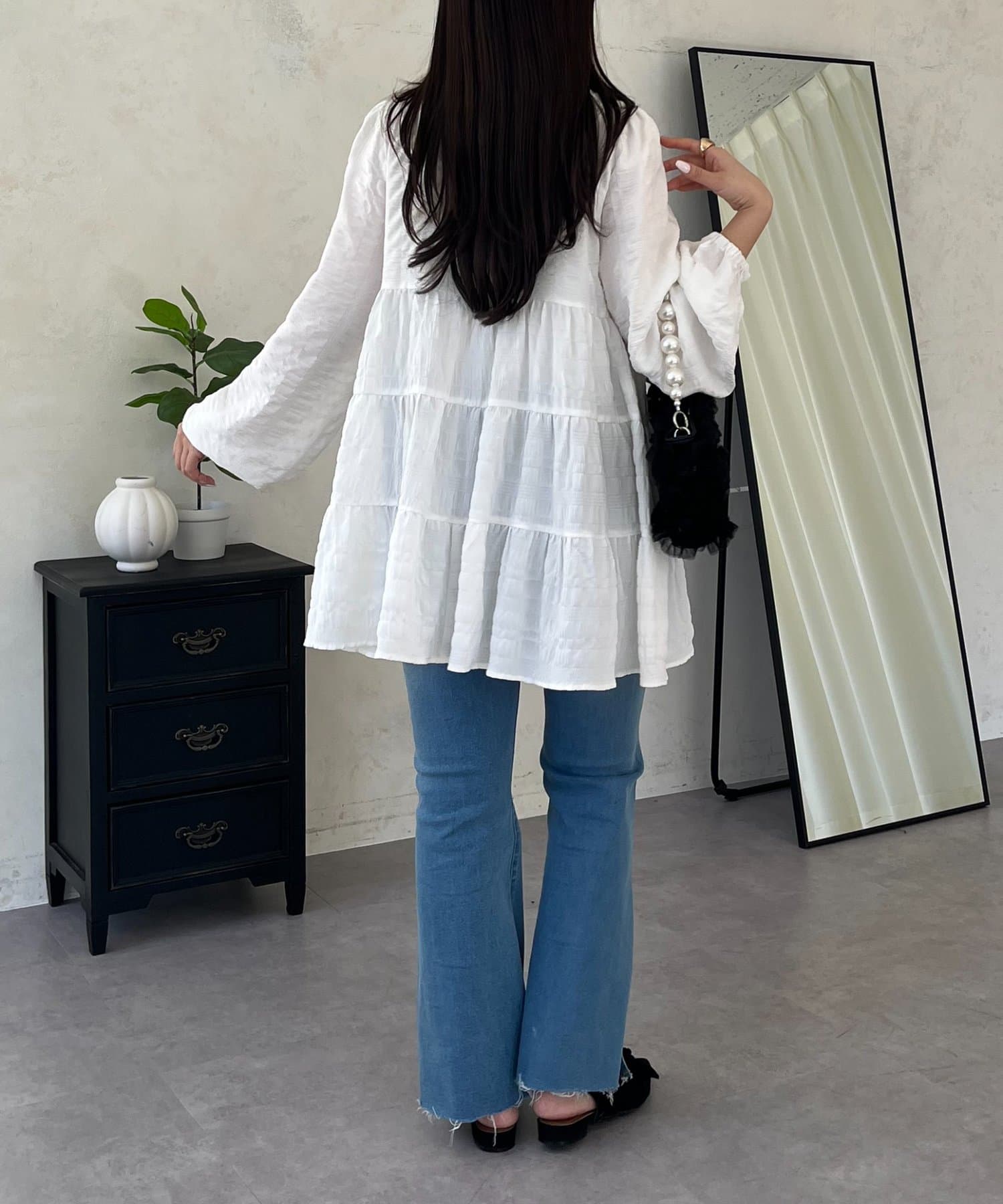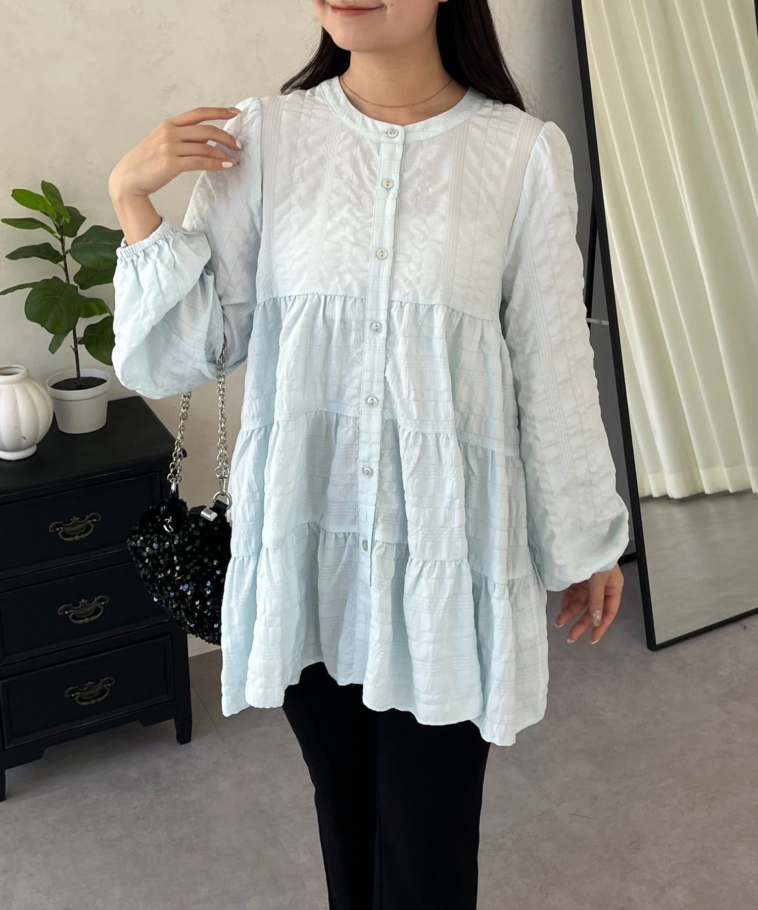 ●ブラウスとしても、羽織リとしても着こなせる、着回し力に優れた1着。