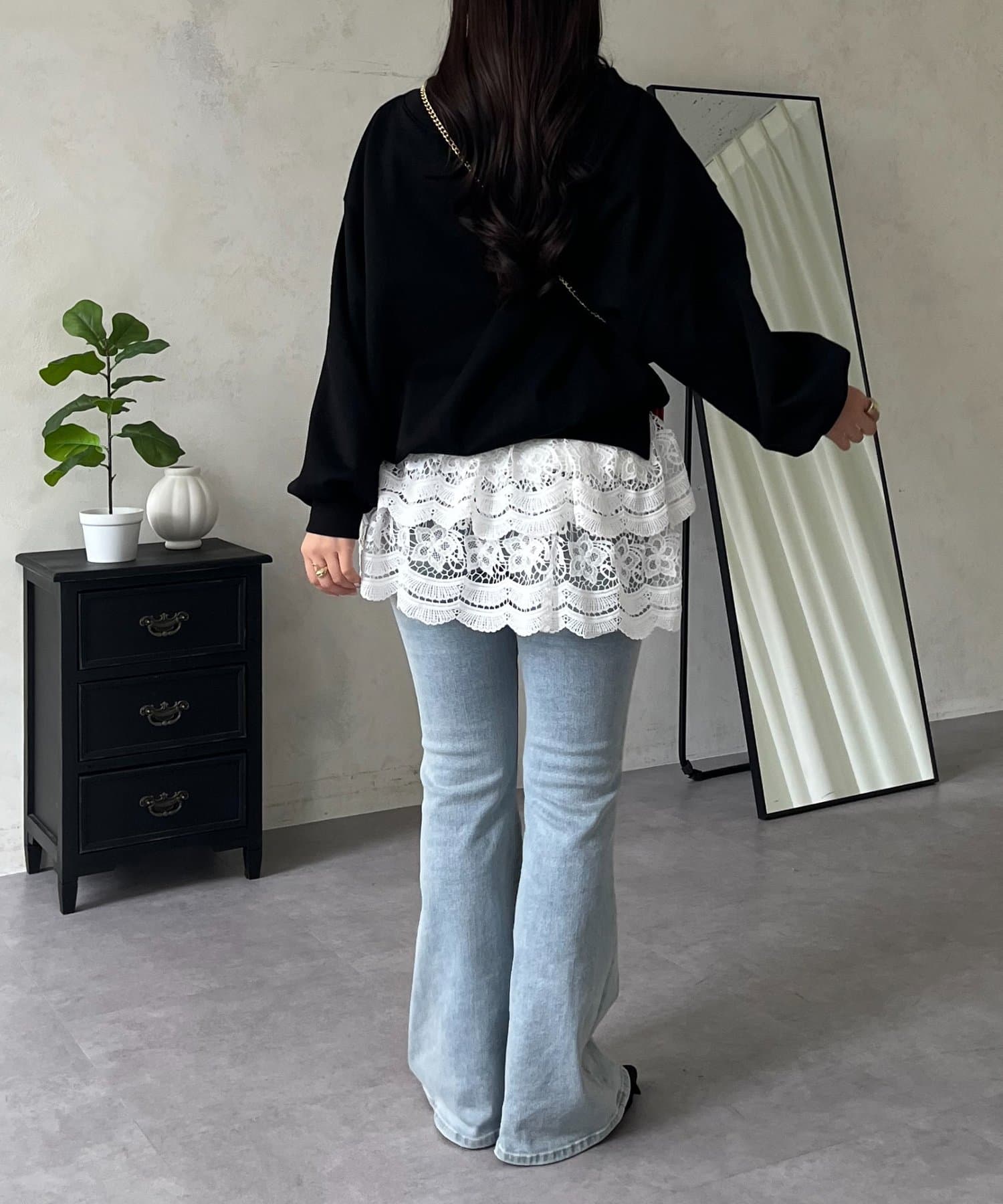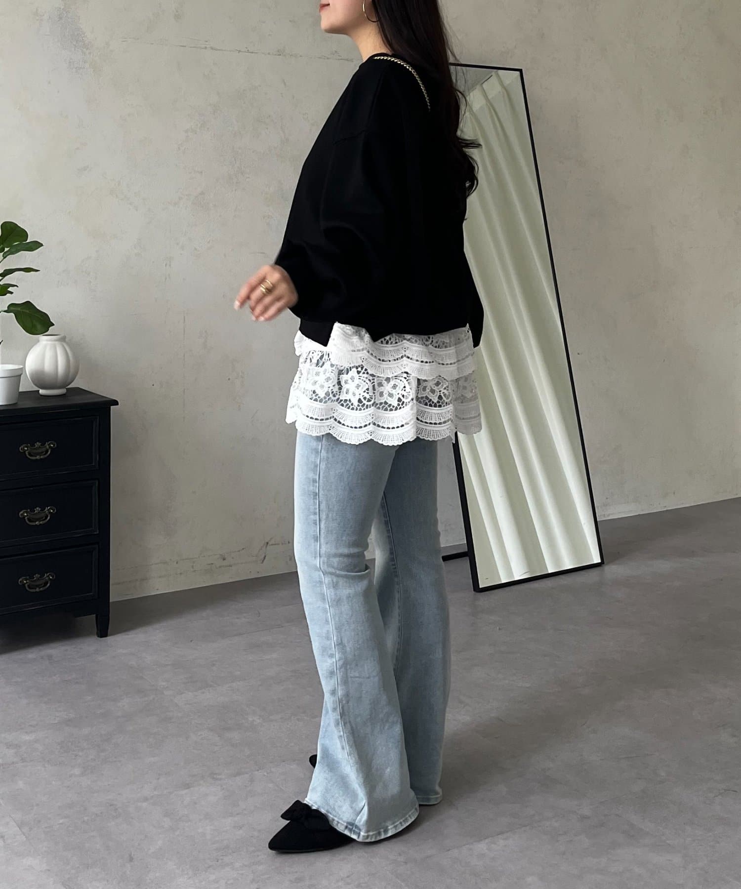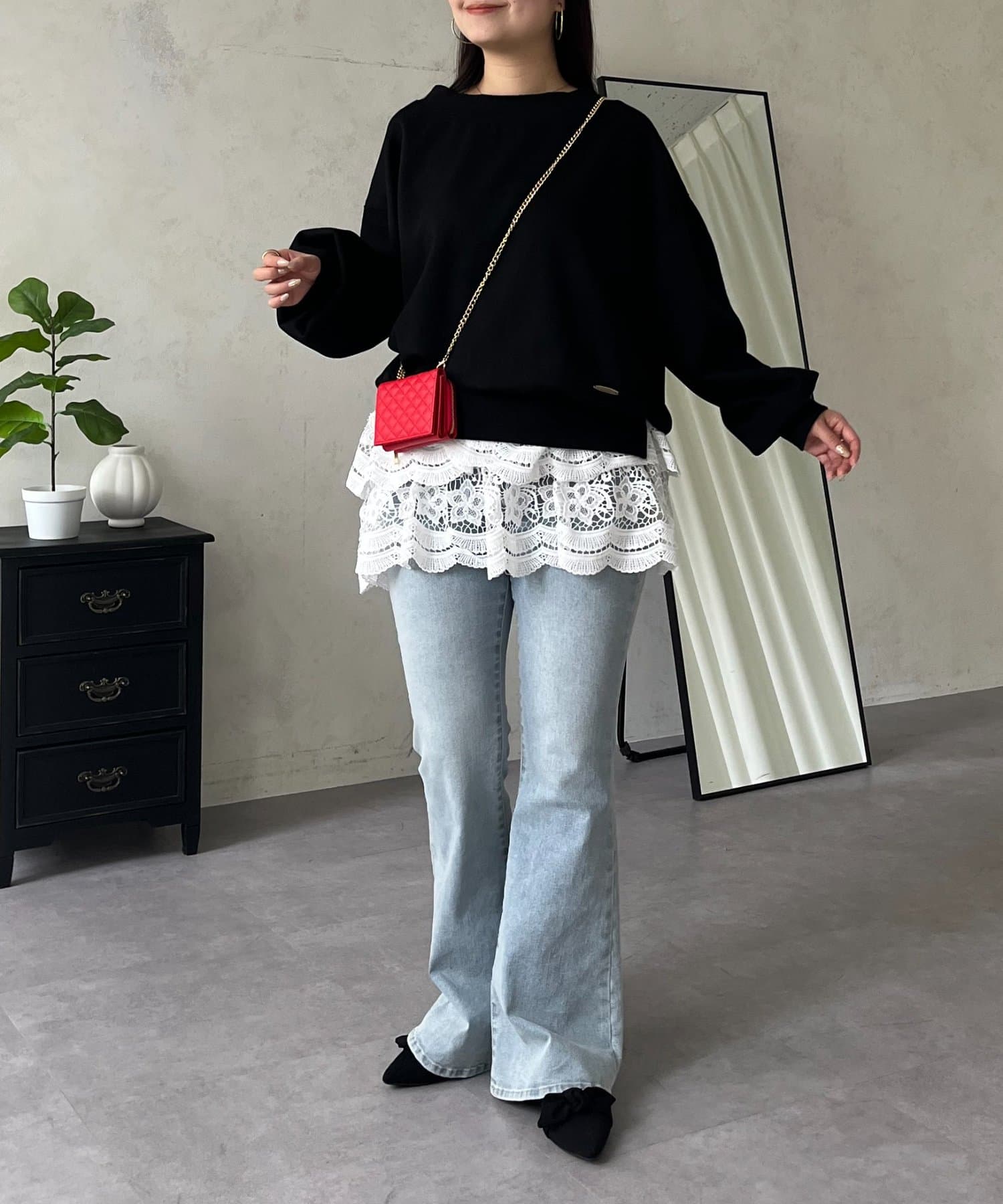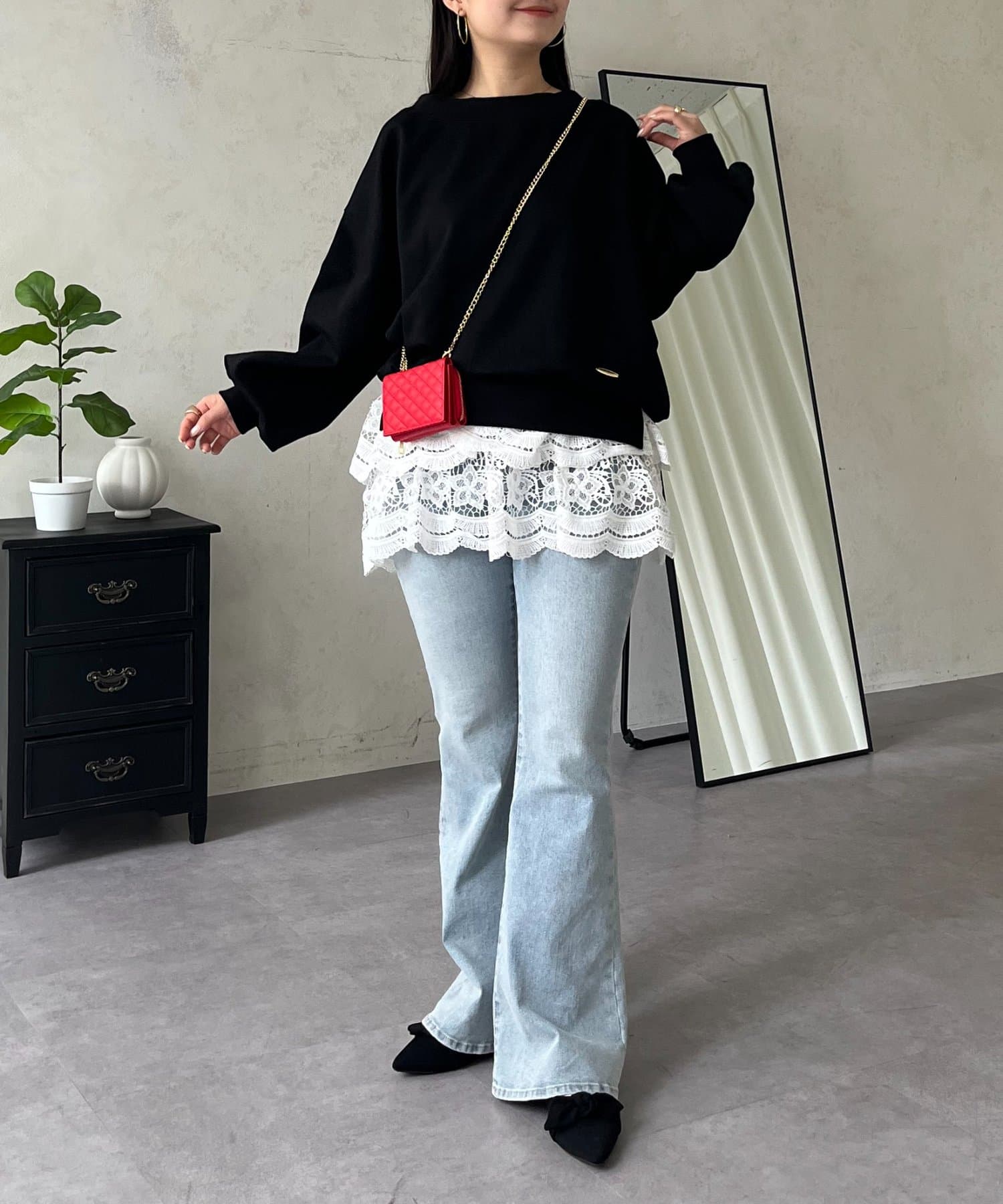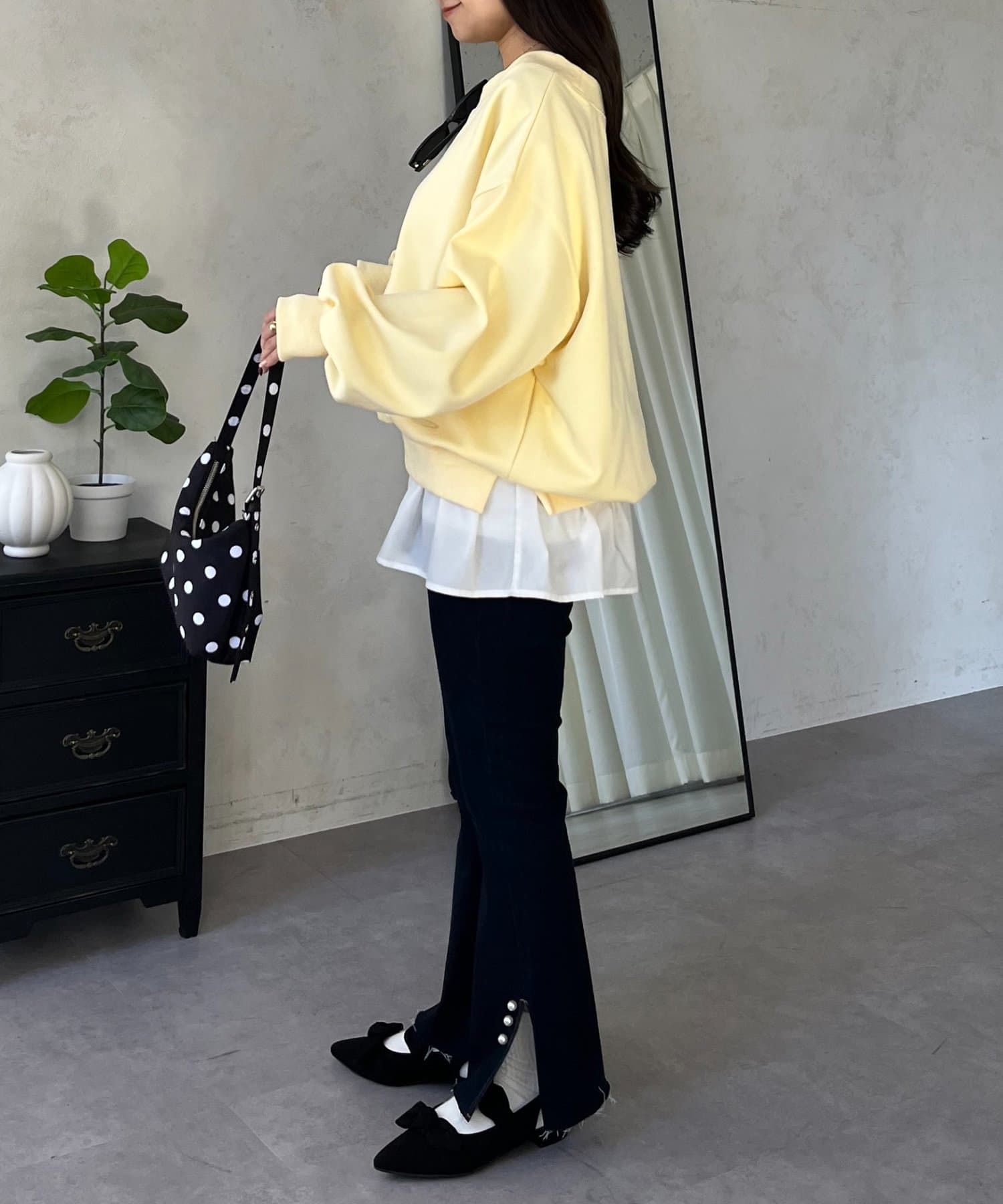 ●ワイドパンツや、Iラインスカートなど、幅広いアイテムと好相性