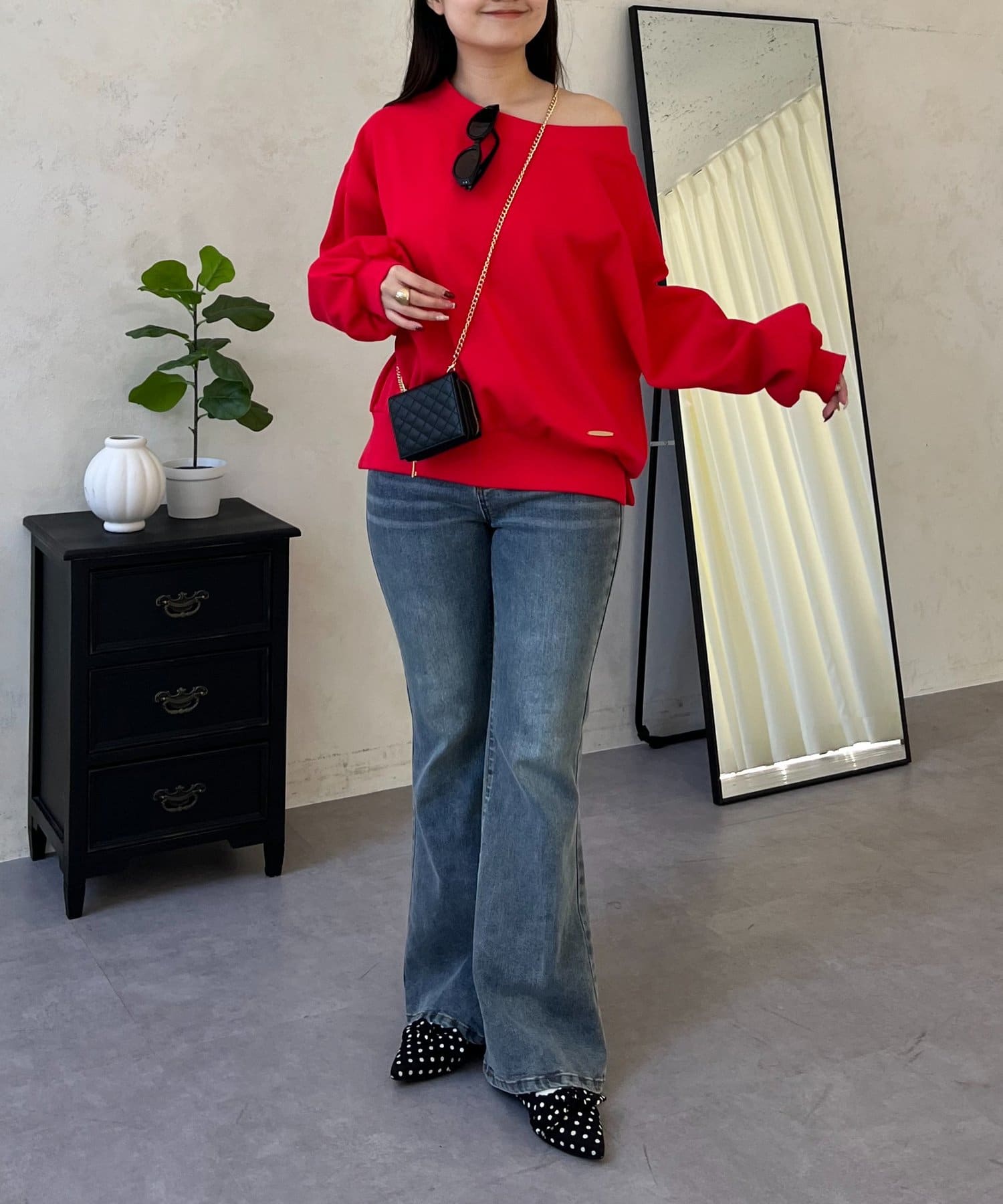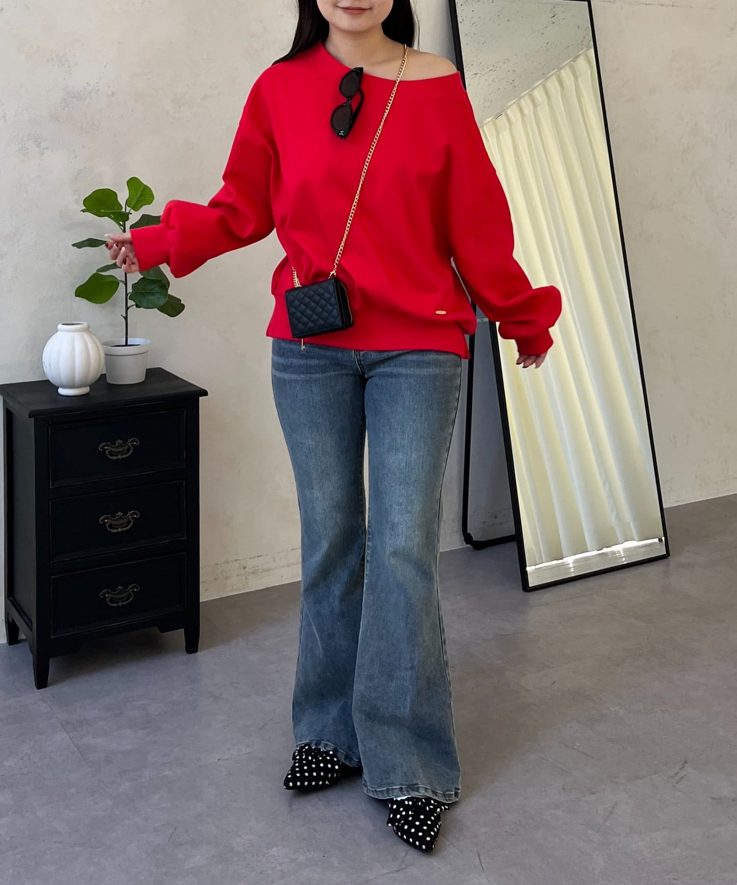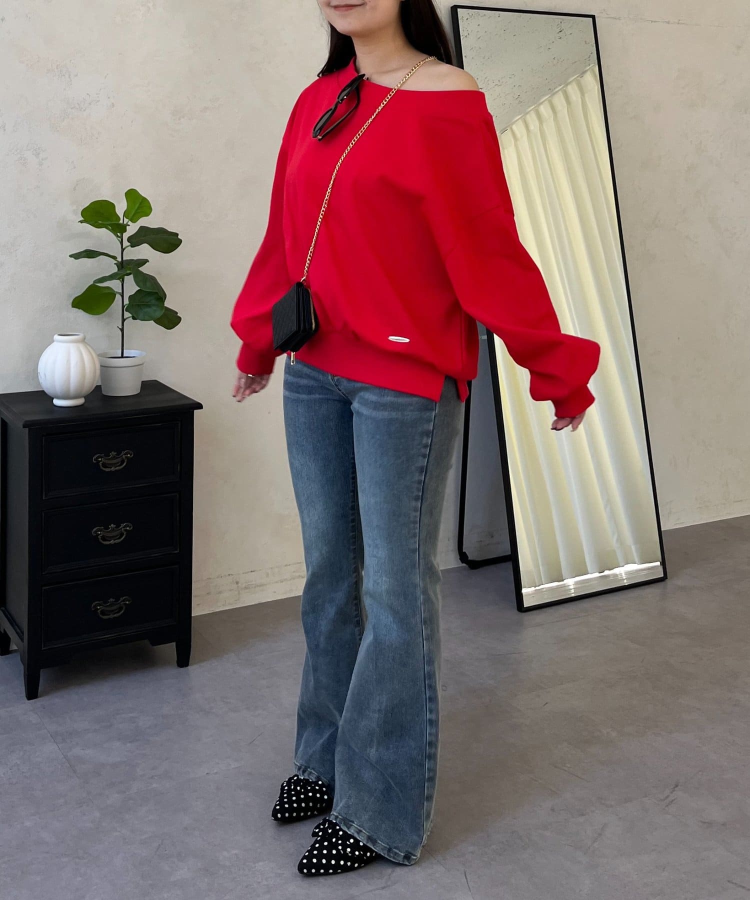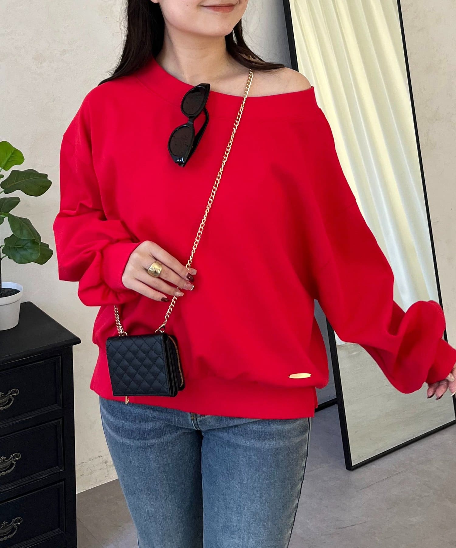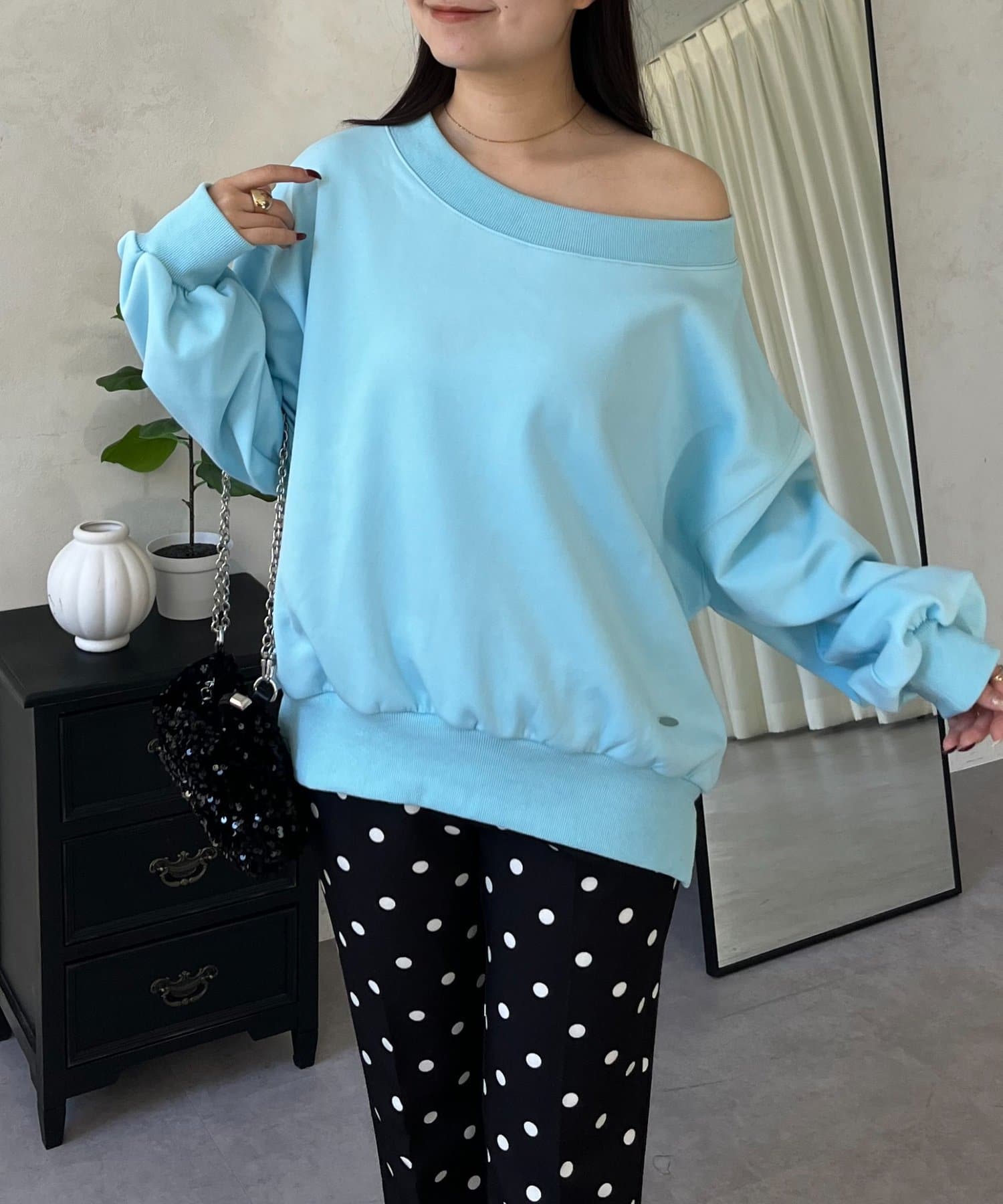 ●ボートネック、ワンショル、オフショル3wayで楽しめる抜け感たっぷりのスウェット