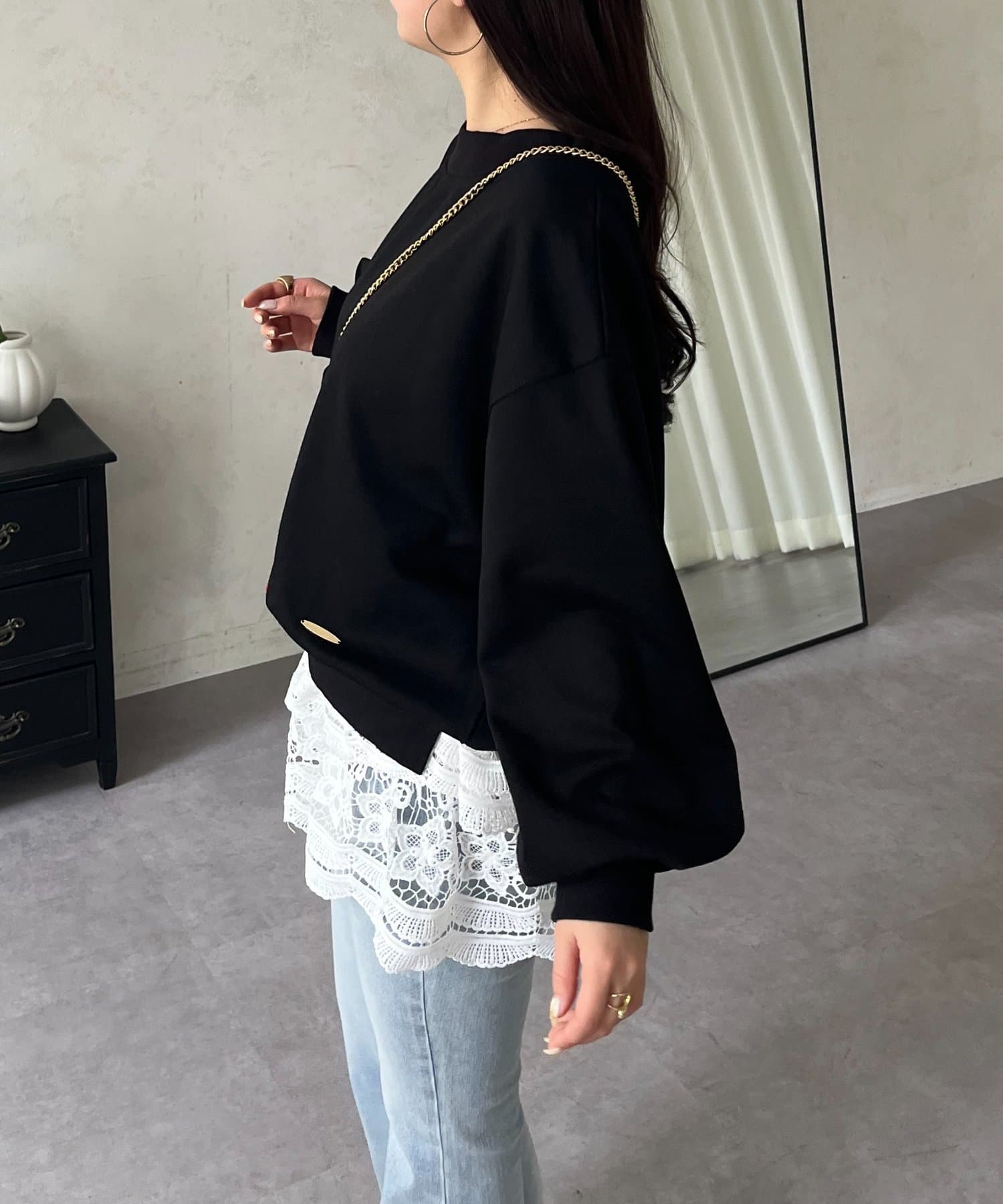ボートネック裾メタルスウェット