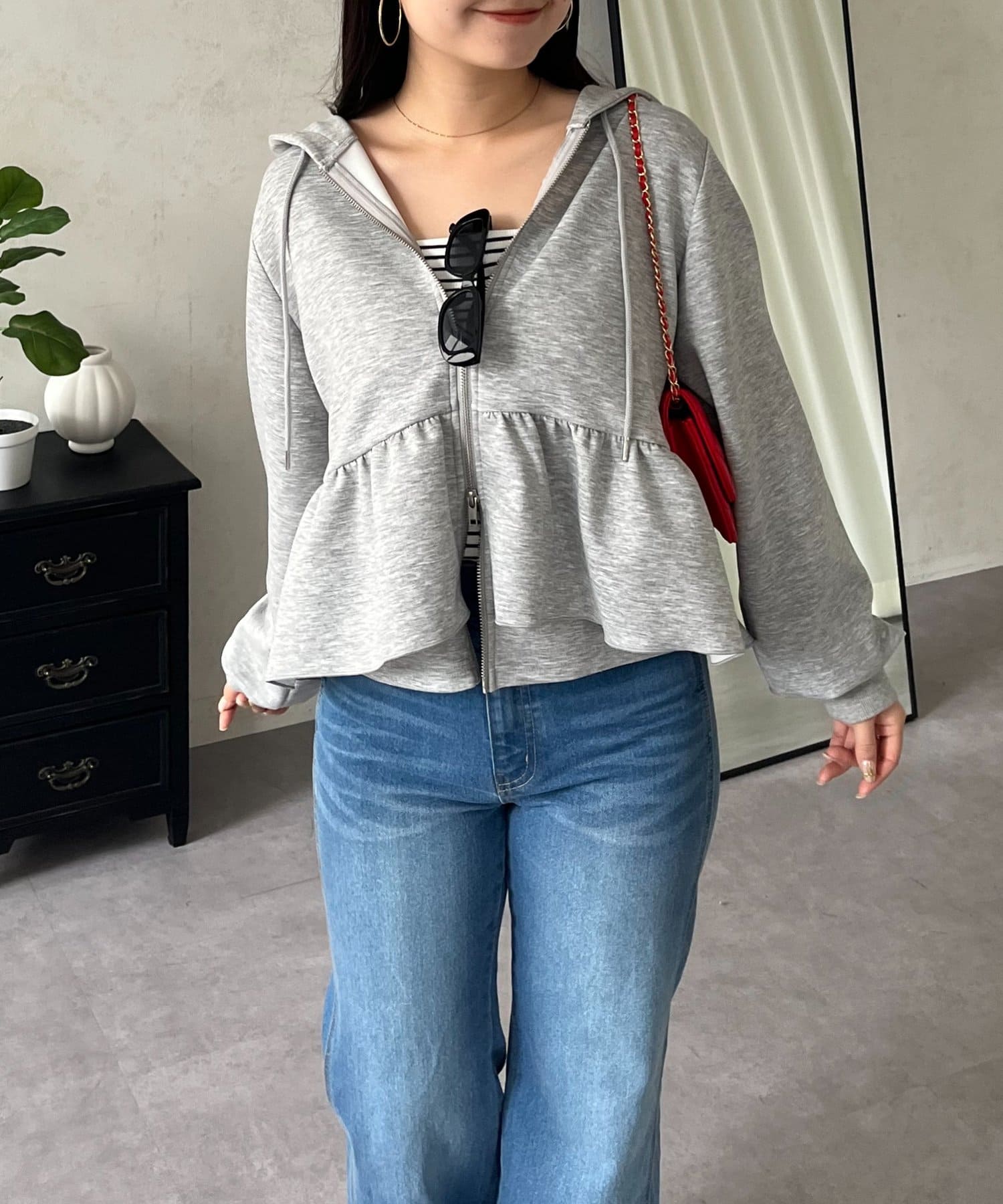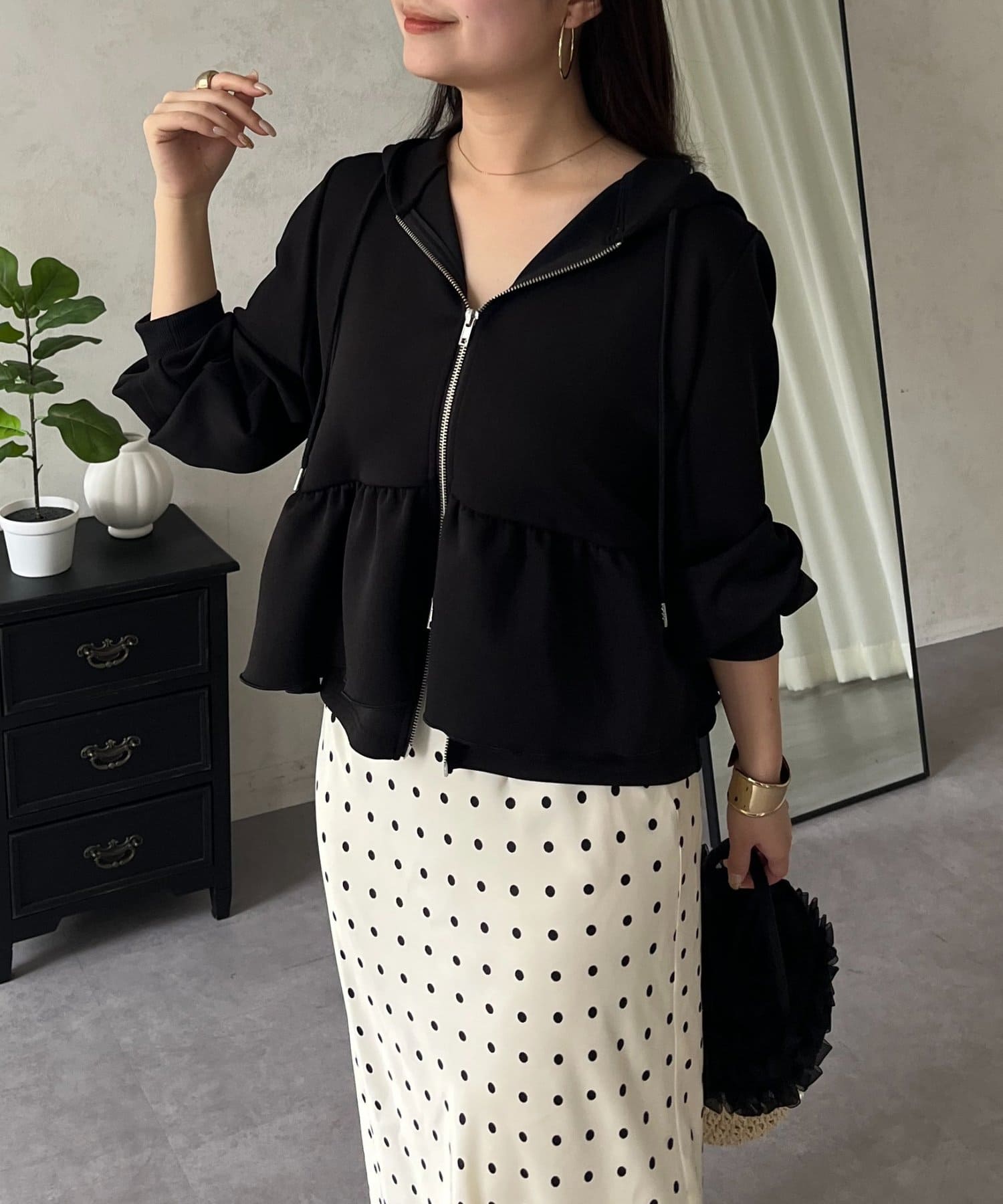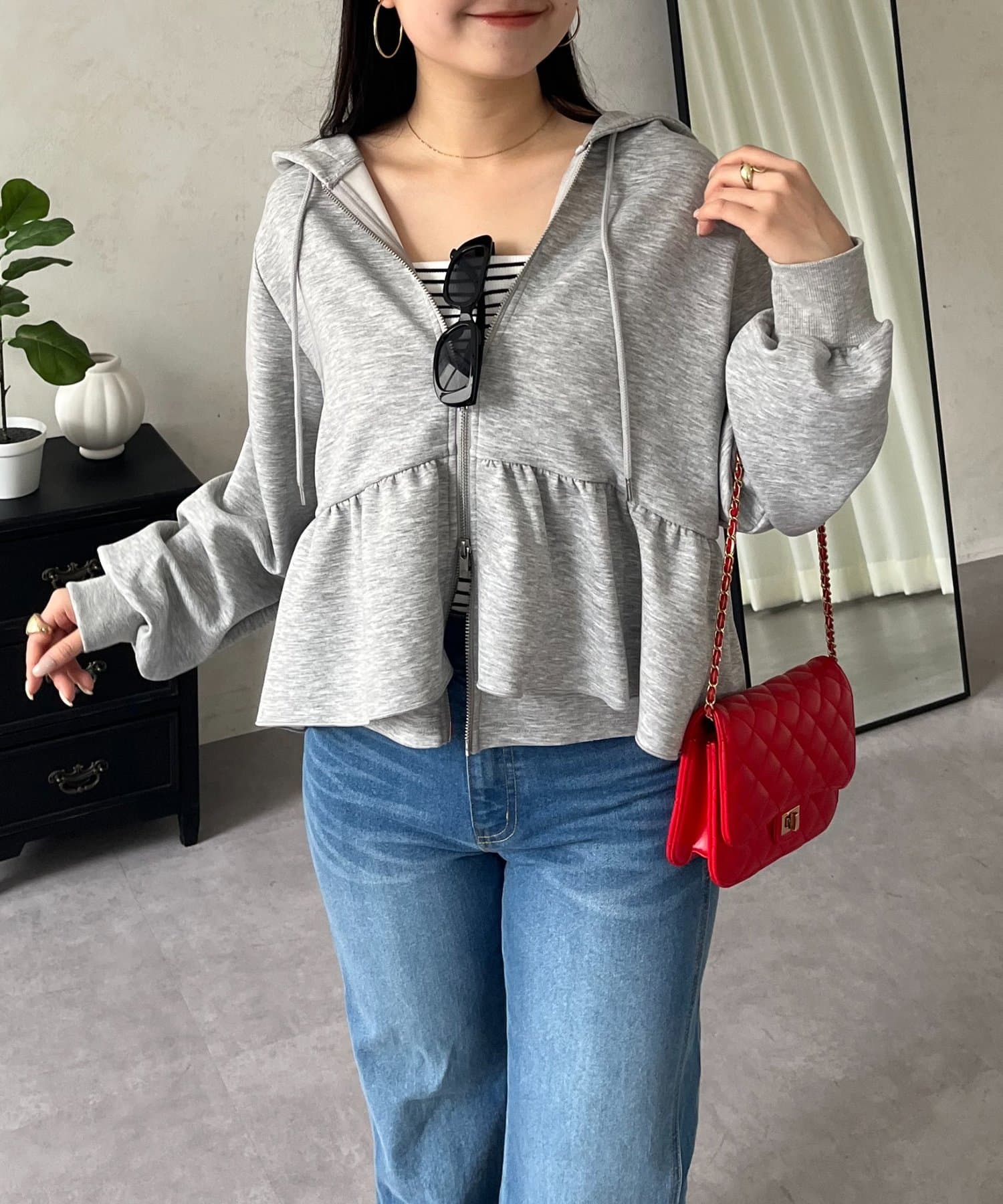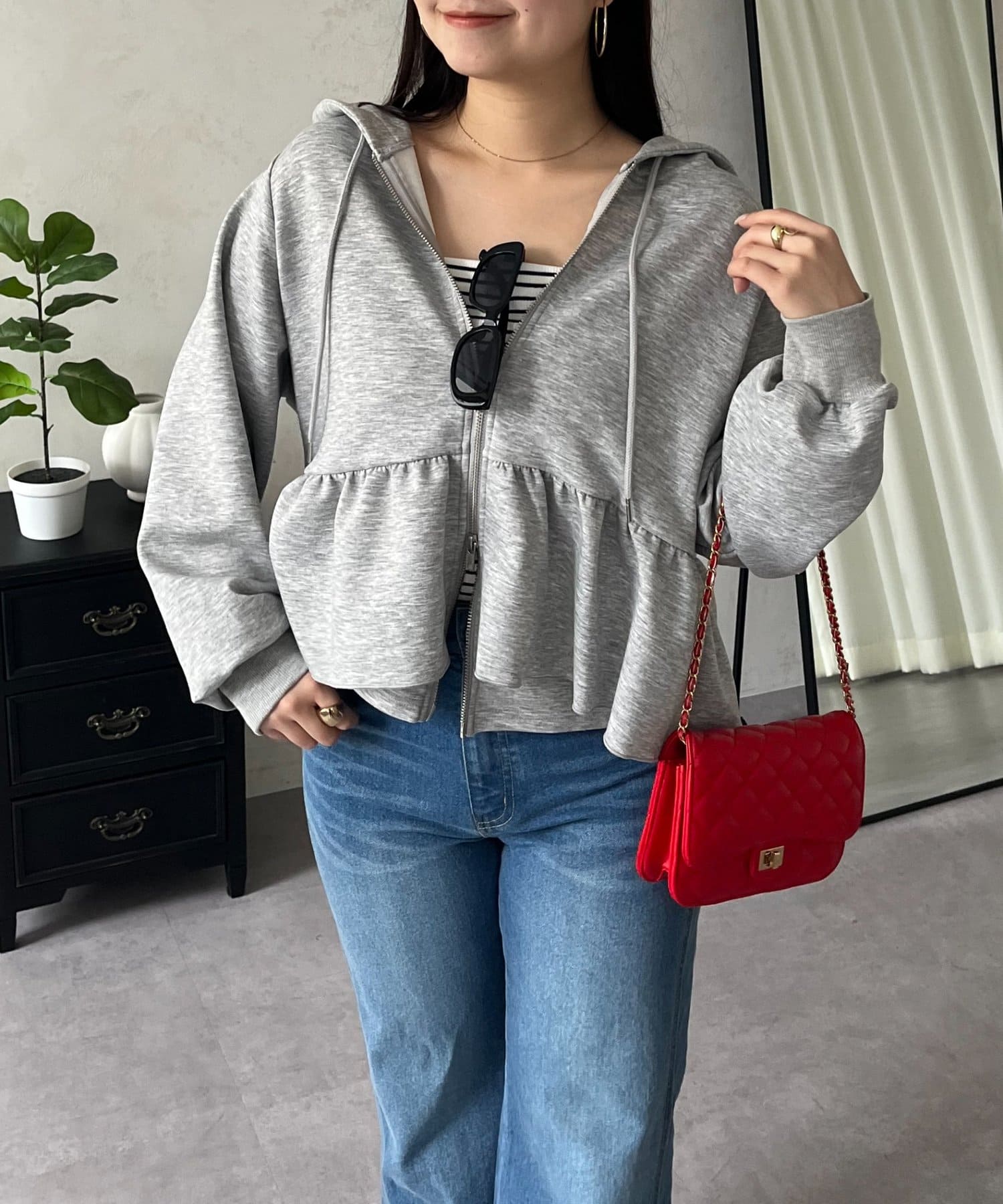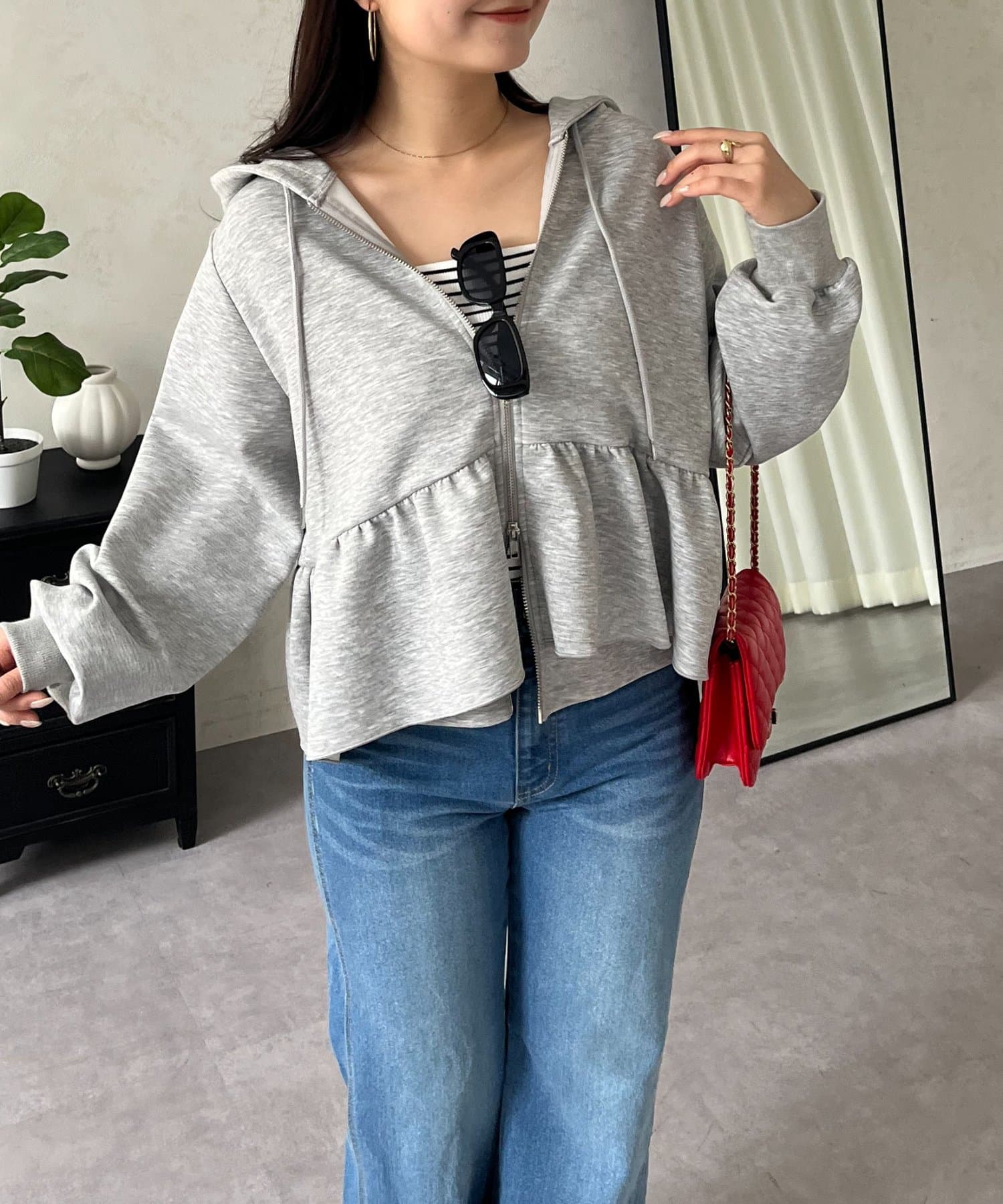 ペプラムラインでカジュアルに差がつくペプラムパーカー