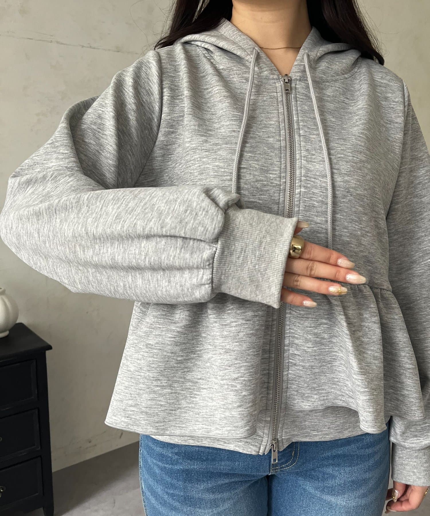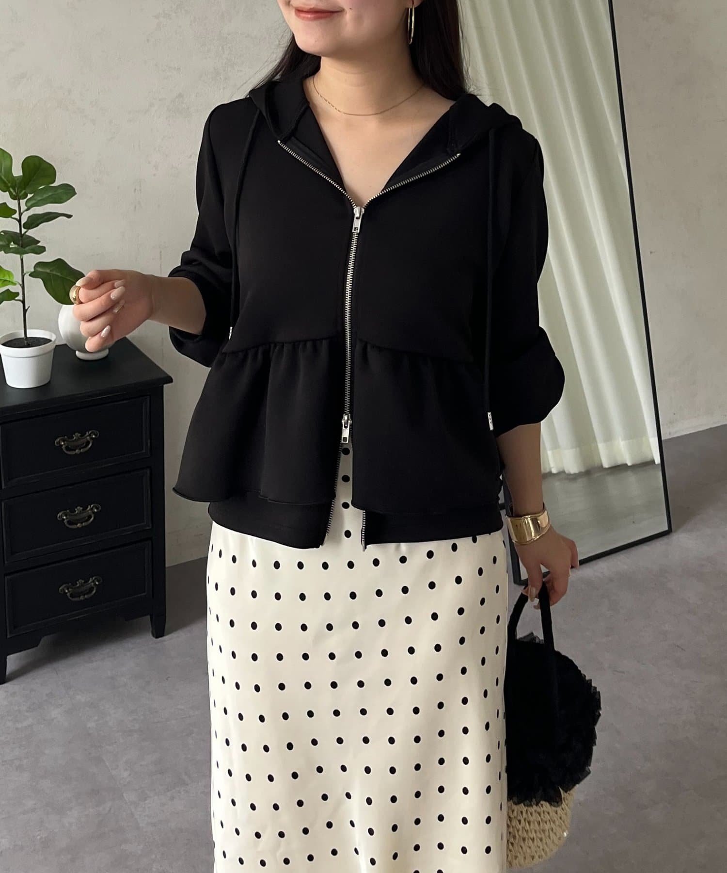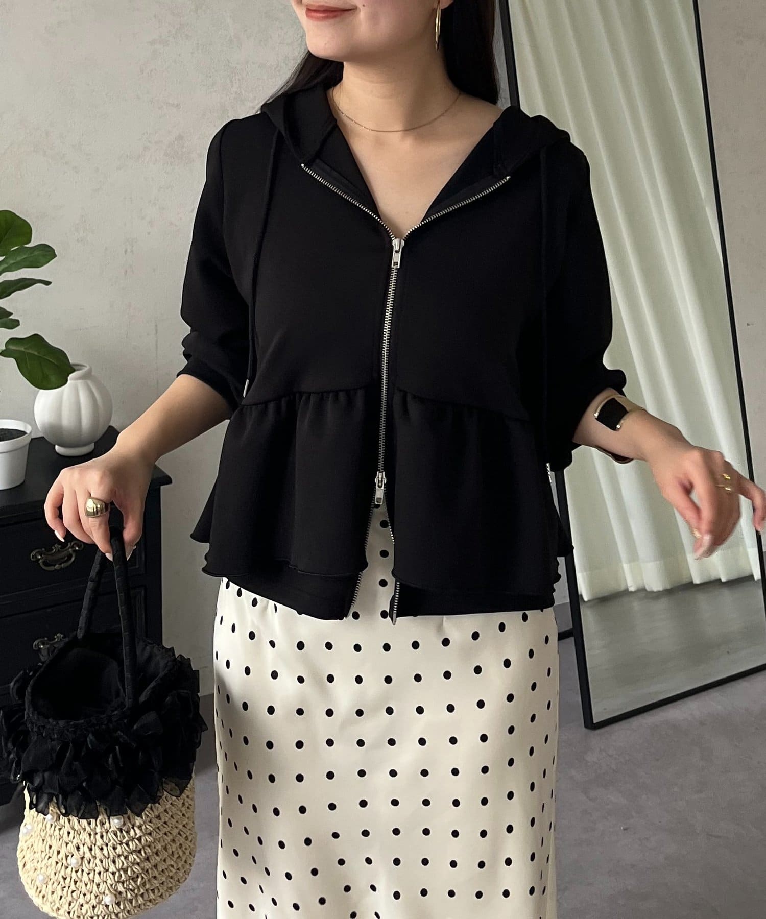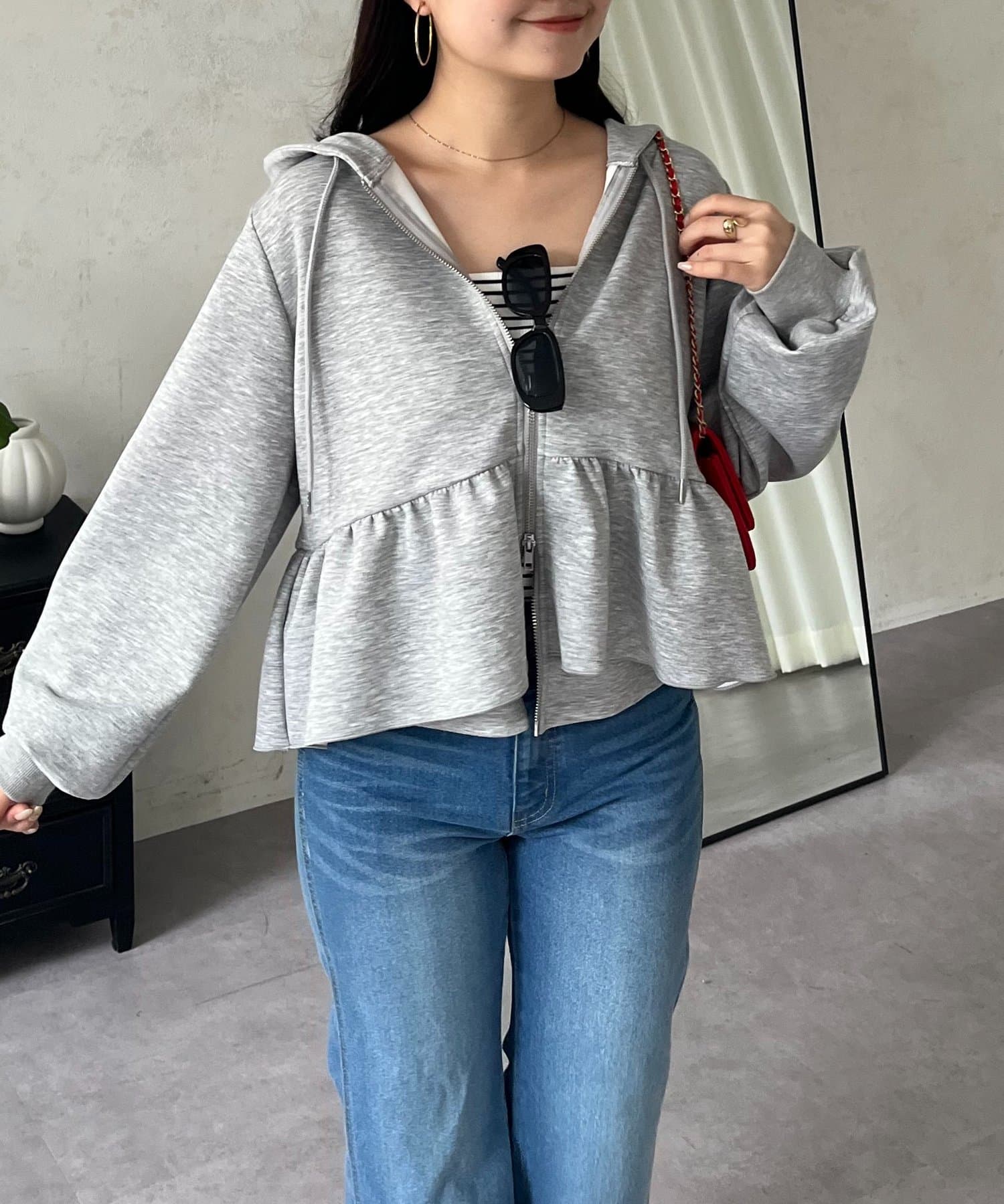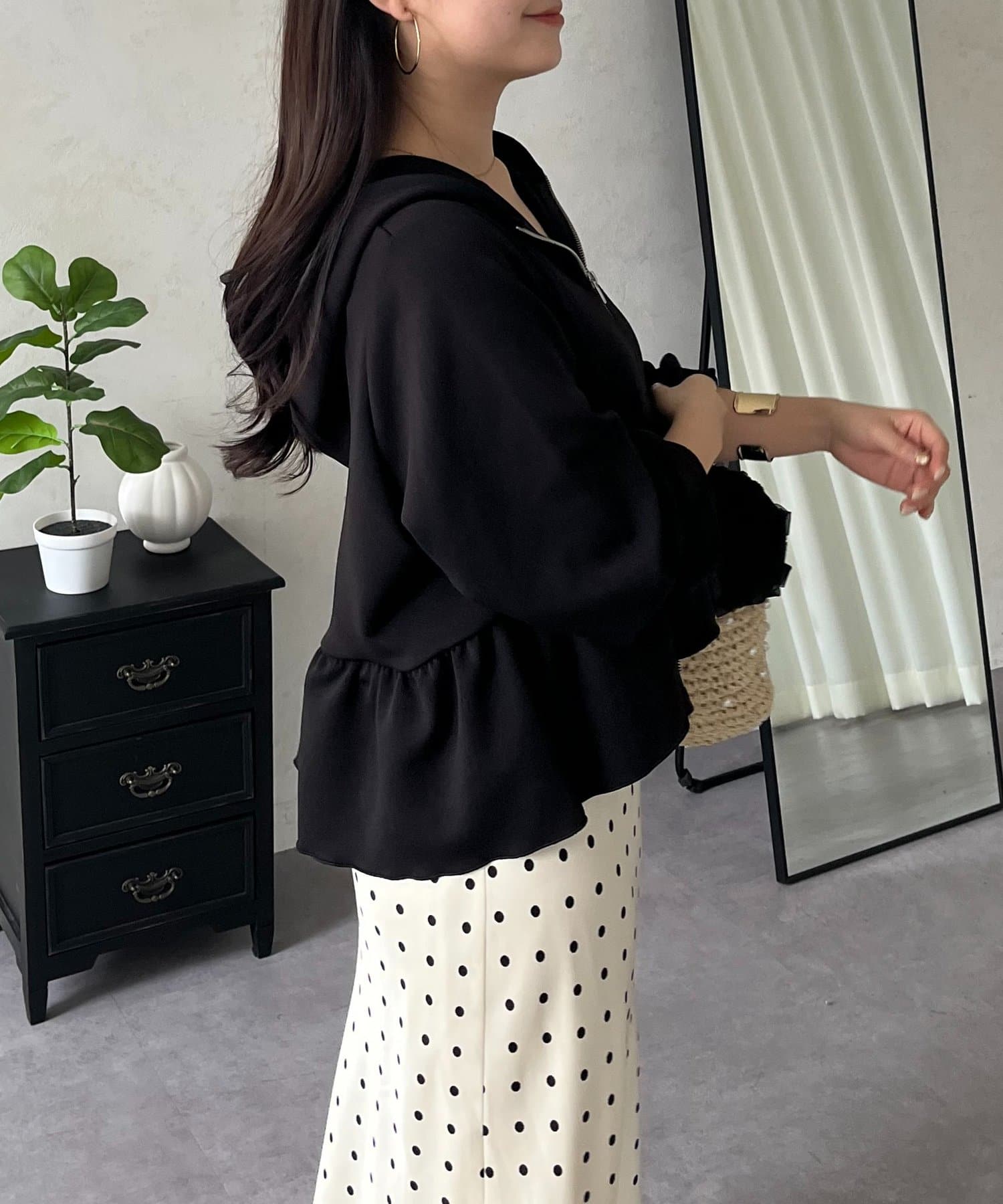 ペプラムラインでカジュアルに差がつくペプラムパーカー