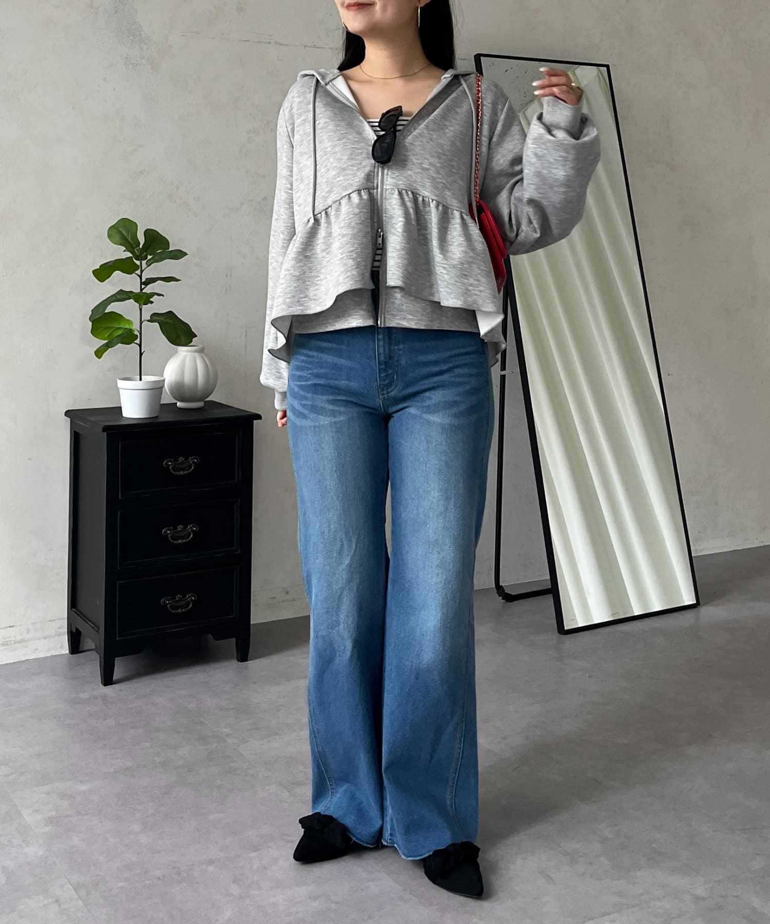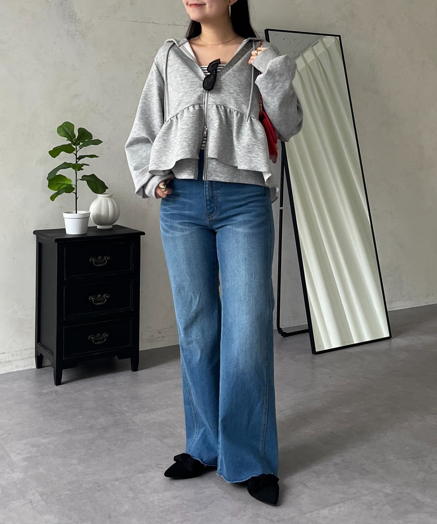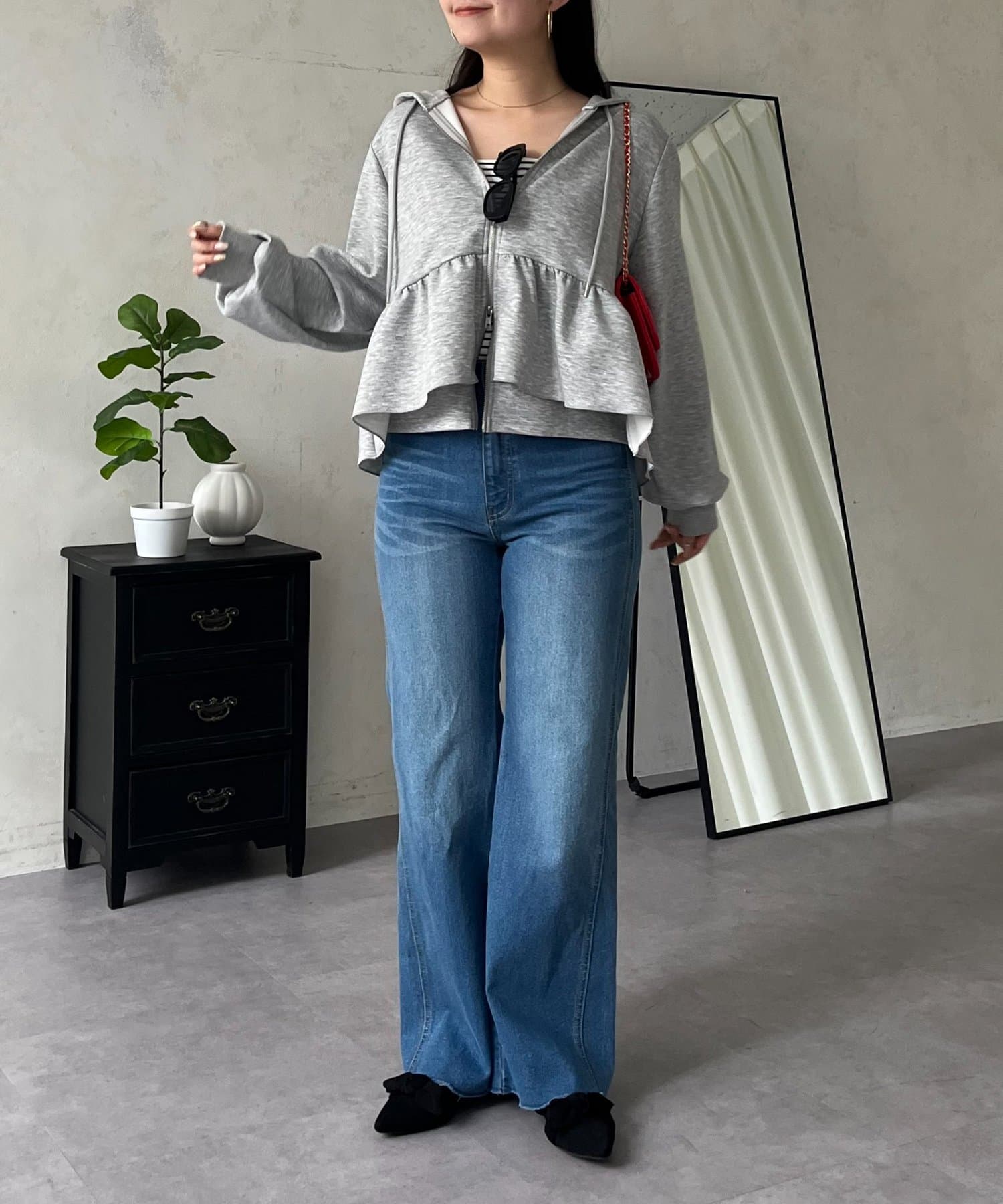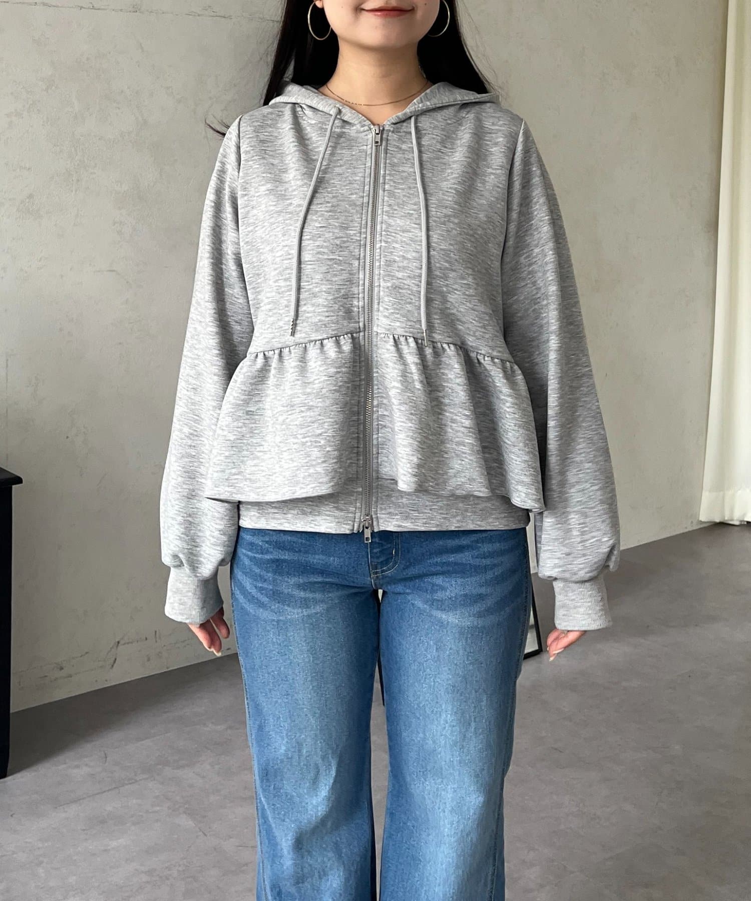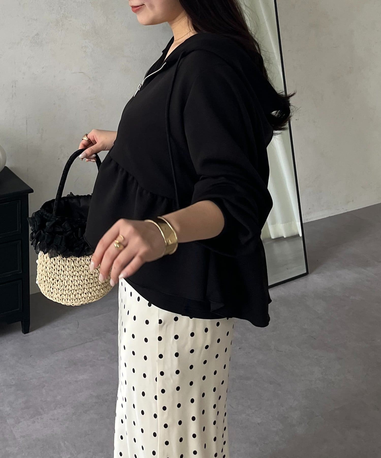 ペプラムラインでカジュアルに差がつくペプラムパーカー