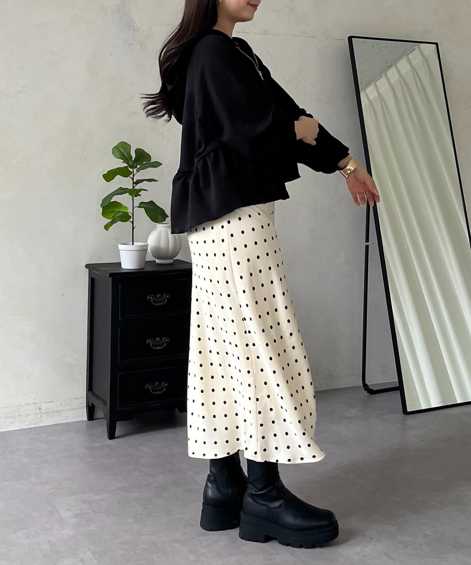 ●フード付きのほどよいカジュアル感が甘さを引き締め
