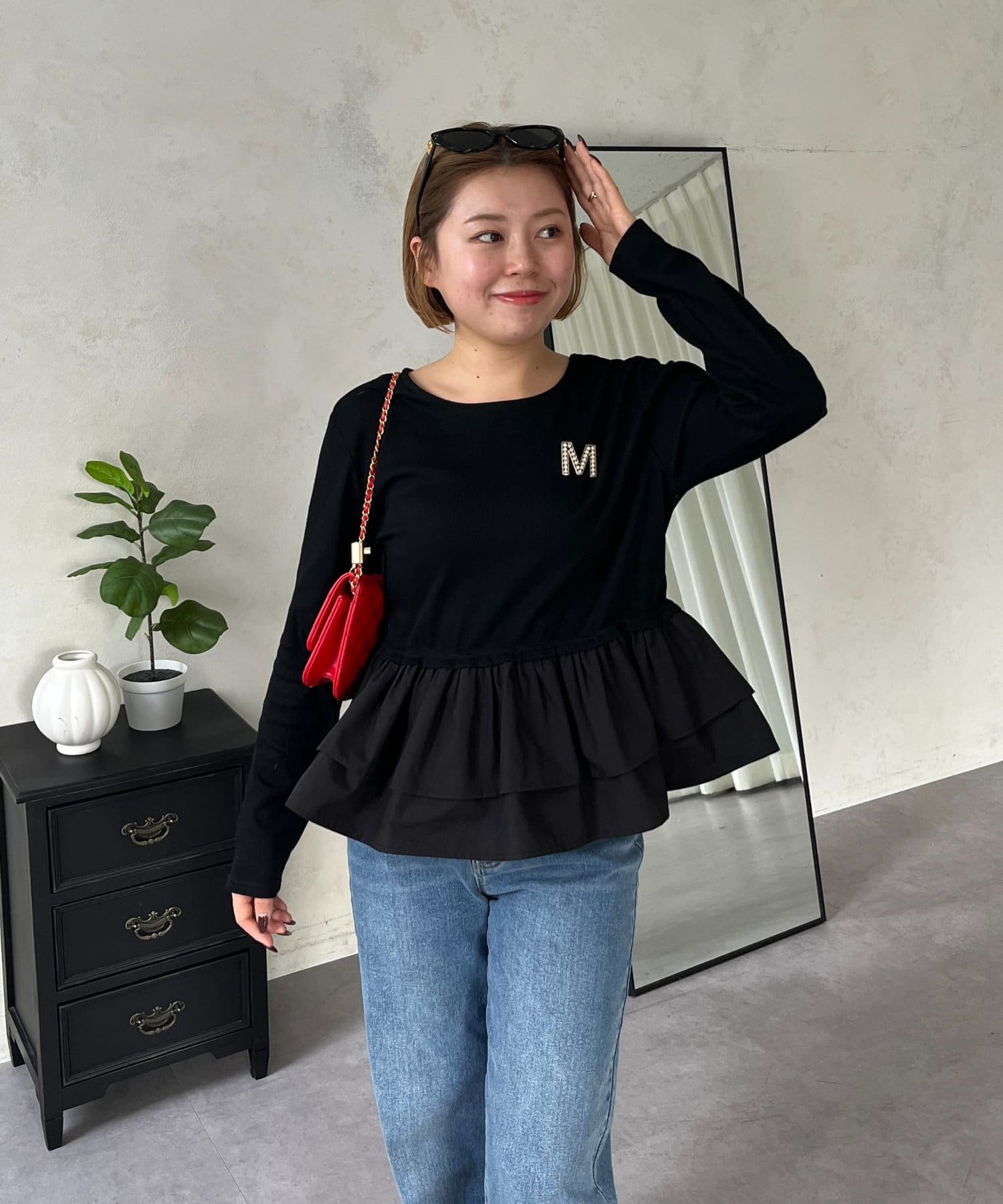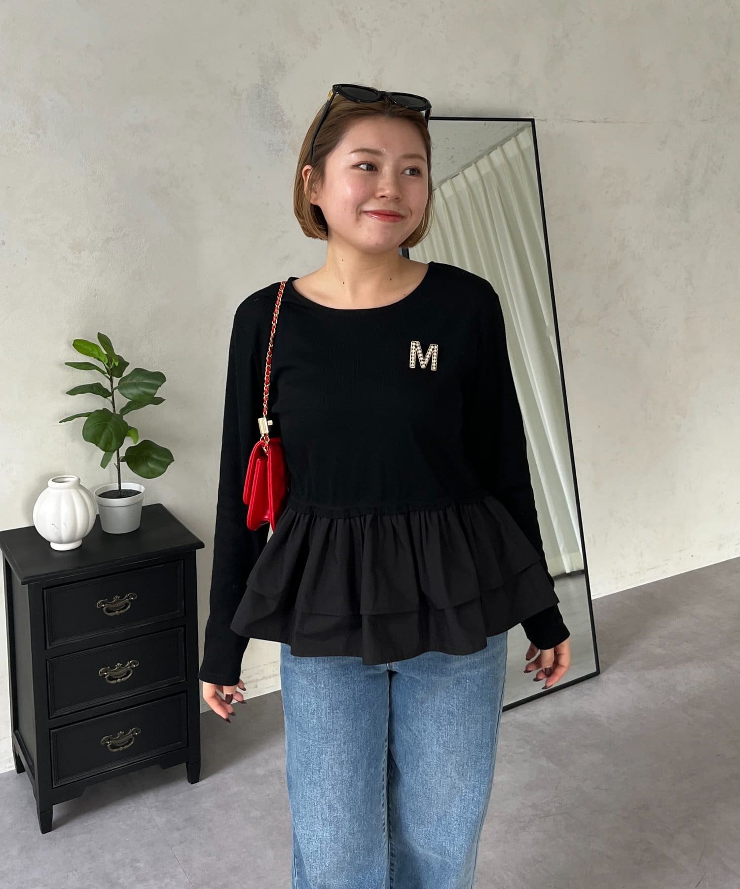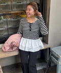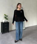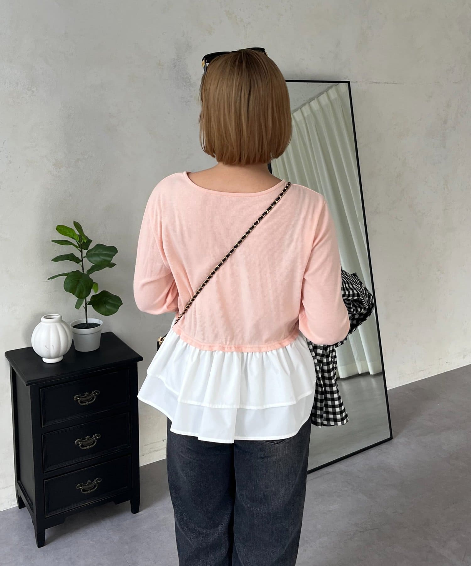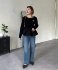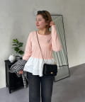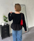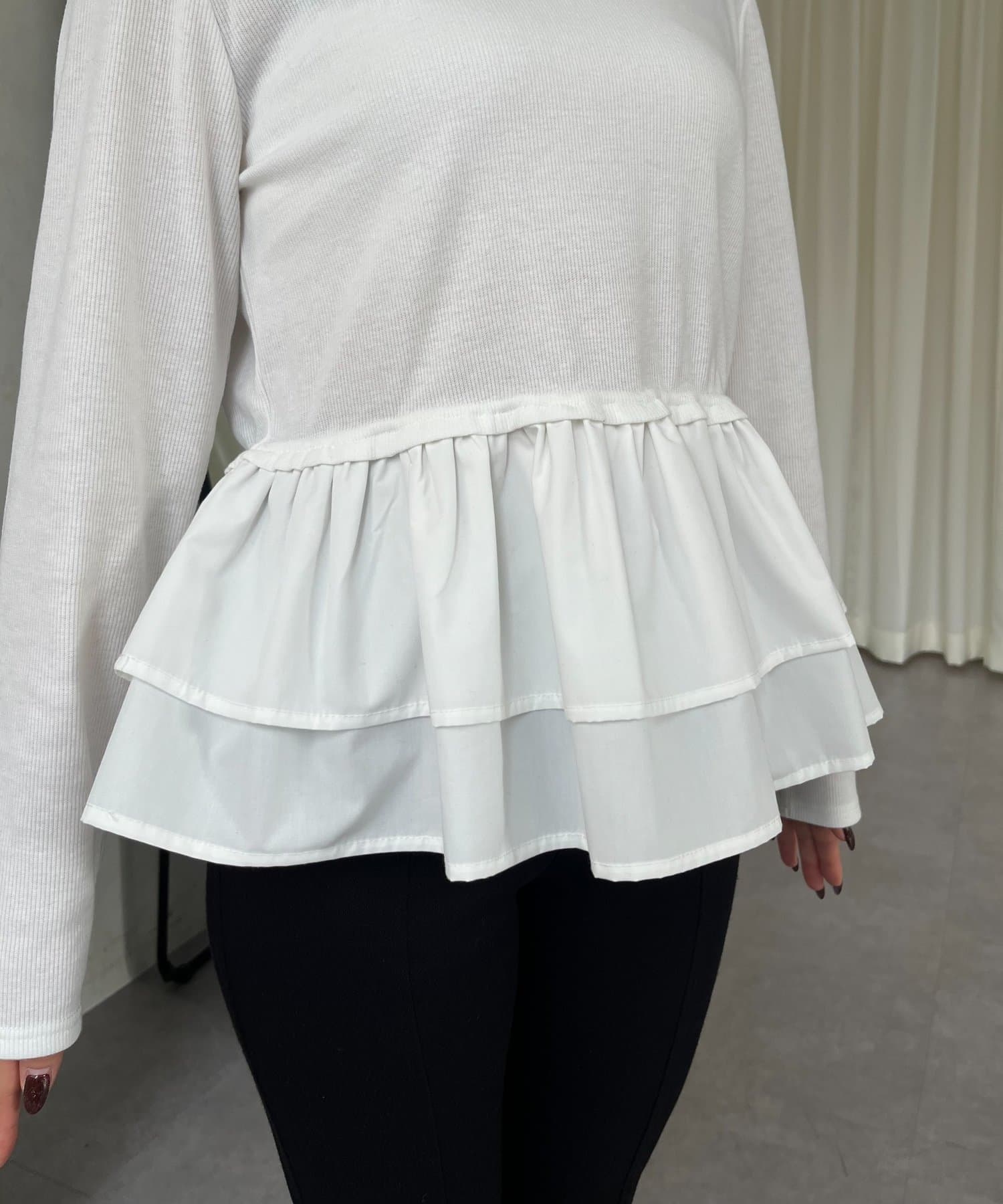 【MOMO】裾フリルドッキングトップス