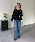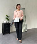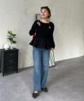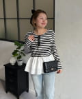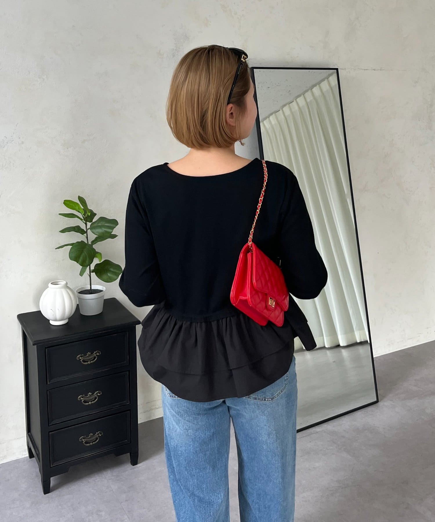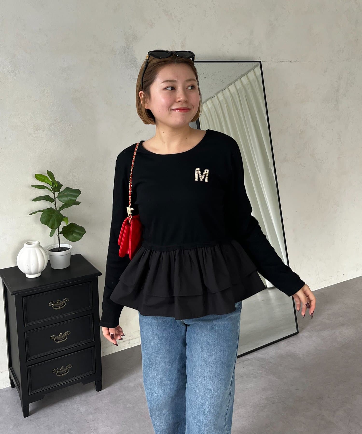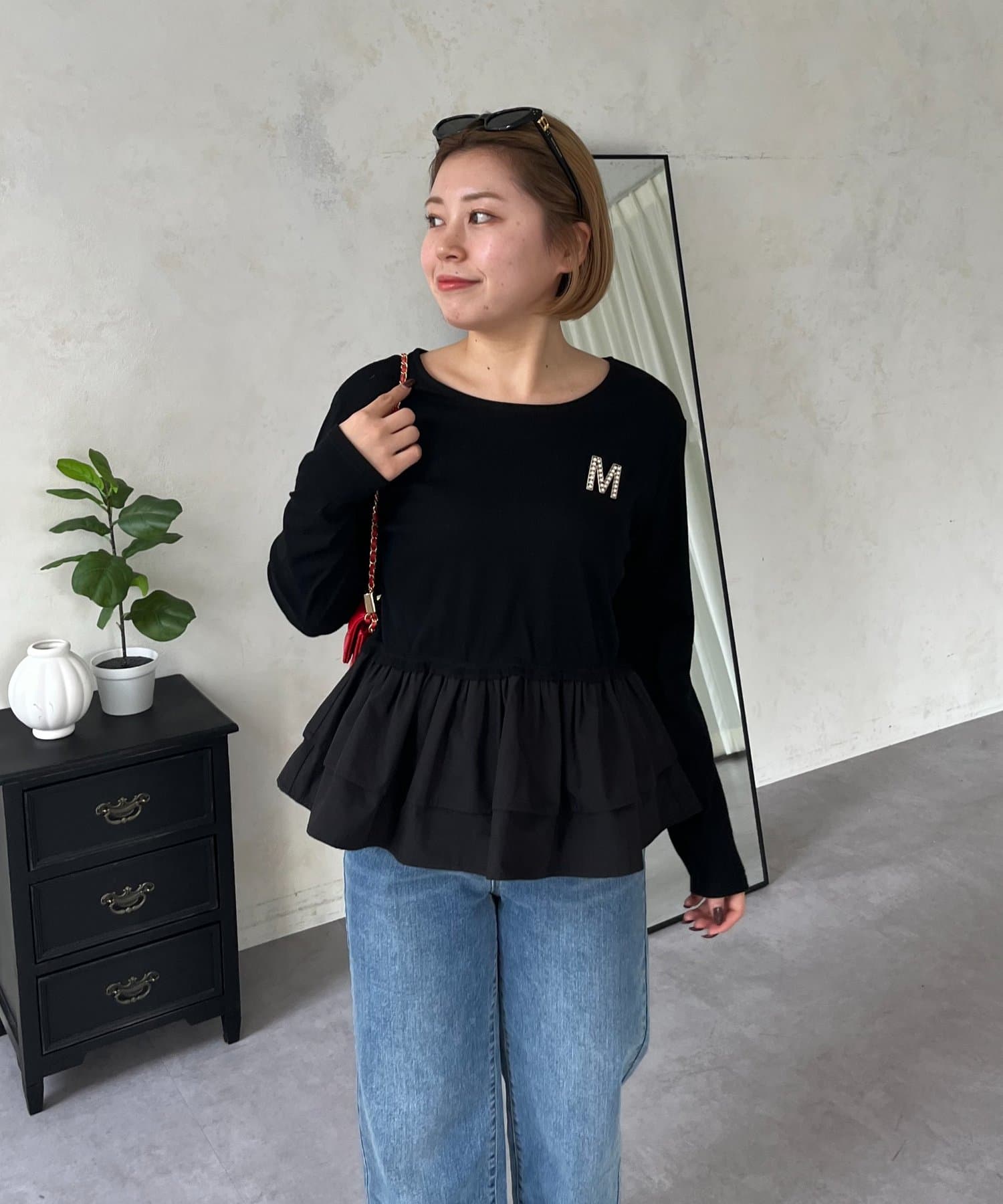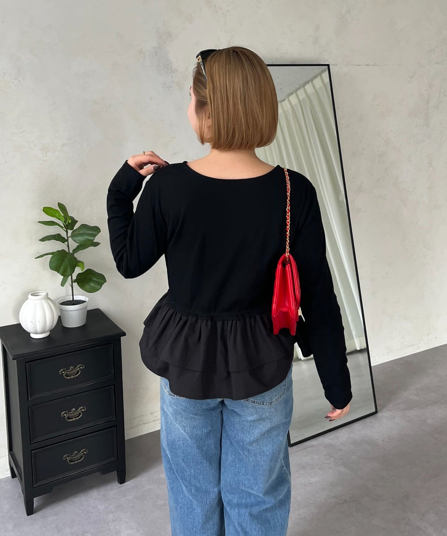 【MOMO】裾フリルドッキングトップス
