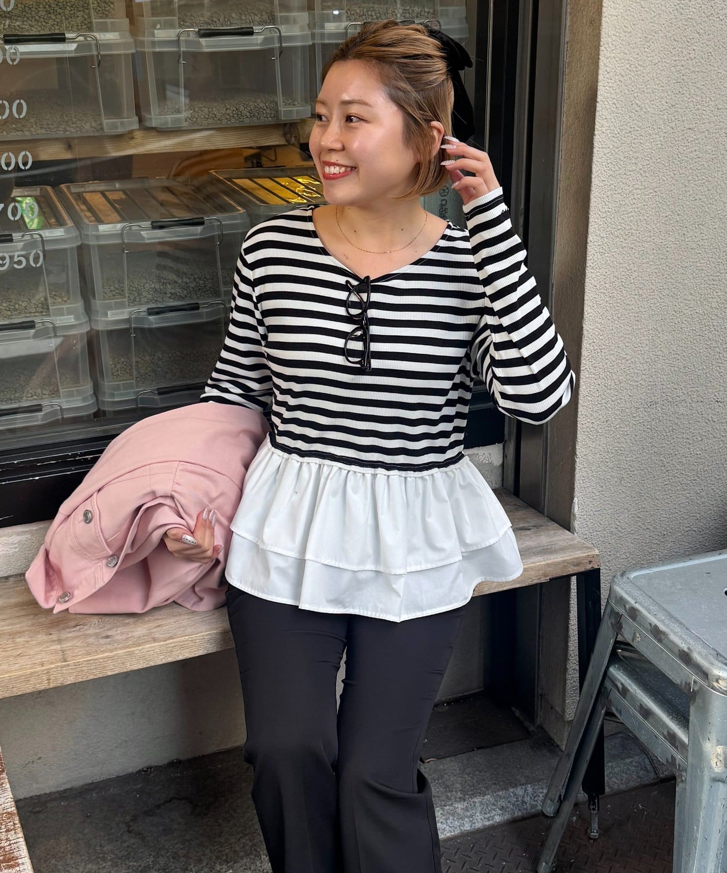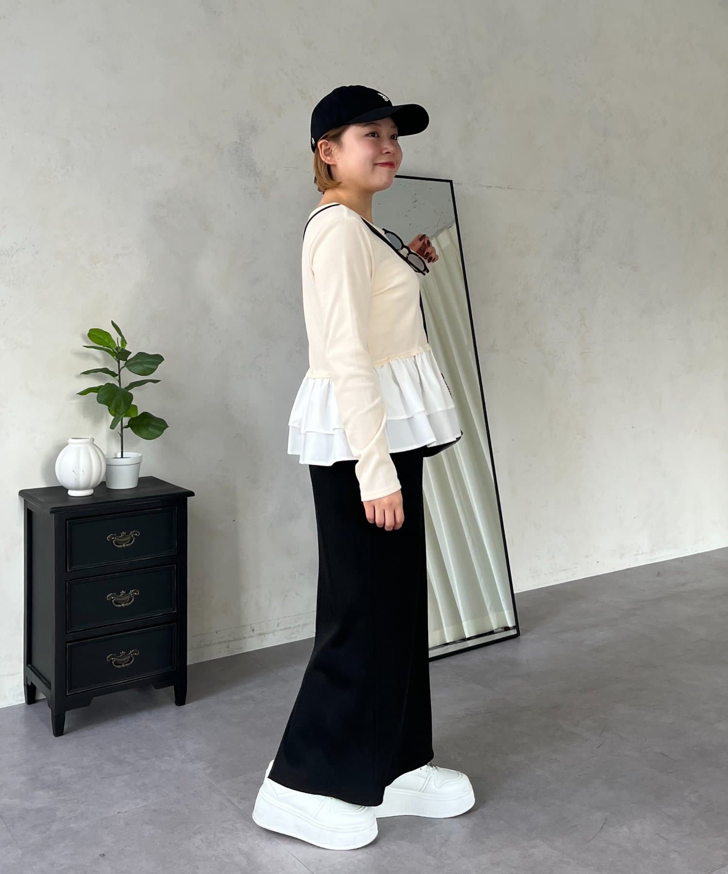 ●2段フリルが、コーデにさりげない華やかさをプラス