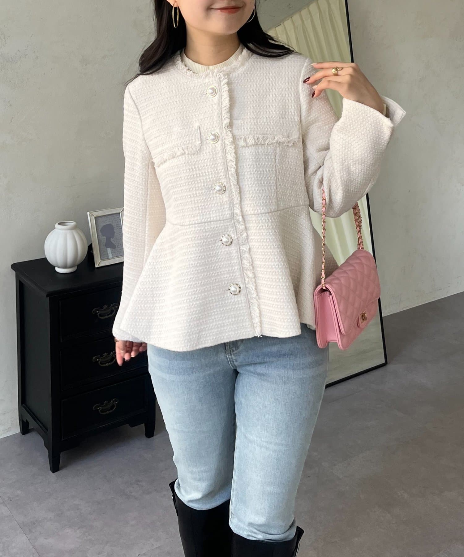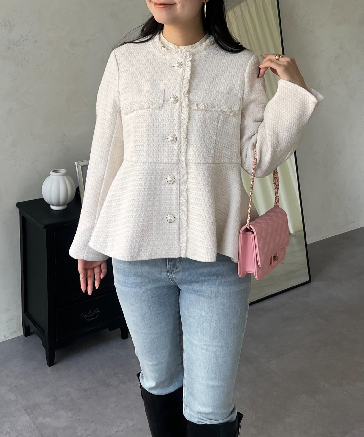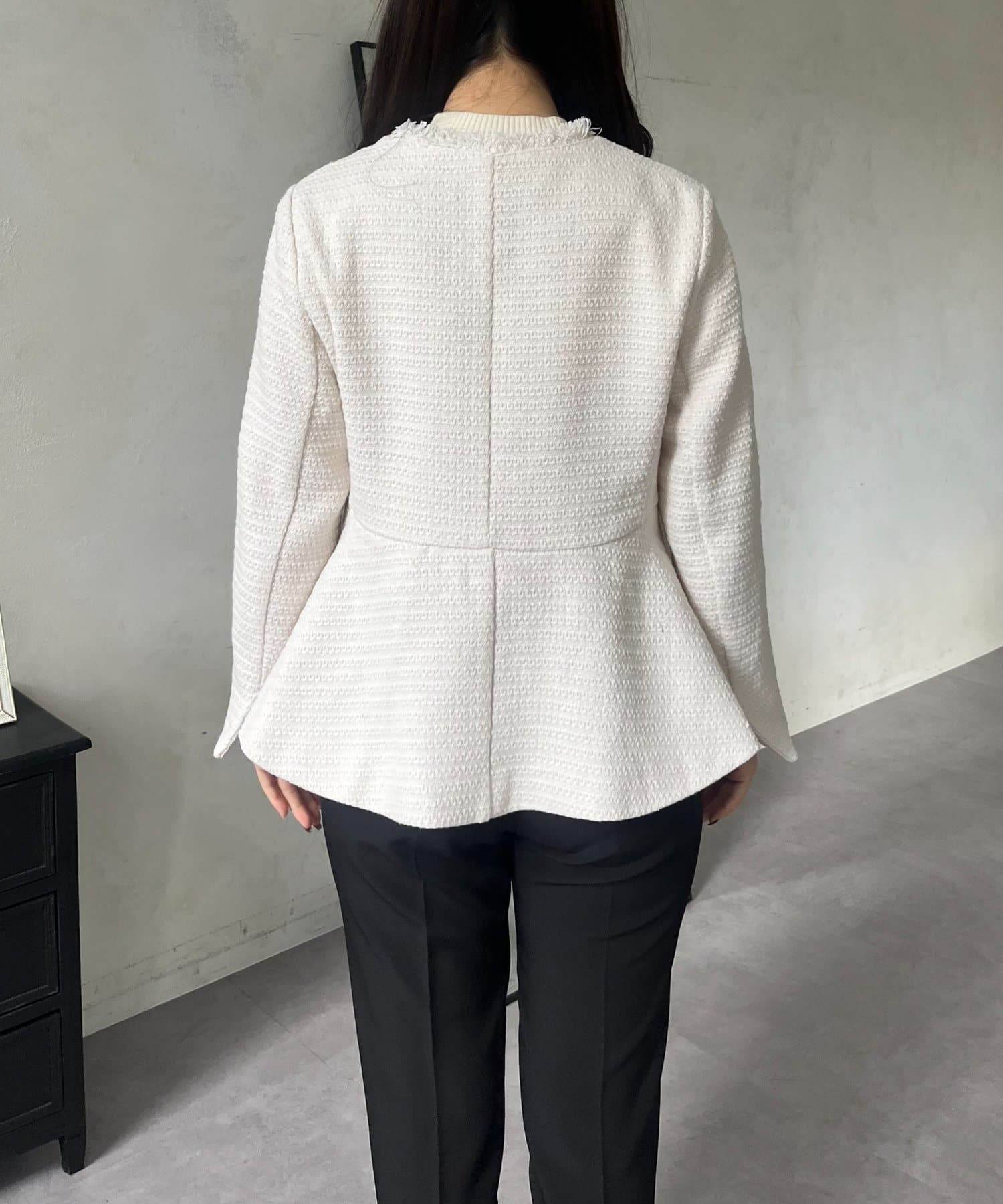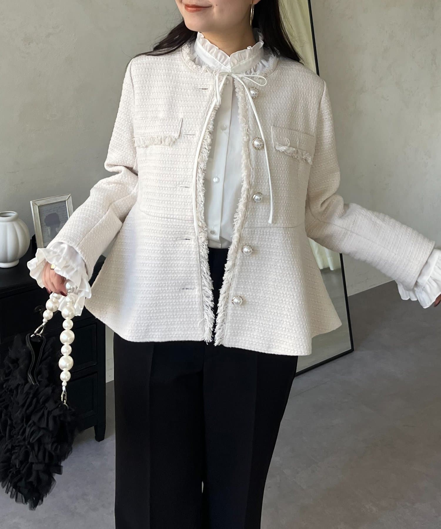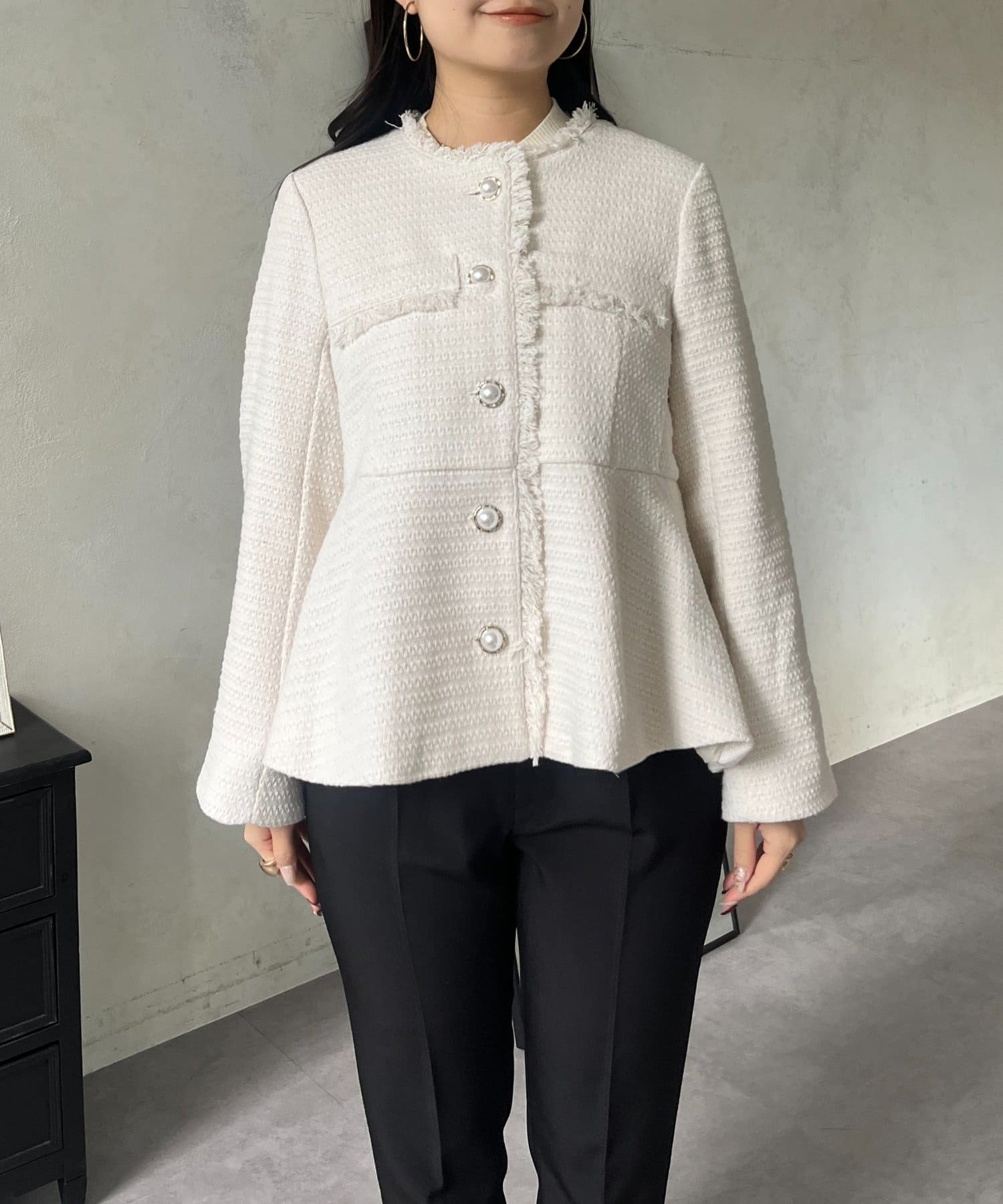 パールボタンペプラムツイードジャケット