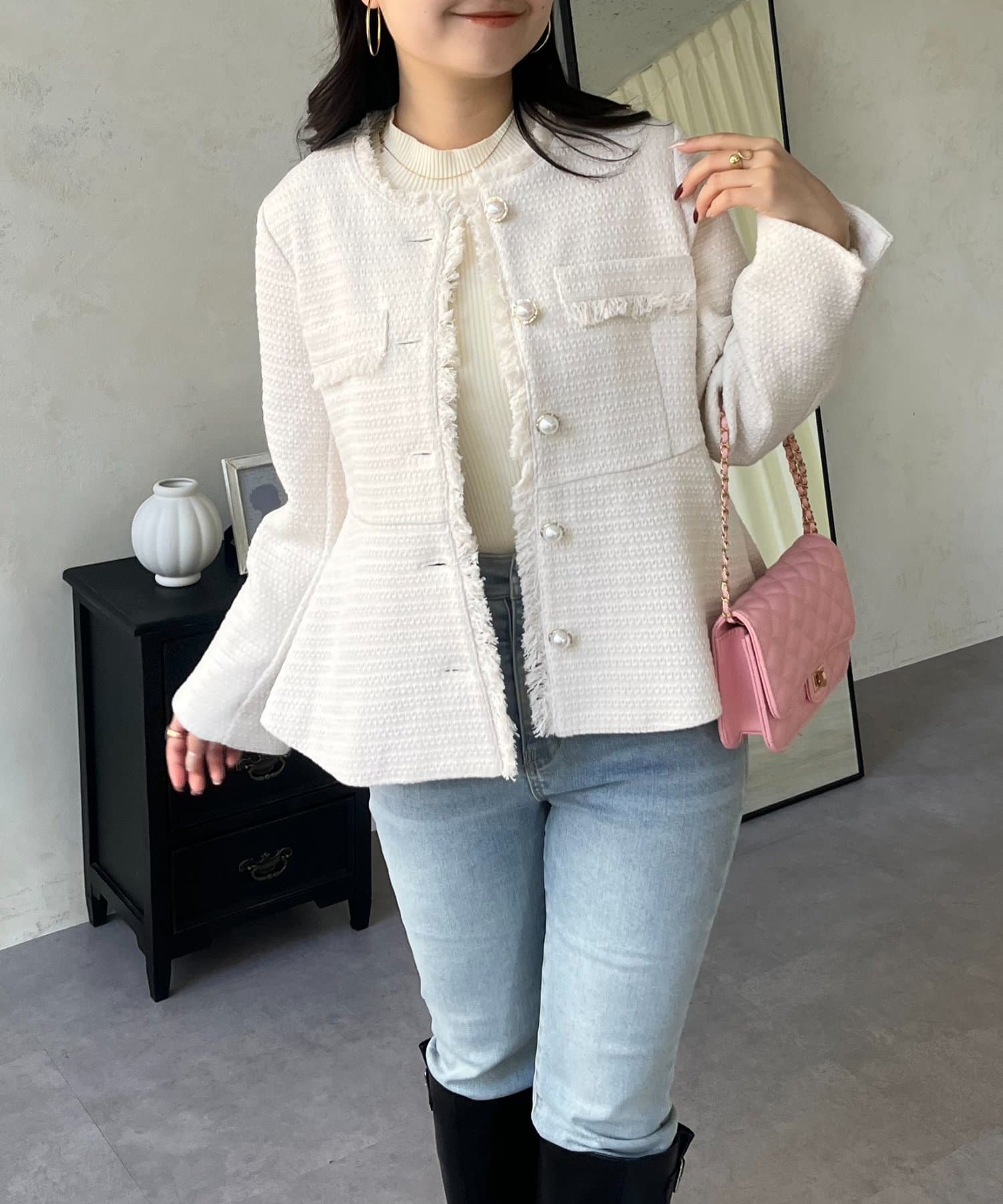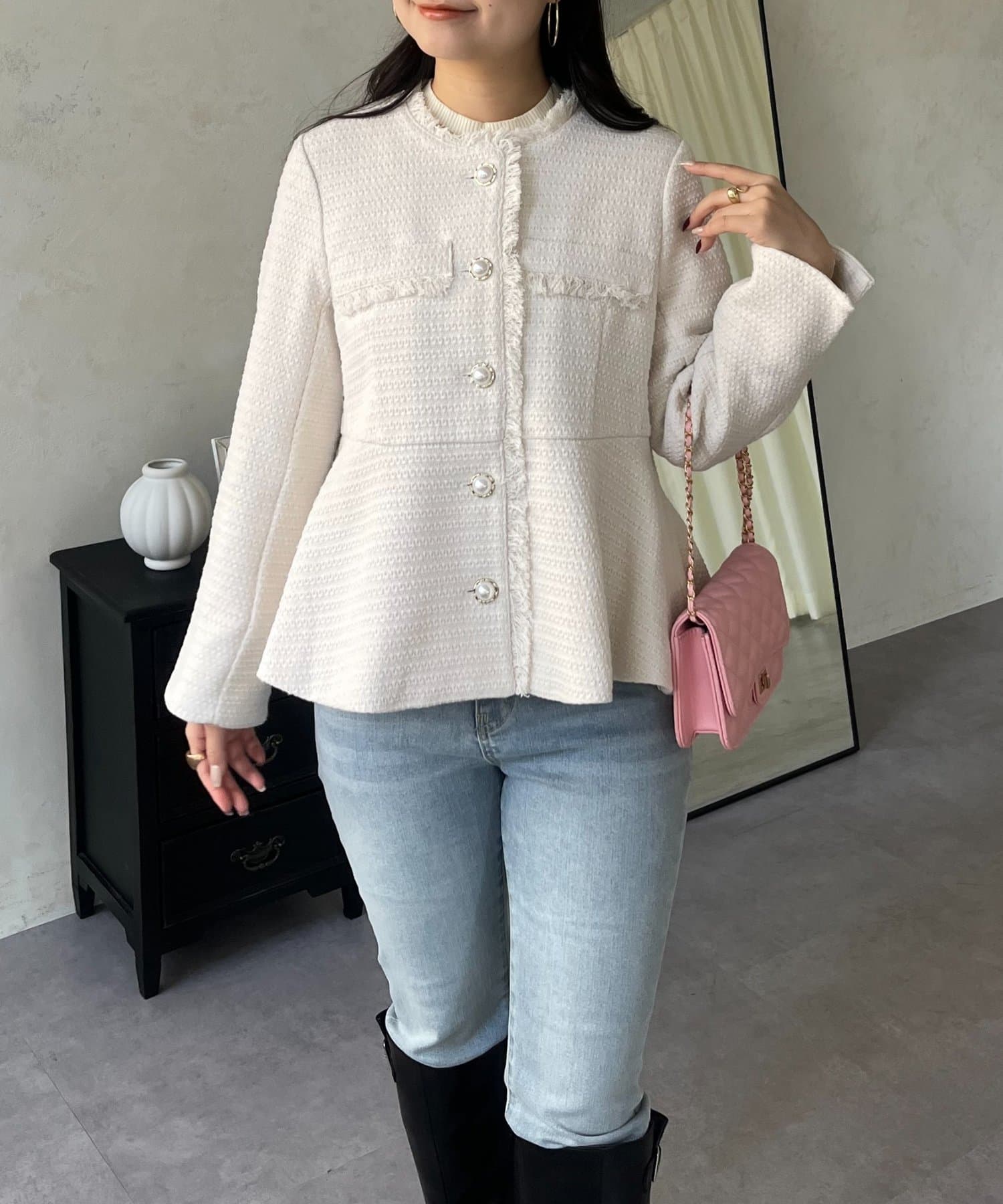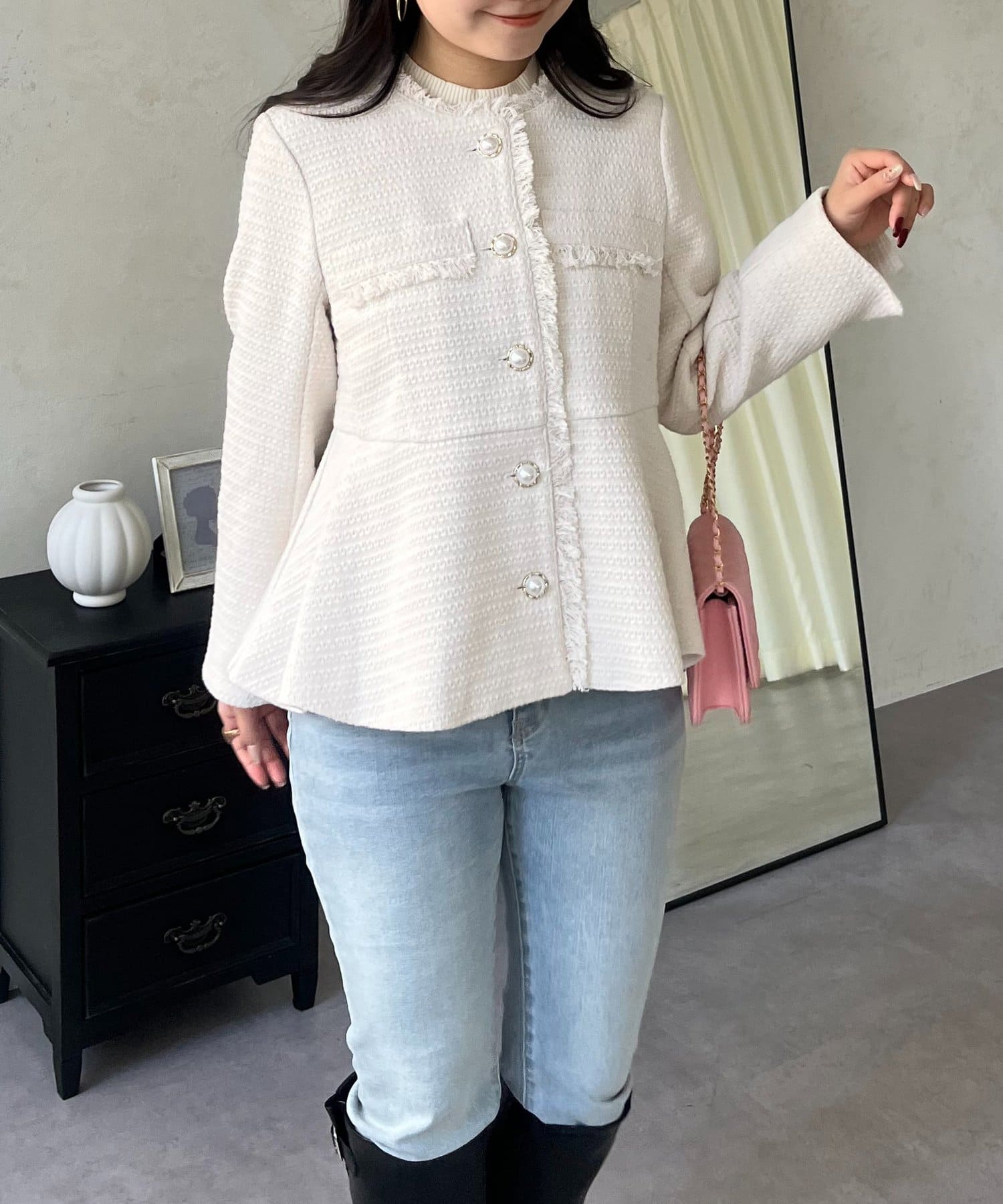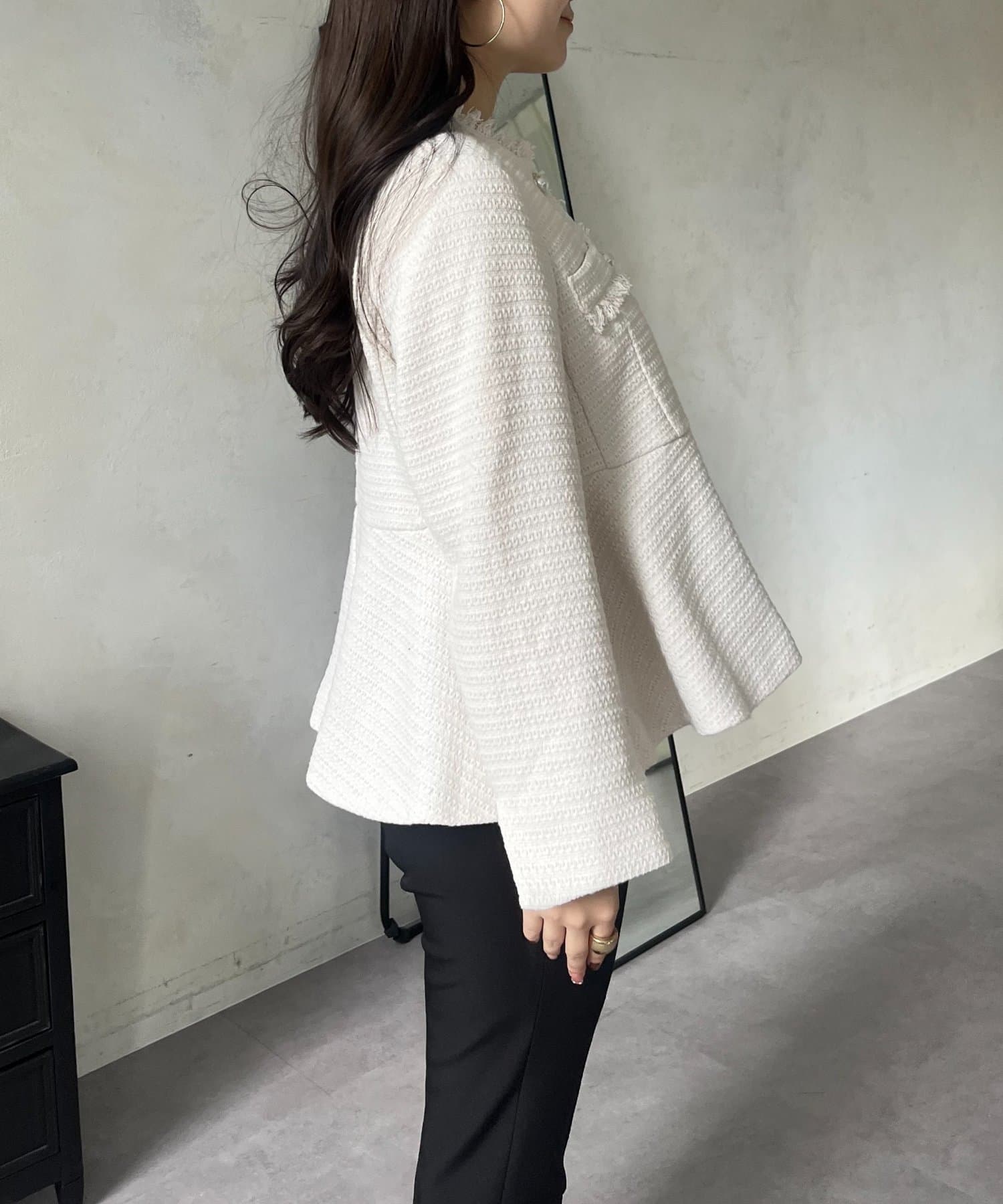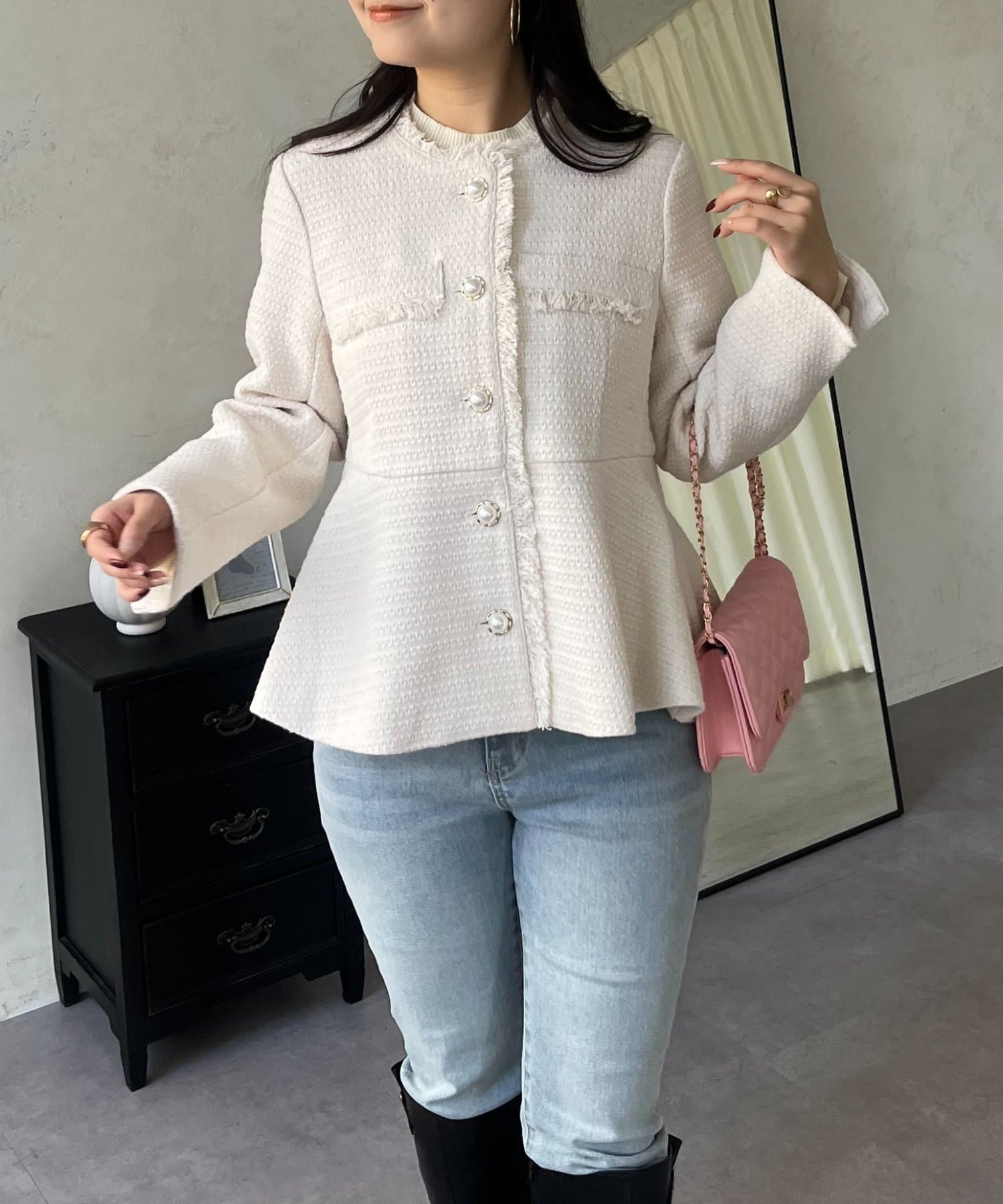パールボタンペプラムツイードジャケット