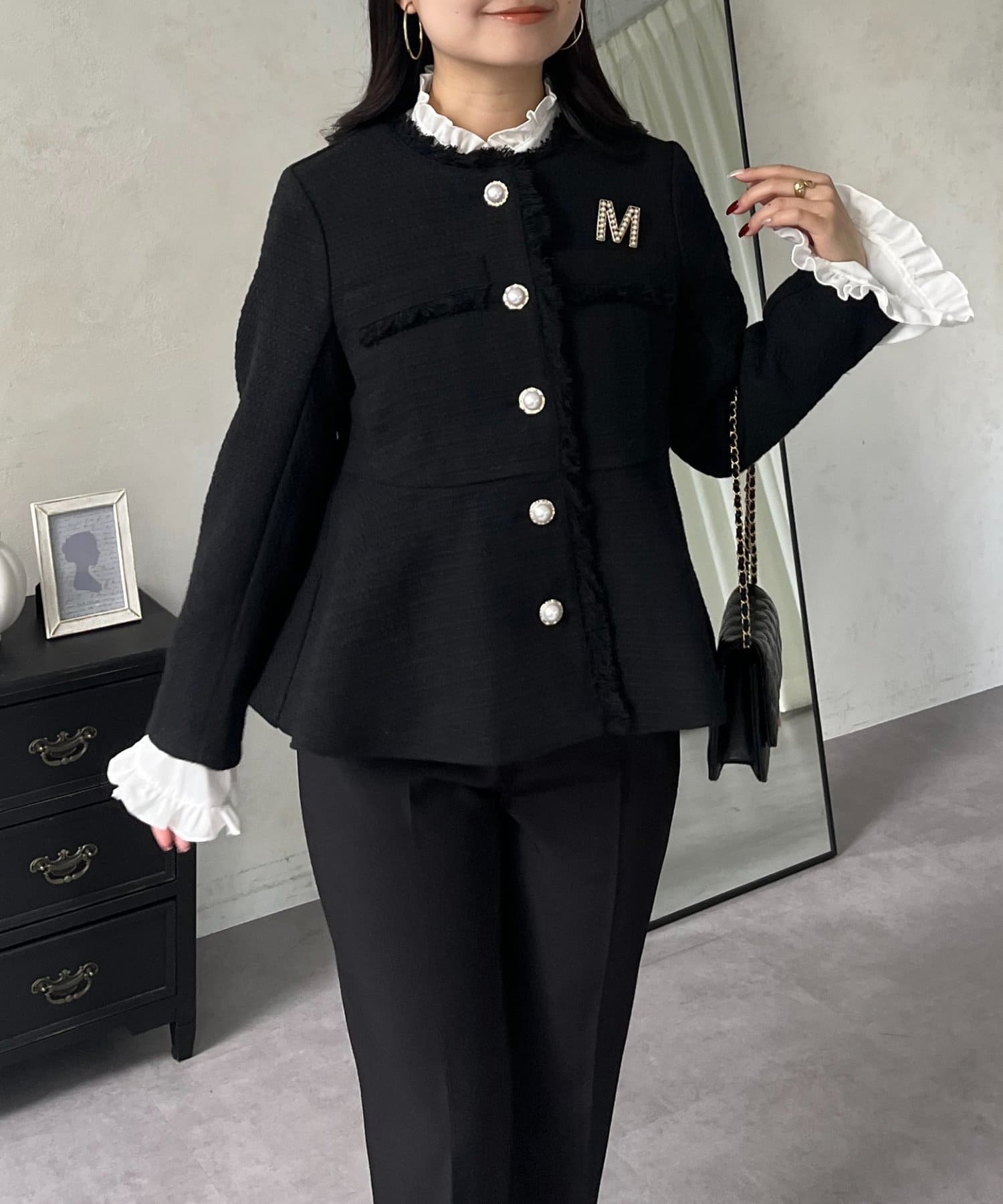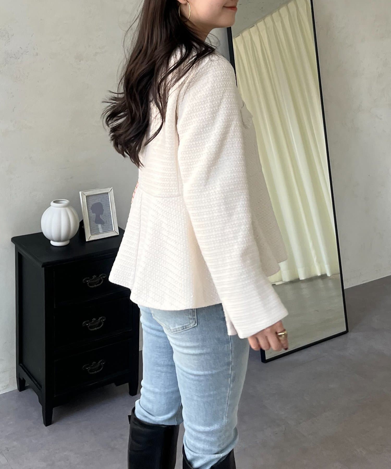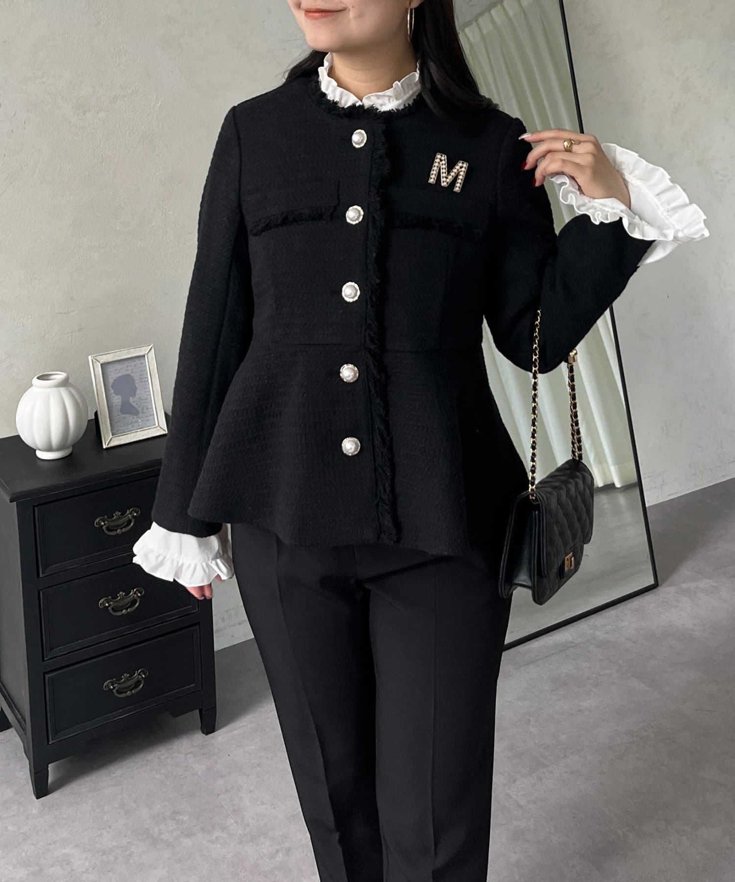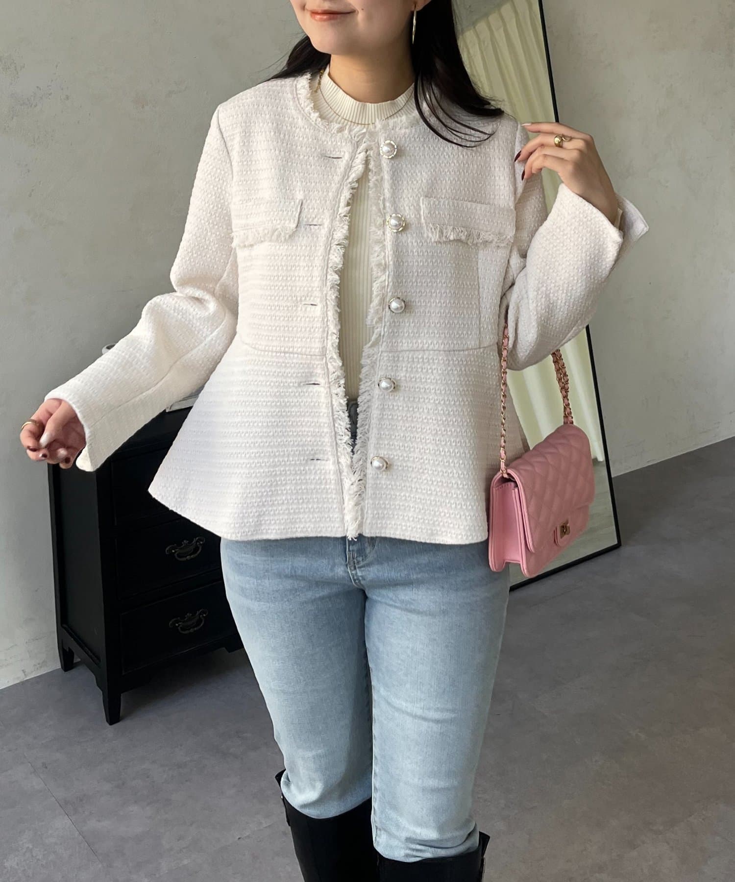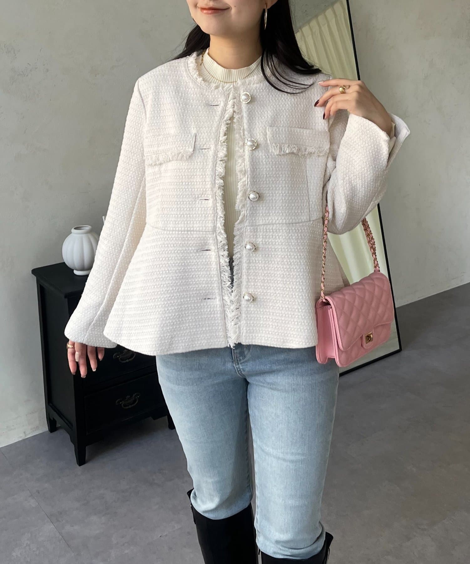 パールボタンペプラムツイードジャケット