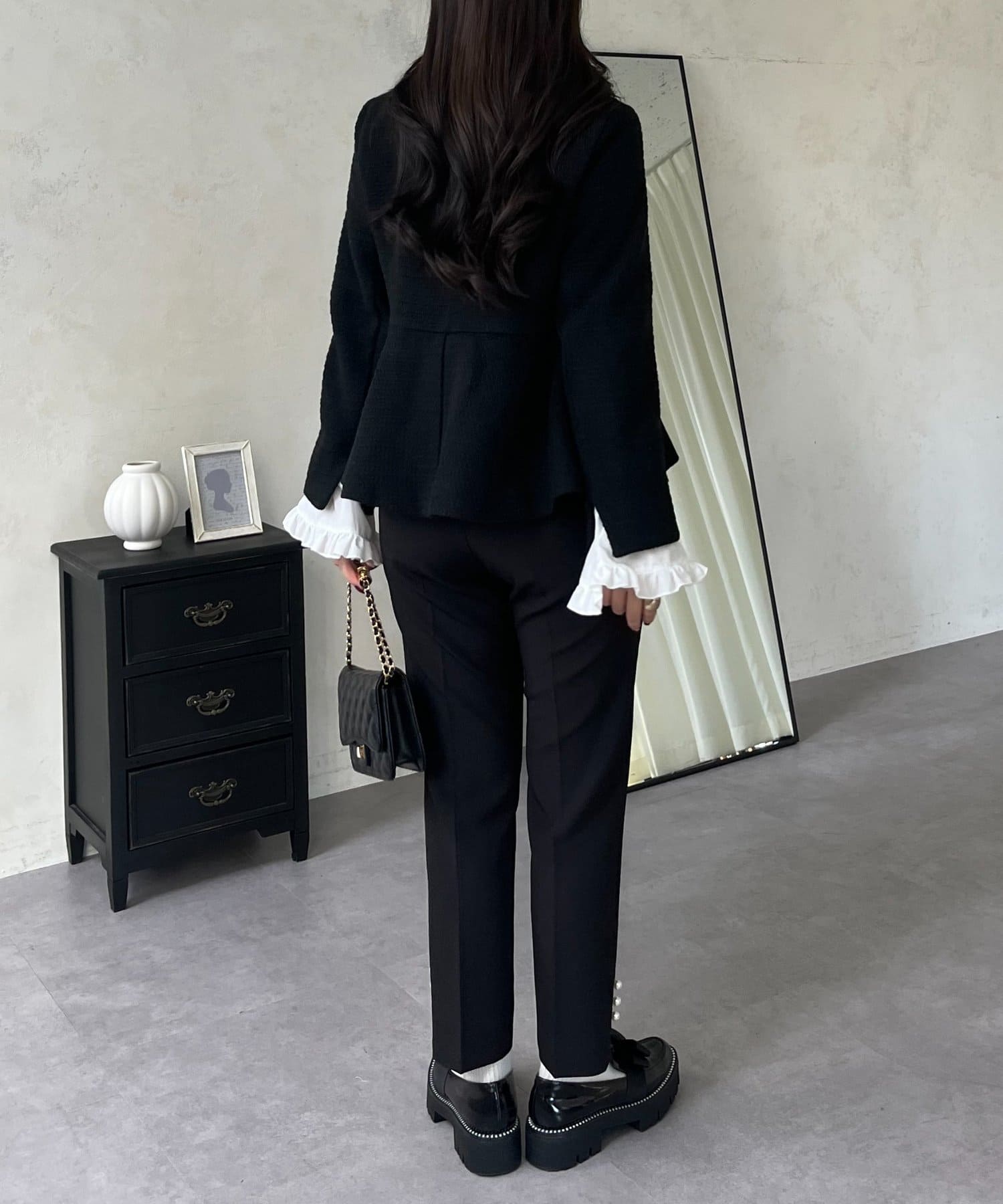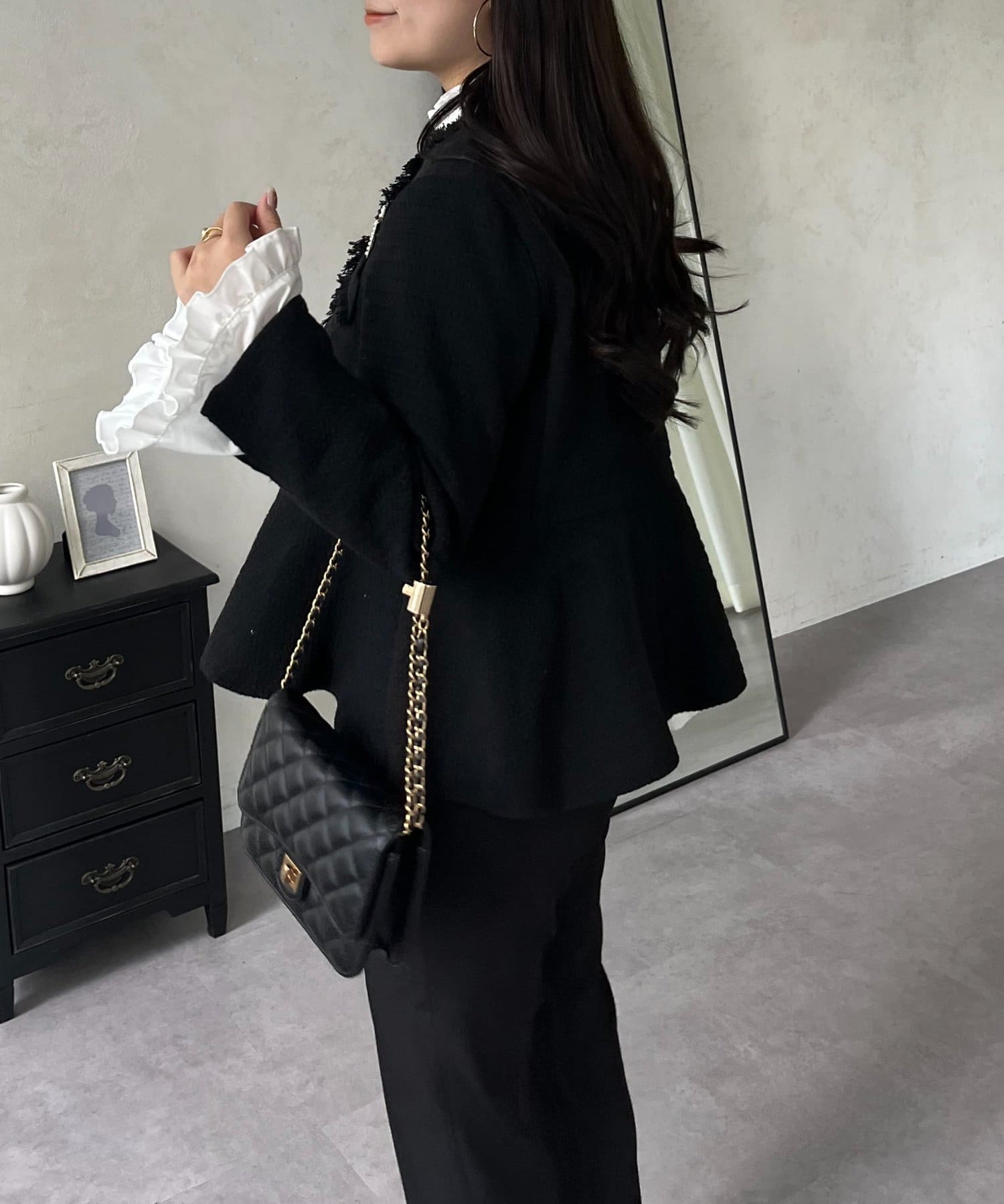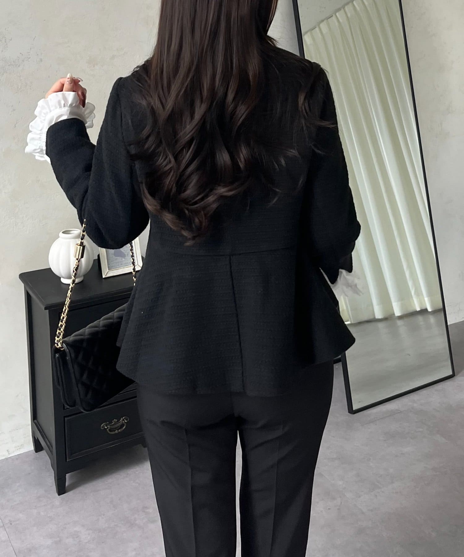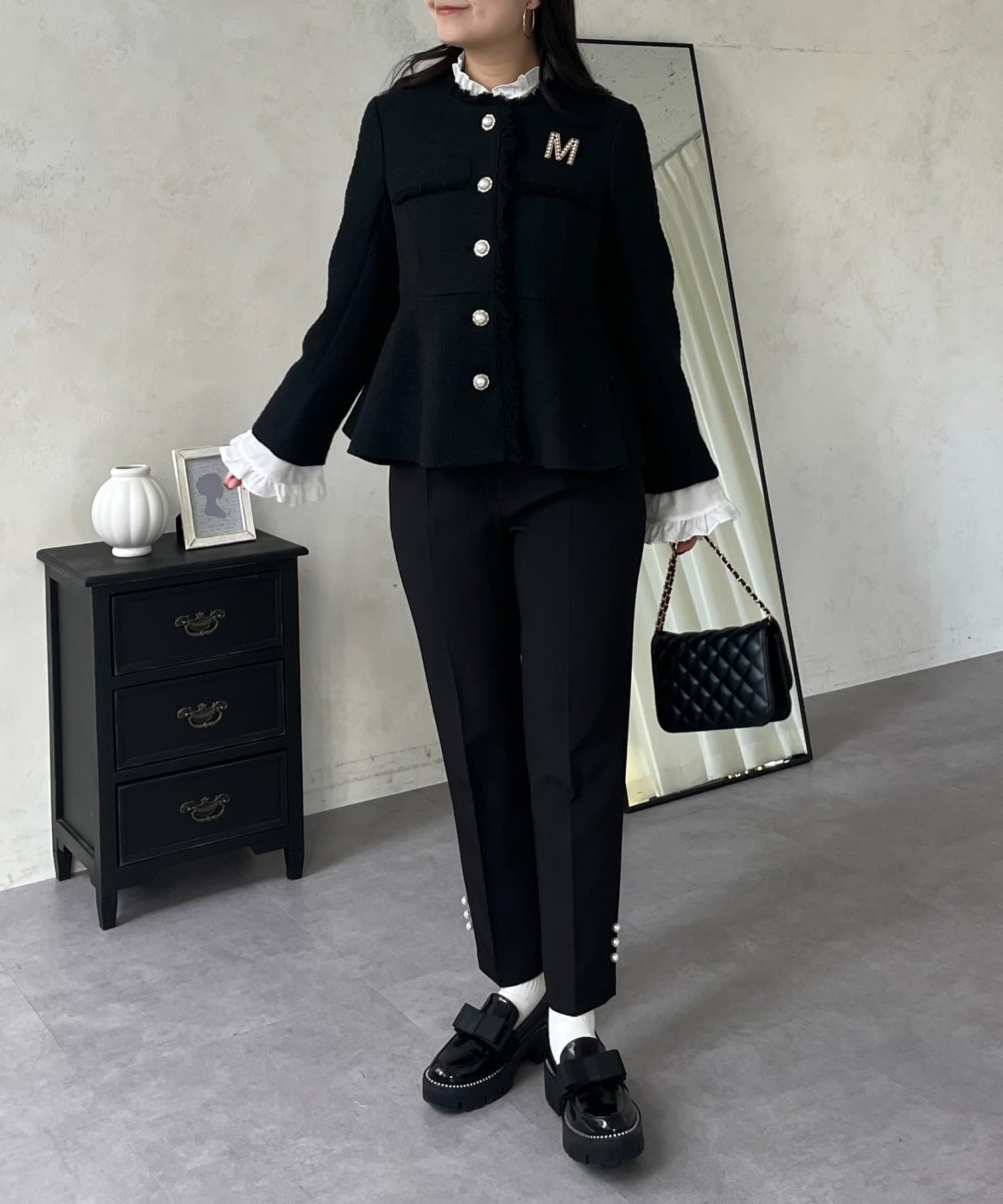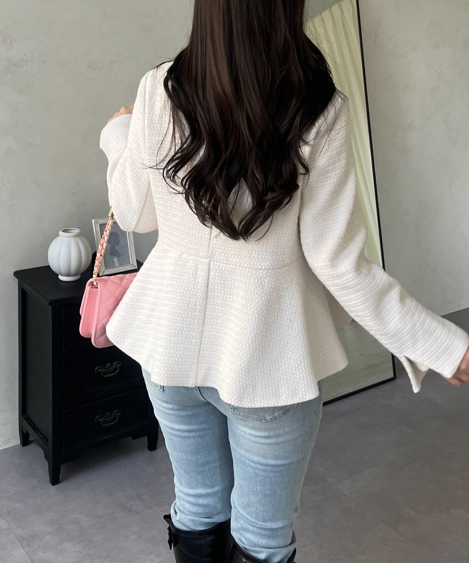 パールボタンペプラムツイードジャケット
