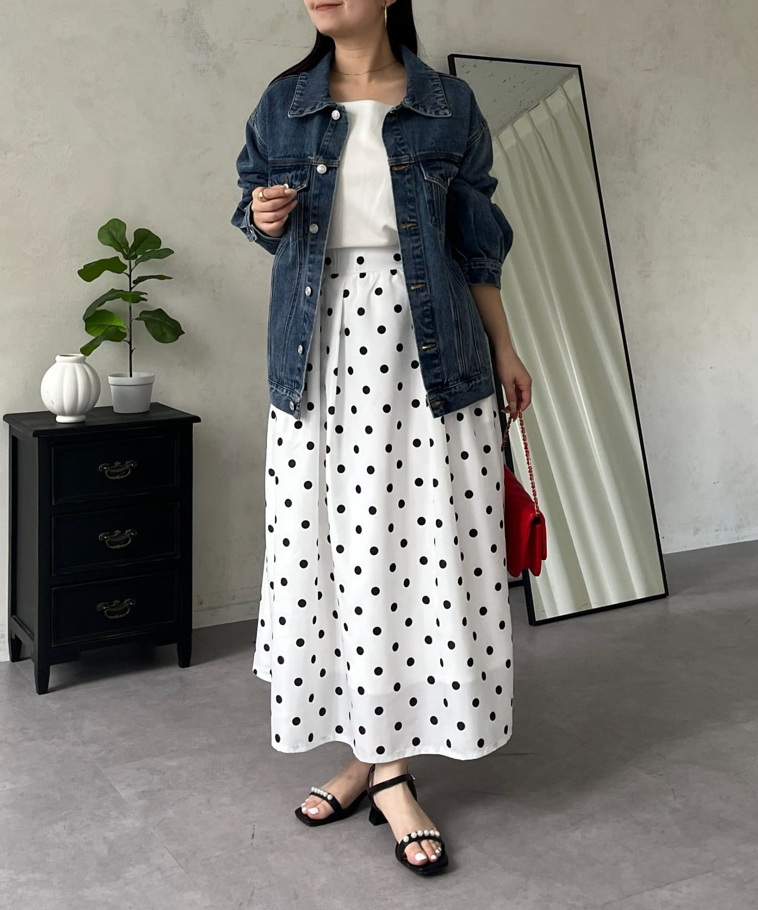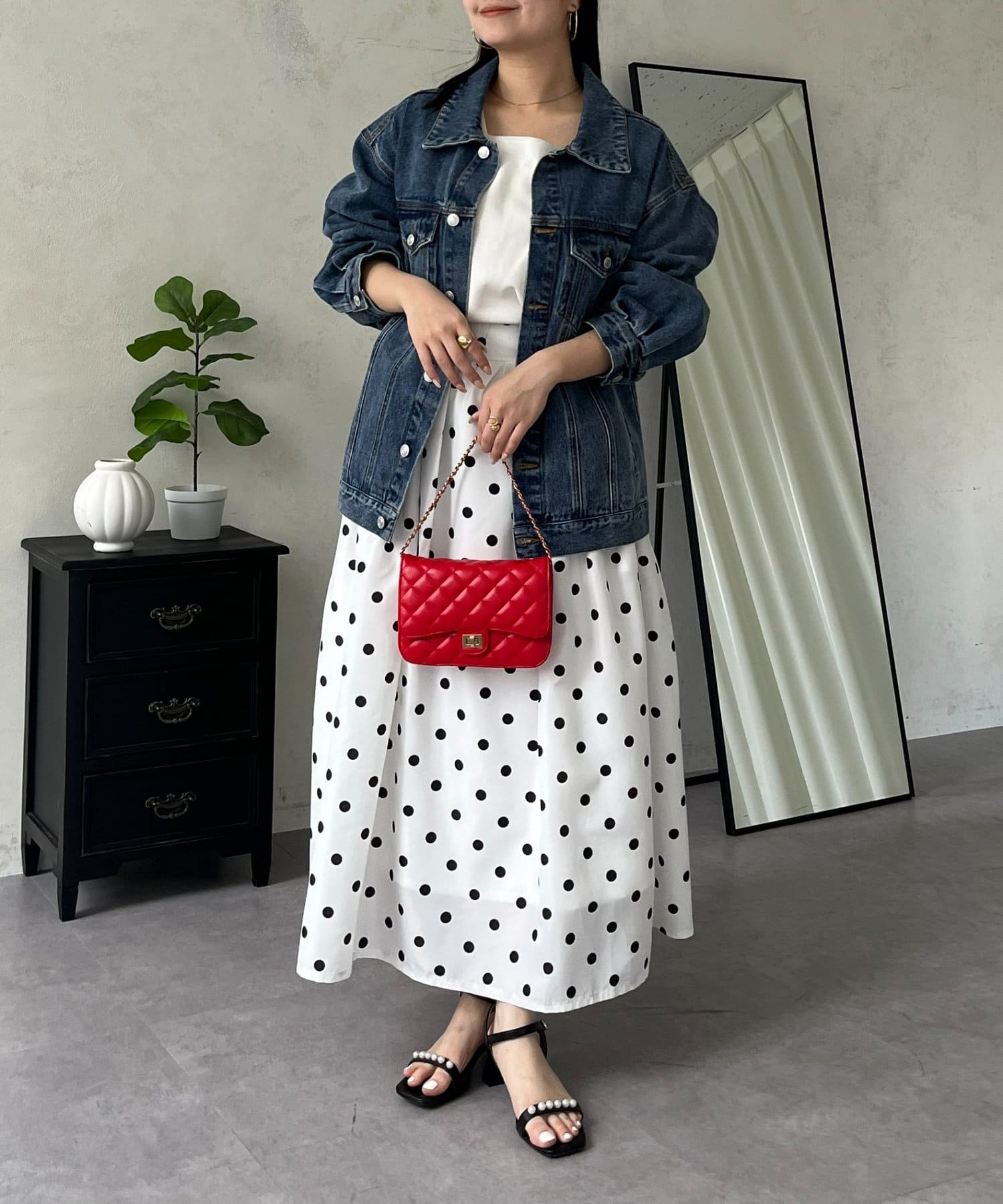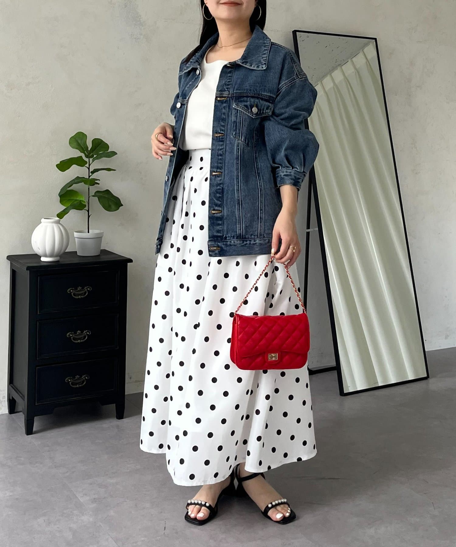 ●ワンピースやスカートに合わせた甘辛MIXスタイルから、パンツ合わせの定番カジュアルまで幅広く活躍