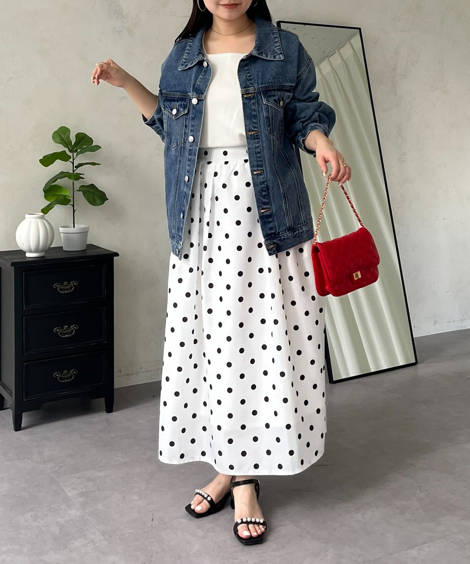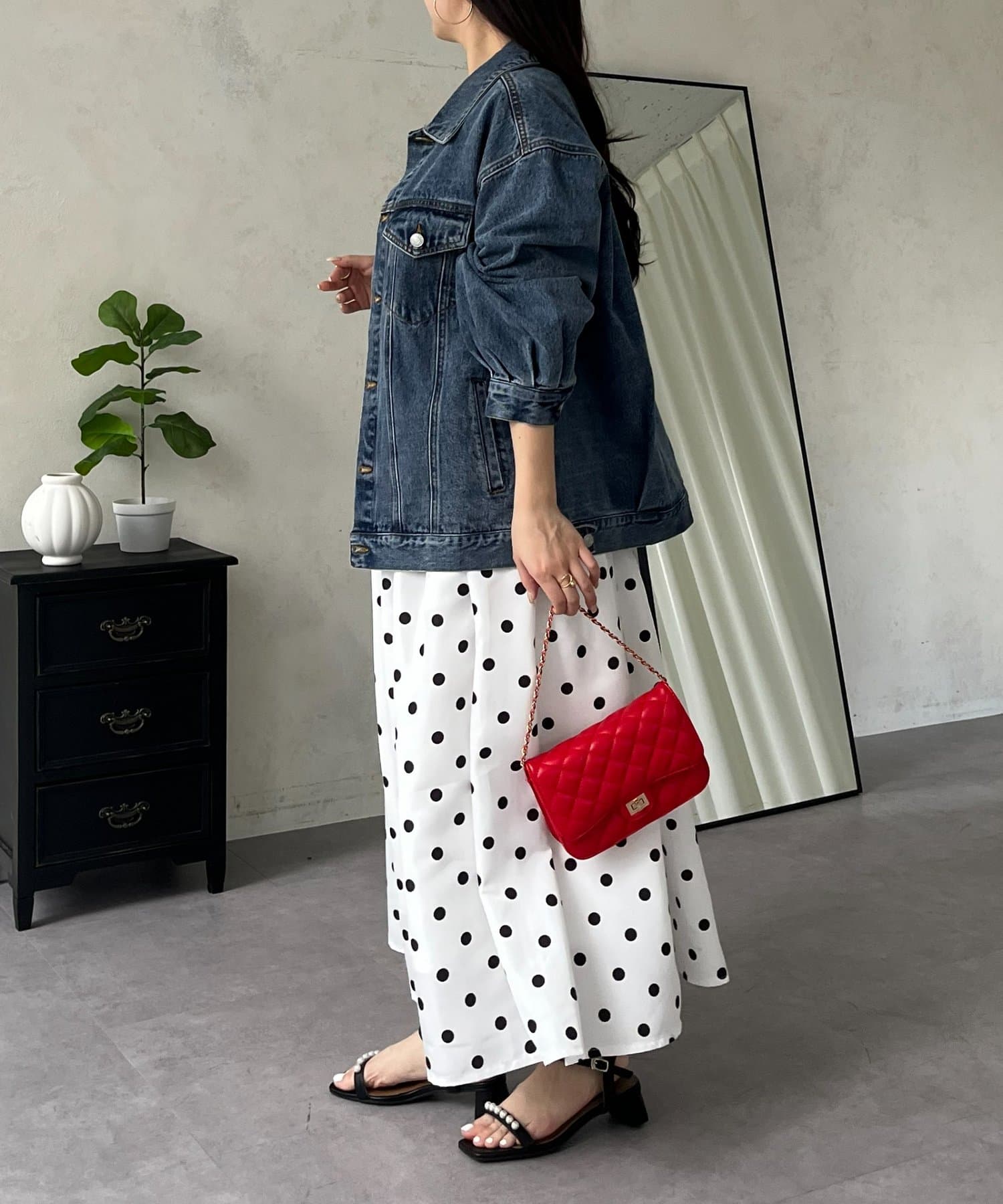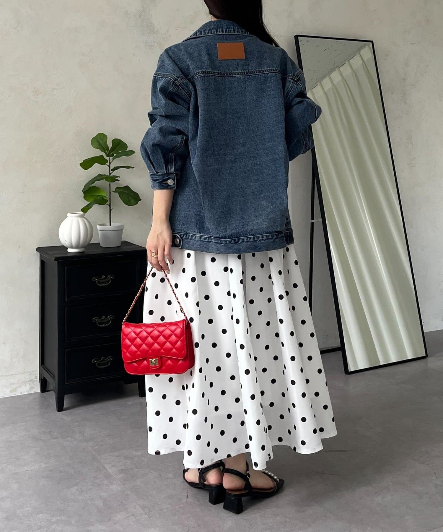 ●ワンピースやスカートに合わせた甘辛MIXスタイルから、パンツ合わせの定番カジュアルまで幅広く活躍
