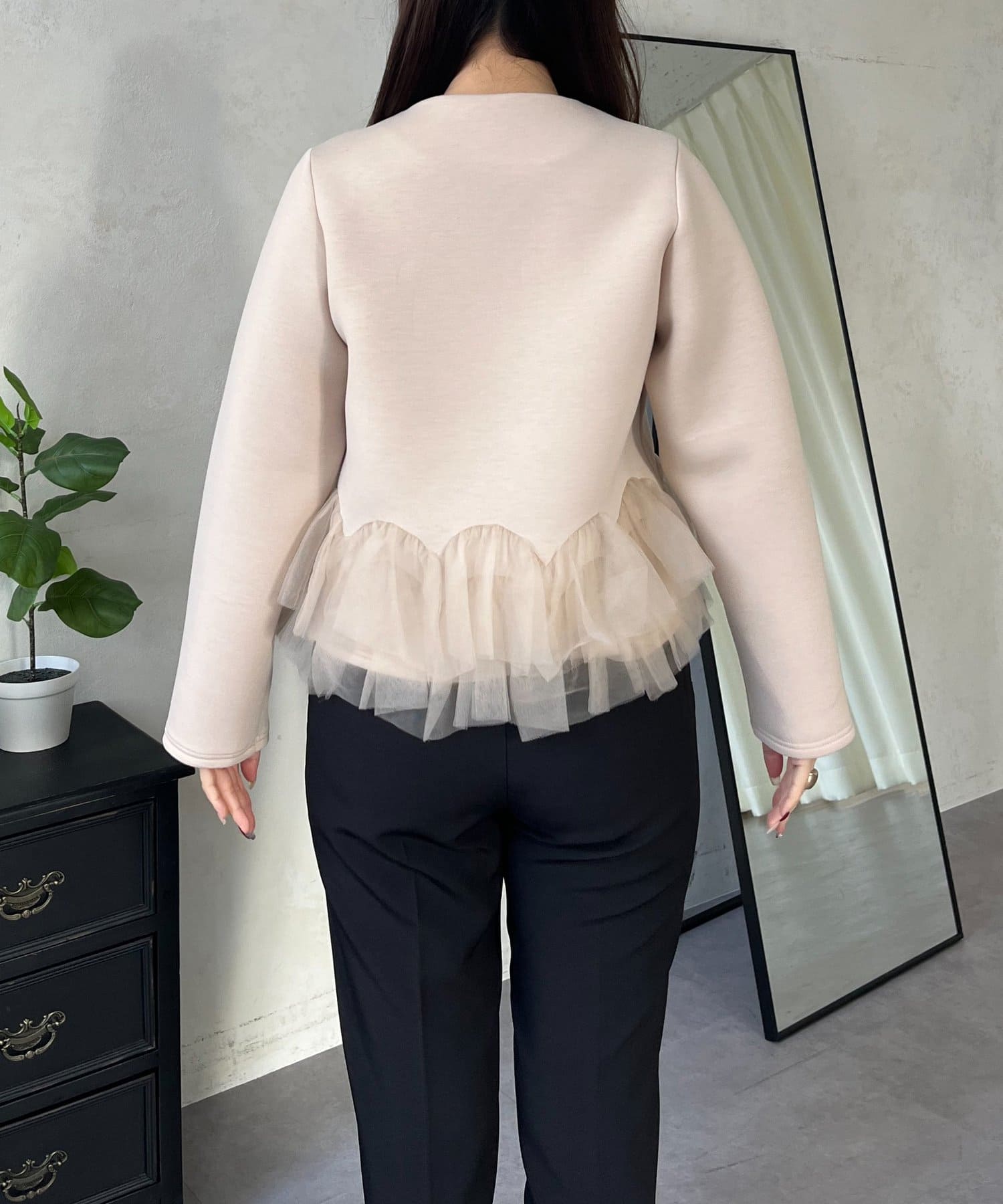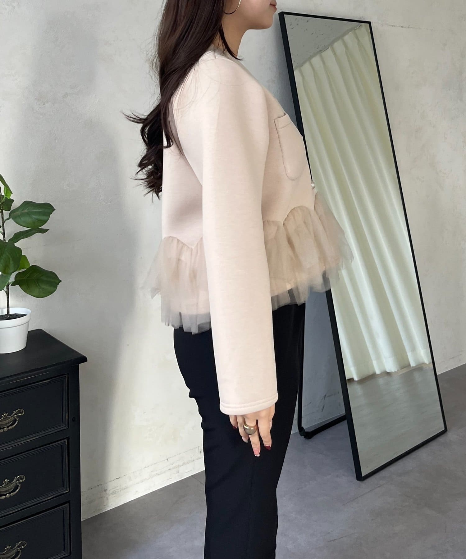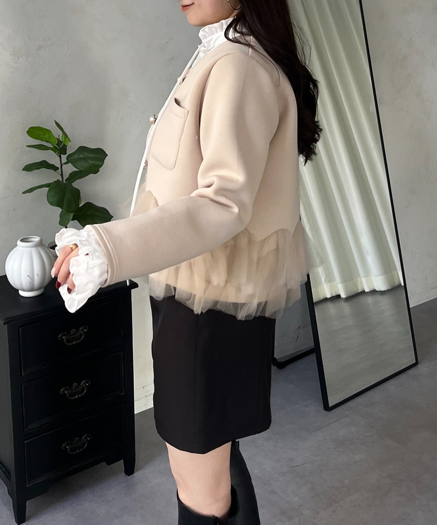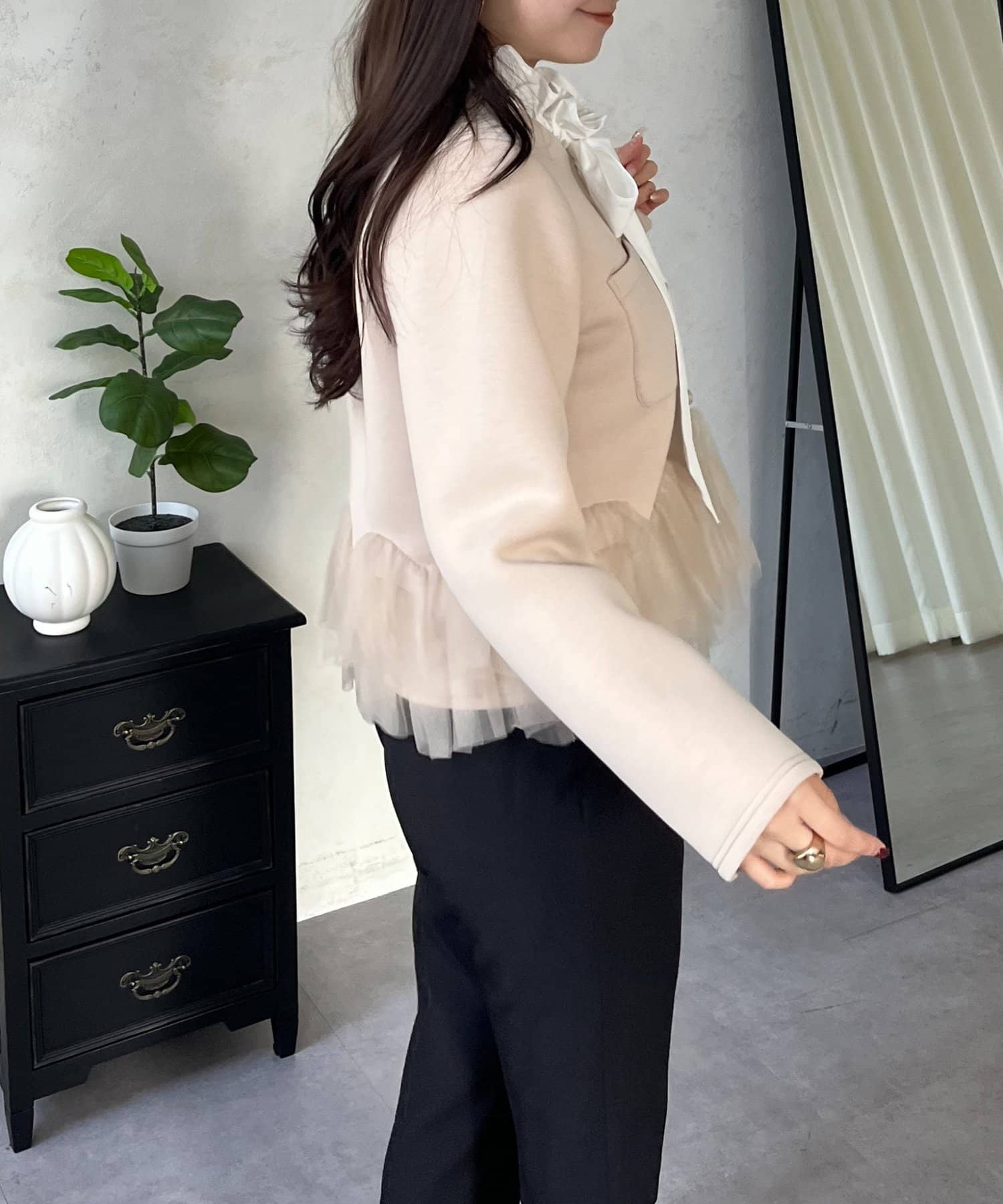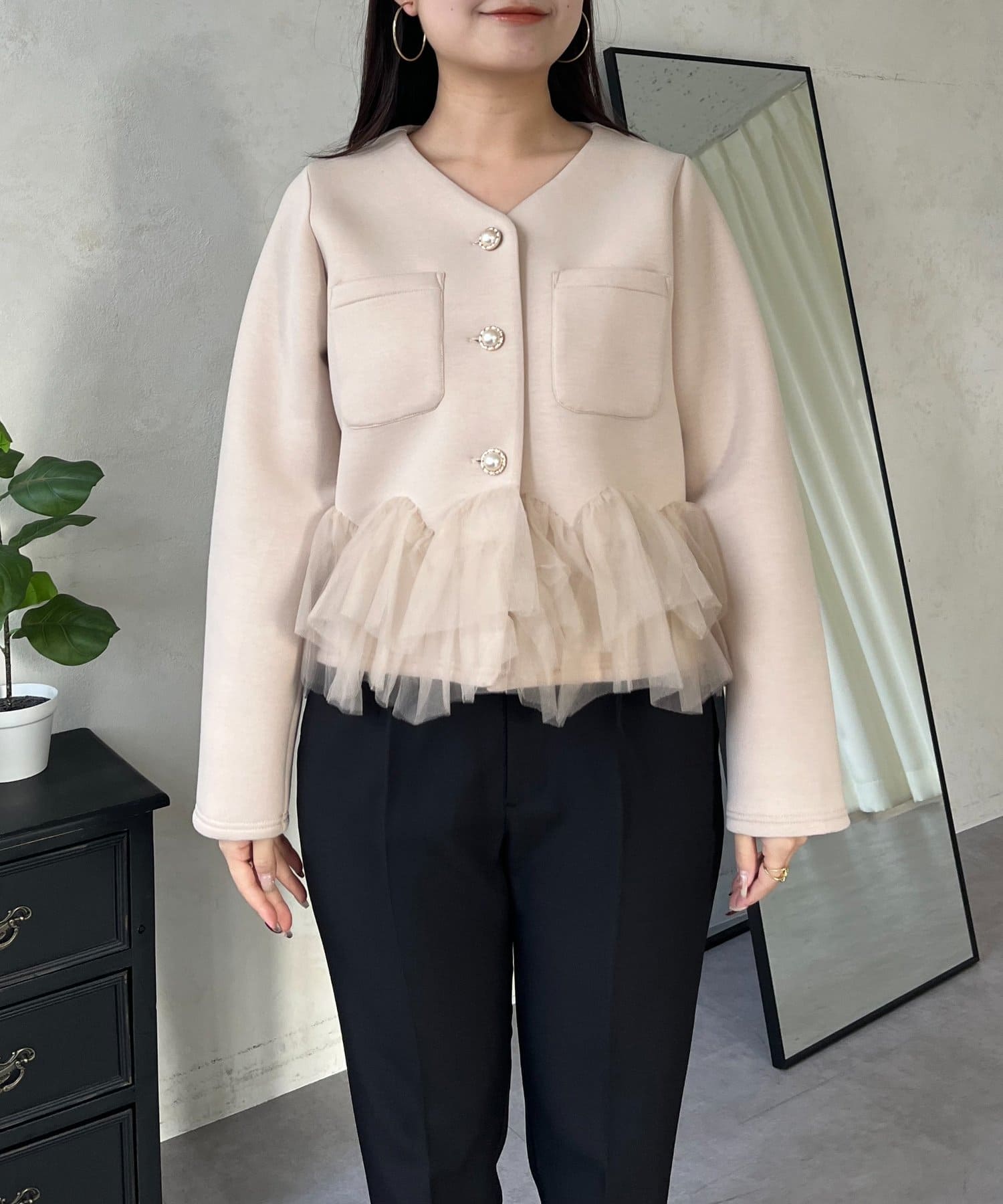 • prose verse(プロズヴェール) チュールフリルダンボールVネックジャケット