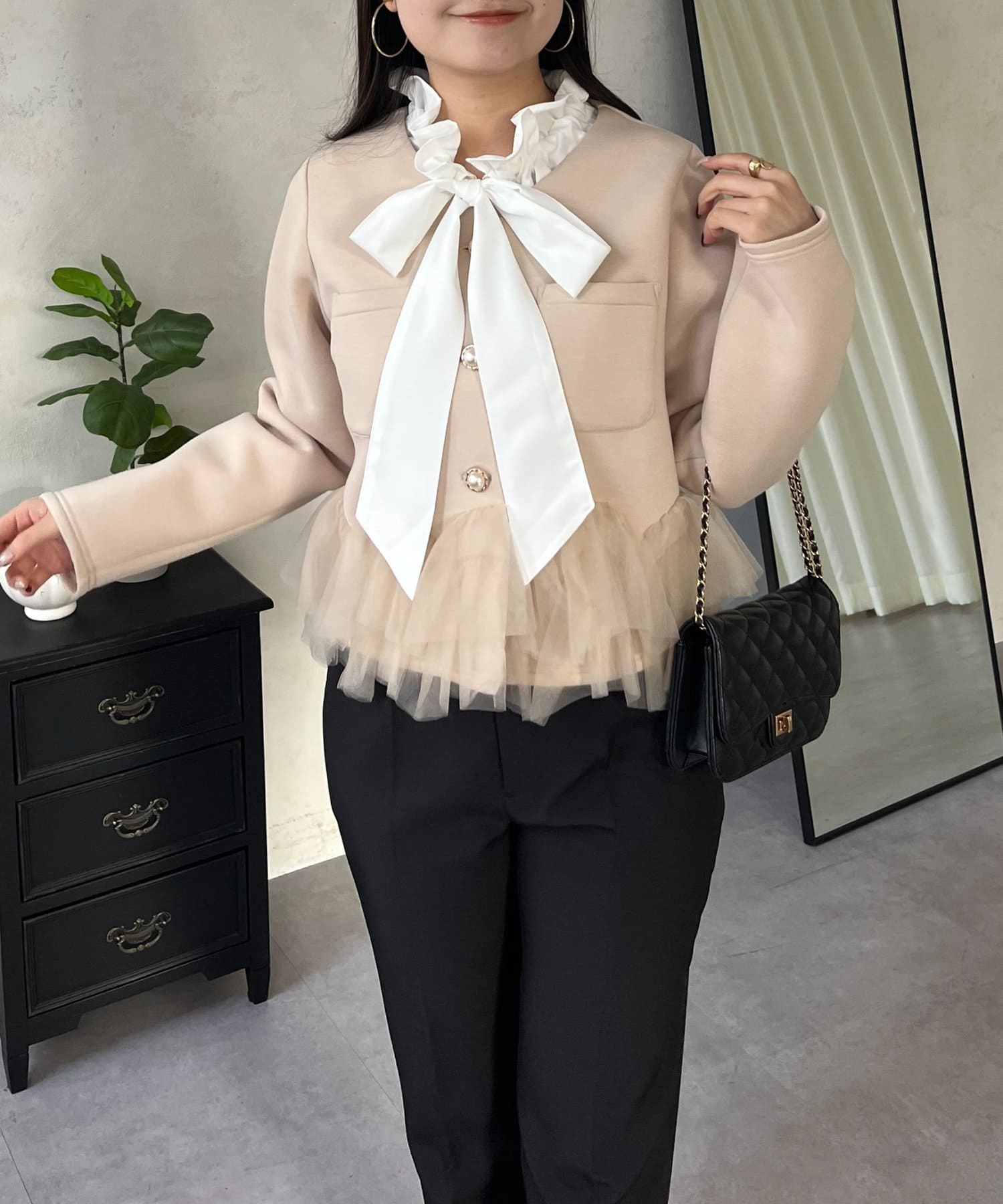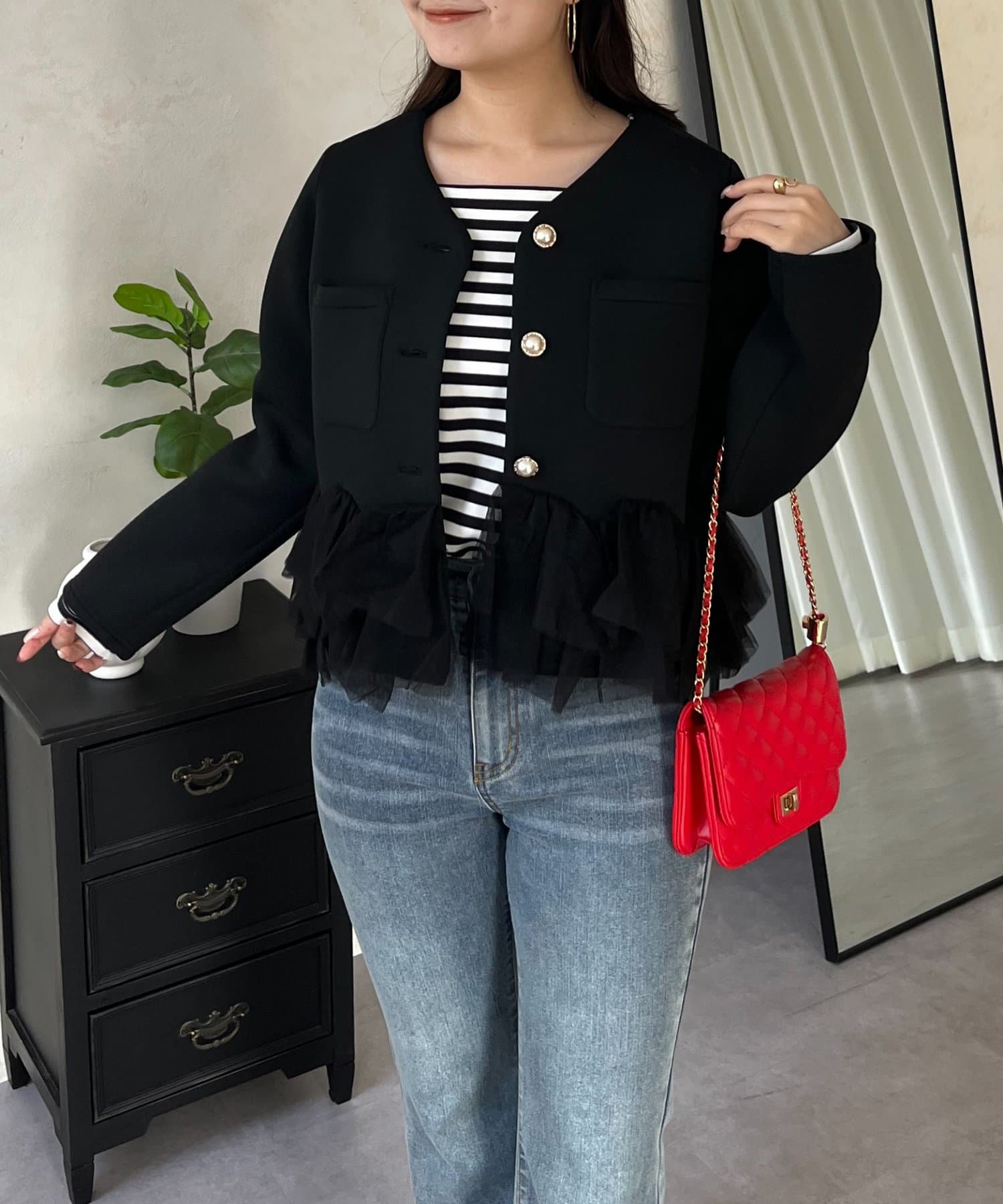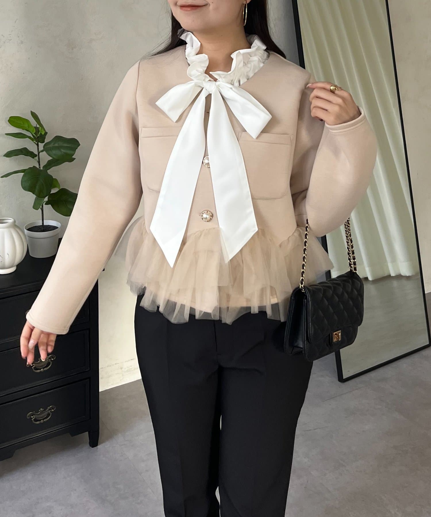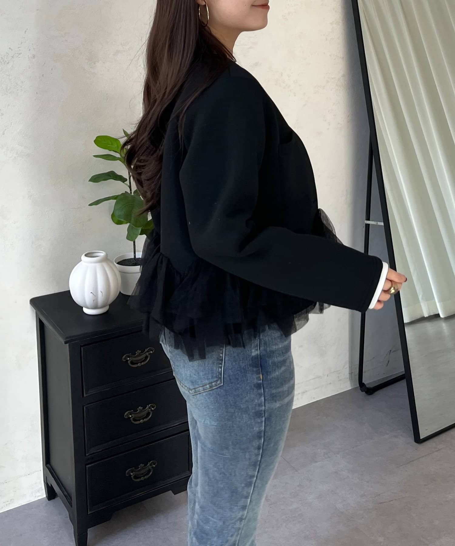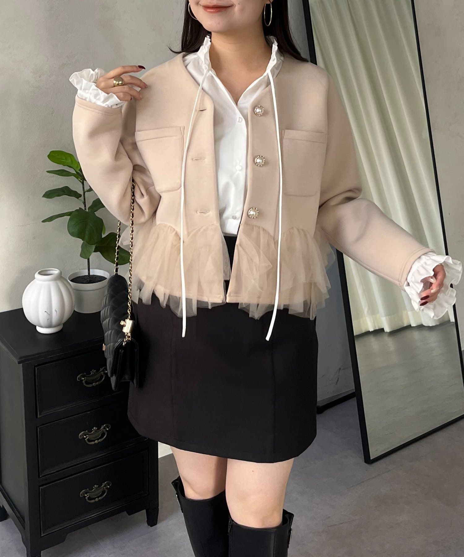 • prose verse(プロズヴェール) チュールフリルダンボールVネックジャケット