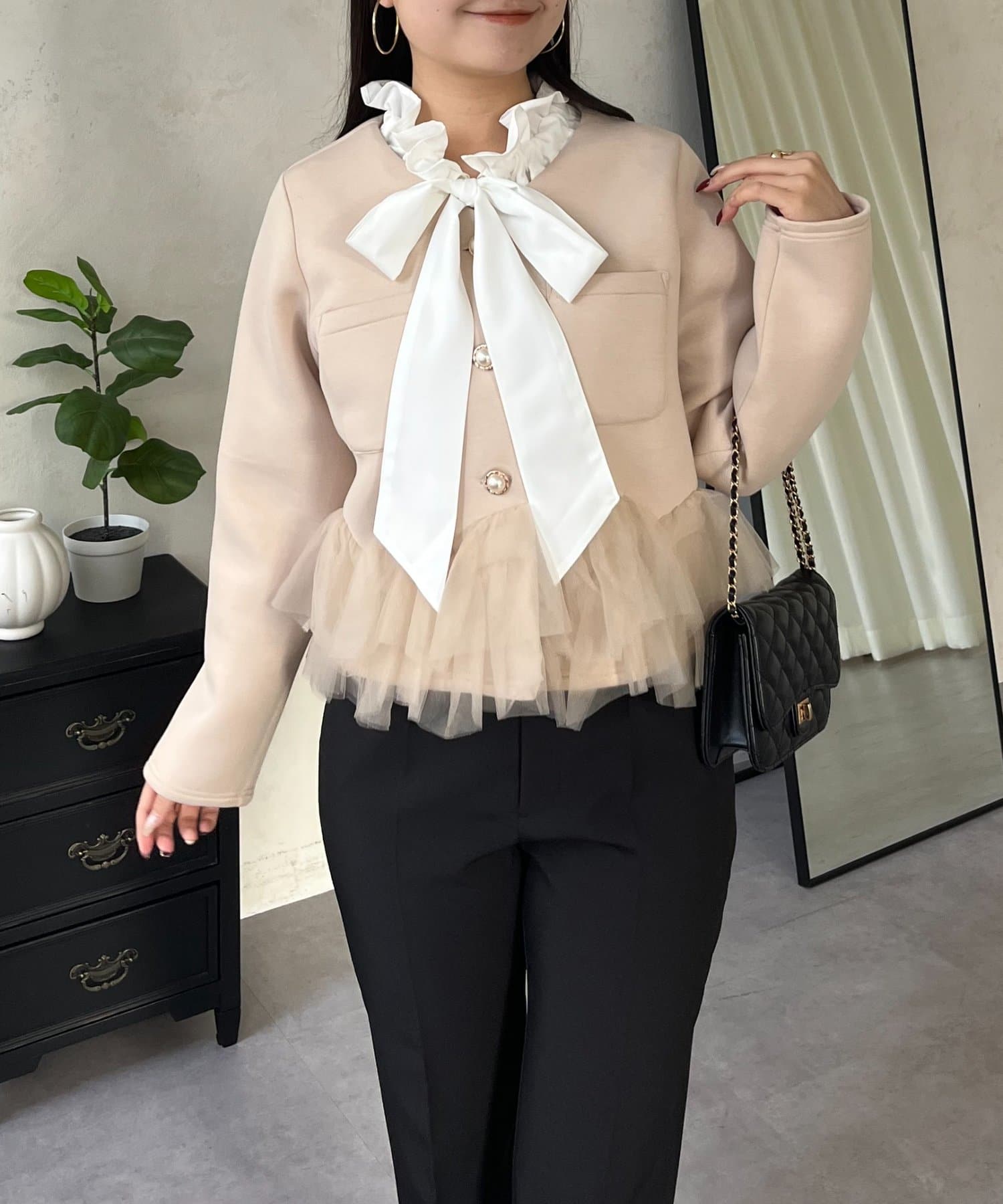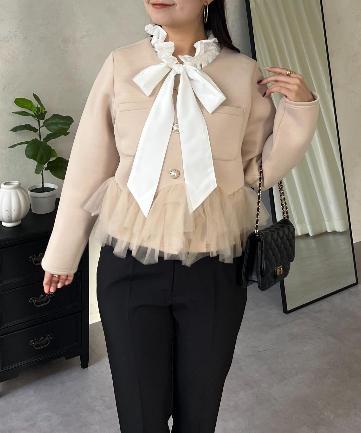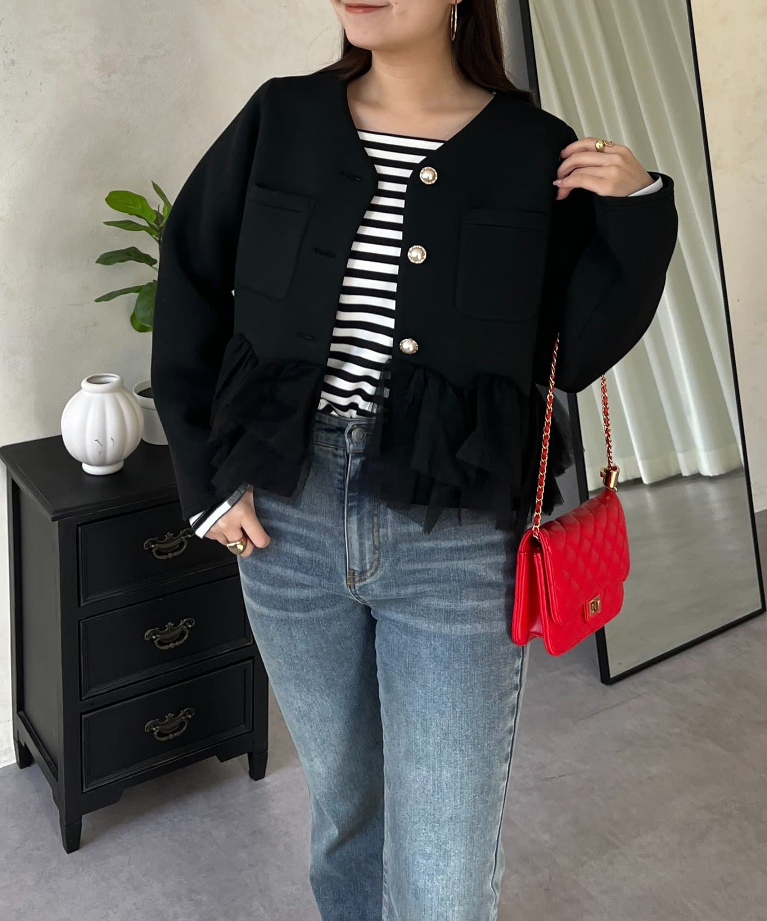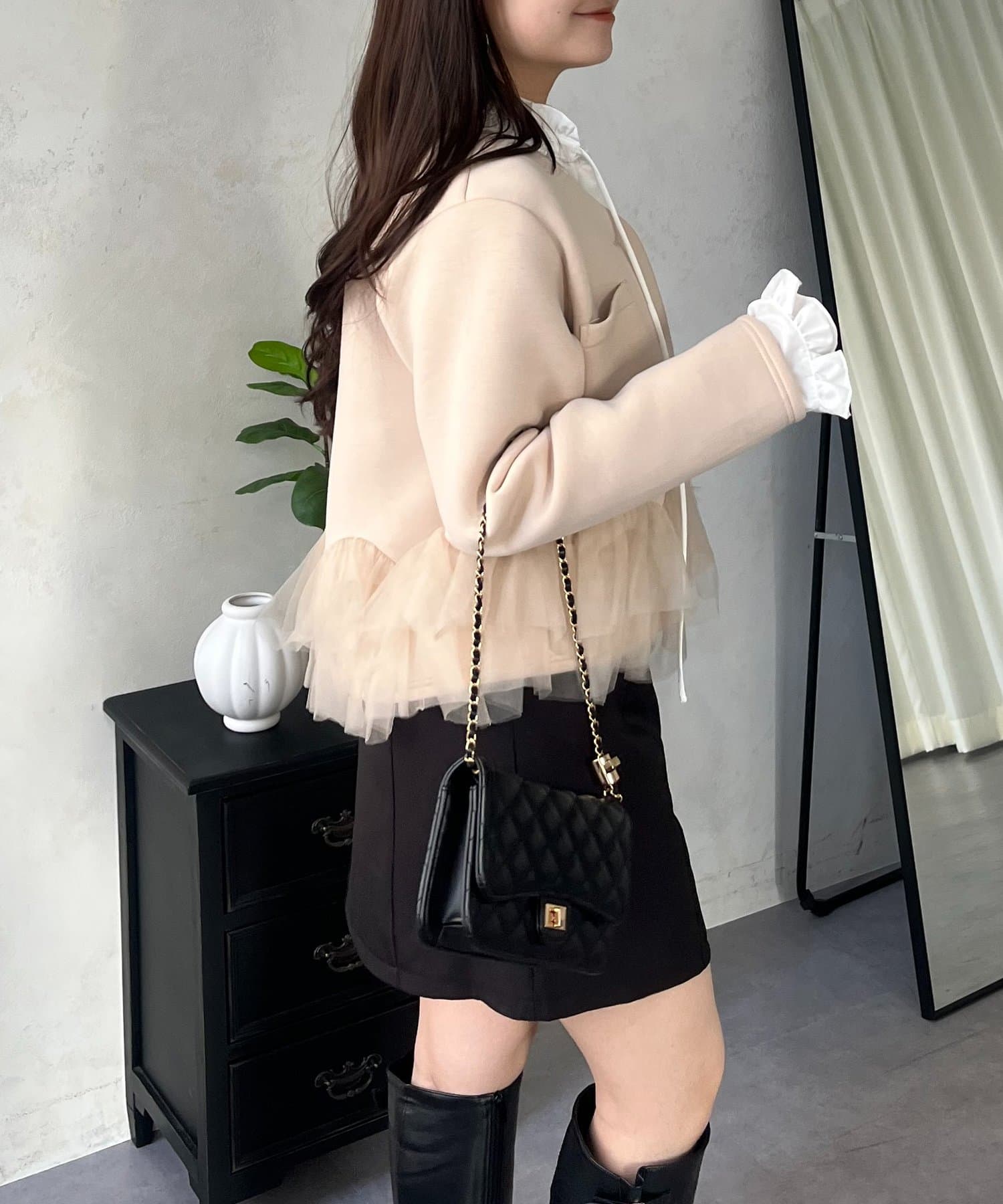 • prose verse(プロズヴェール) チュールフリルダンボールVネックジャケット