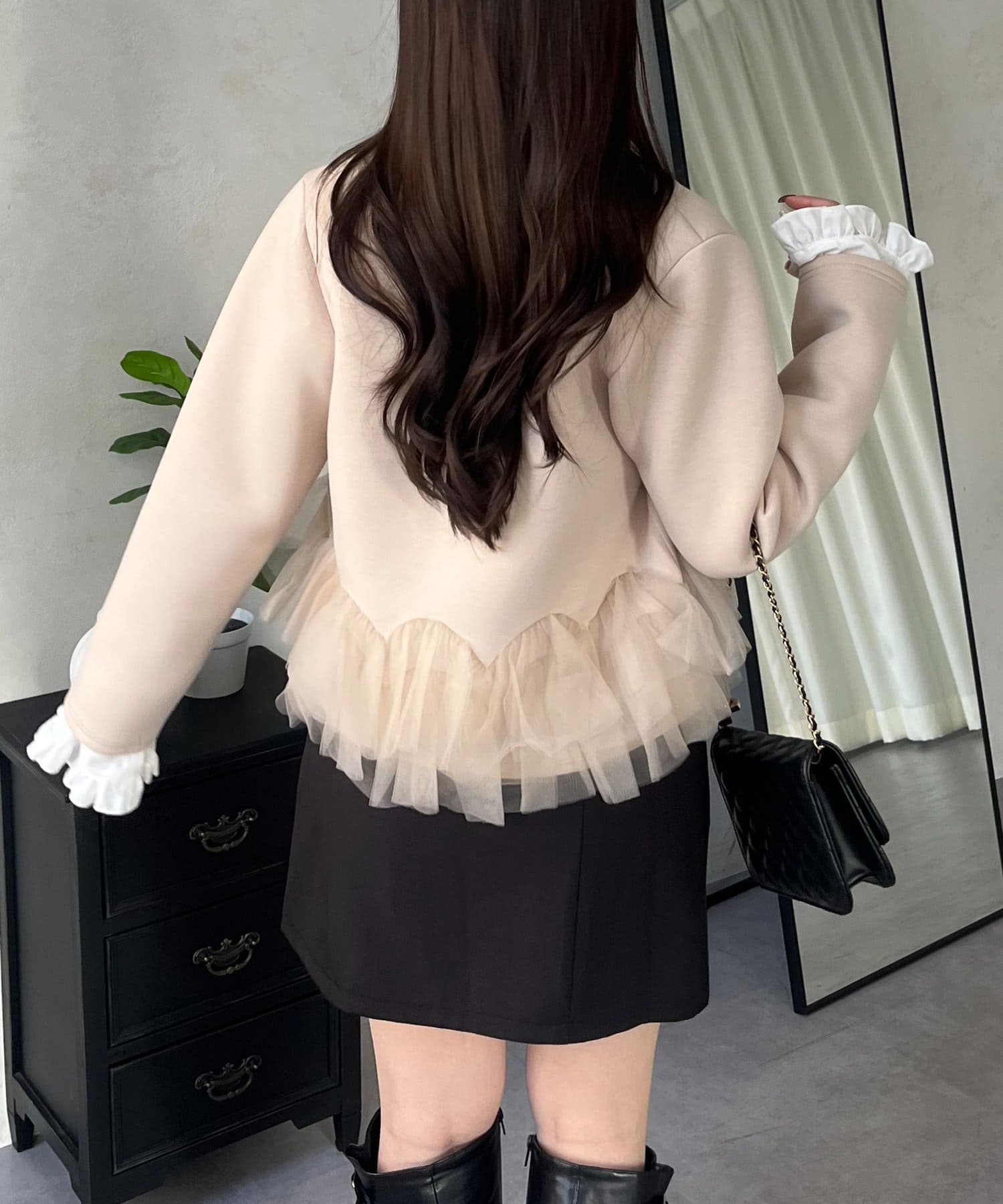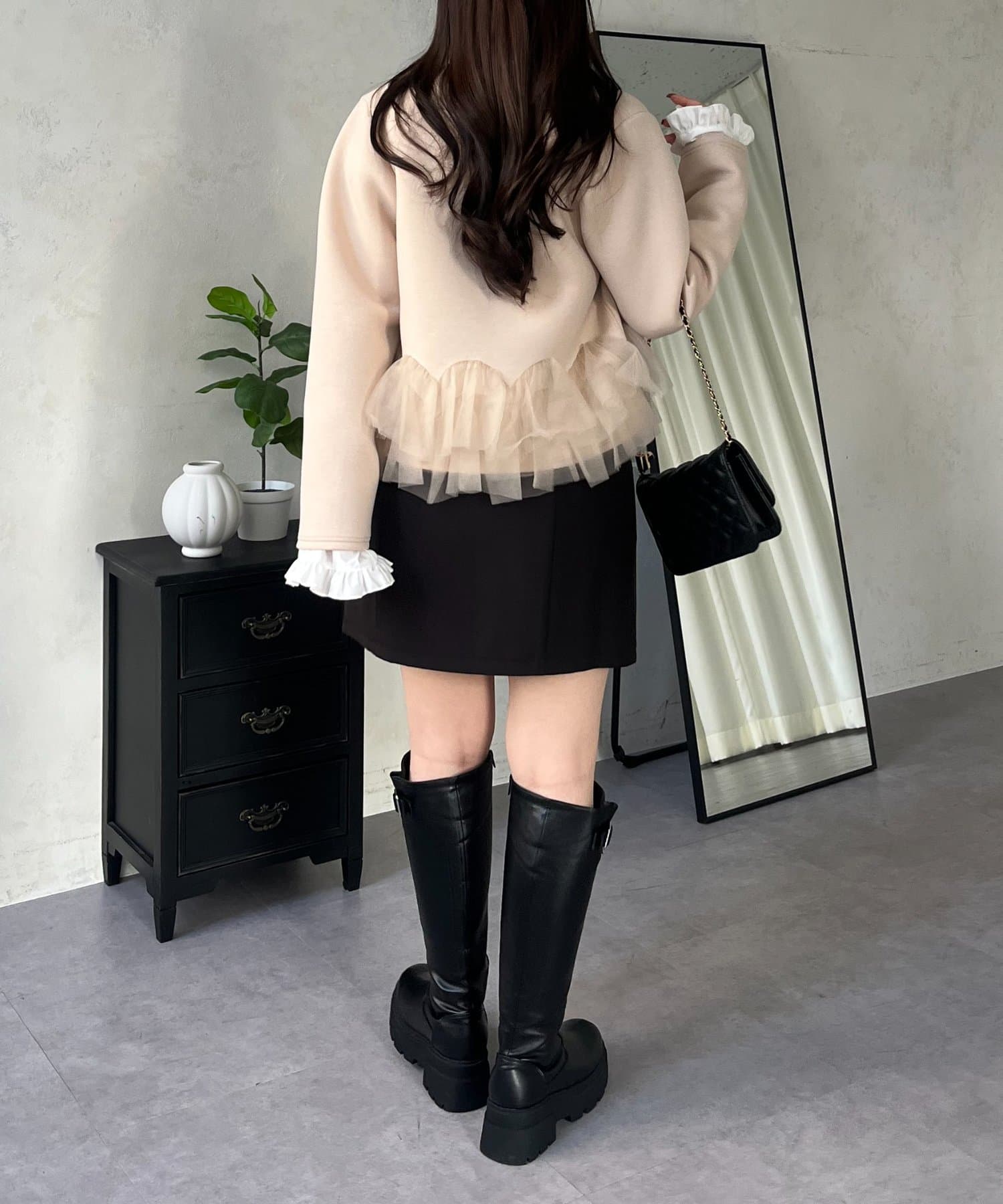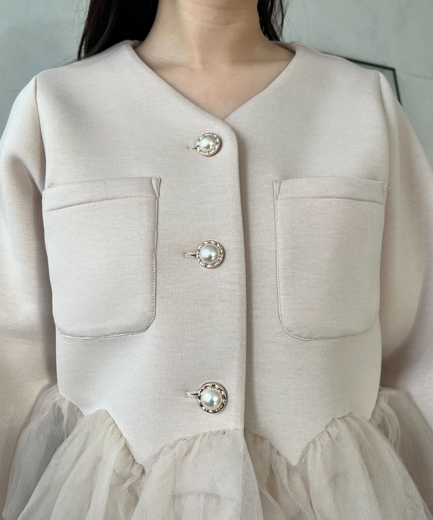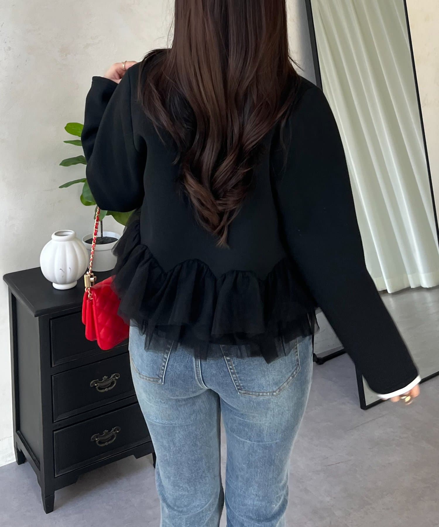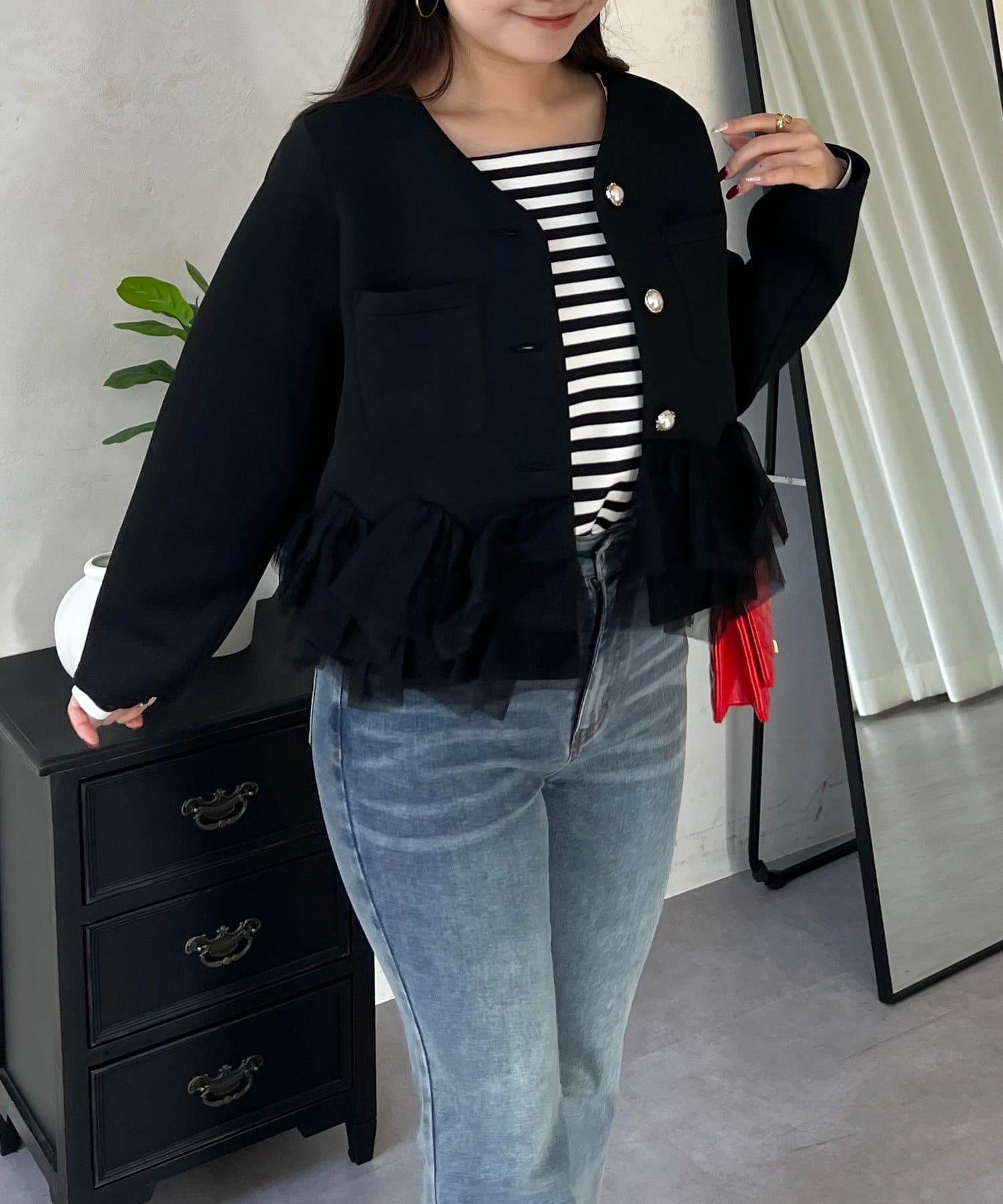 • prose verse(プロズヴェール) チュールフリルダンボールVネックジャケット