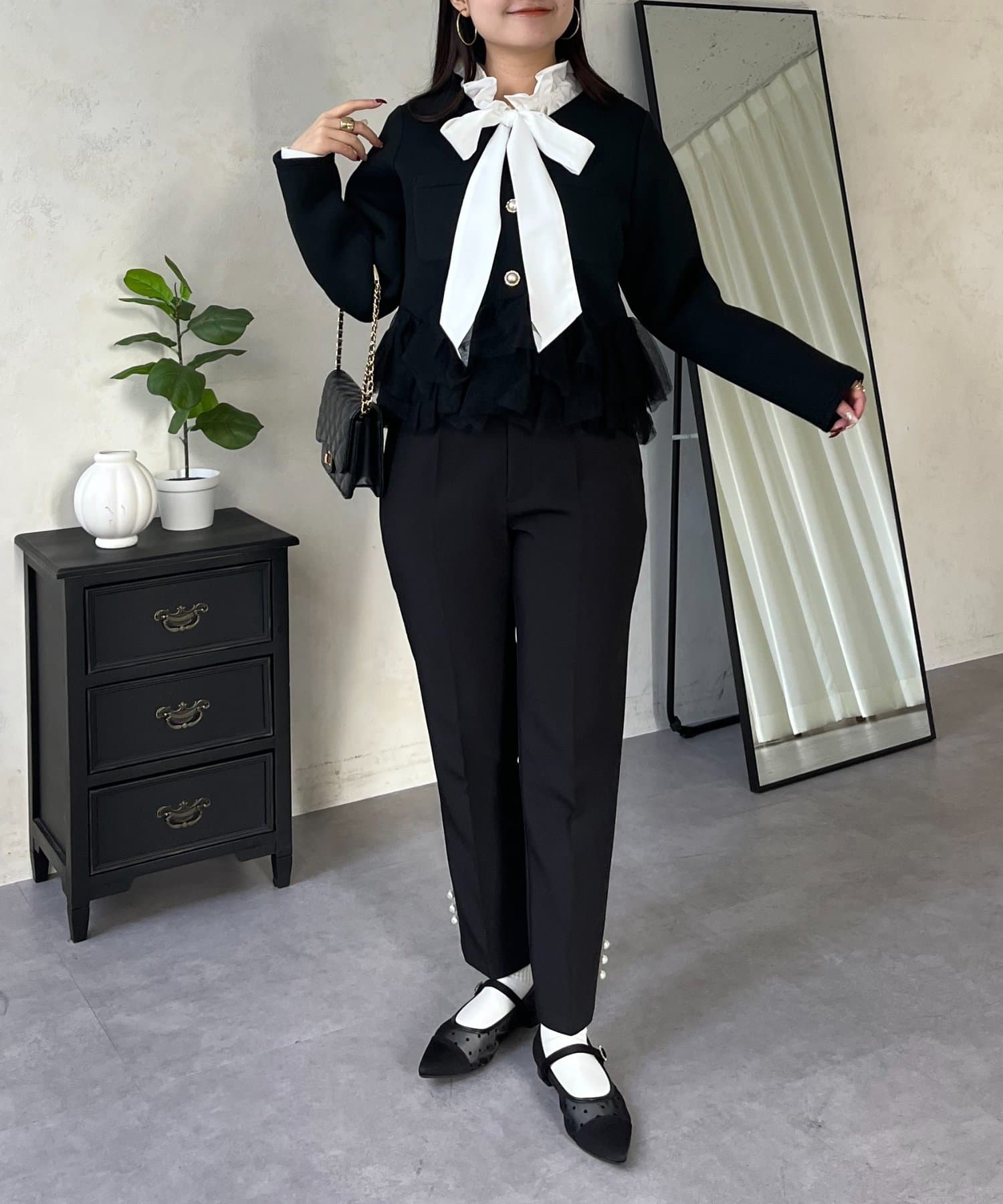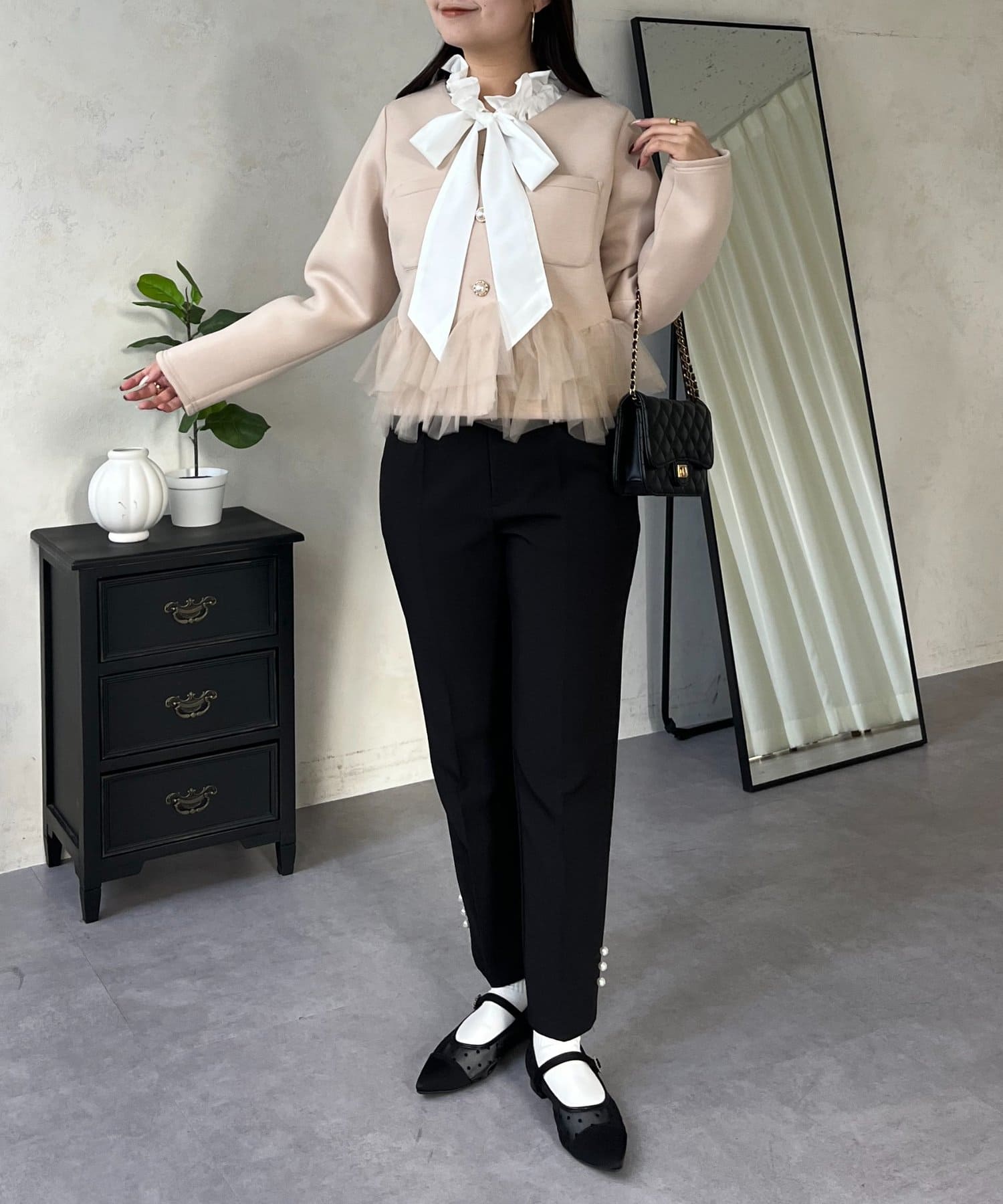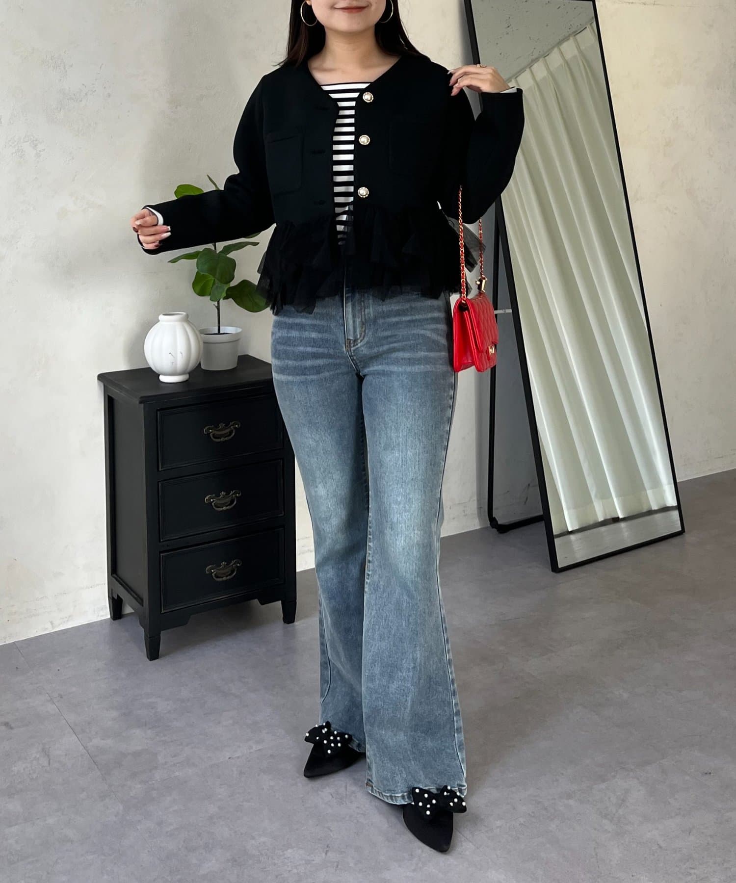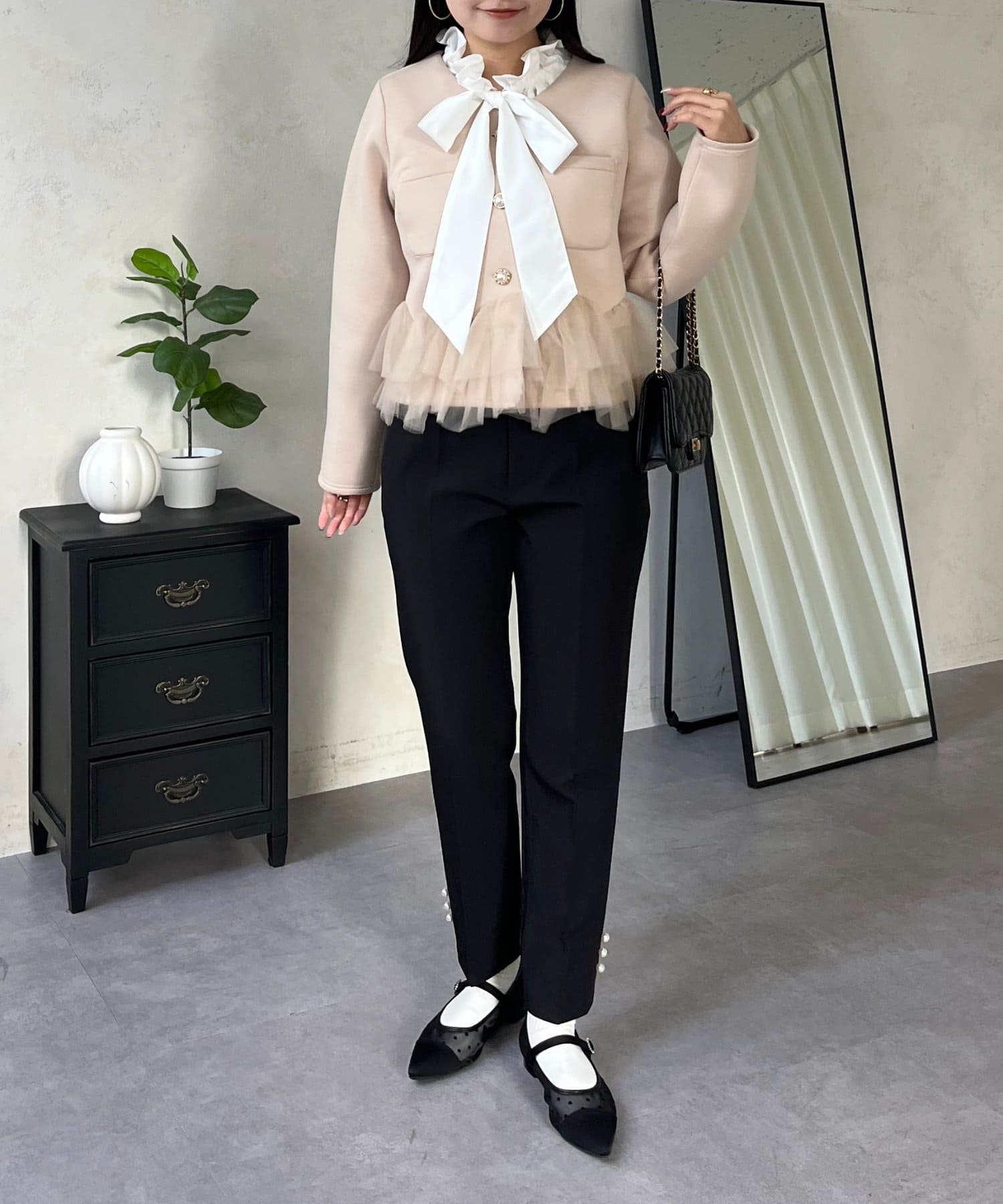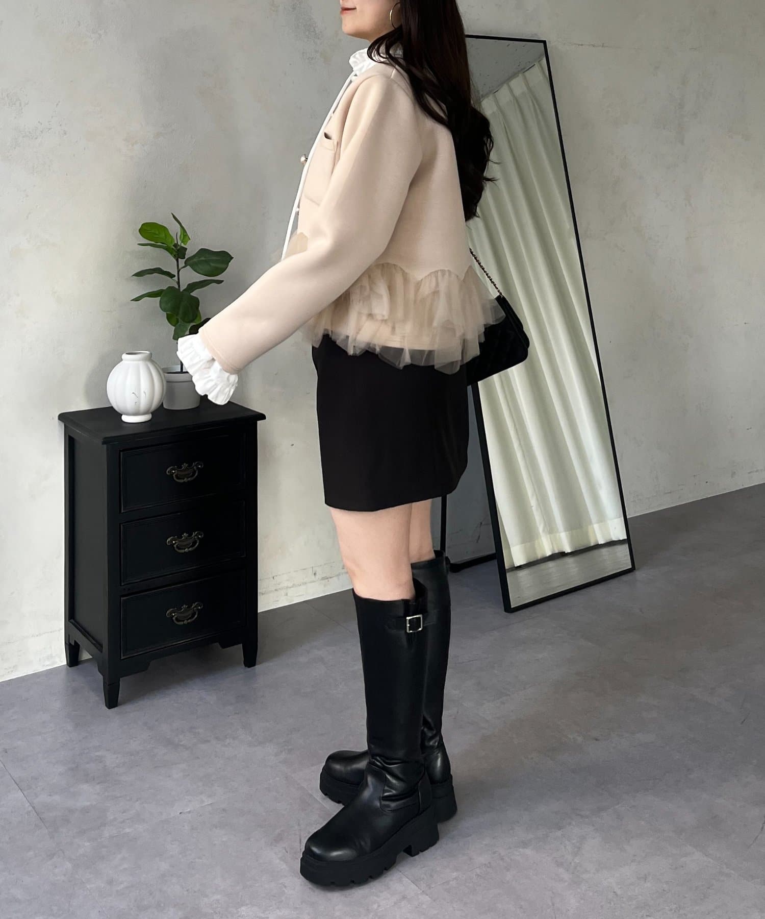 • prose verse(プロズヴェール) チュールフリルダンボールVネックジャケット