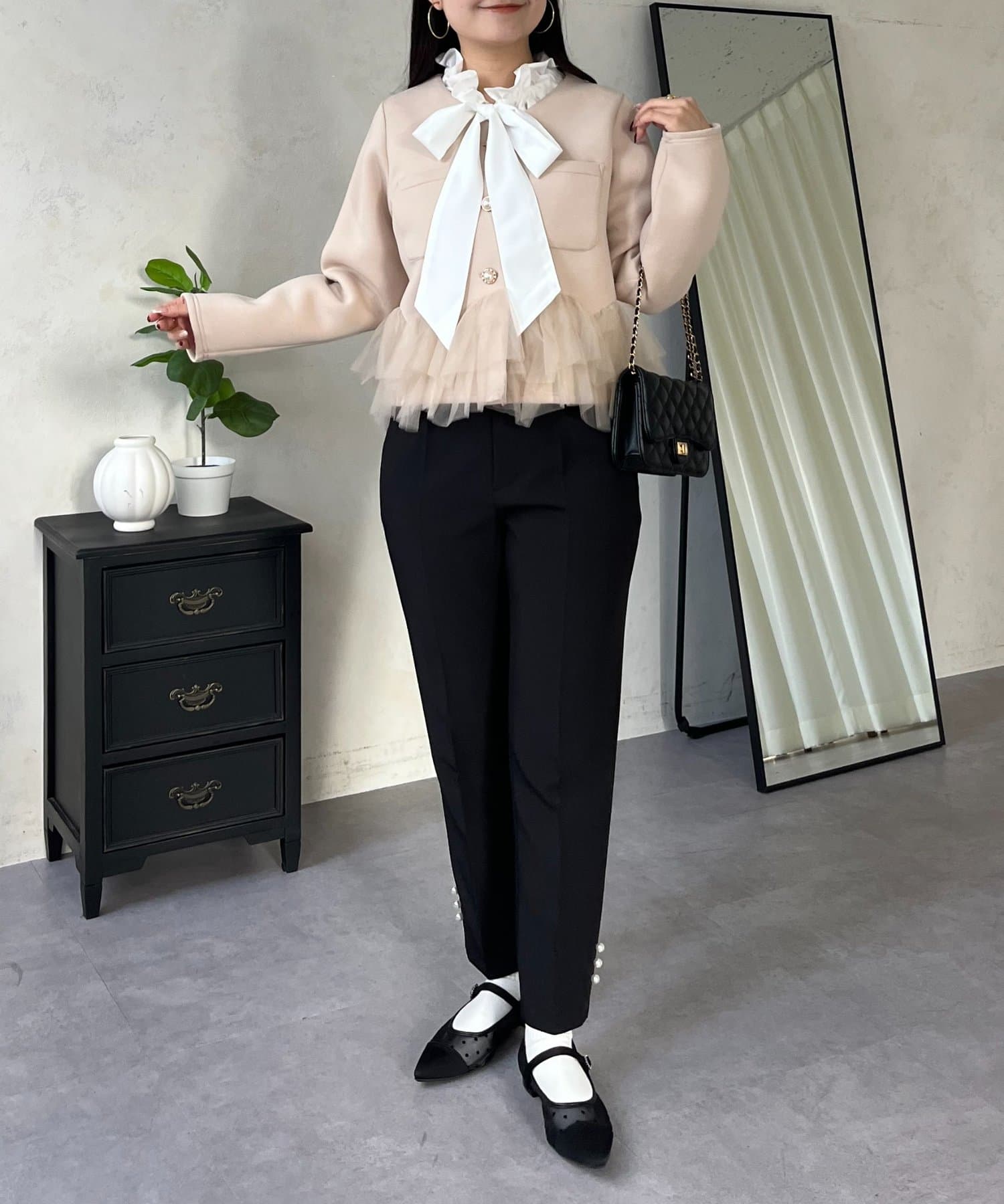 prose verse(プロズヴェール) チュールフリルダンボールVネックジャケット
