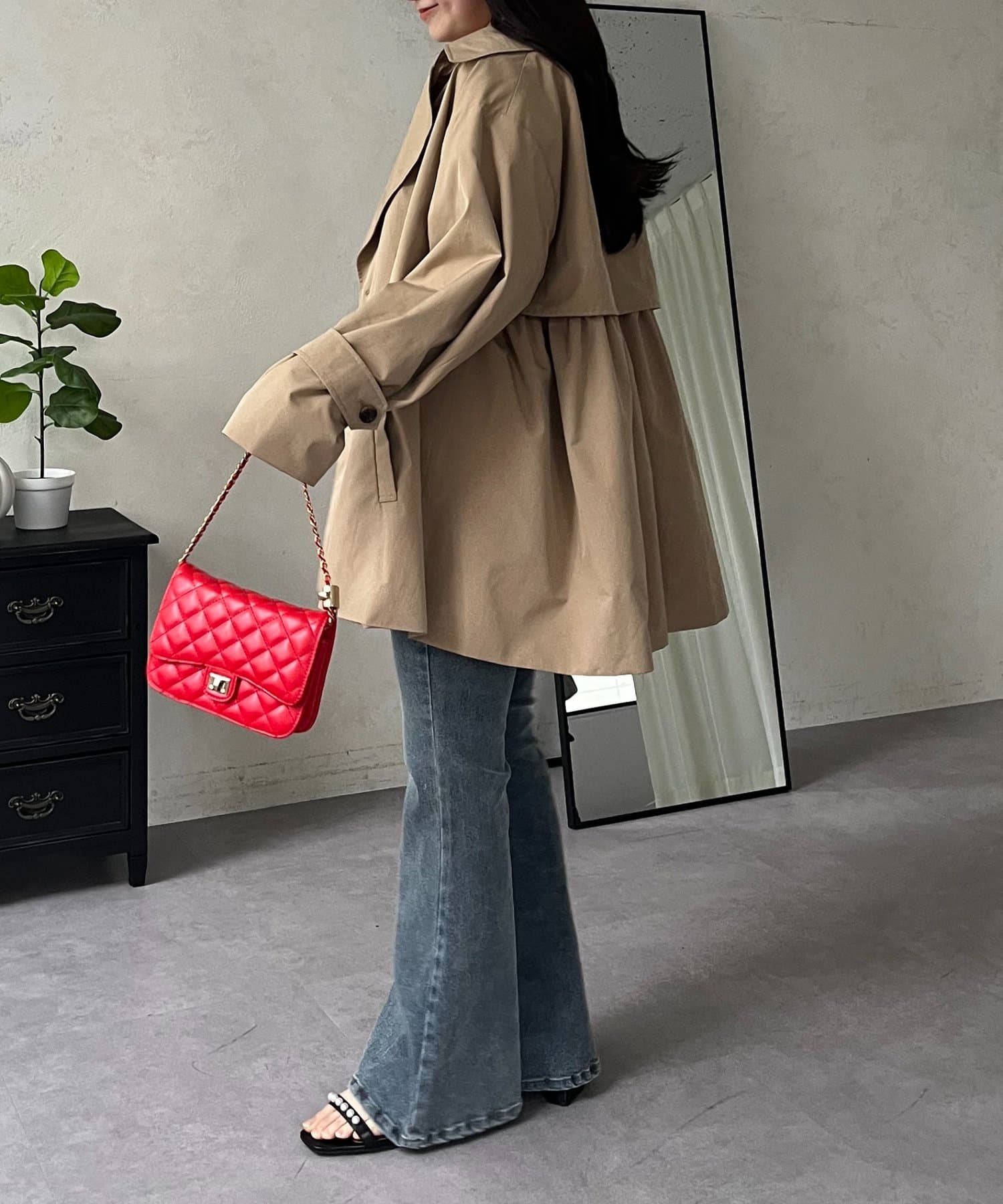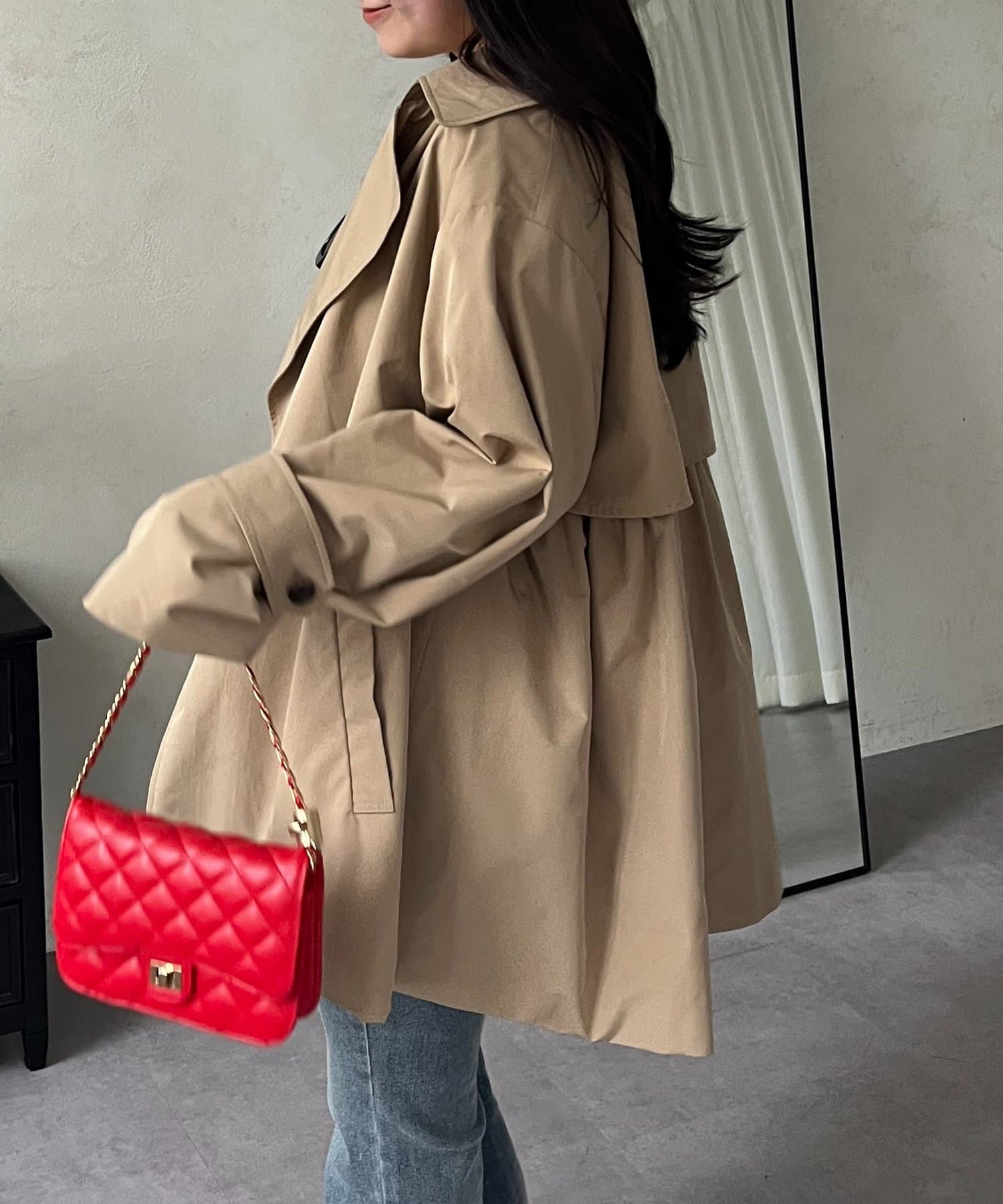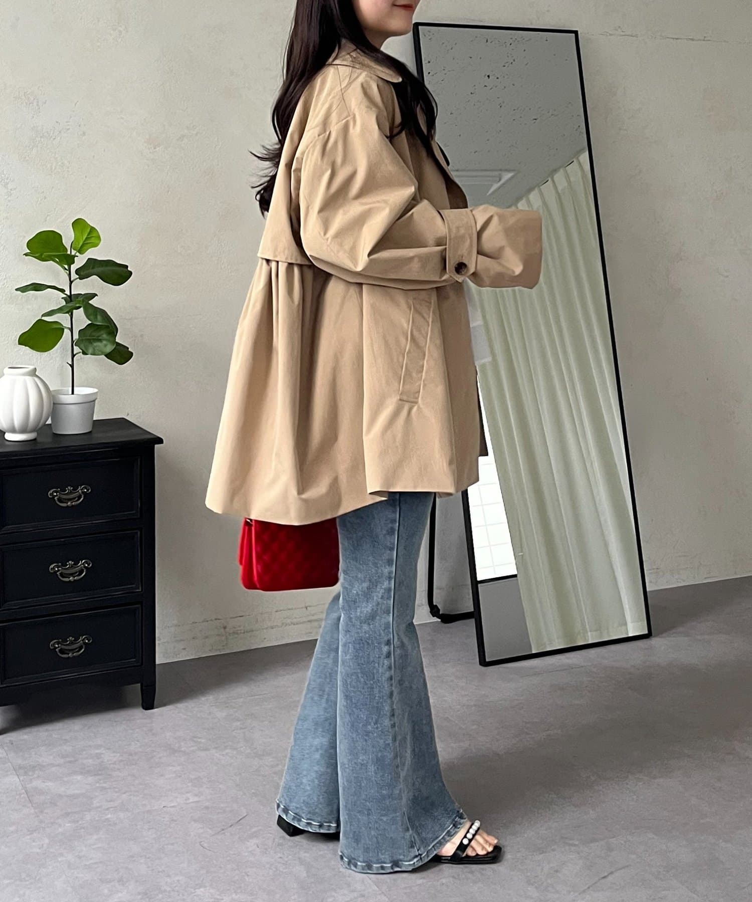 バックギャザーミドル丈Aライントレンチコート