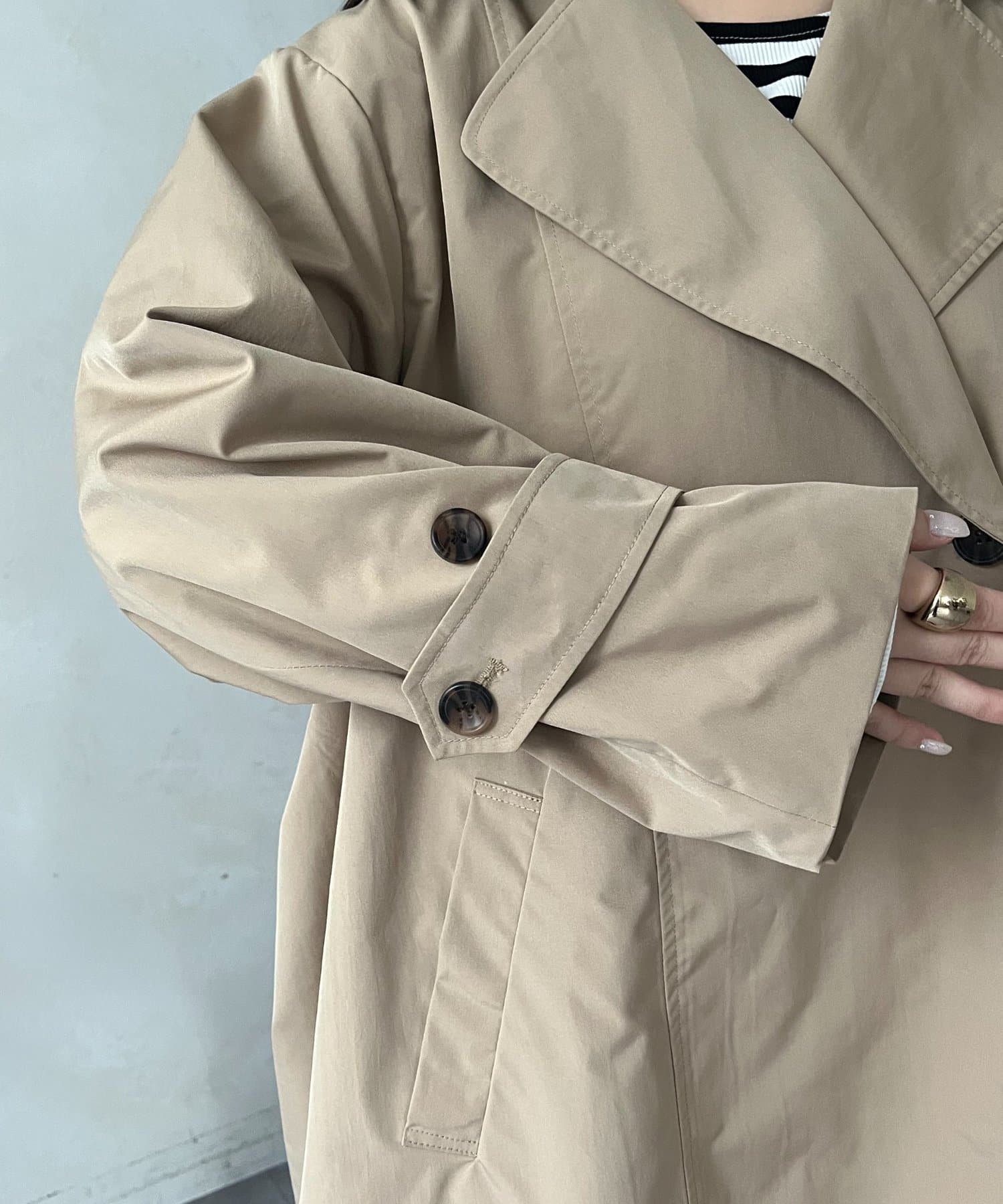 ●トレンチ特有のディテールを活かしつつ、短め丈でラフに着やすいデザイン