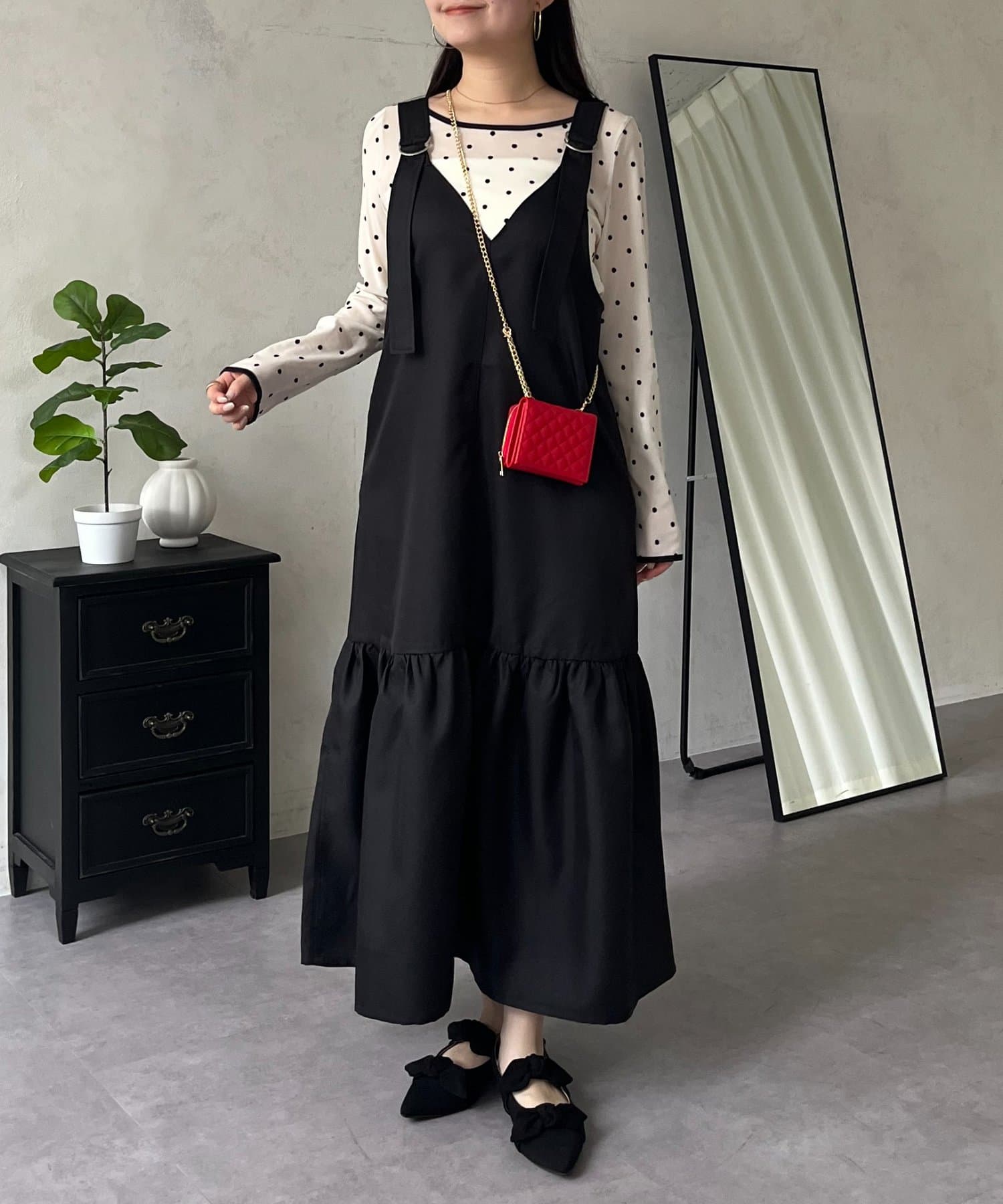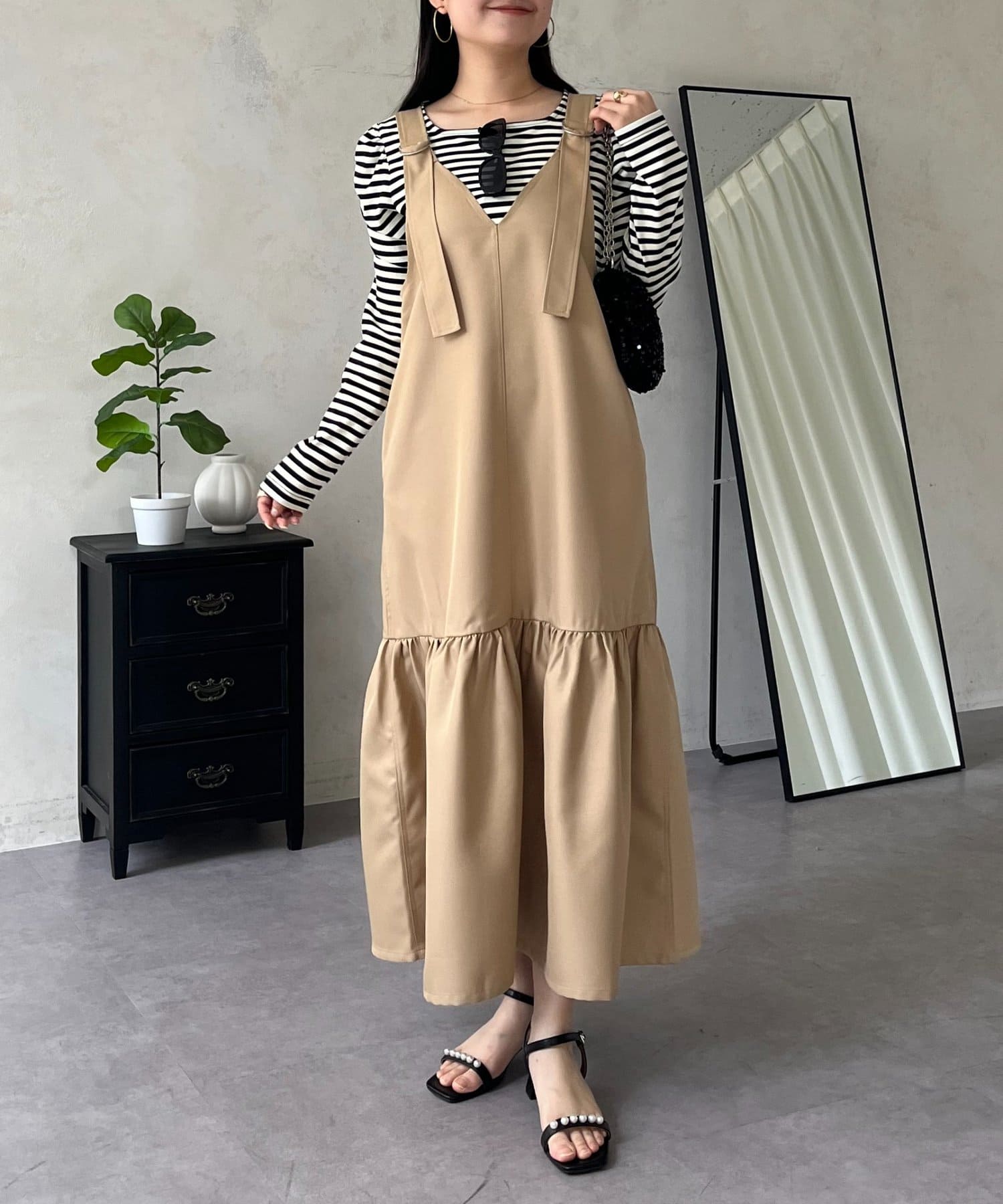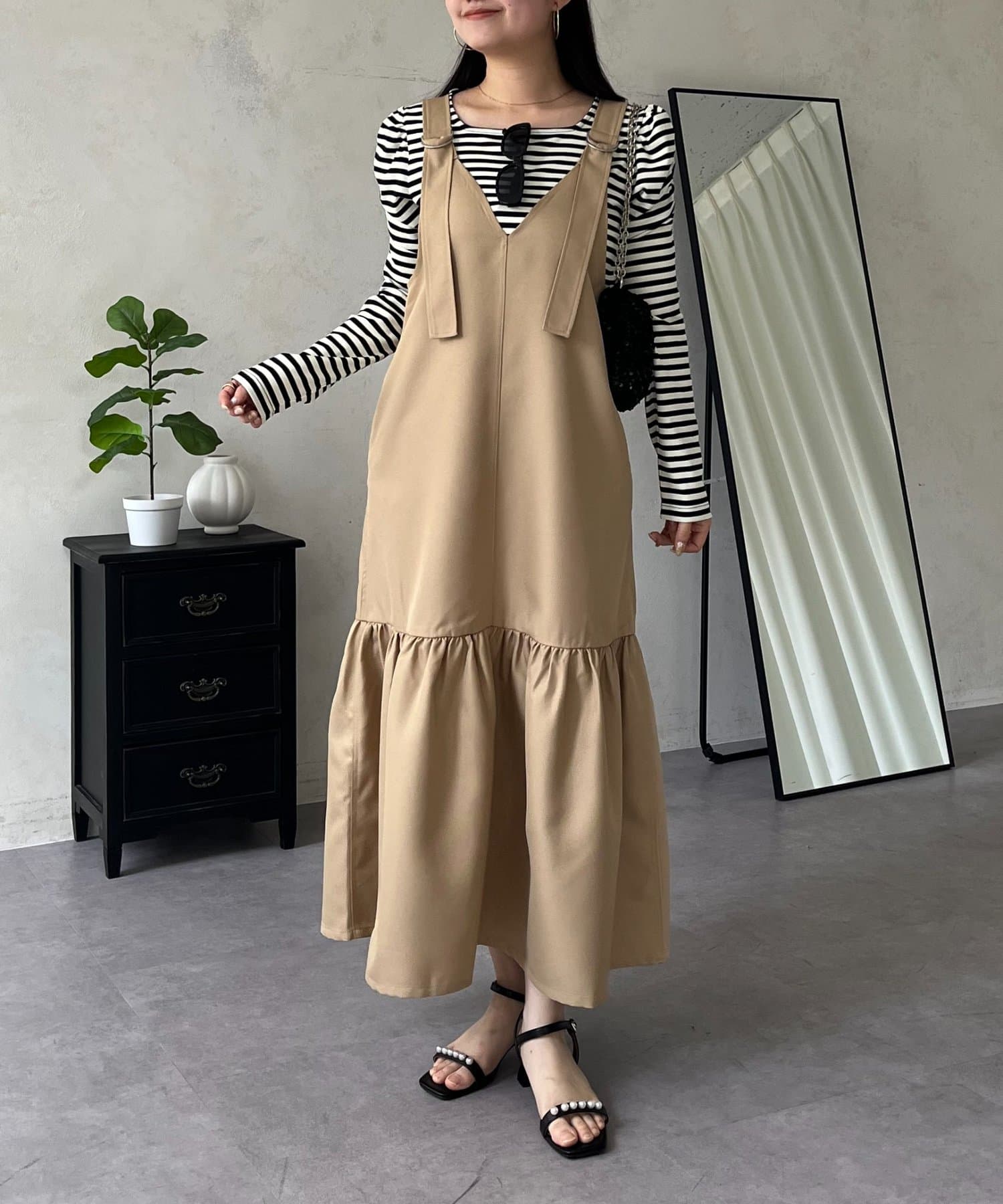 ジャンスカ/ワンピ/シンプル/大人可愛い