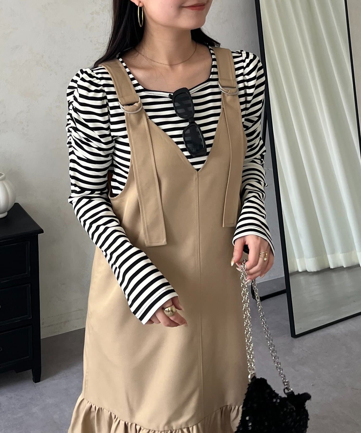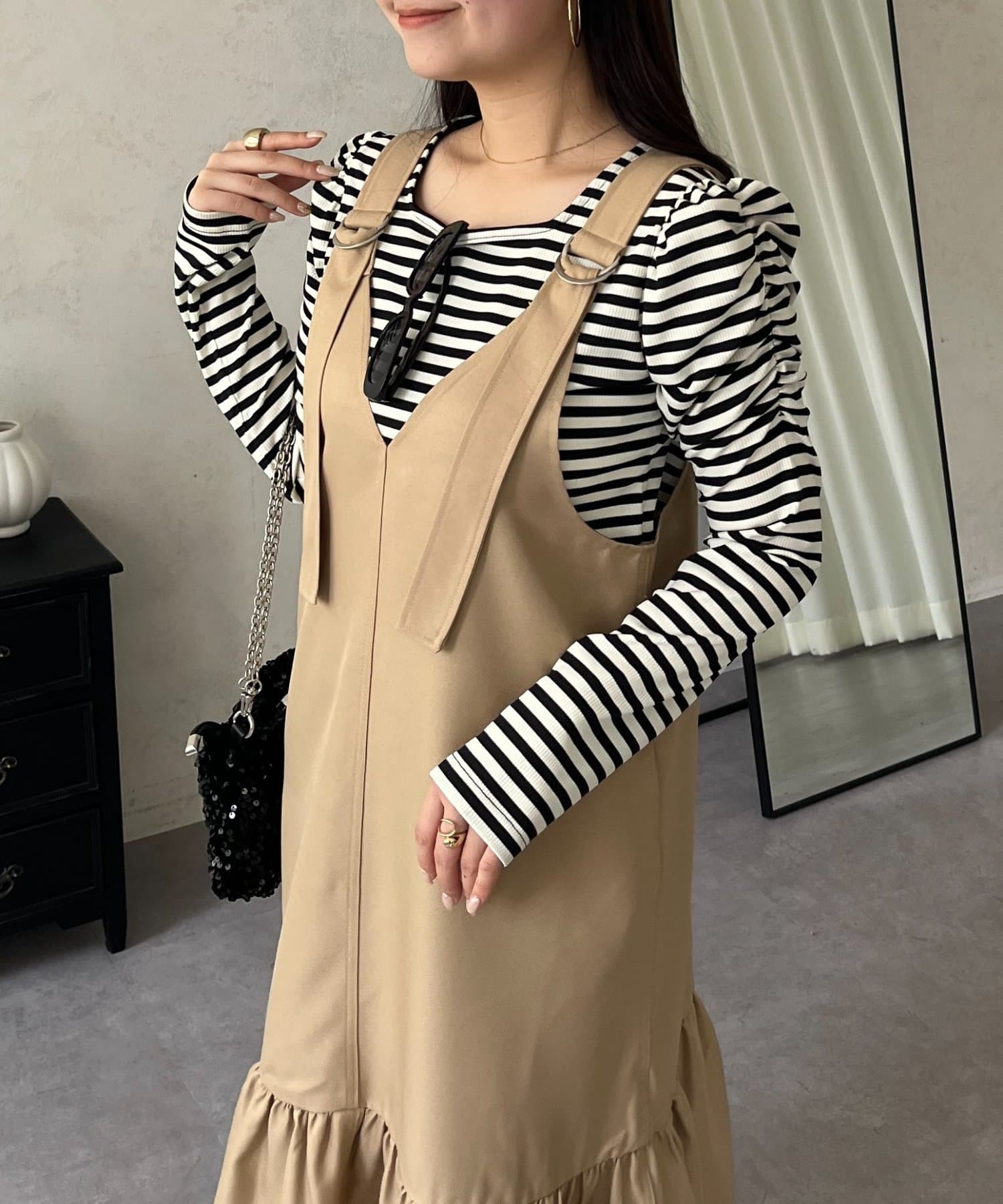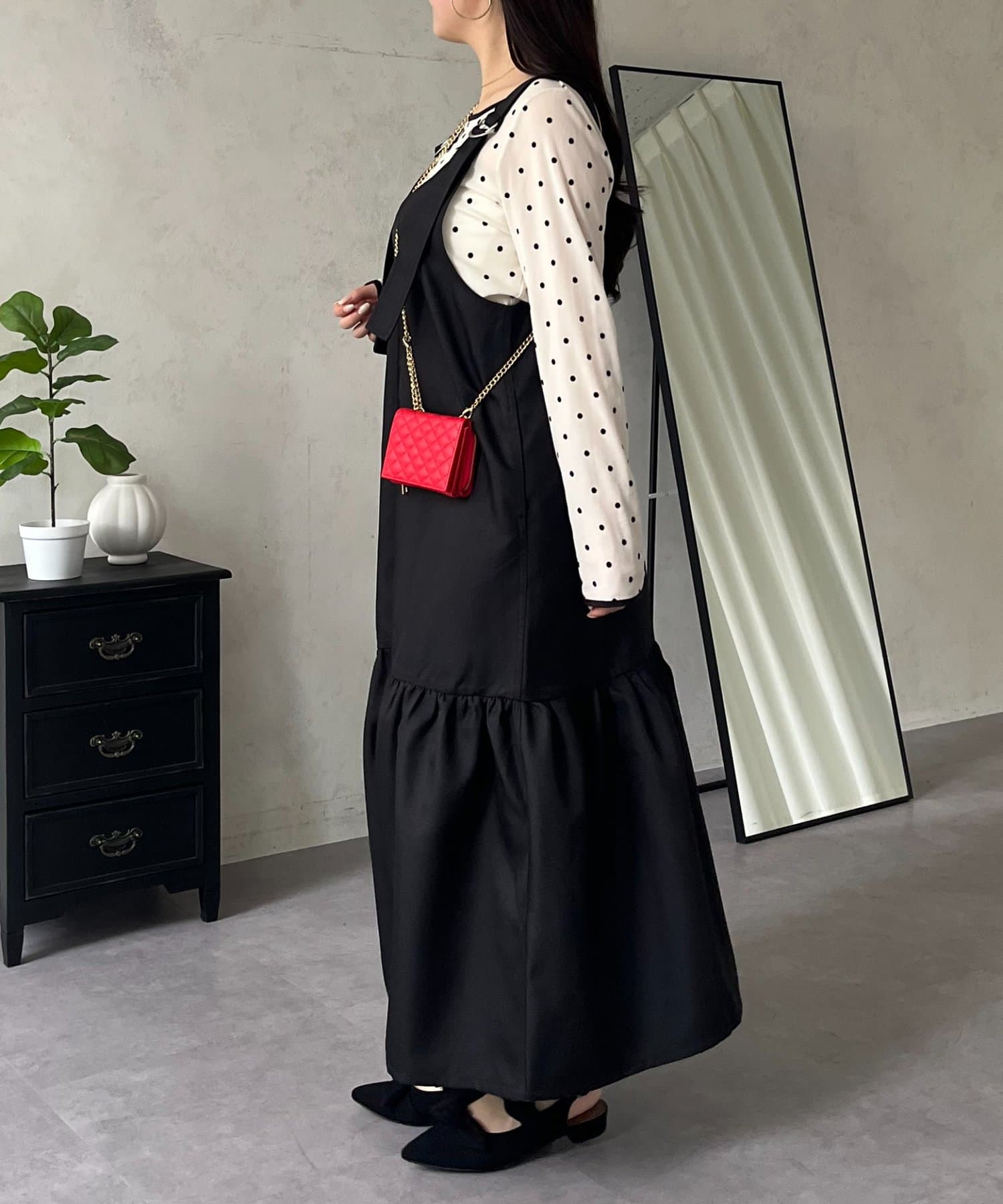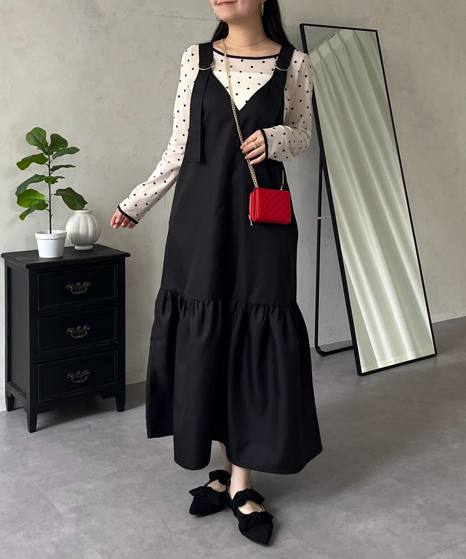 ジャンスカ/ワンピ/シンプル/大人可愛い