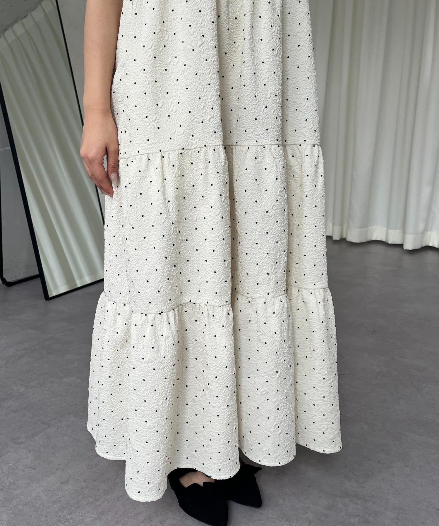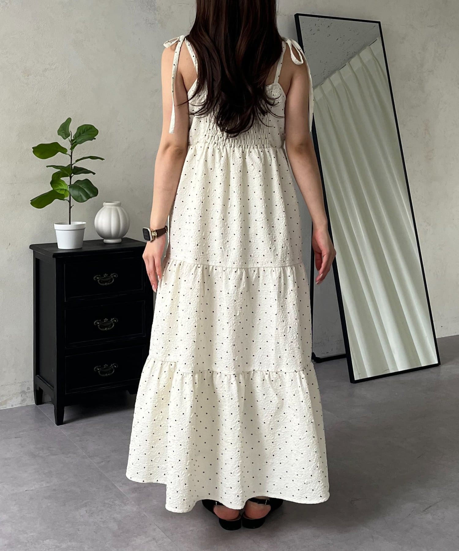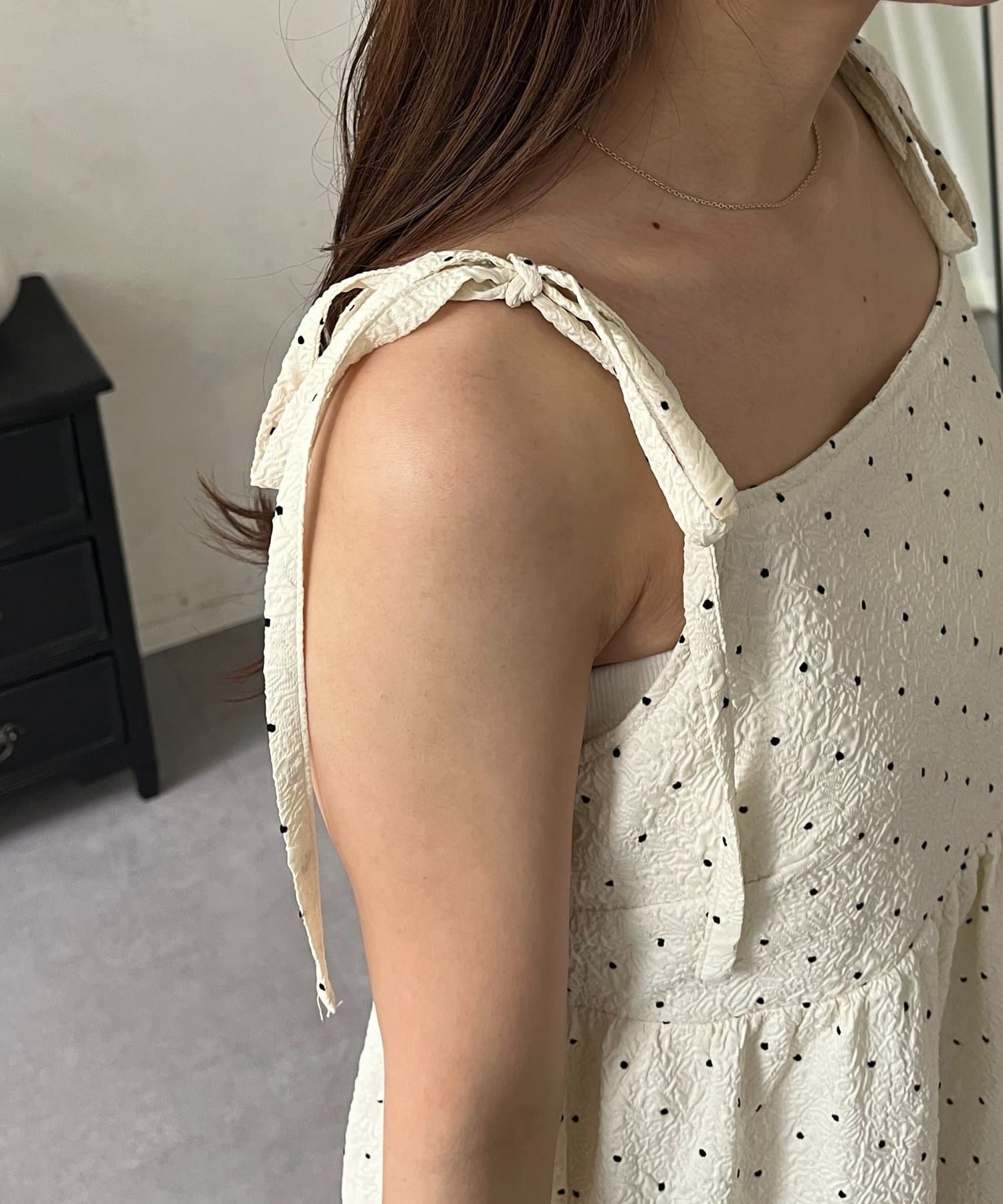 キャミワンピース/リボン/ドット/シンプル/大人可愛い